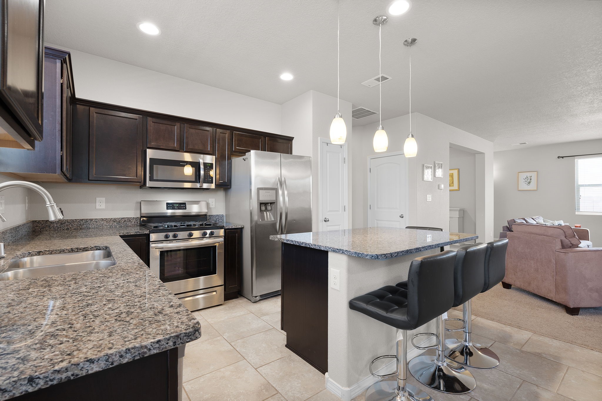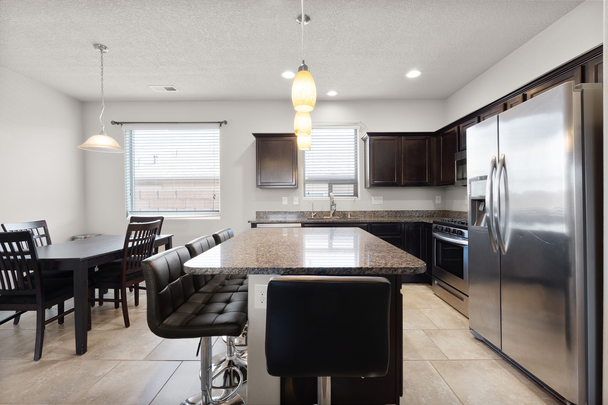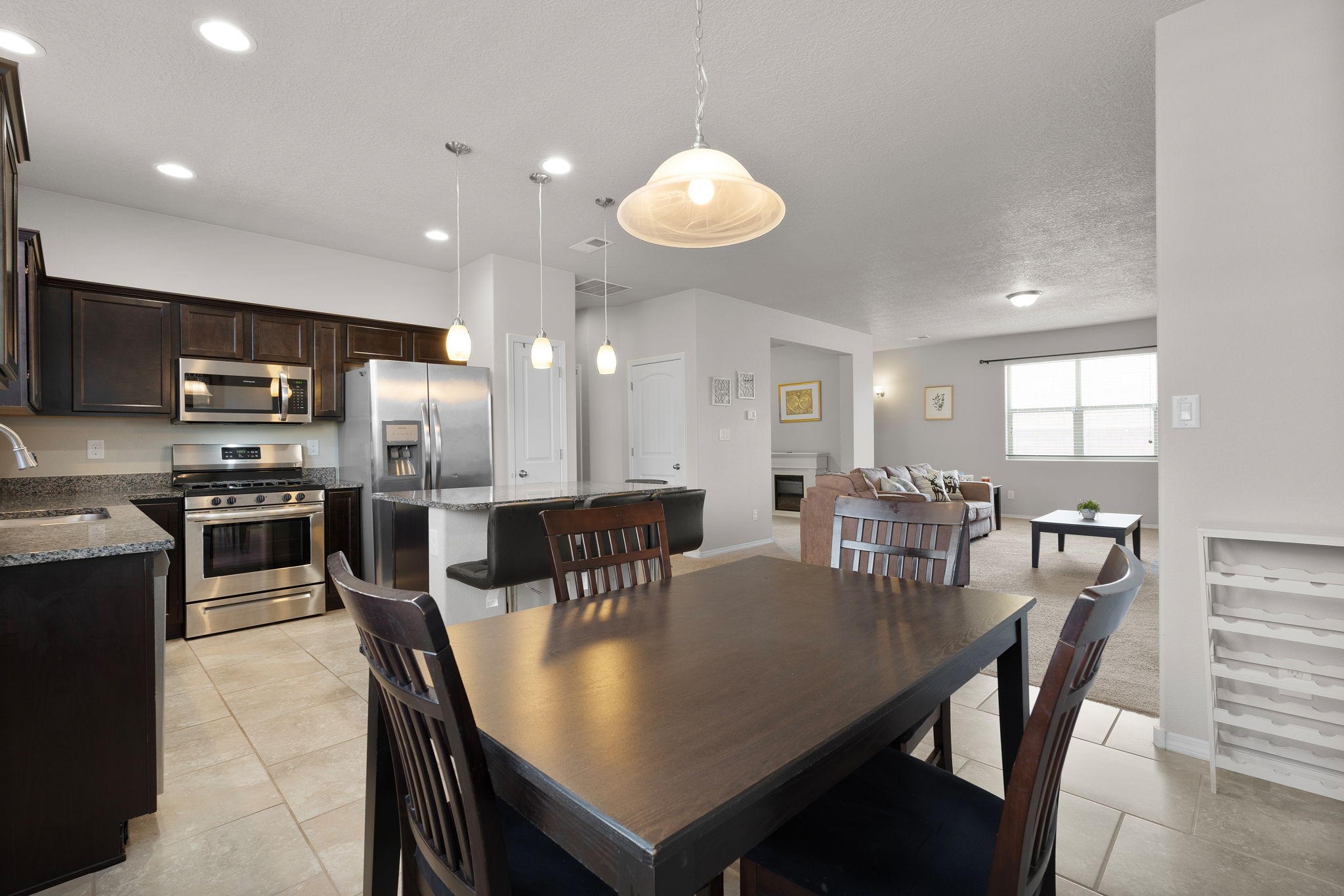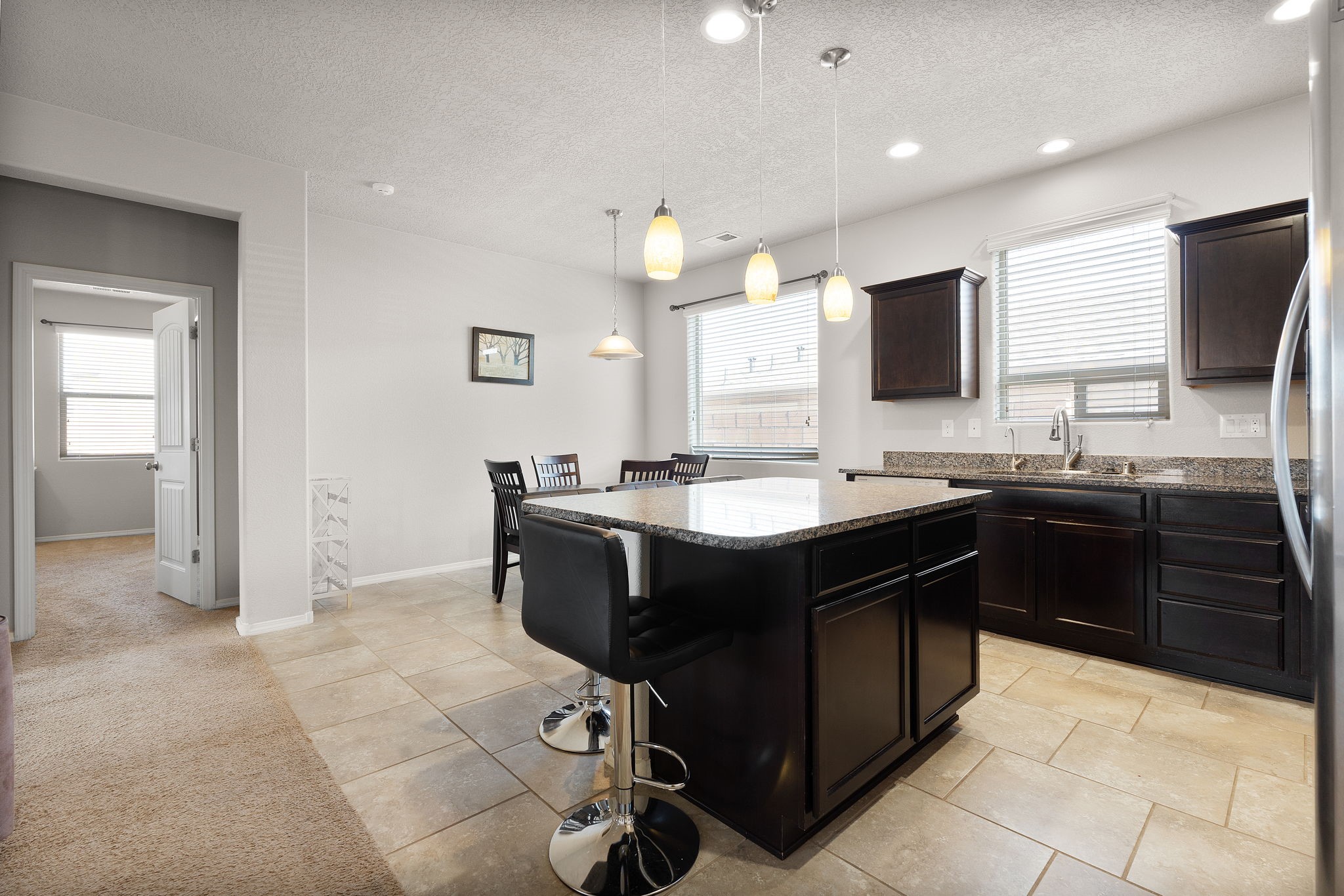 Welcome to this beautiful DR Horton home in Enchanted Hills, built in 2018, offering 1,632 sq. ft. of thoughtfully designed living space. This 3-bedroom, 2-bathroom home also features a versatile bonus room--perfect for a home office, dining area, or flex space to fit your needs. Enjoy refrigerated air and a well-appointed kitchen with stainless steel appliances, pull-out drawers, a spacious island, and granite countertops--perfect for cooking and entertaining. The fully landscaped backyard is designed for low maintenance and includes peaceful water features, creating a relaxing retreat. Located in the desirable Enchanted Hills community, this home is just minutes from Vista Grande Elementary, parks, and more--offering both comfort and convenience. Don't miss out. Come see it today!