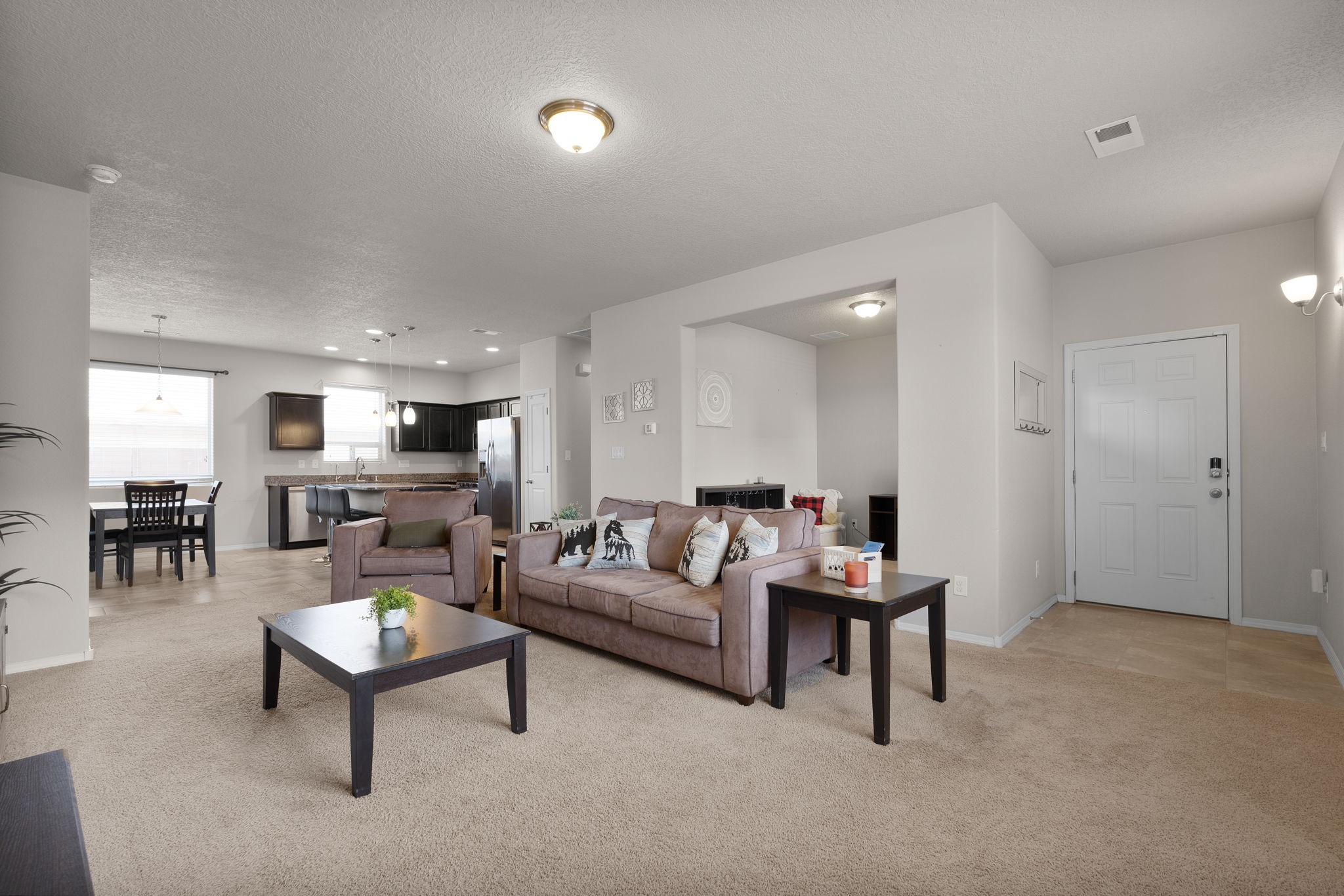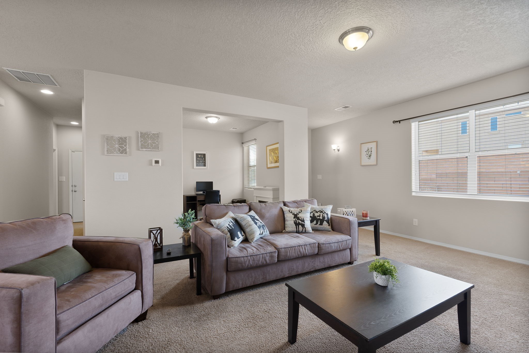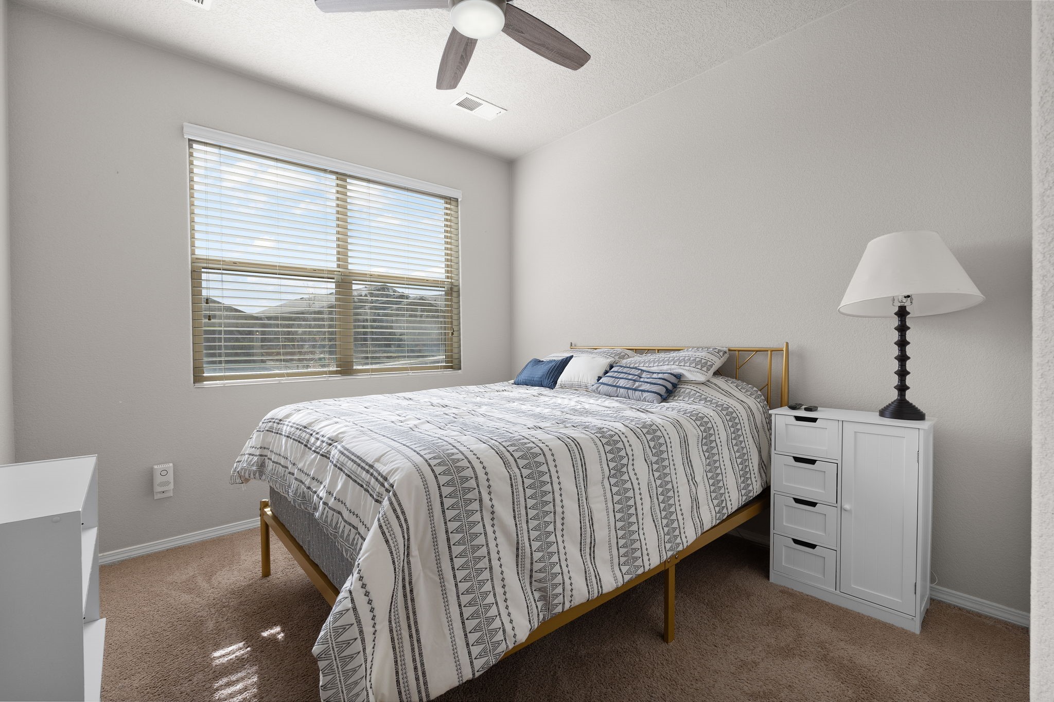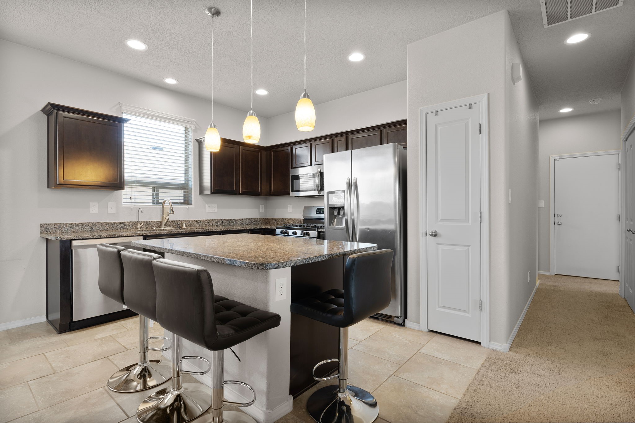 Welcome to this beautiful DR Horton home in Enchanted Hills, built in 2018, offering 1,632 sq. ft. of thoughtfully designed living space. This 3-bedroom, 2-bathroom home also features a versatile bonus room--perfect for a home office, dining area, or flex space to fit your needs. Enjoy refrigerated air and a well-appointed kitchen with stainless steel appliances, pull-out drawers, a spacious island, and granite countertops--perfect for cooking and entertaining. The fully landscaped backyard is designed for low maintenance and includes peaceful water features, creating a relaxing retreat. Located in the desirable Enchanted Hills community, this home is just minutes from Vista Grande Elementary, parks, and more--offering both comfort and convenience. Don't miss out. Come see it today!