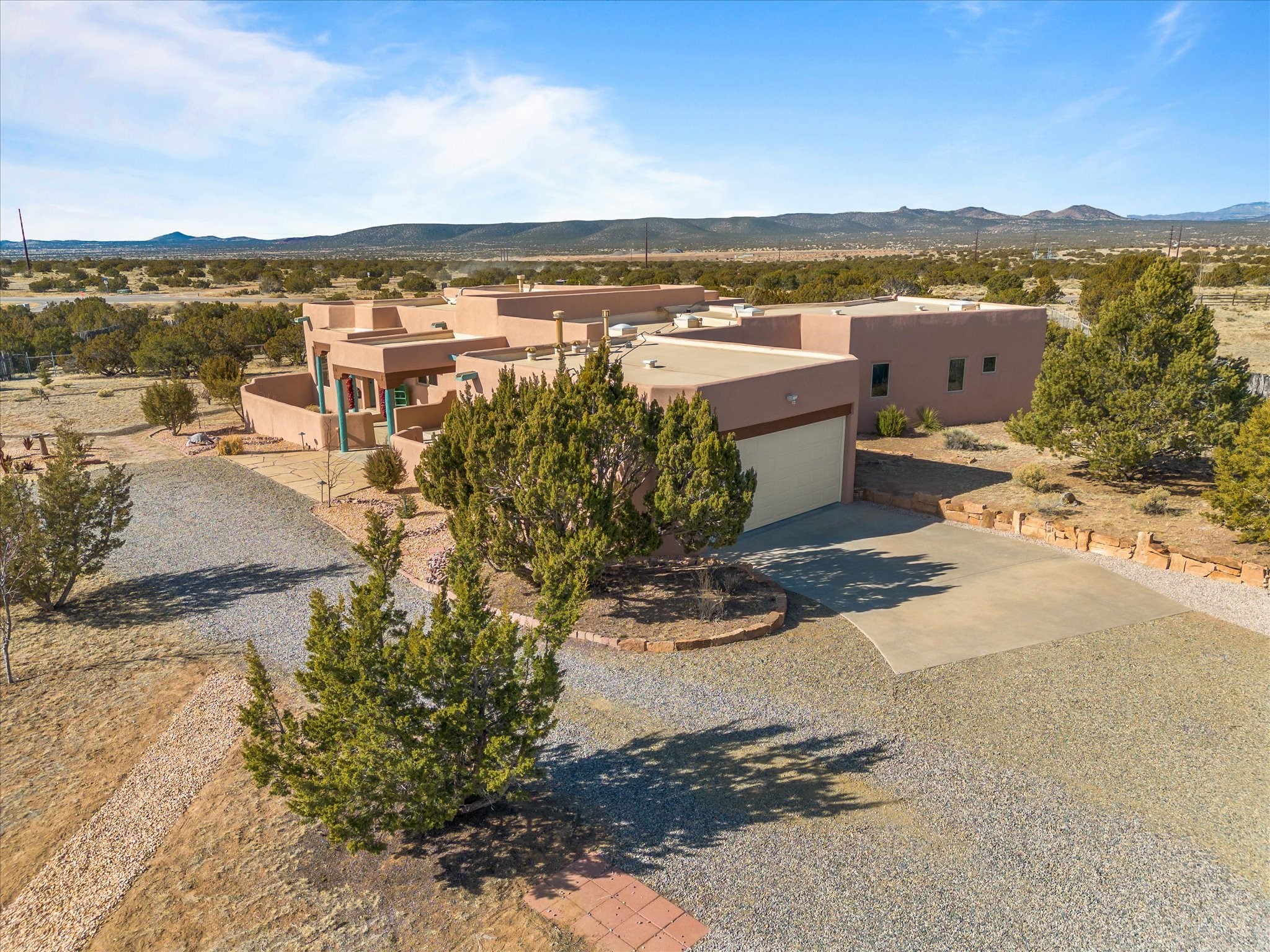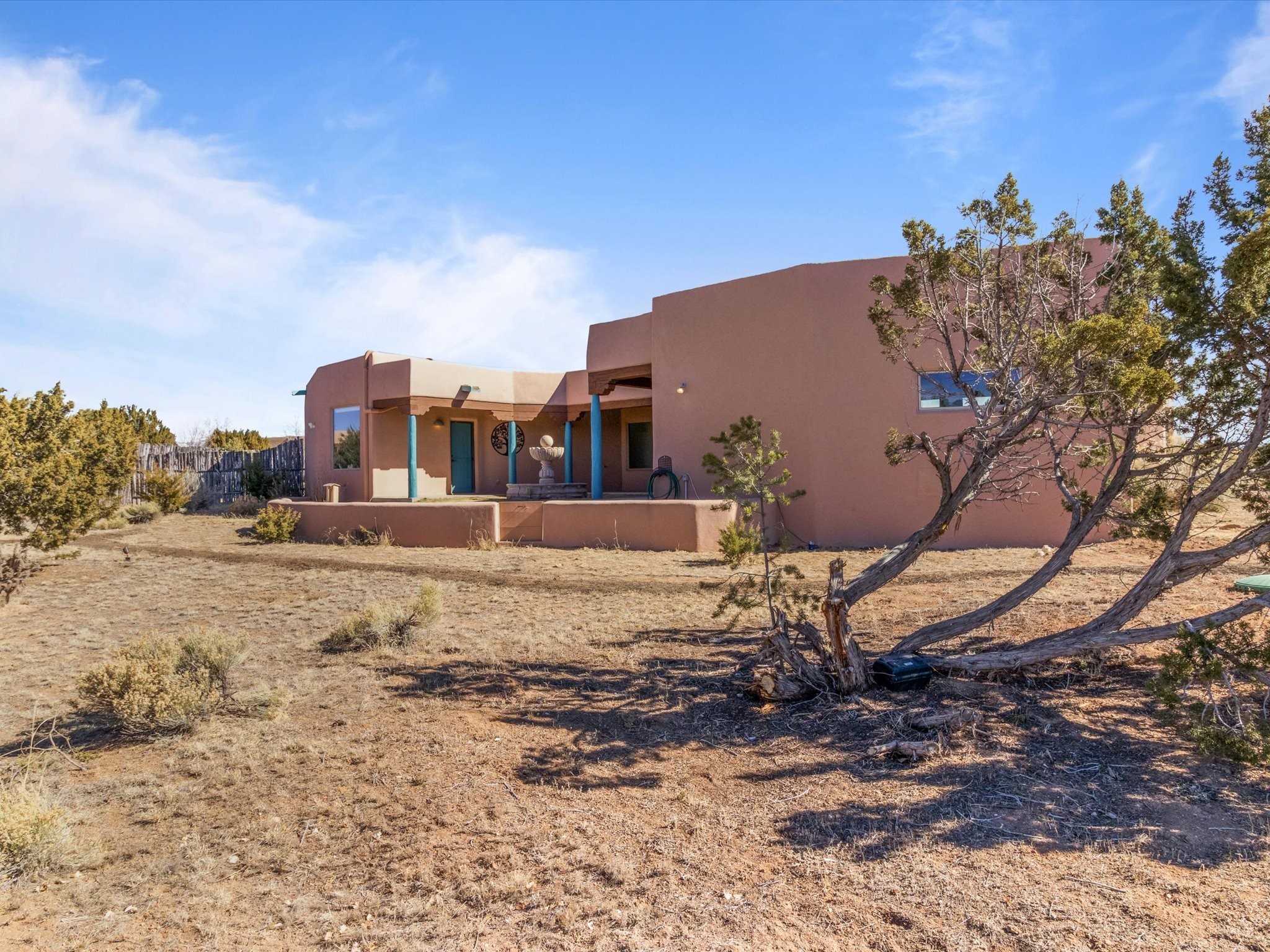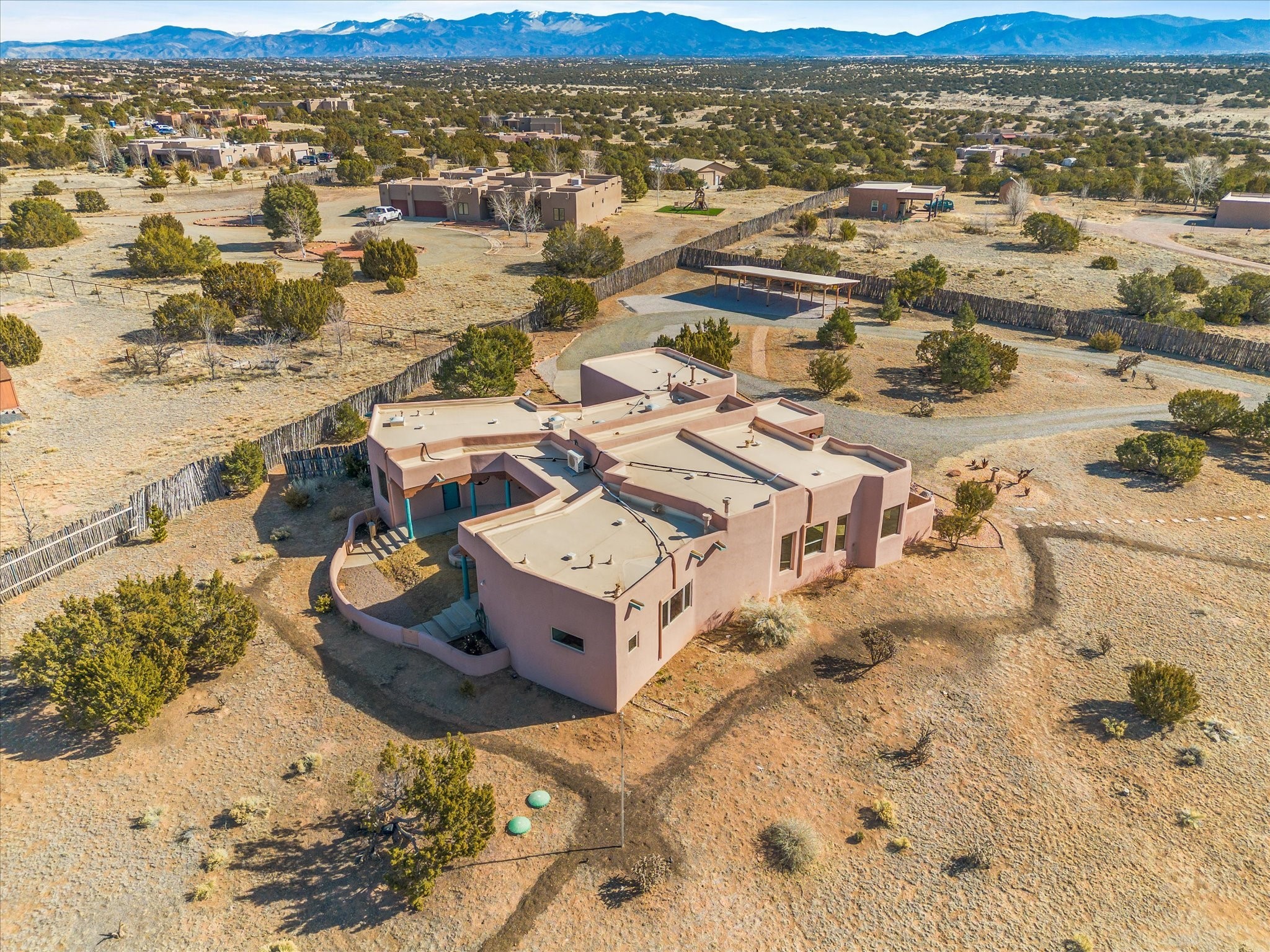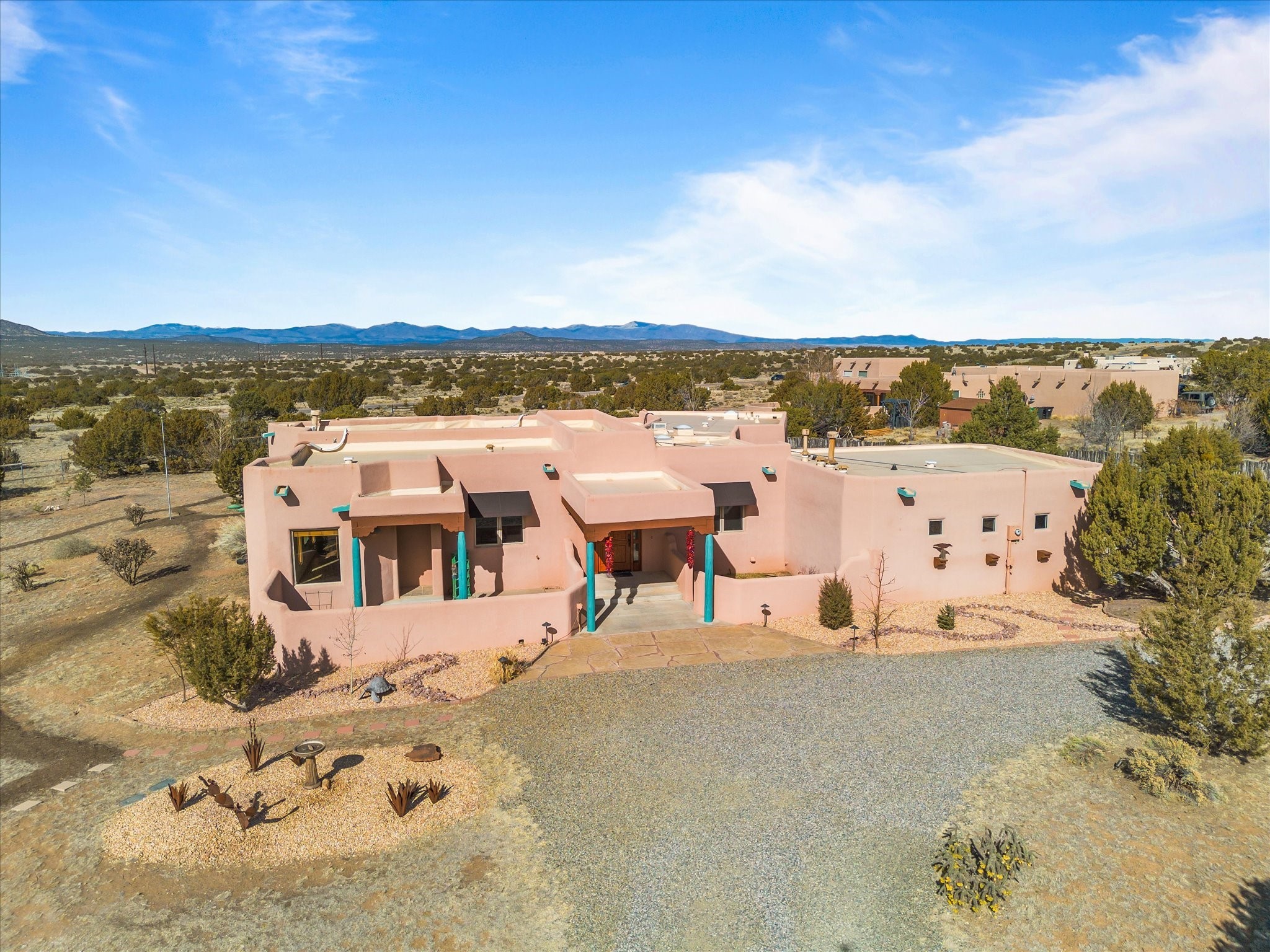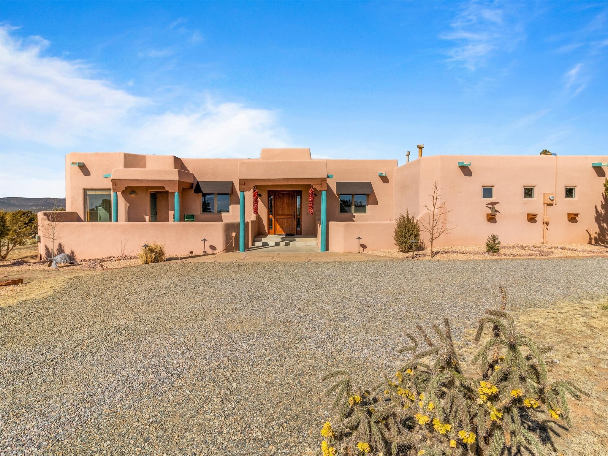 Captivating Pueblo-Style Retreat with Panoramic Views!Nestled on 2.35 acres, this lovely 3-bedroom pueblo-style home is thoughtfully designed to embrace Santa Fe's breathtaking landscapes. From the moment you step inside, the home draws you toward the inviting central patio--an ideal space for gatherings, relaxation, and savoring the vibrant hues of Santa Fe sunsets alongside the tranquil sounds of a water fountain.The high-ceilinged living room, complete with corner fireplace, creates a warm and welcoming atmosphere for entertaining. The kitchen is equipped with stainless steel appliances and has an elongated layout, leading to a charming informal dining area with large windows that perfectly frame the sweeping views of the Sandia, Ortiz, and Cerrillos mountains.The privately situated Primary suite offers a cozy gas fireplace, a spacious walk-in closet, and an En-suite bath featuring a soaking tub and separate shower. A second suite includes a comfortable sitting area with a picture window showcasing stunning views of the Jemez Mountains.Recent updates elevate this home's appeal, including a newer roof, a solar-powered entry gate, skylights, New appliances, mature landscaping with lighting, Automatic drip irrigation, fencing, Newer Boiler, Motordeck garage flooring, New garage door and motor, 220v plug for Electric car charger in the garage, intercom for front entry gate and additional 4 car covered parking. A true Santa Fe sanctuary, this residence blends timeless elegance with modern comforts for a life of beautiful vistas and tranquility.