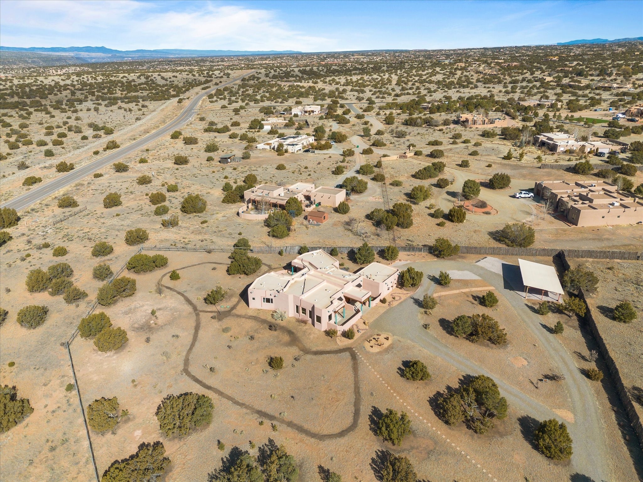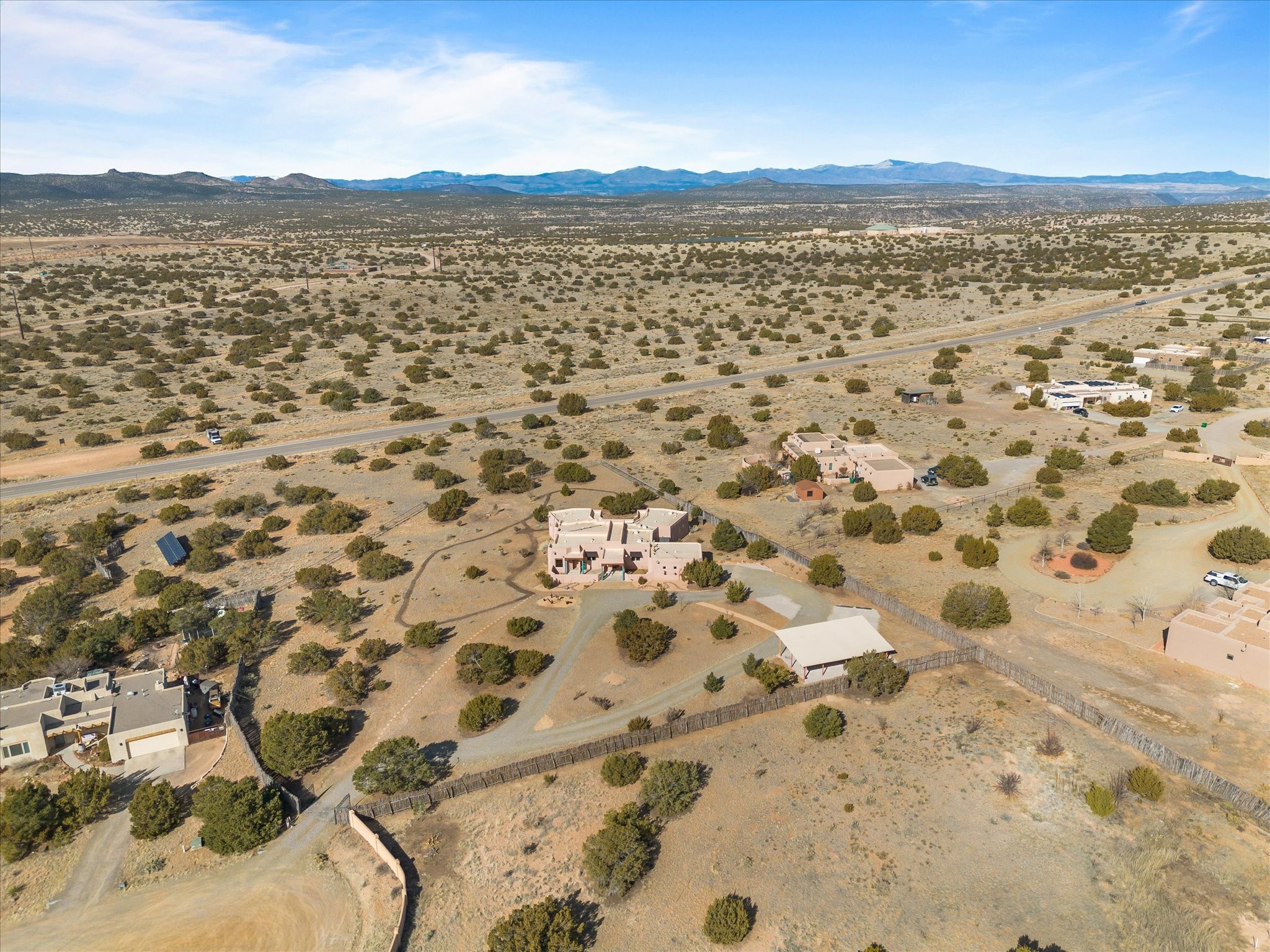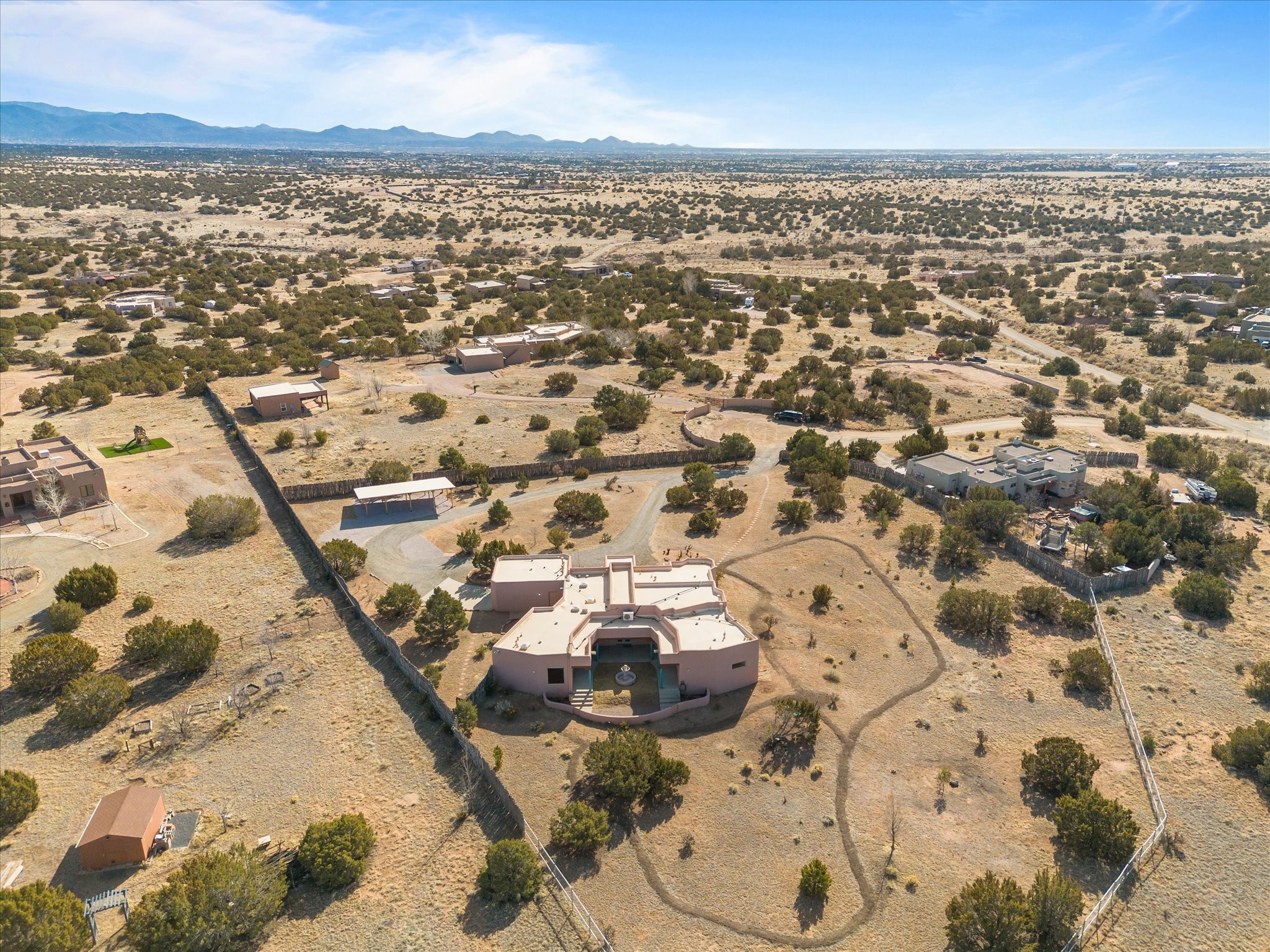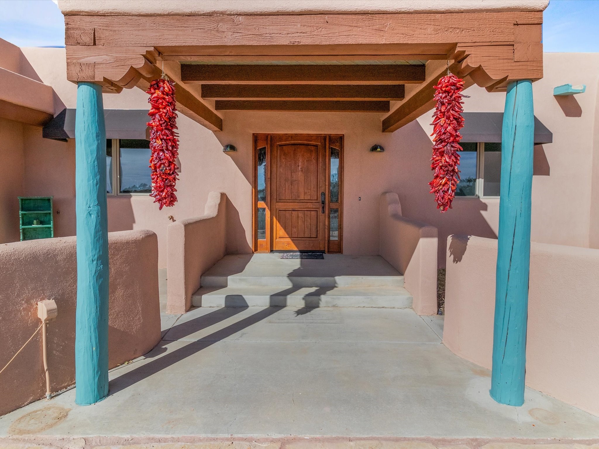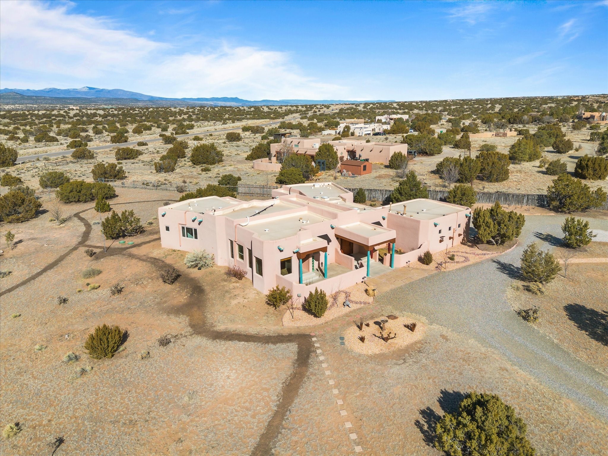 Captivating Pueblo-Style Retreat with Panoramic Views!Nestled on 2.35 acres, this lovely 3-bedroom pueblo-style home is thoughtfully designed to embrace Santa Fe's breathtaking landscapes. From the moment you step inside, the home draws you toward the inviting central patio--an ideal space for gatherings, relaxation, and savoring the vibrant hues of Santa Fe sunsets alongside the tranquil sounds of a water fountain.The high-ceilinged living room, complete with corner fireplace, creates a warm and welcoming atmosphere for entertaining. The kitchen is equipped with stainless steel appliances and has an elongated layout, leading to a charming informal dining area with large windows that perfectly frame the sweeping views of the Sandia, Ortiz, and Cerrillos mountains.The privately situated Primary suite offers a cozy gas fireplace, a spacious walk-in closet, and an En-suite bath featuring a soaking tub and separate shower. A second suite includes a comfortable sitting area with a picture window showcasing stunning views of the Jemez Mountains.Recent updates elevate this home's appeal, including a newer roof, a solar-powered entry gate, skylights, New appliances, mature landscaping with lighting, Automatic drip irrigation, fencing, Newer Boiler, Motordeck garage flooring, New garage door and motor, 220v plug for Electric car charger in the garage, intercom for front entry gate and additional 4 car covered parking. A true Santa Fe sanctuary, this residence blends timeless elegance with modern comforts for a life of beautiful vistas and tranquility.