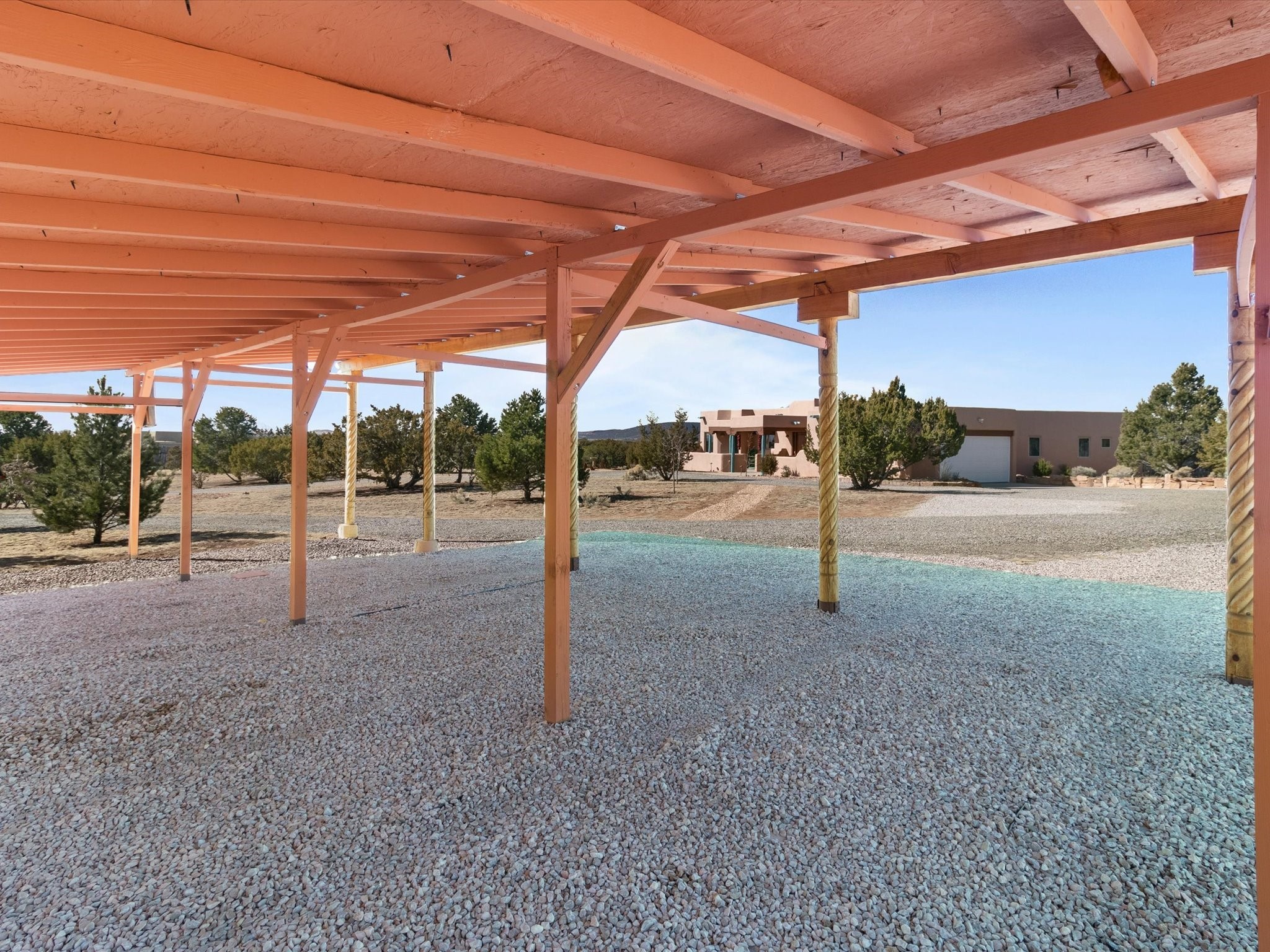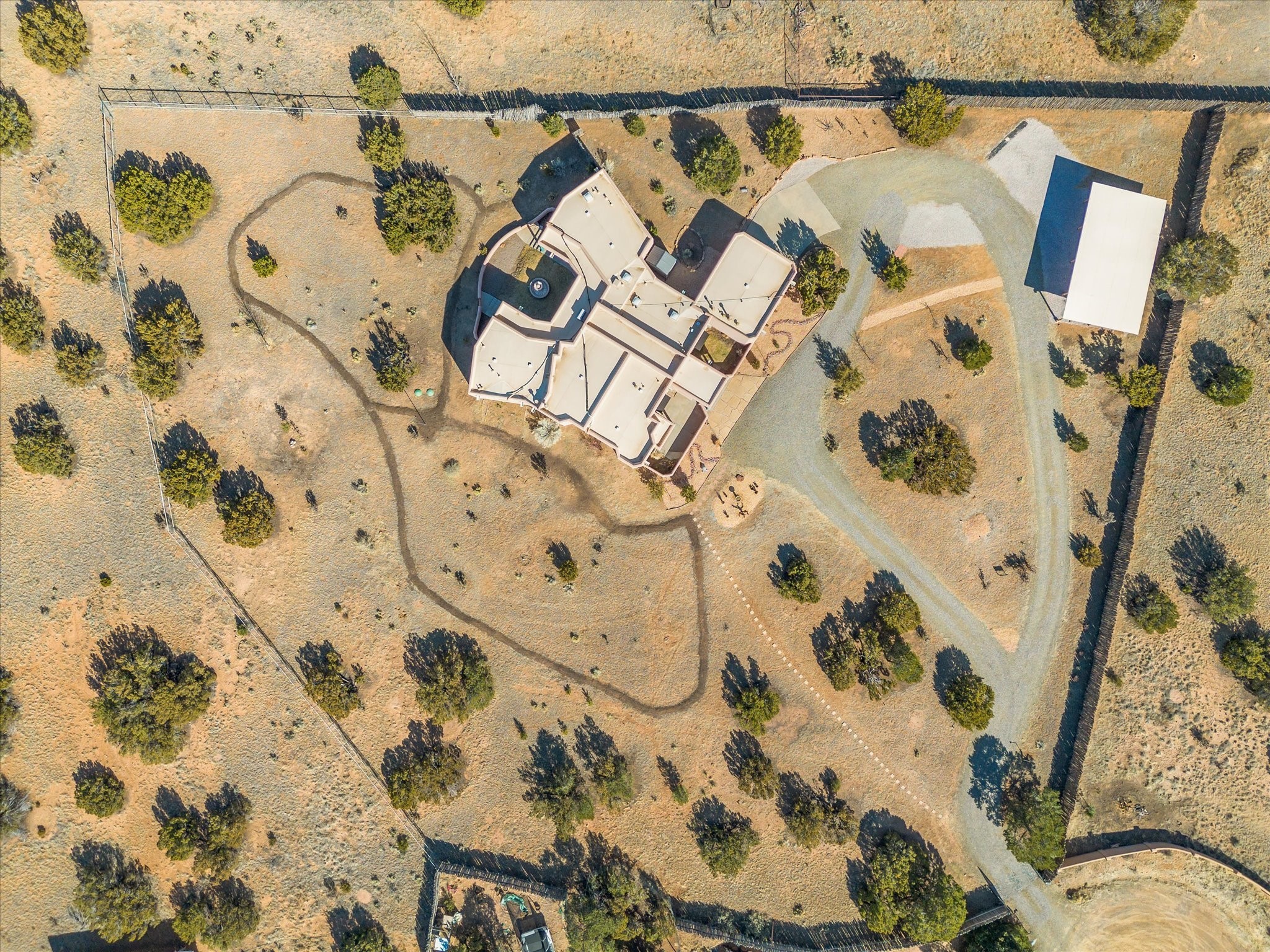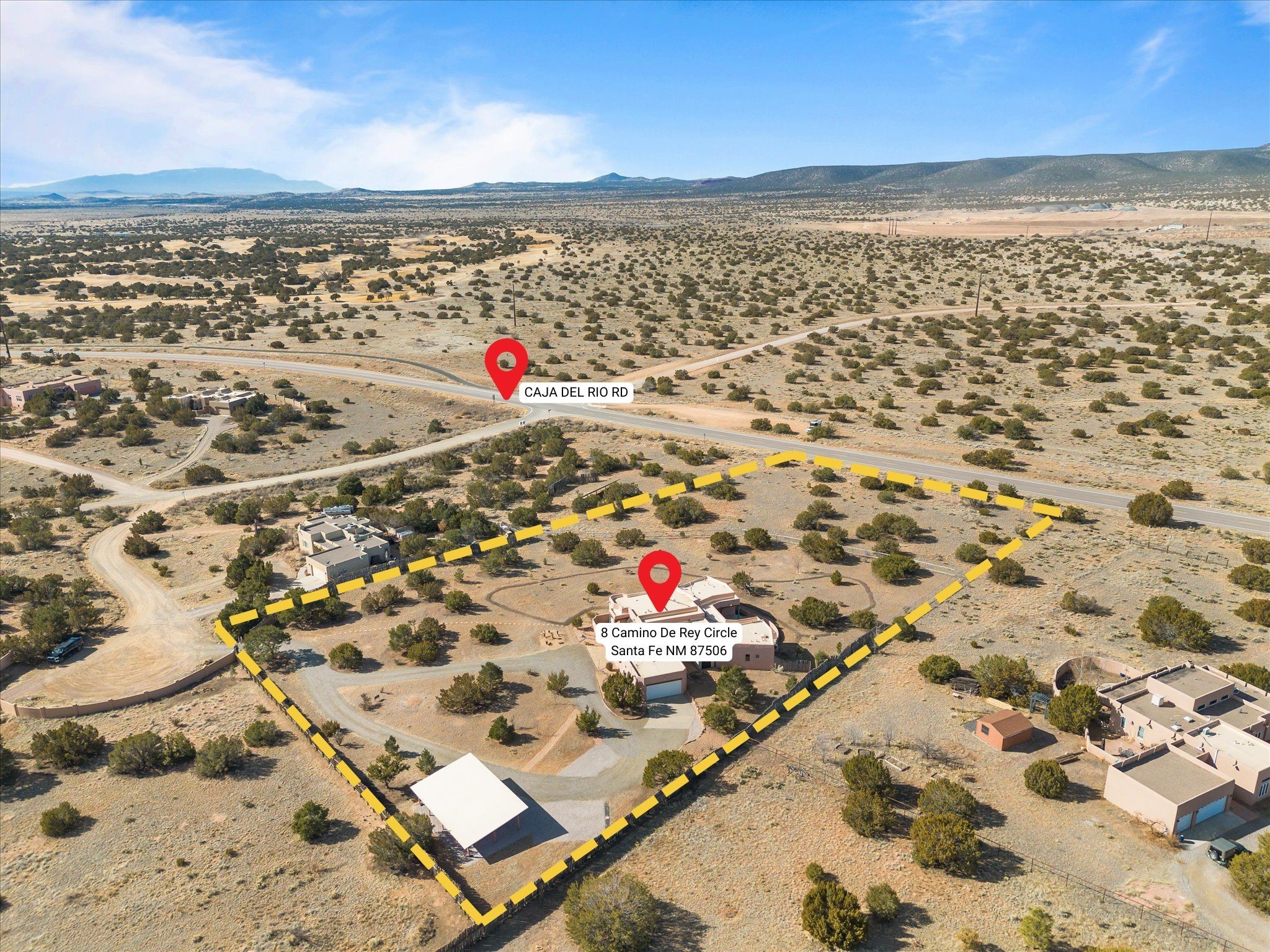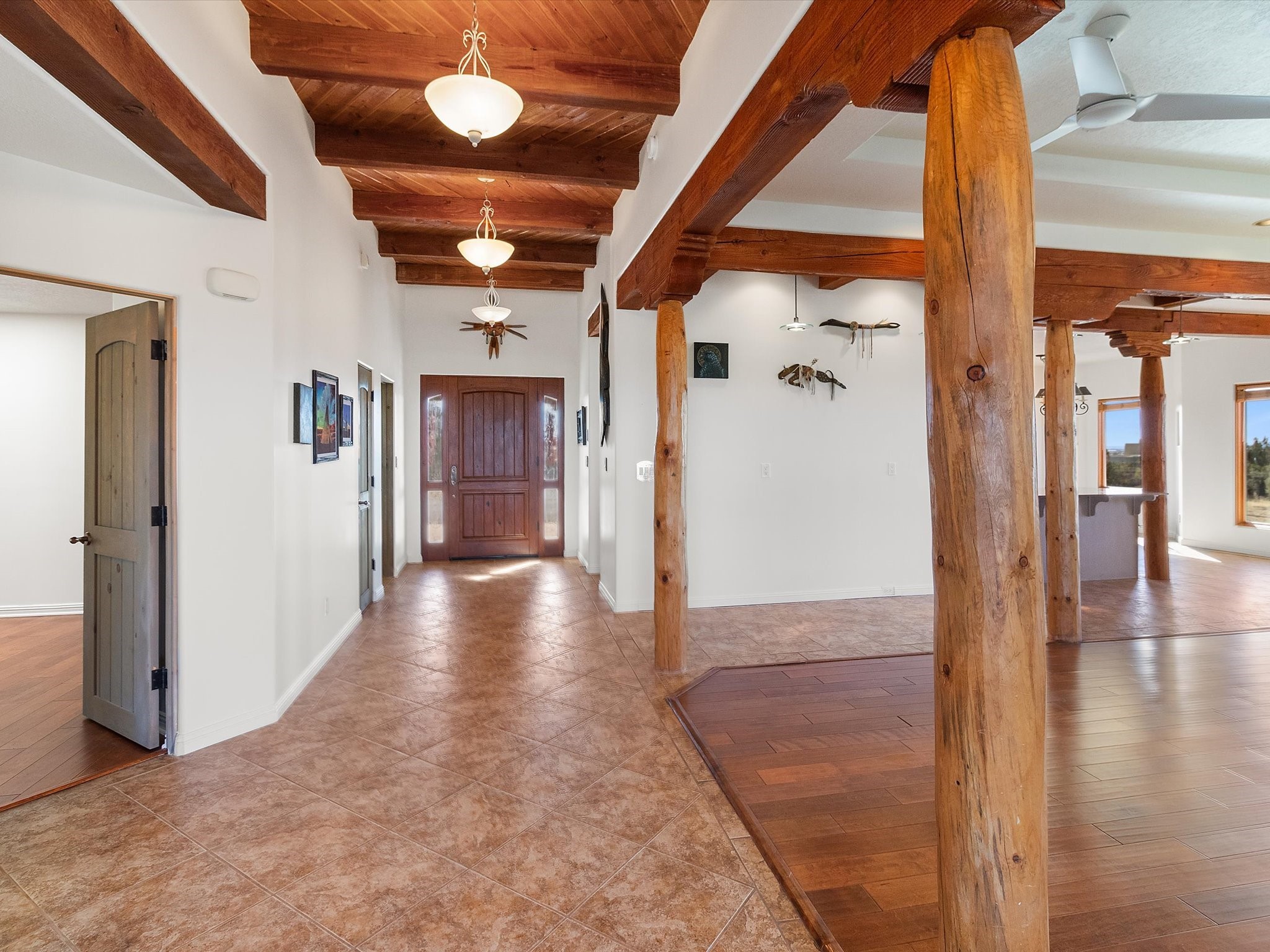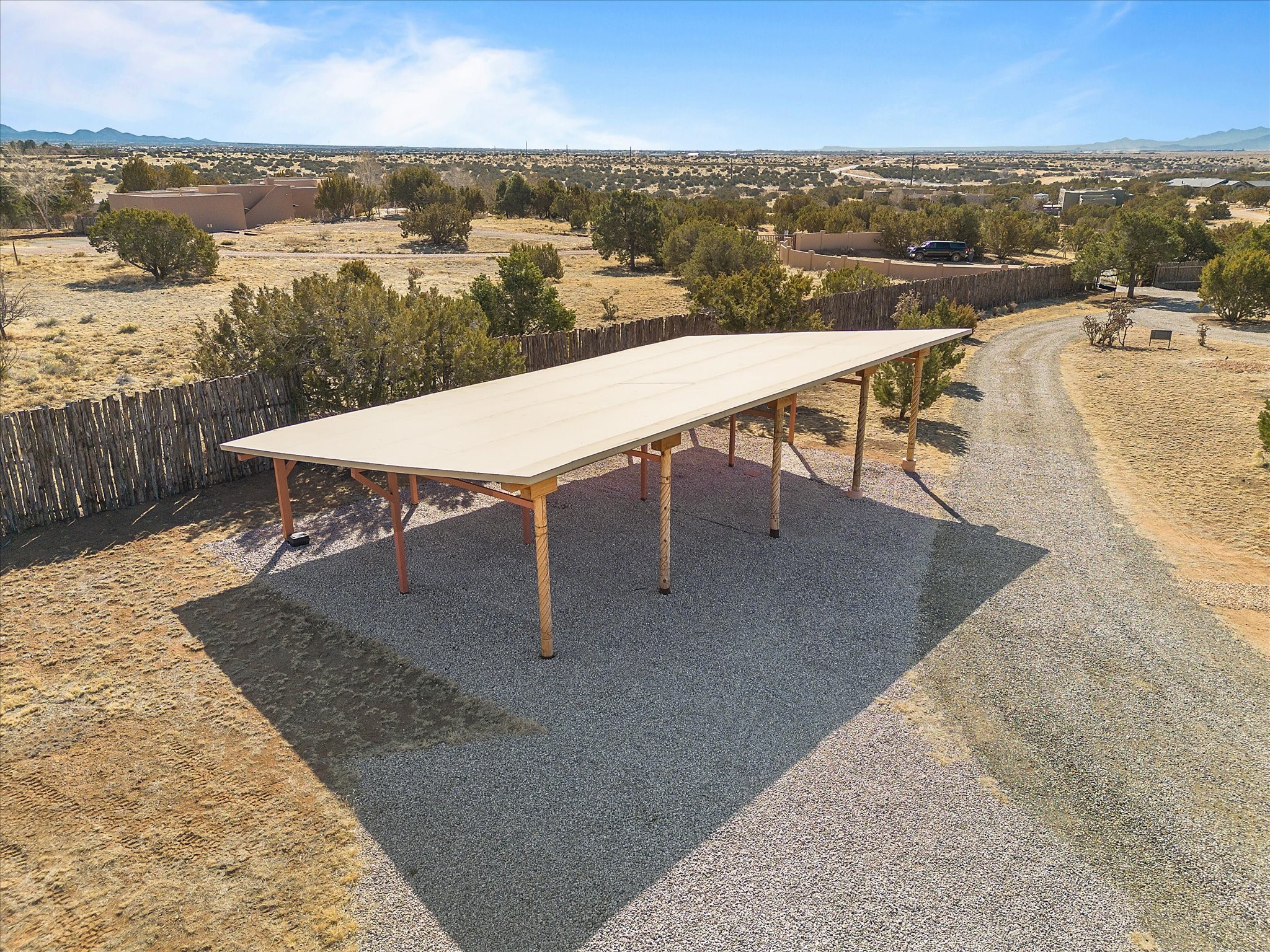 Captivating Pueblo-Style Retreat with Panoramic Views!Nestled on 2.35 acres, this lovely 3-bedroom pueblo-style home is thoughtfully designed to embrace Santa Fe's breathtaking landscapes. From the moment you step inside, the home draws you toward the inviting central patio--an ideal space for gatherings, relaxation, and savoring the vibrant hues of Santa Fe sunsets alongside the tranquil sounds of a water fountain.The high-ceilinged living room, complete with corner fireplace, creates a warm and welcoming atmosphere for entertaining. The kitchen is equipped with stainless steel appliances and has an elongated layout, leading to a charming informal dining area with large windows that perfectly frame the sweeping views of the Sandia, Ortiz, and Cerrillos mountains.The privately situated Primary suite offers a cozy gas fireplace, a spacious walk-in closet, and an En-suite bath featuring a soaking tub and separate shower. A second suite includes a comfortable sitting area with a picture window showcasing stunning views of the Jemez Mountains.Recent updates elevate this home's appeal, including a newer roof, a solar-powered entry gate, skylights, New appliances, mature landscaping with lighting, Automatic drip irrigation, fencing, Newer Boiler, Motordeck garage flooring, New garage door and motor, 220v plug for Electric car charger in the garage, intercom for front entry gate and additional 4 car covered parking. A true Santa Fe sanctuary, this residence blends timeless elegance with modern comforts for a life of beautiful vistas and tranquility.