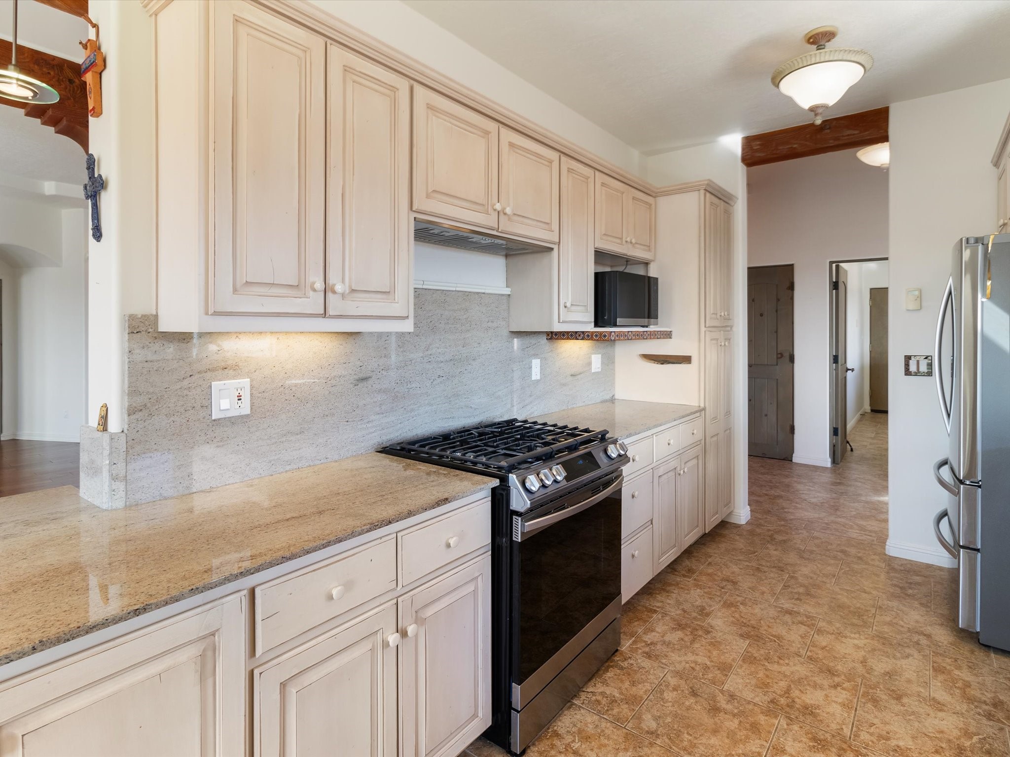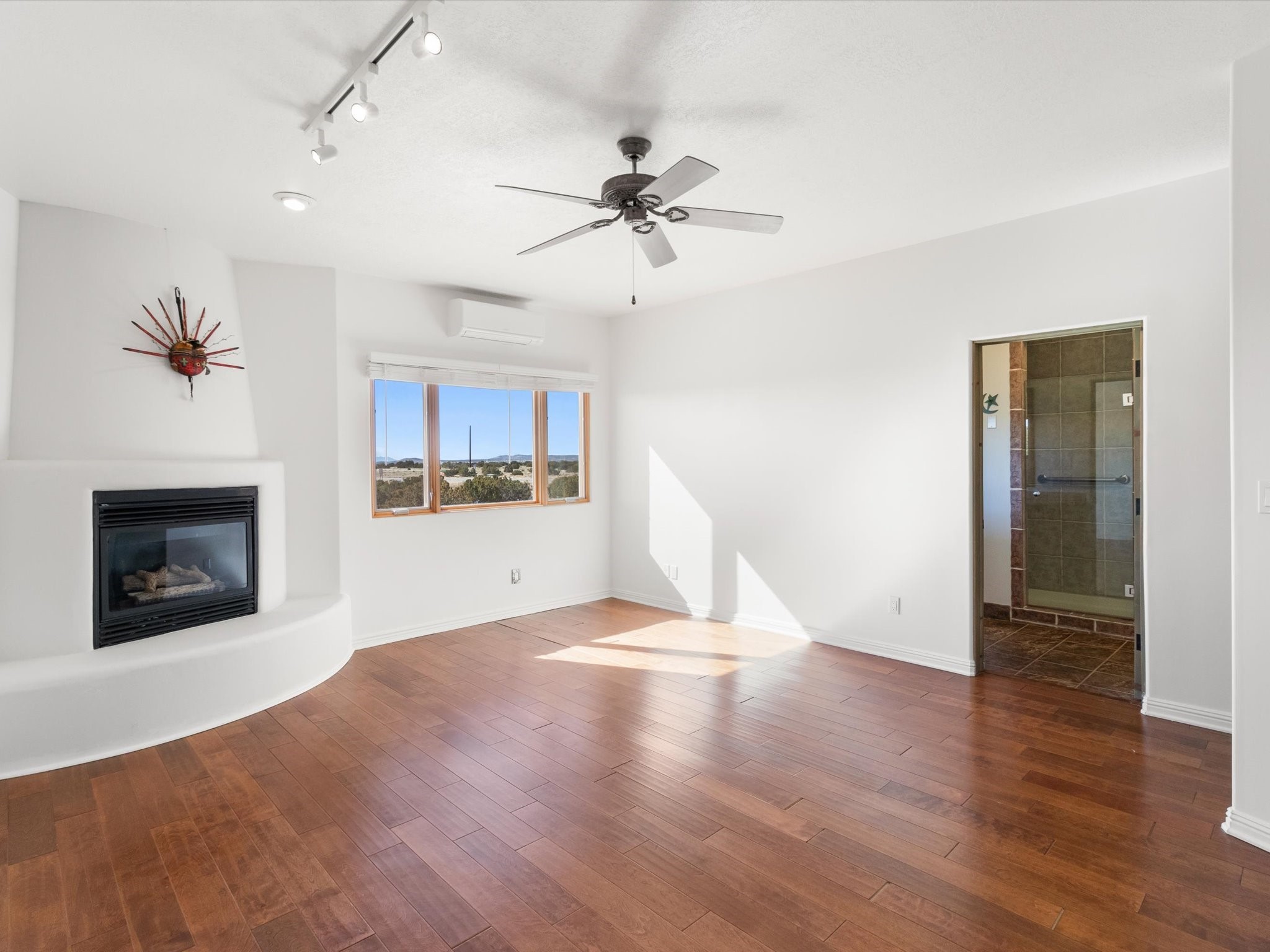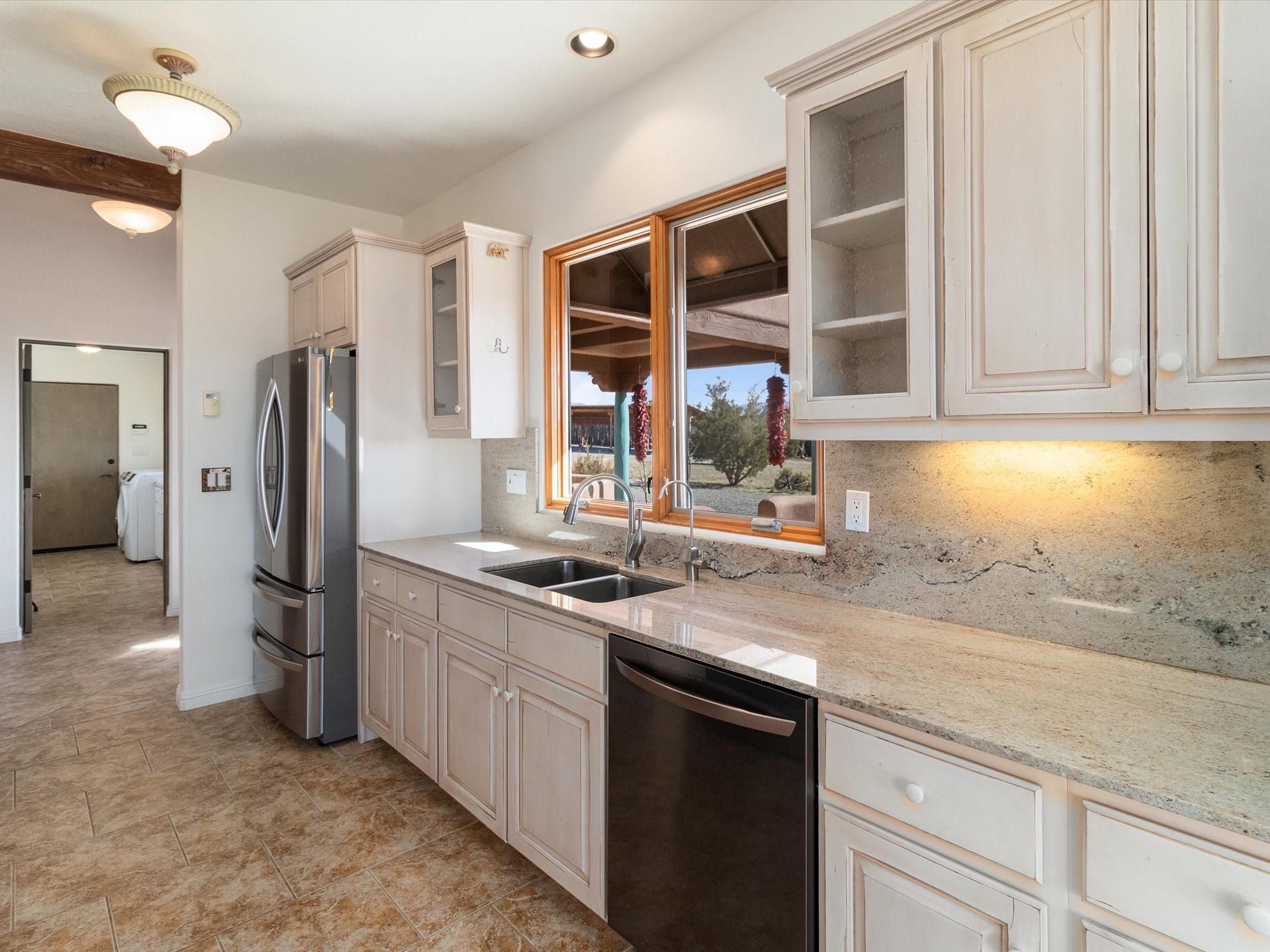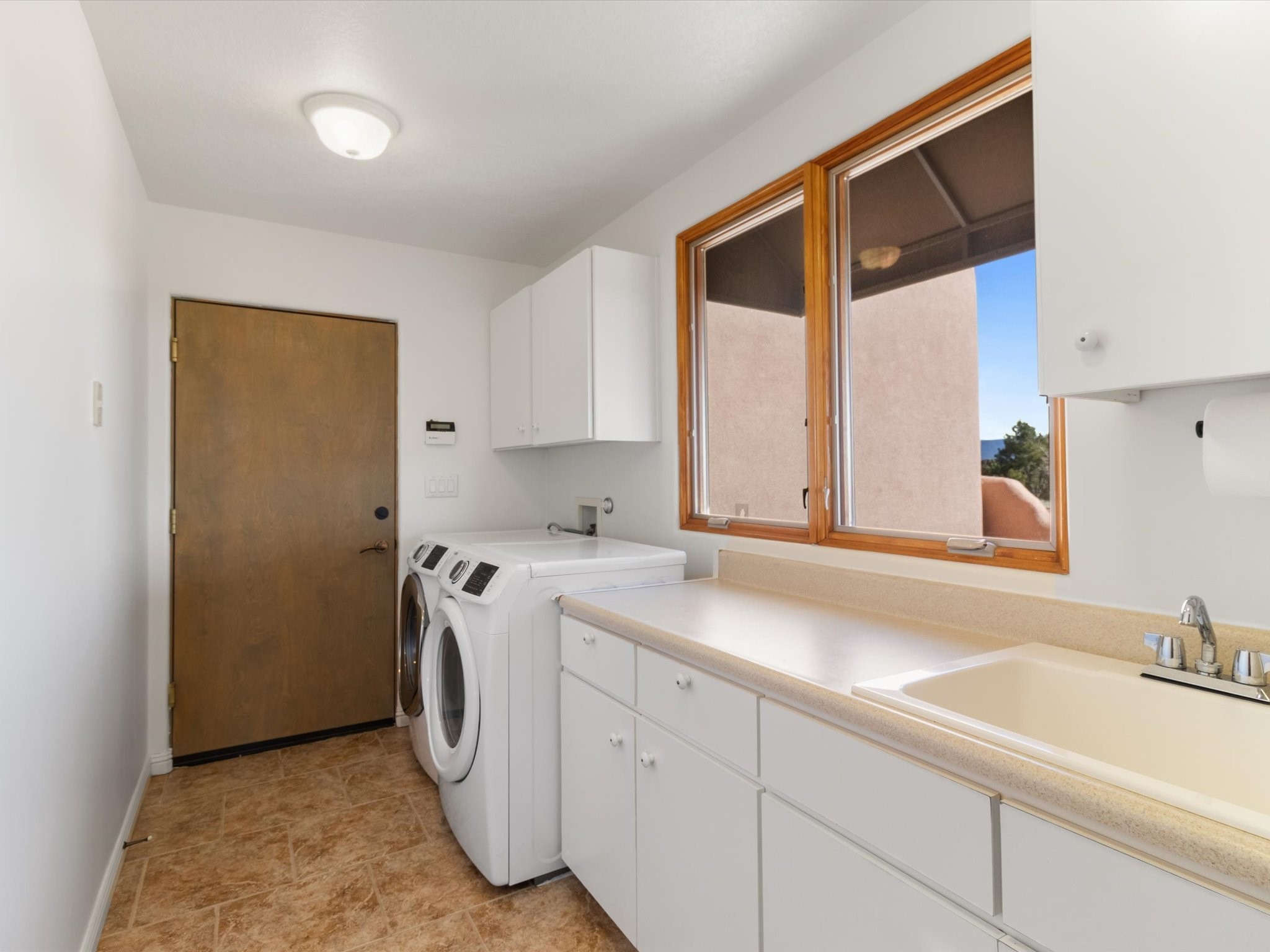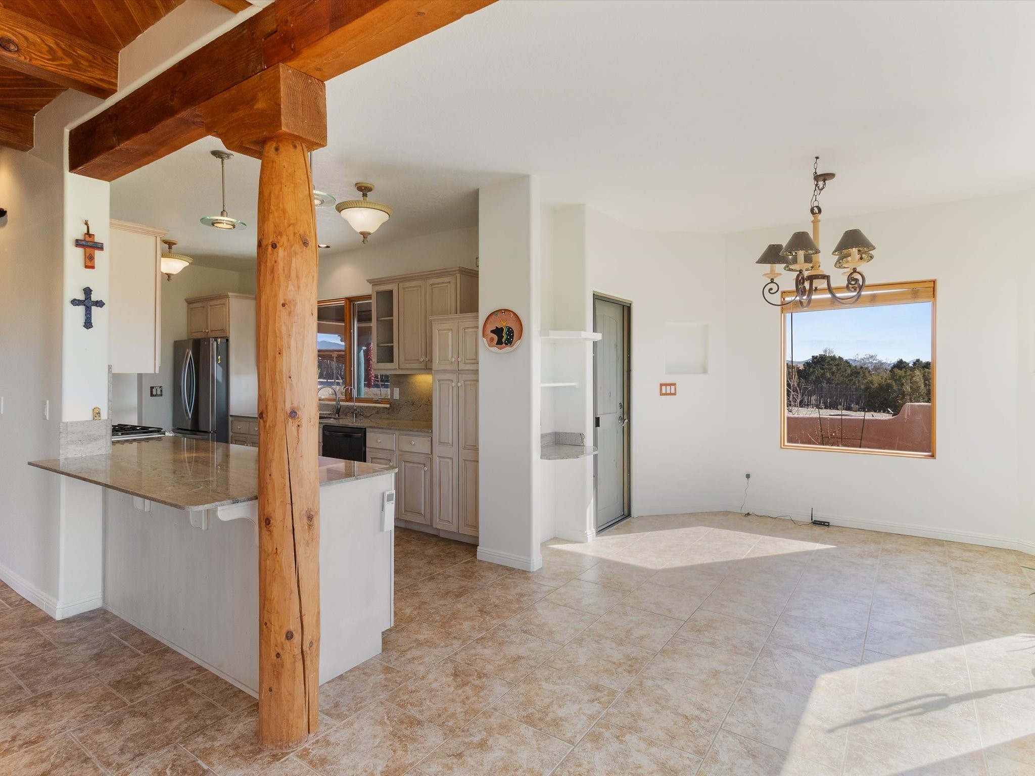 Captivating Pueblo-Style Retreat with Panoramic Views!Nestled on 2.35 acres, this lovely 3-bedroom pueblo-style home is thoughtfully designed to embrace Santa Fe's breathtaking landscapes. From the moment you step inside, the home draws you toward the inviting central patio--an ideal space for gatherings, relaxation, and savoring the vibrant hues of Santa Fe sunsets alongside the tranquil sounds of a water fountain.The high-ceilinged living room, complete with corner fireplace, creates a warm and welcoming atmosphere for entertaining. The kitchen is equipped with stainless steel appliances and has an elongated layout, leading to a charming informal dining area with large windows that perfectly frame the sweeping views of the Sandia, Ortiz, and Cerrillos mountains.The privately situated Primary suite offers a cozy gas fireplace, a spacious walk-in closet, and an En-suite bath featuring a soaking tub and separate shower. A second suite includes a comfortable sitting area with a picture window showcasing stunning views of the Jemez Mountains.Recent updates elevate this home's appeal, including a newer roof, a solar-powered entry gate, skylights, New appliances, mature landscaping with lighting, Automatic drip irrigation, fencing, Newer Boiler, Motordeck garage flooring, New garage door and motor, 220v plug for Electric car charger in the garage, intercom for front entry gate and additional 4 car covered parking. A true Santa Fe sanctuary, this residence blends timeless elegance with modern comforts for a life of beautiful vistas and tranquility.