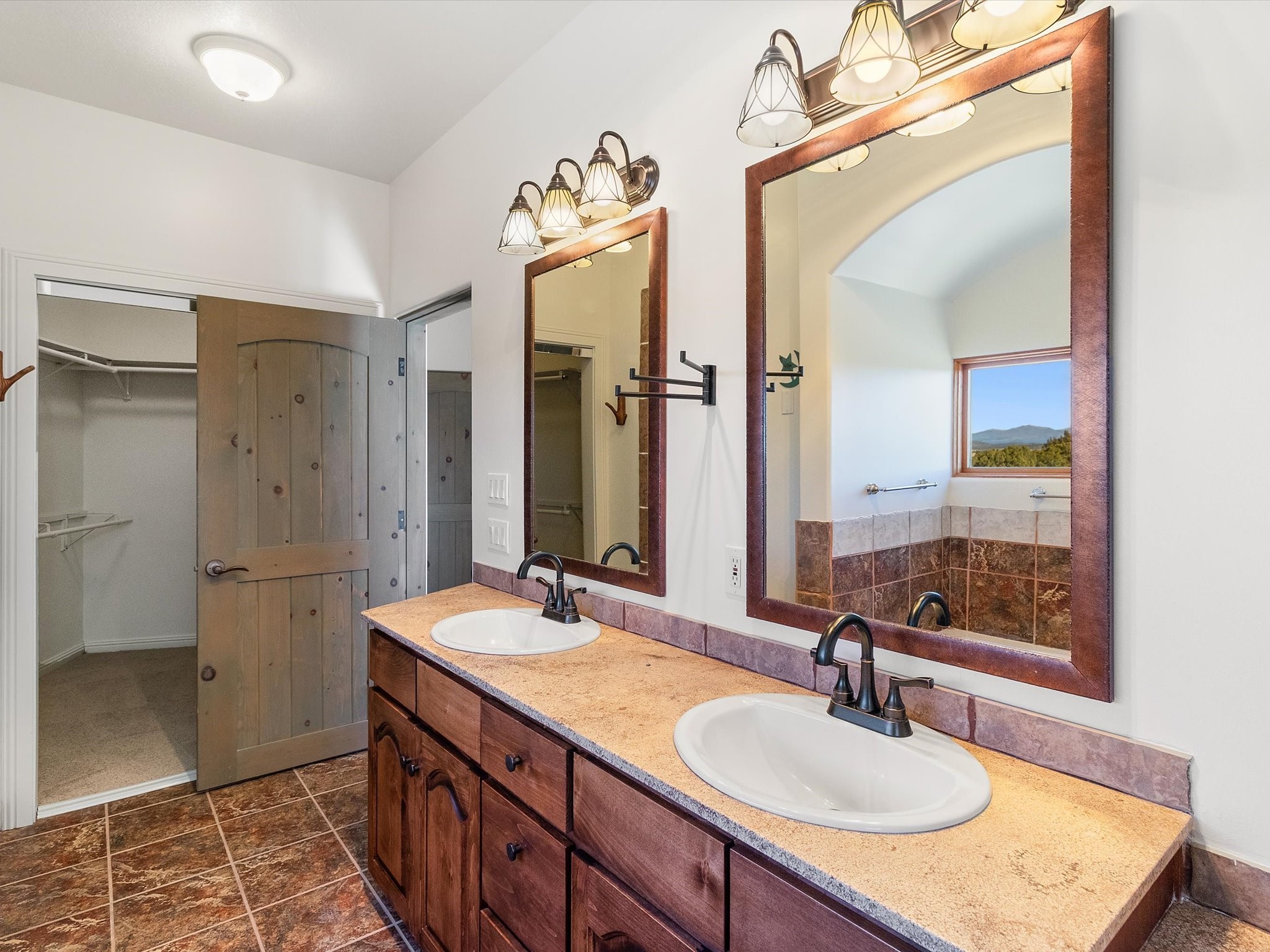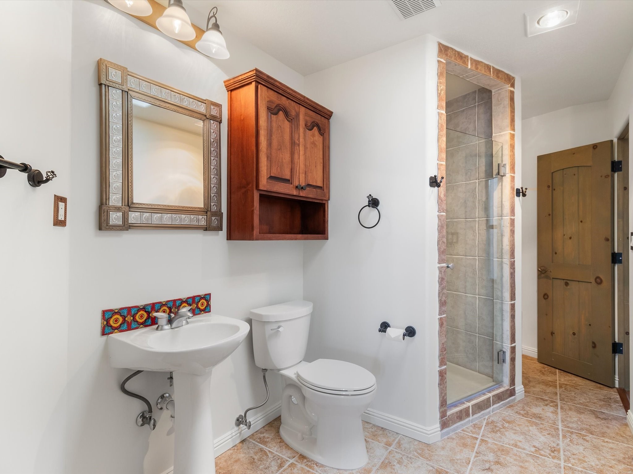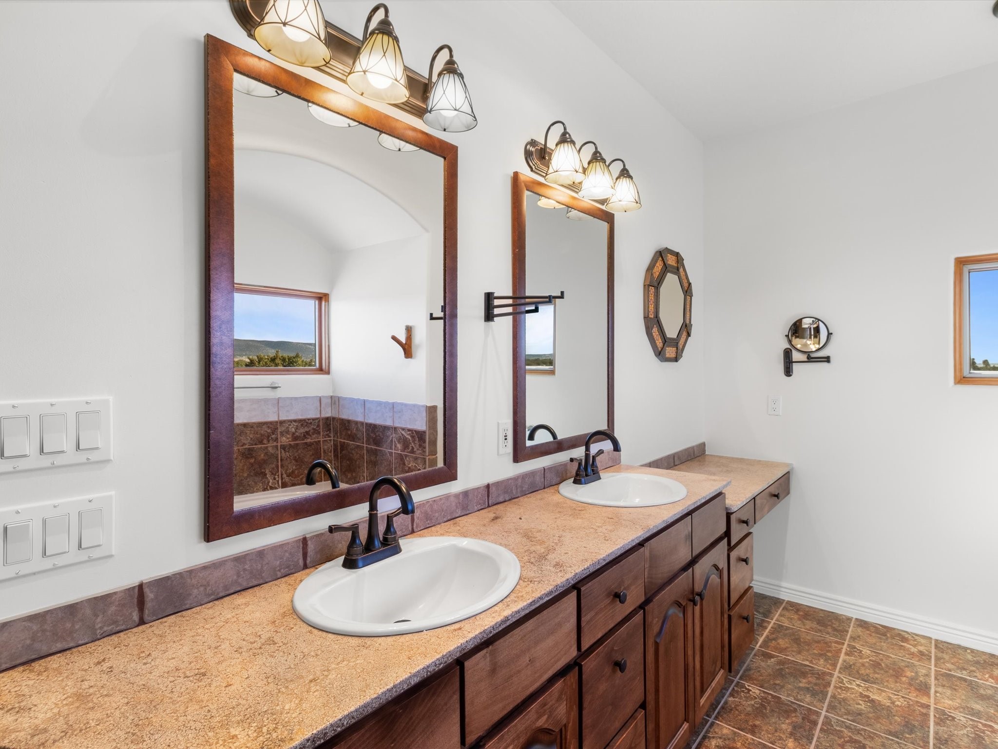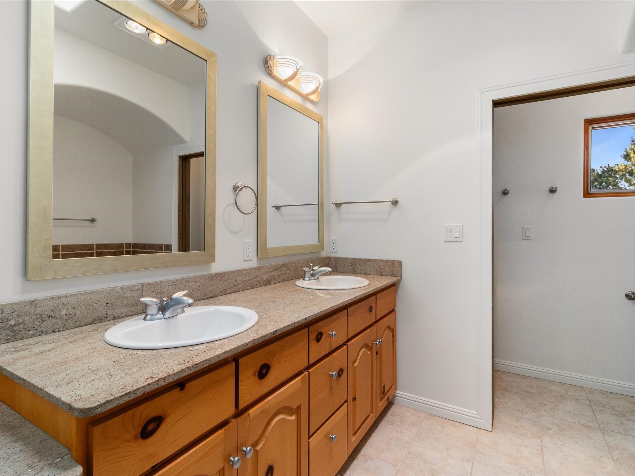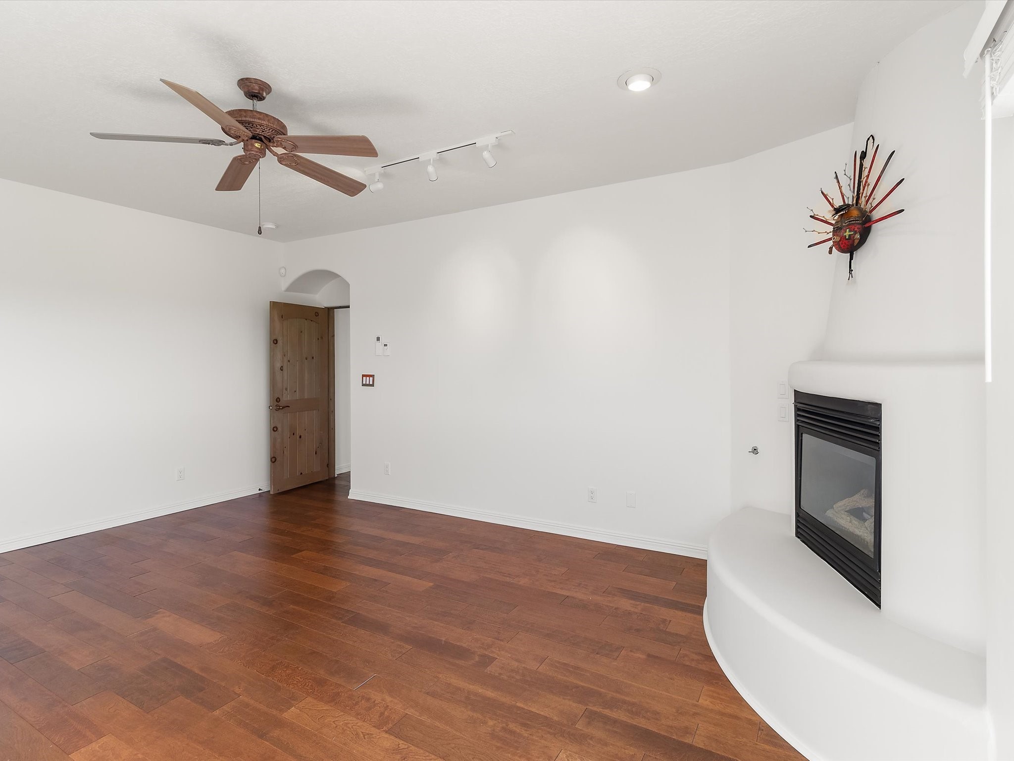 Captivating Pueblo-Style Retreat with Panoramic Views!Nestled on 2.35 acres, this lovely 3-bedroom pueblo-style home is thoughtfully designed to embrace Santa Fe's breathtaking landscapes. From the moment you step inside, the home draws you toward the inviting central patio--an ideal space for gatherings, relaxation, and savoring the vibrant hues of Santa Fe sunsets alongside the tranquil sounds of a water fountain.The high-ceilinged living room, complete with corner fireplace, creates a warm and welcoming atmosphere for entertaining. The kitchen is equipped with stainless steel appliances and has an elongated layout, leading to a charming informal dining area with large windows that perfectly frame the sweeping views of the Sandia, Ortiz, and Cerrillos mountains.The privately situated Primary suite offers a cozy gas fireplace, a spacious walk-in closet, and an En-suite bath featuring a soaking tub and separate shower. A second suite includes a comfortable sitting area with a picture window showcasing stunning views of the Jemez Mountains.Recent updates elevate this home's appeal, including a newer roof, a solar-powered entry gate, skylights, New appliances, mature landscaping with lighting, Automatic drip irrigation, fencing, Newer Boiler, Motordeck garage flooring, New garage door and motor, 220v plug for Electric car charger in the garage, intercom for front entry gate and additional 4 car covered parking. A true Santa Fe sanctuary, this residence blends timeless elegance with modern comforts for a life of beautiful vistas and tranquility.