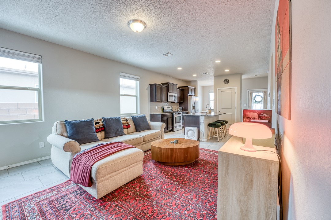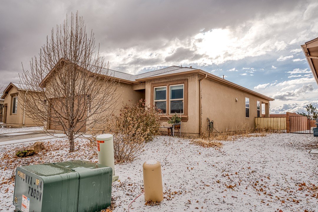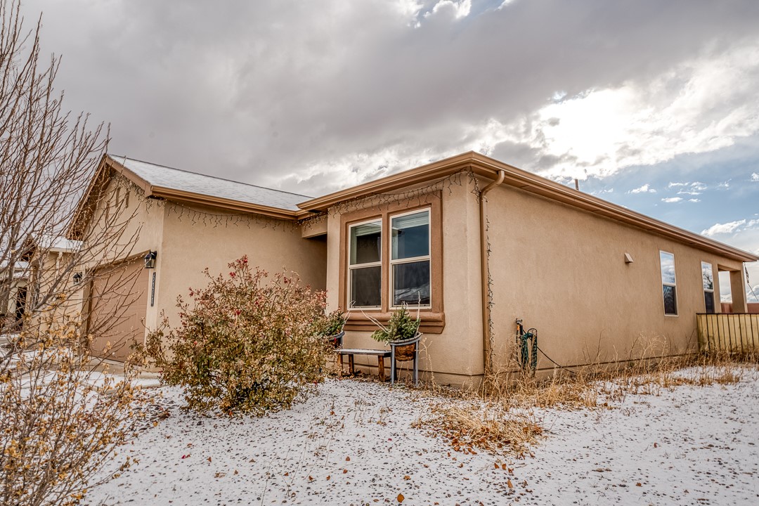 SOLAR on this Beauty, with an Open Floor Plan! Enjoy your meals with a wonderful view of the Sangre De Cristo mountains as this dining area is East facing. This newer build is well maintained and perfect for a family of up to four, or for the individual looking to upgrade their home. Come see this beautiful 3-bedroom, 2-bathroom, spacious yard, recently built in 2019 home in the wonderful Cielo Azul neighborhood.