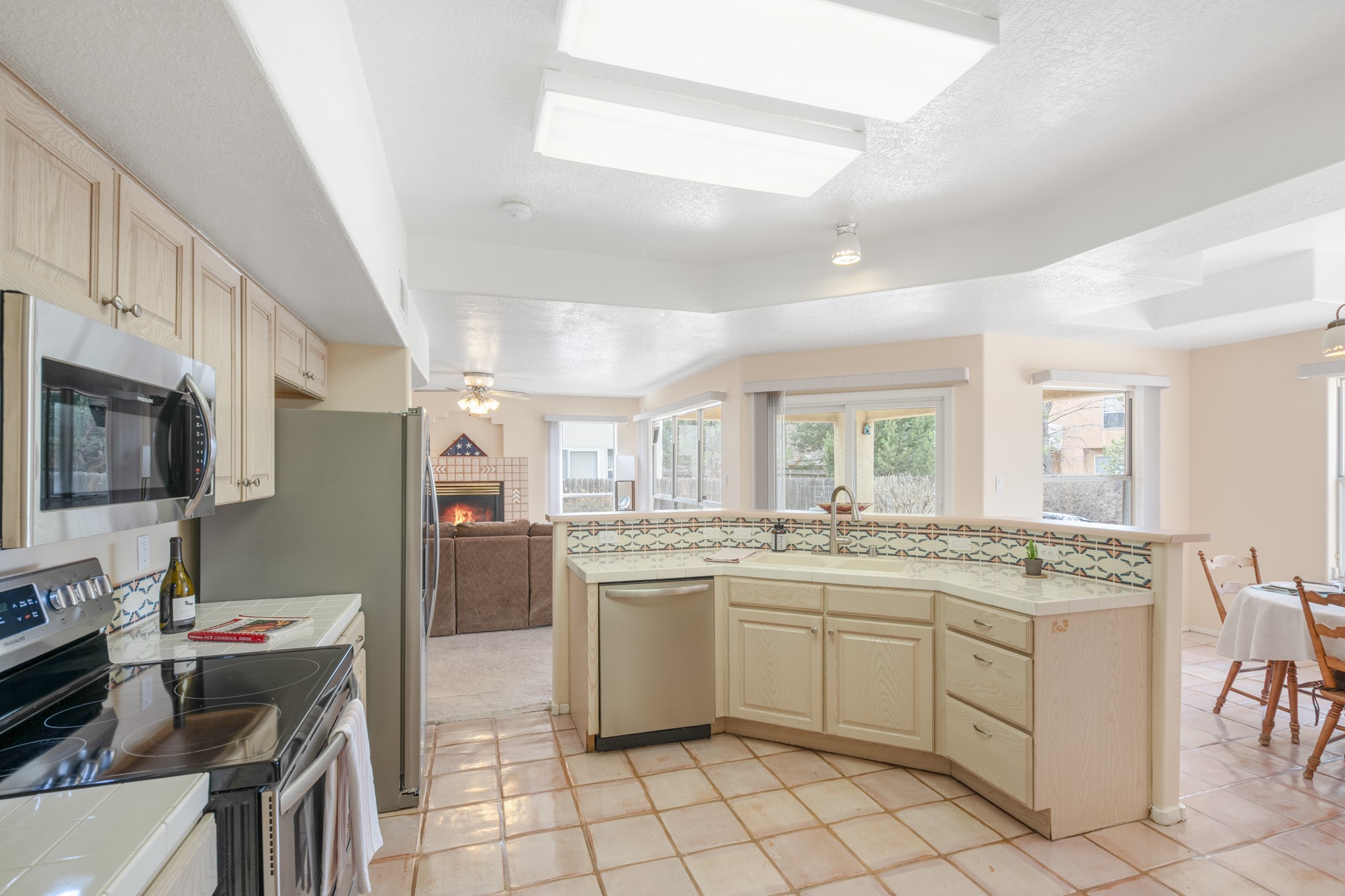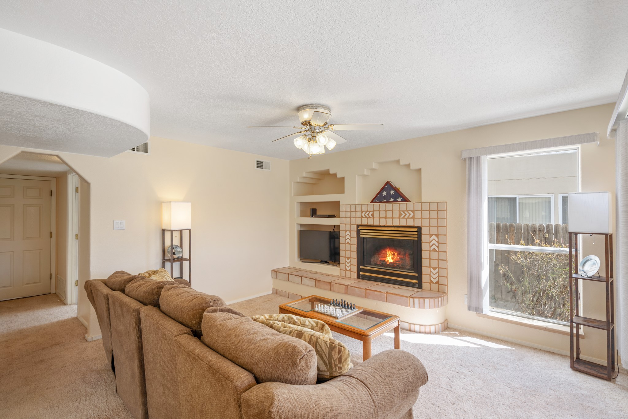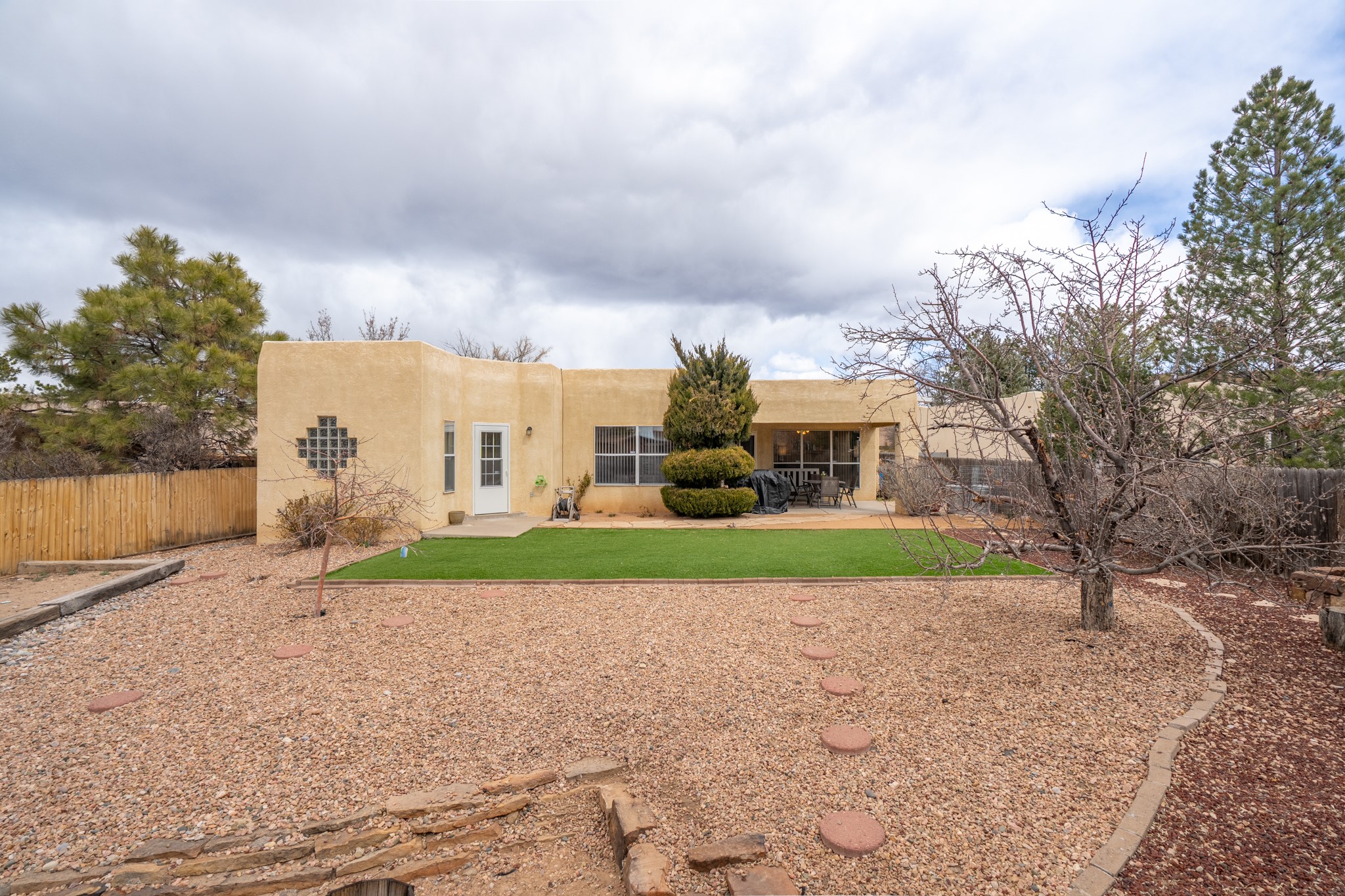 Tucked away in a peaceful cul-de-sac within a desirable gated community, this beautiful 3-bedroom, 2-bathroom home offers the perfect blend of comfort, tranquility, convenience, and modern living. Designed with an open floor plan and abundant natural light, this home feels bright and welcoming.The spacious kitchen is a standout feature, boasting newer appliances, ample counter space, and generous storage--ideal for cooking enthusiasts and entertainers alike. The airy living and dining areas flow seamlessly, creating a welcoming atmosphere for gatherings or quiet evenings at home.Step outside and enjoy the xeriscaped front and back yards, designed for low maintenance and water efficiency. The large backyard is a dream for pet owners, especially dogs, offering plenty of space to run and play. Established fruit trees bring natural beauty and seasonal harvests to your private outdoor retreat. Located in a family-friendly neighborhood, this home offers exclusive access to a private park, perfect for outdoor activities and community events. With easy access to NM 599, commuting and daily errands are a breeze.Additional features include a roof warranty for peace of mind, new dining and family room blinds, a new sliding glass door, a new evaporative cooling system, fresh interior paint, and stucco maintenance.Don't miss this rare opportunity to own a beautiful home in a serene, secure, and welcoming community!