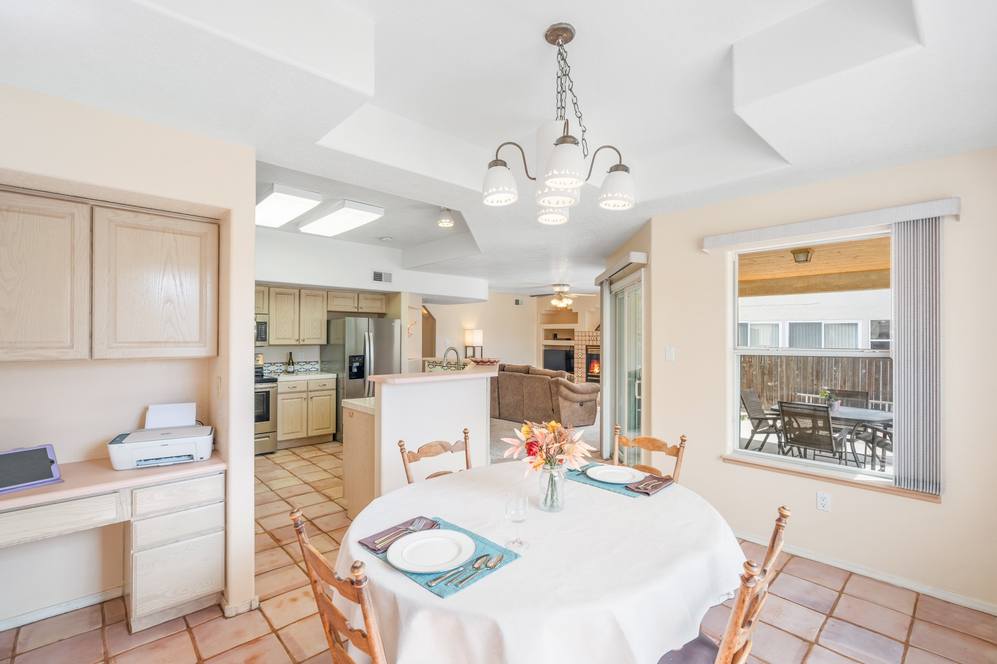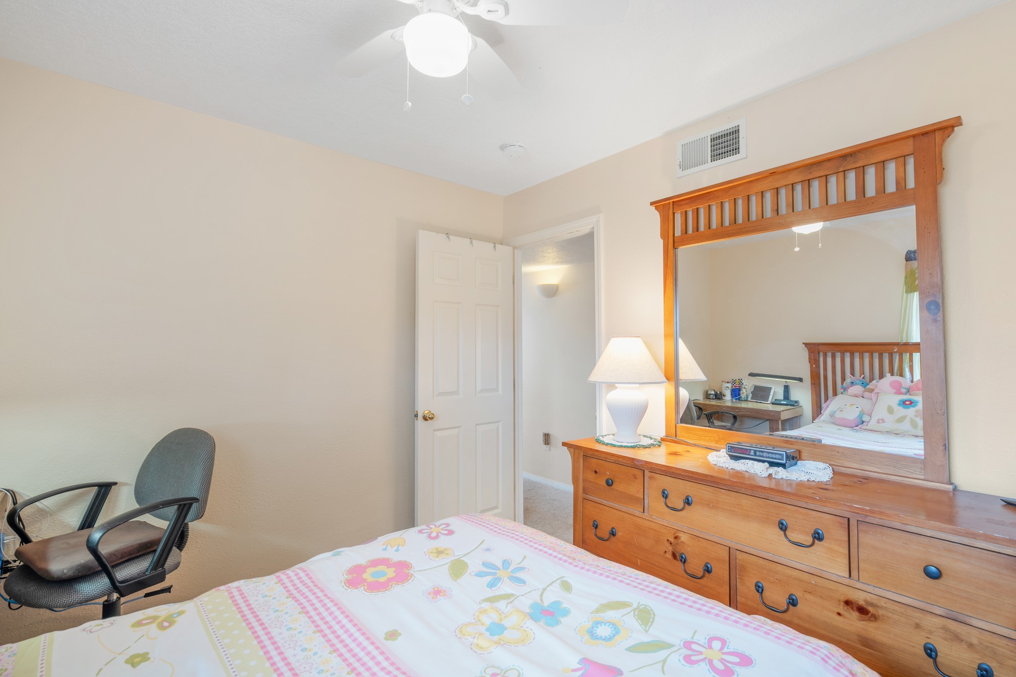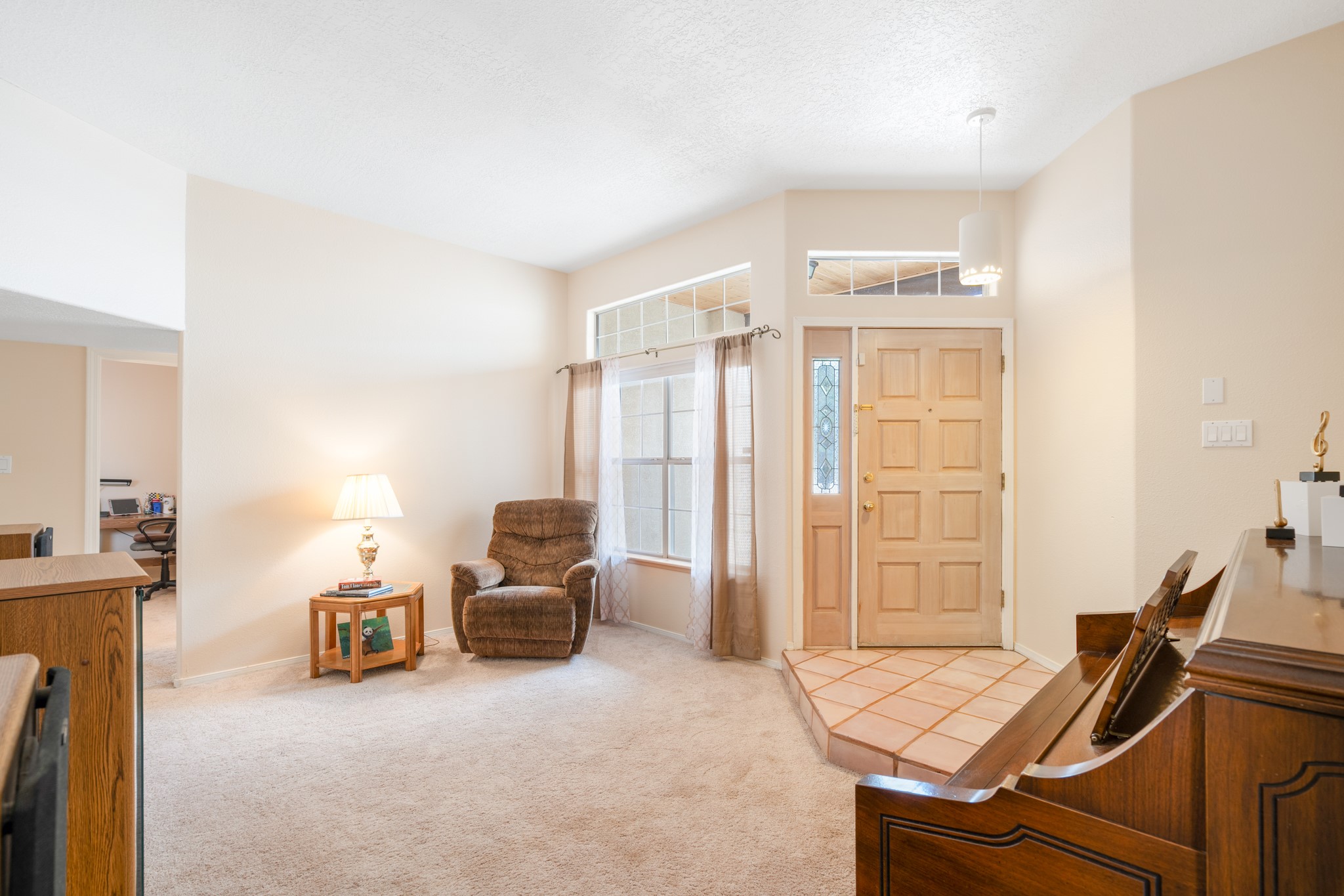 Tucked away in a peaceful cul-de-sac within a desirable gated community, this beautiful 3-bedroom, 2-bathroom home offers the perfect blend of comfort, tranquility, convenience, and modern living. Designed with an open floor plan and abundant natural light, this home feels bright and welcoming.The spacious kitchen is a standout feature, boasting newer appliances, ample counter space, and generous storage--ideal for cooking enthusiasts and entertainers alike. The airy living and dining areas flow seamlessly, creating a welcoming atmosphere for gatherings or quiet evenings at home.Step outside and enjoy the xeriscaped front and back yards, designed for low maintenance and water efficiency. The large backyard is a dream for pet owners, especially dogs, offering plenty of space to run and play. Established fruit trees bring natural beauty and seasonal harvests to your private outdoor retreat. Located in a family-friendly neighborhood, this home offers exclusive access to a private park, perfect for outdoor activities and community events. With easy access to NM 599, commuting and daily errands are a breeze.Additional features include a roof warranty for peace of mind, new dining and family room blinds, a new sliding glass door, a new evaporative cooling system, fresh interior paint, and stucco maintenance.Don't miss this rare opportunity to own a beautiful home in a serene, secure, and welcoming community!