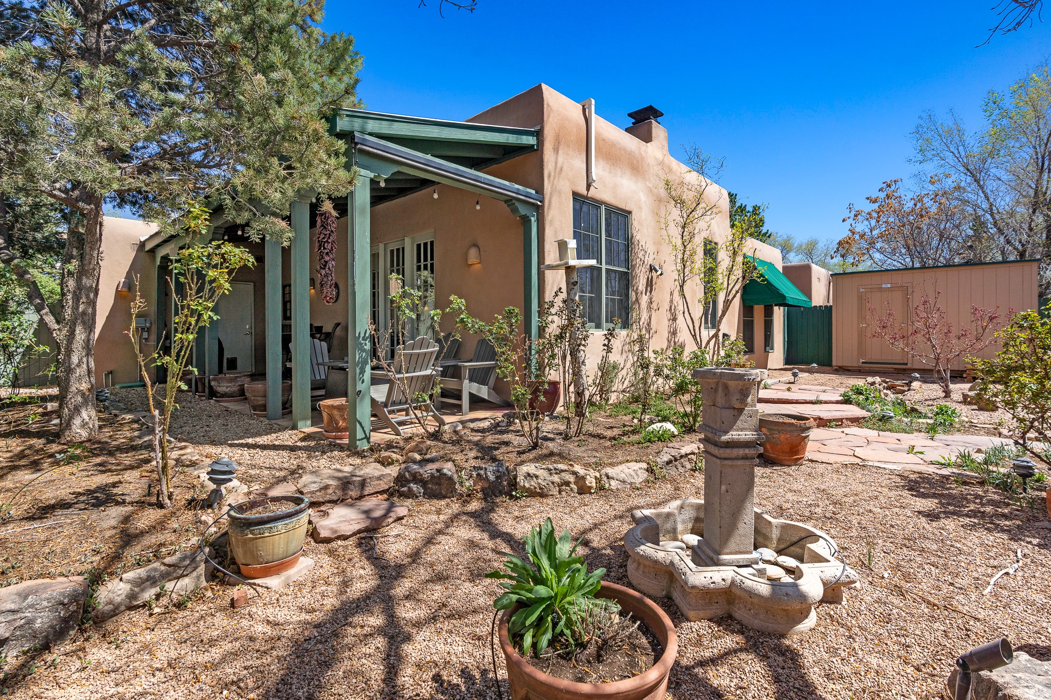 A must-see hidden gem! Tucked away on a peaceful cul-de-sac in the charming Cielo Vista neighborhood, this home blends comfort, style, and sustainability into a warm Southwestern retreat. Surrounded by lush landscaping and private gardens, this beautifully updated 2-bedroom, 2-bath home offers a serene escape just minutes from Santa Fe's historic Plaza, Canyon Road, and the Opera.Inside, you'll find a chef's kitchen with high-end Bosch appliances, custom cabinetry, and a spacious butler's pantry complete with a wet bar, second oven, and full-size fridge--perfect for hosting. The great room features soaring ceilings with exposed vigas, Saltillo tile floors, skylights, and a cozy Kiva fireplace. Both bedrooms are generously sized, including a primary suite with a walk-in closet and en-suite bath. French doors open to a covered patio overlooking a vibrant backyard oasis with a tranquil fountain, bird feeders, and private gate access to a neighborhood park with walking trails, a basketball court, and a community garden.Even better--Casa Carmilita is solar-powered, meaning no electric bill and a greener way to live. Additional features include radiant heat throughout, a brand-new boiler, a full laundry room, off-street parking, and a one-car garage.Casa Carmilita is more than a home--it's your gateway to the Santa Fe lifestyle. Come see it for yourself.