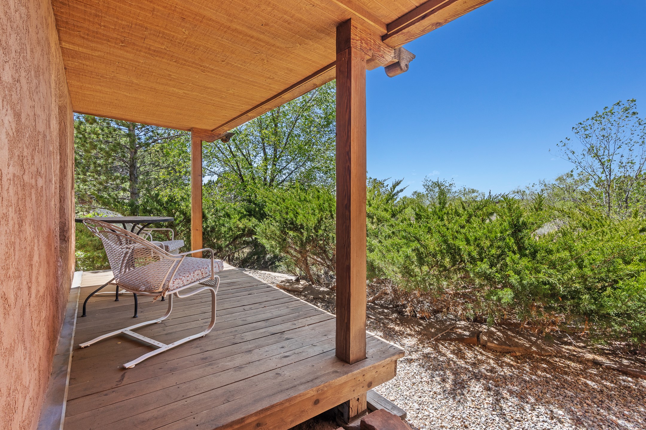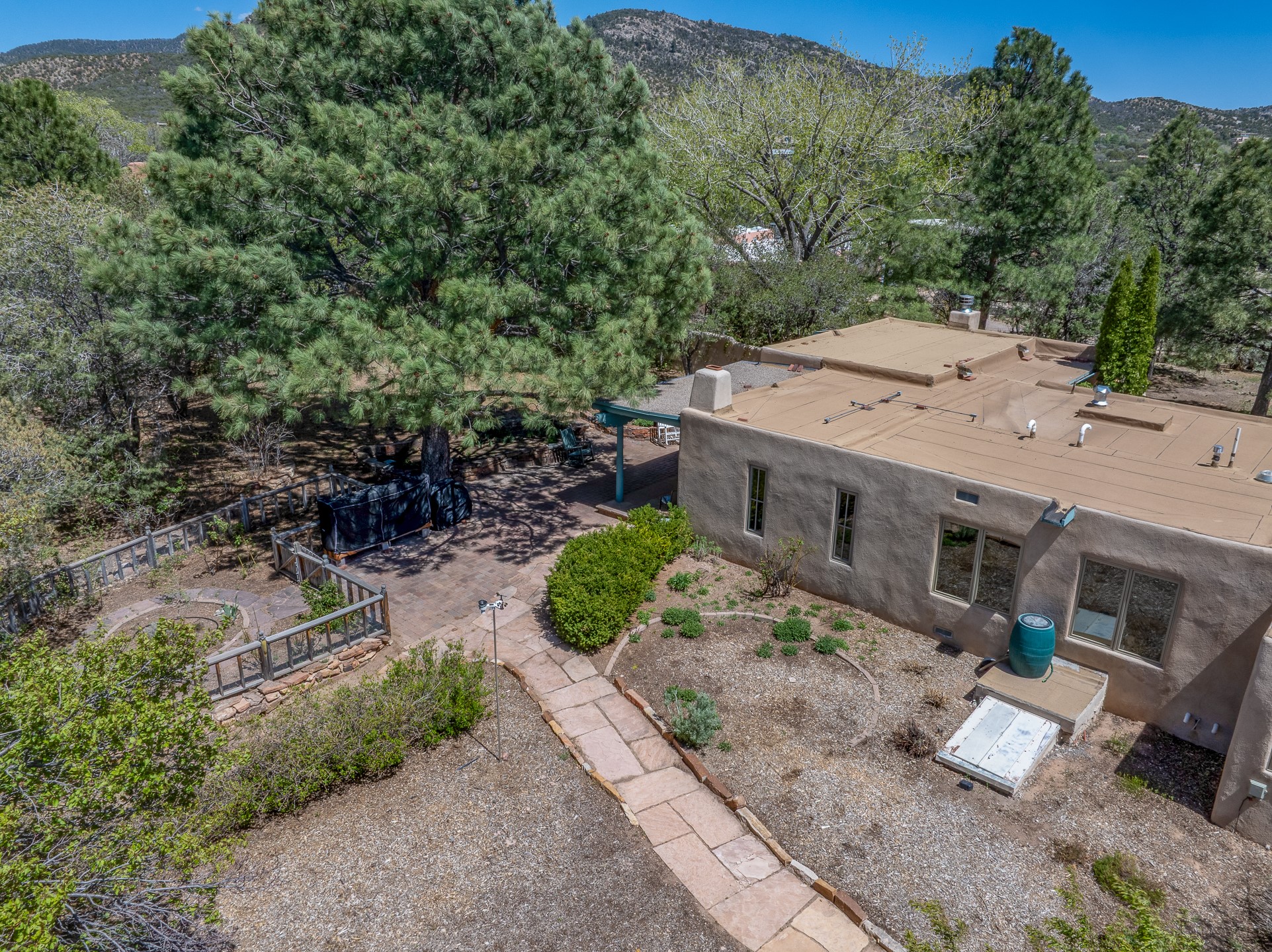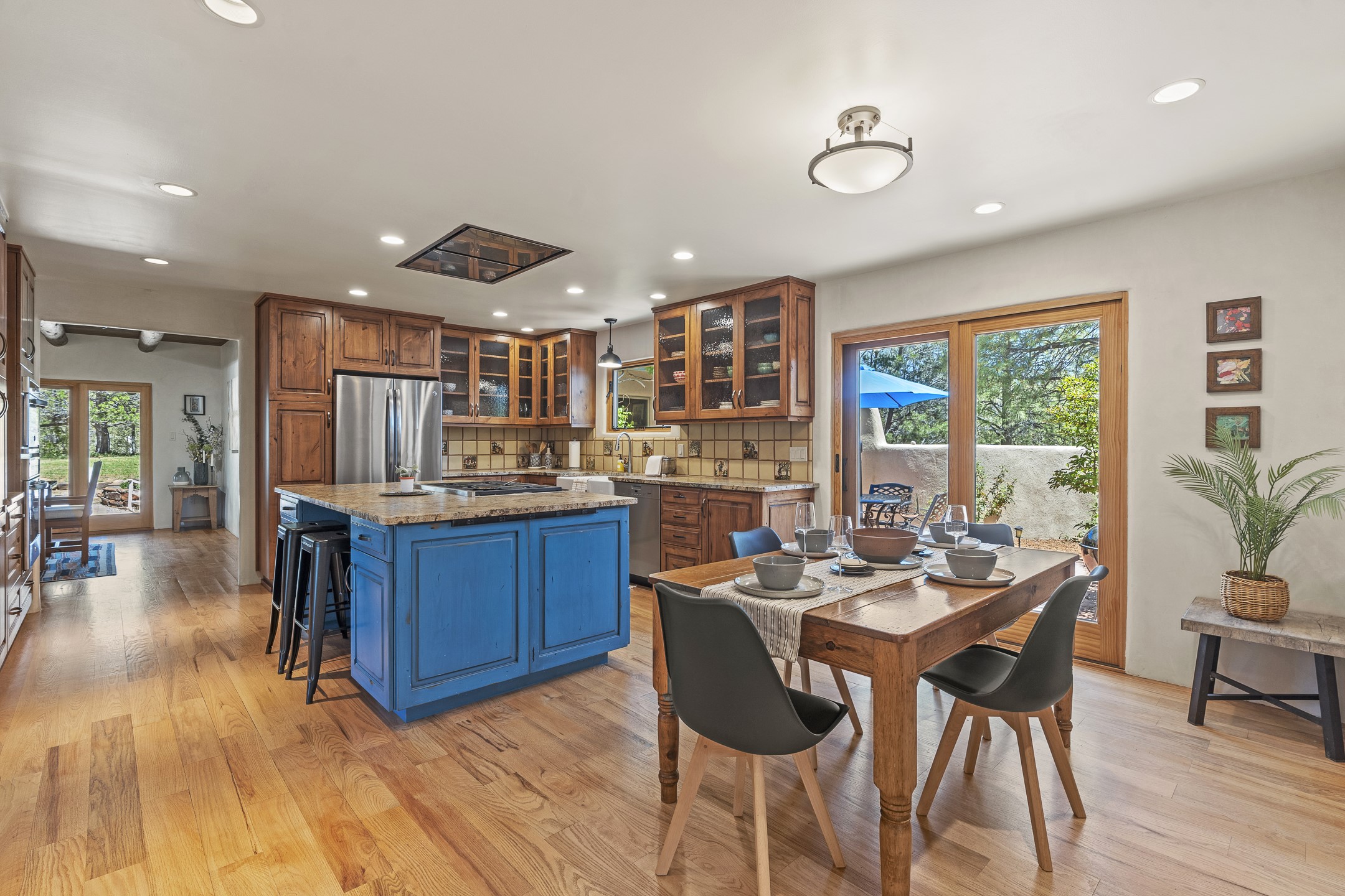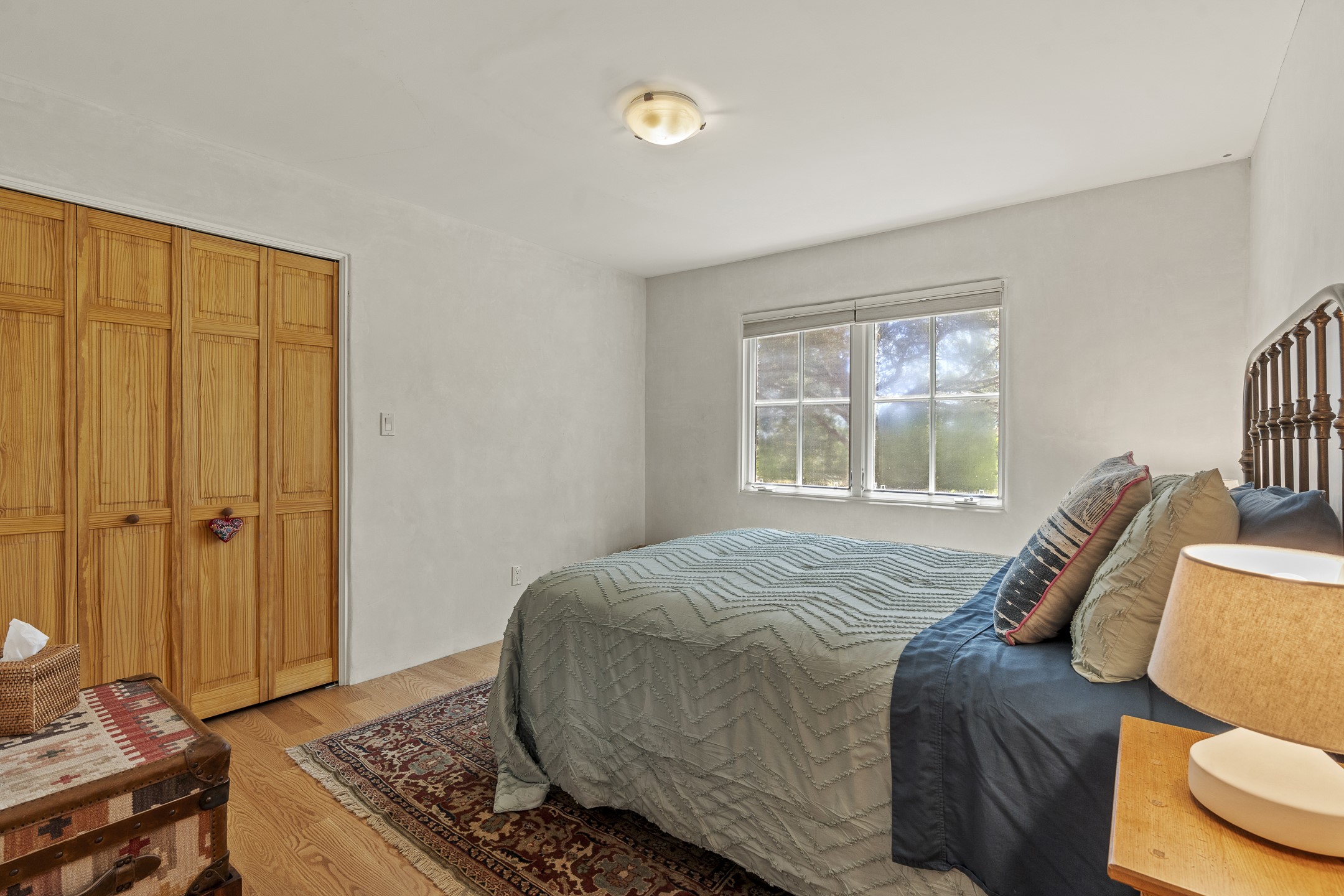 Beautifully renovated and reimagined in 2017, this exceptional property offers a main residence with 3 bedrooms and 2.5 baths, a detached 1-bedroom/1-bath casita with a full kitchen and 3/4 bath, and a versatile studio/gym. Behind a private walled courtyard, the home welcomes you with warmth and charm. Inside, the elegant living room features a stone fireplace and tall ceilings with wooden beams, and the inviting dining room continues with a classic Kiva and French sliding doors opening to a covered portal and expansive .6 acre lot. A bright and open secondary living area sits just off the kitchen, creating a connected flow for everyday living and entertaining. The kitchen was reimagined for both form and function, featuring warm-toned cabinetry, granite countertops, expanded storage, and a six-burner Wolf range. Past the kitchen, a fews stops down lead to the laundry room with direct access to the 2 car garage, and a central hallway leads to the private bedroom wing. The primary suite offers a tranquil retreat, complete with a deep soaking tub, dual vanities, and a generous walk-in closet. Additional improvements include smooth plaster walls, a reconfigured guest and powder bath, upgraded electrical panel, windows, roof, furnace, and beautifully refinished wood floors. Mini-split systems have been added to the guesthouse and studio for year-round comfort and the drip irrigation has a brand new controller.Located in a coveted residential neighborhood with a rare in-town private well, this singular property backs to the scenic Arroyo Chamiso and offers direct access to the Dale Ball Trails near St. John's College. The Casita and studio provide elevated flexibility, whether as a home office, creative retreat, guest/ family quarters or income-producing rental.Set within the sought-after Wood Gormley School District and just minutes from downtown, this is a rare blend of charm, versatility, and design.