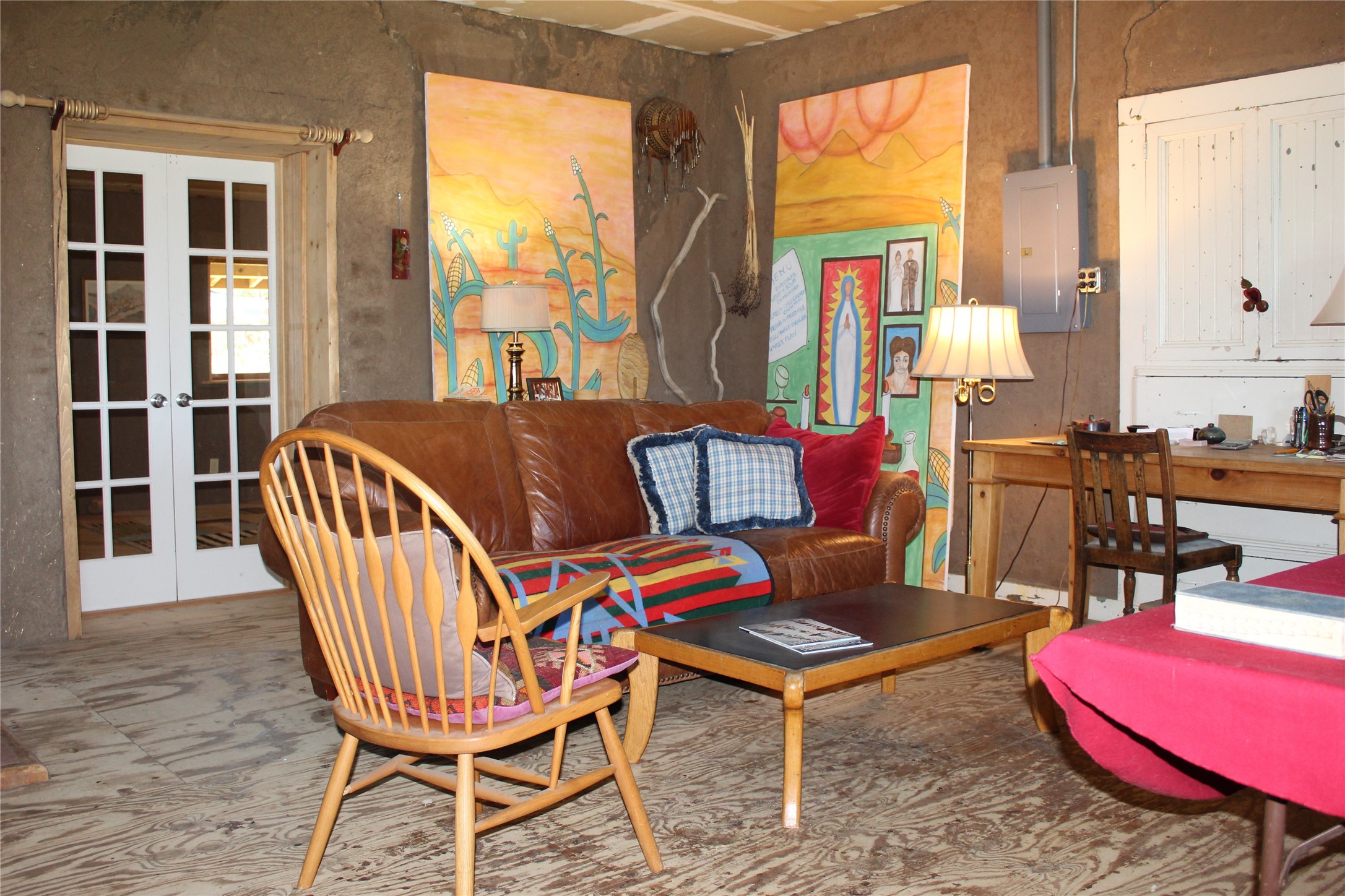 This is a fantastic opportunity to own a piece of historic northern New Mexico, in historic Tierra Amarilla. This two-story traditional style adobe home with tin roof was built in 1881 and is known as the Garcia House. Graced with fruit trees and lilacs in the yard, it has portals along the front and back of the house. The downstairs is 2100sf and has been added onto to make it L-shaped, with the downstairs renovated by the owners and a previous owner. There is a full second story (2100 more sf!) which would provide a lot of extra living space if renovated (it was originally five separate rooms). The original interior adobe walls and wood floors are still in most of the house. Some of the recent renovations include new windows on the back of the house and wood replaced on the back portal; new Rheem tankless hot water heater; new heating unit in one bedroom; new roof on the back addition; and work on the electrical system. There is a wooden building in the back yard that could be a storage shed or a small studio or workshop. The property is zoned both commercial and residential. The current owners have a room which was used as a theater, gallery and performance space. Don't miss this opportunity to live in a historic adobe house and continue to develop it into the beauty that it will be!