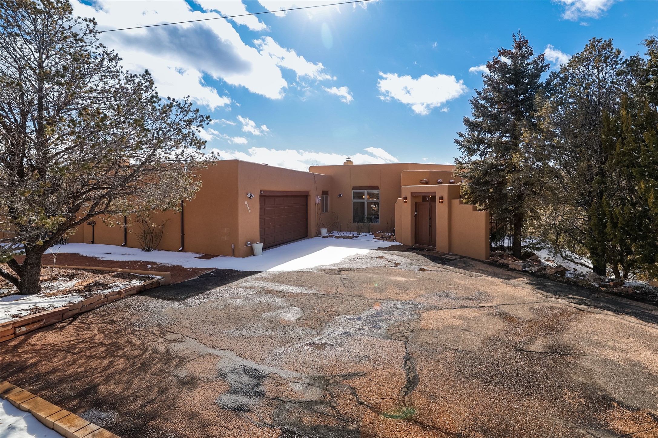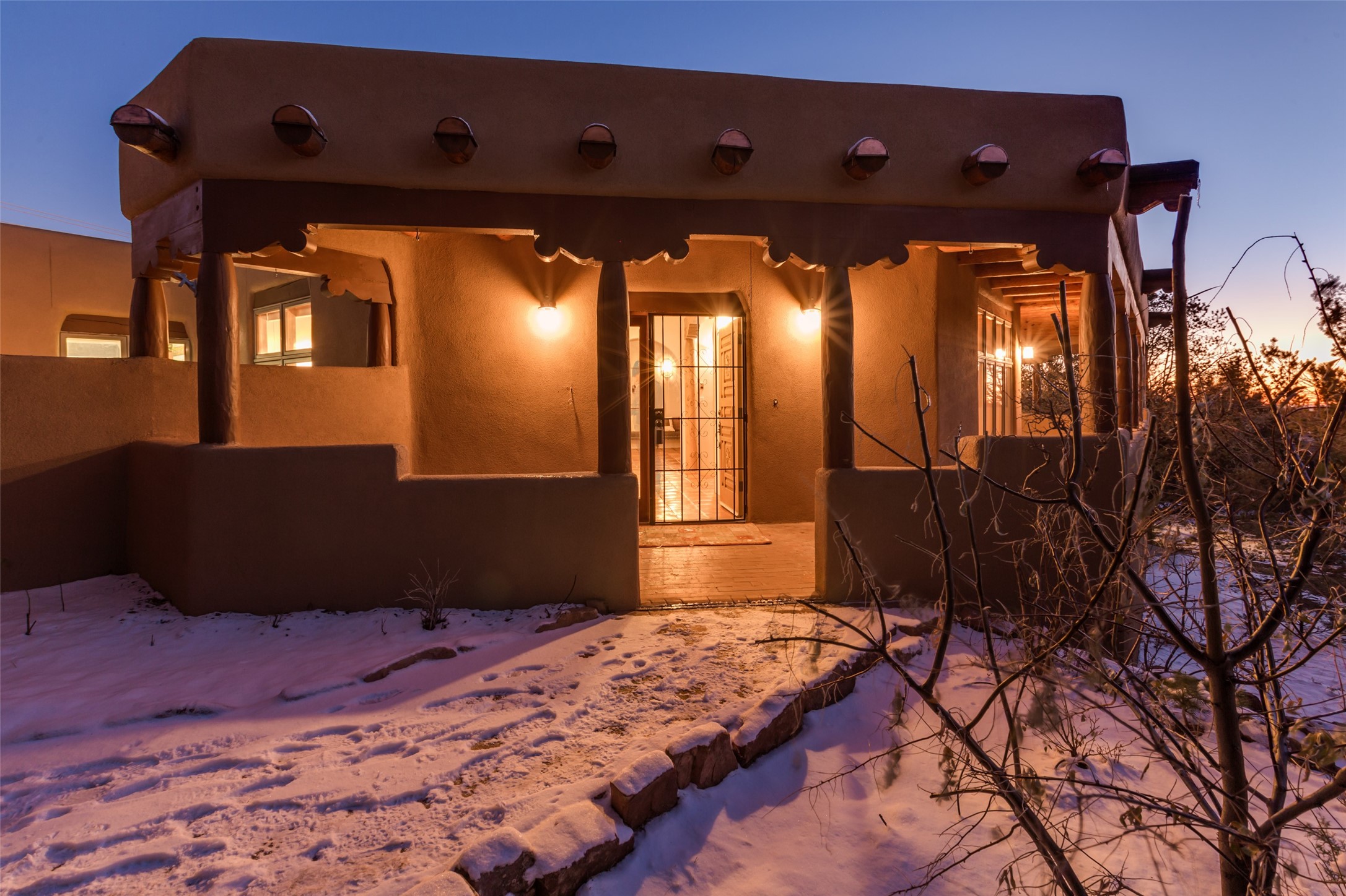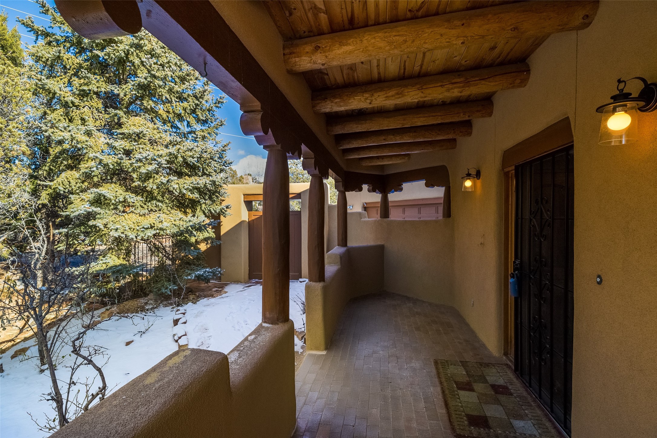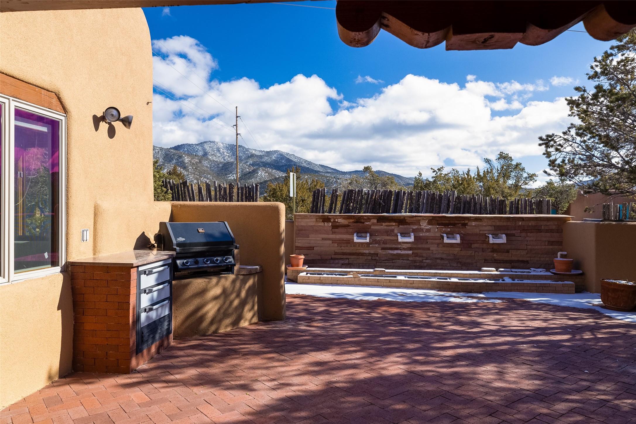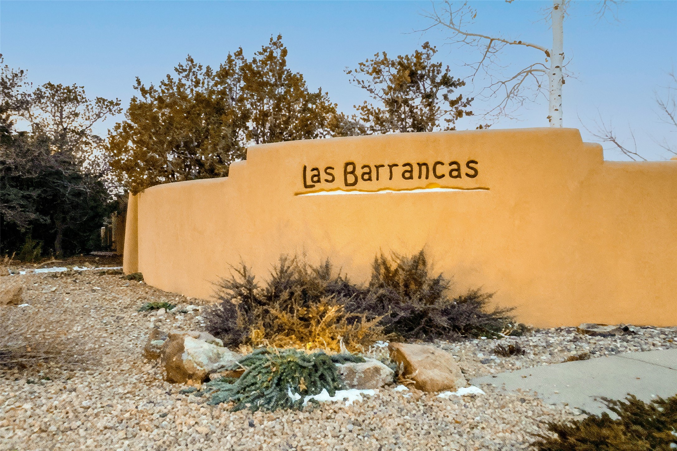 Discover your dream home in Santa Fe, nestled in the highly sought-after Las Barrancas neighborhood, just 2 miles from downtown Santa Fe. Enjoy easy access to renowned art galleries, fantastic dining, scenic hiking trails, and the famous Ten Thousand Waves Spa and restaurant! This custom-designed home features beautiful Santa Fe-style finishes, seamlessly blending comfort and elegance. The open floor plan is bathed in natural light and opens up to a wraparound portal, accessible from the main living areas. With 3 bedrooms, 2 bathrooms, 2 kiva fireplaces, and a versatile flex room that opens to the patio, this home is ideal for use as an office or studio. The spacious kitchen includes a cozy breakfast nook and desk area, with direct access to the covered portal for effortless outdoor entertaining. A double-car garage with potential for expansion and a gated front entry offer added convenience and security, making this the perfect "lock-and-leave" property.