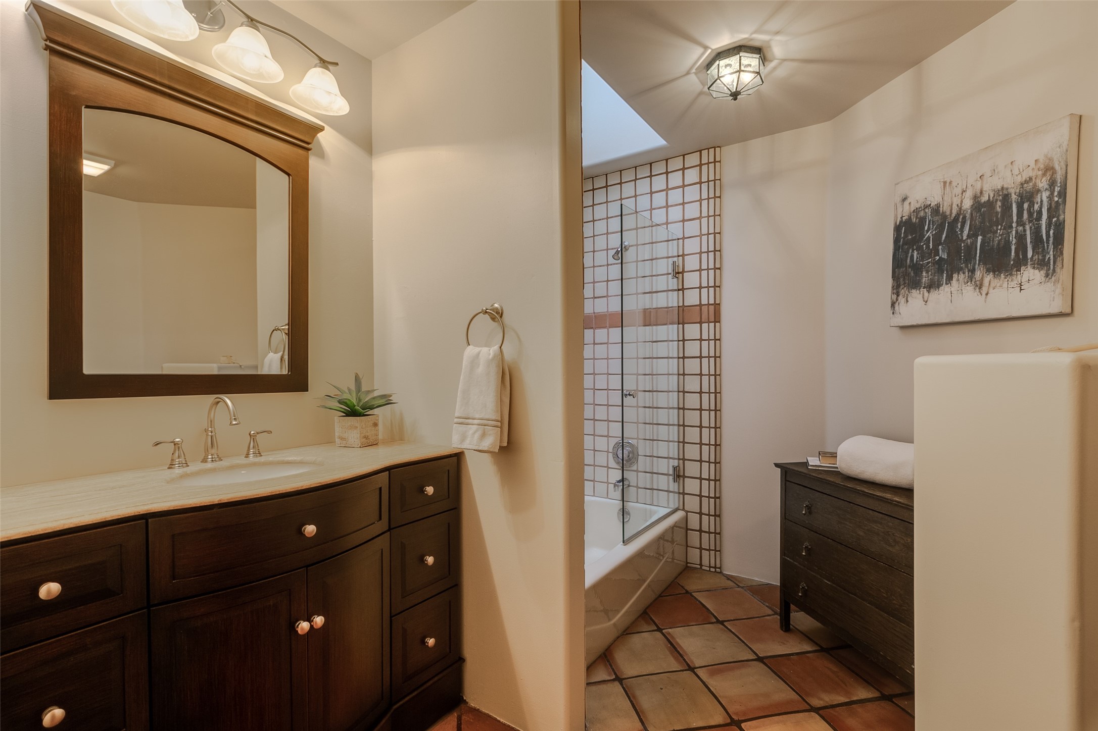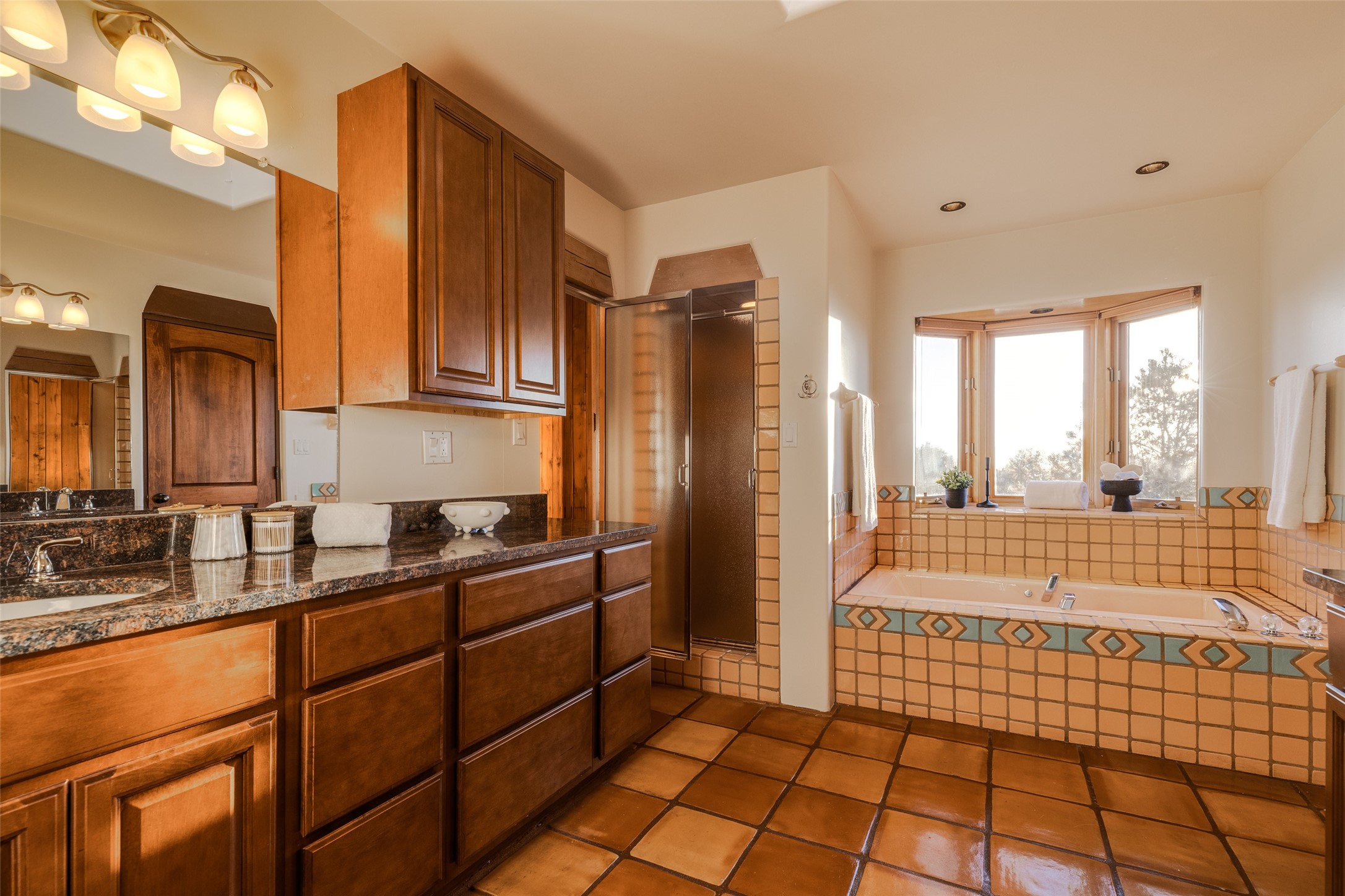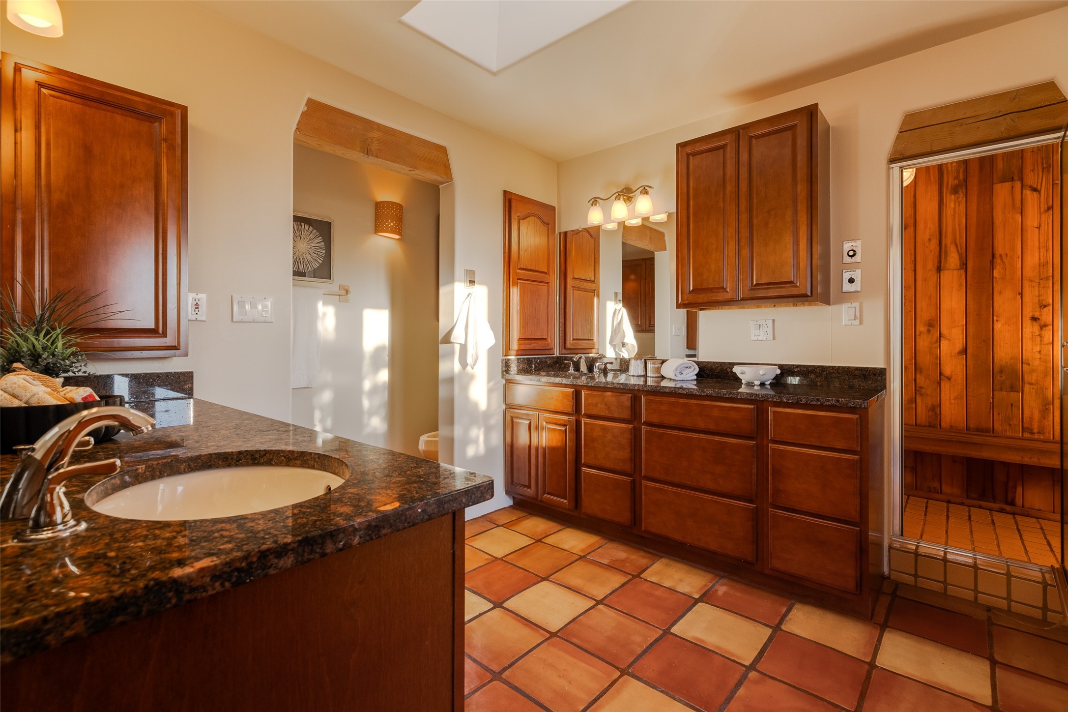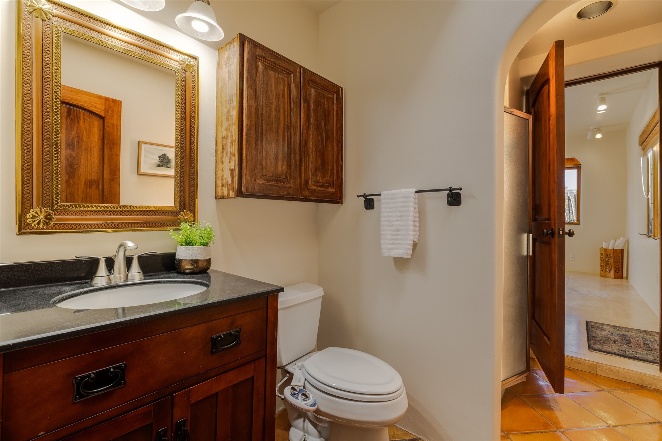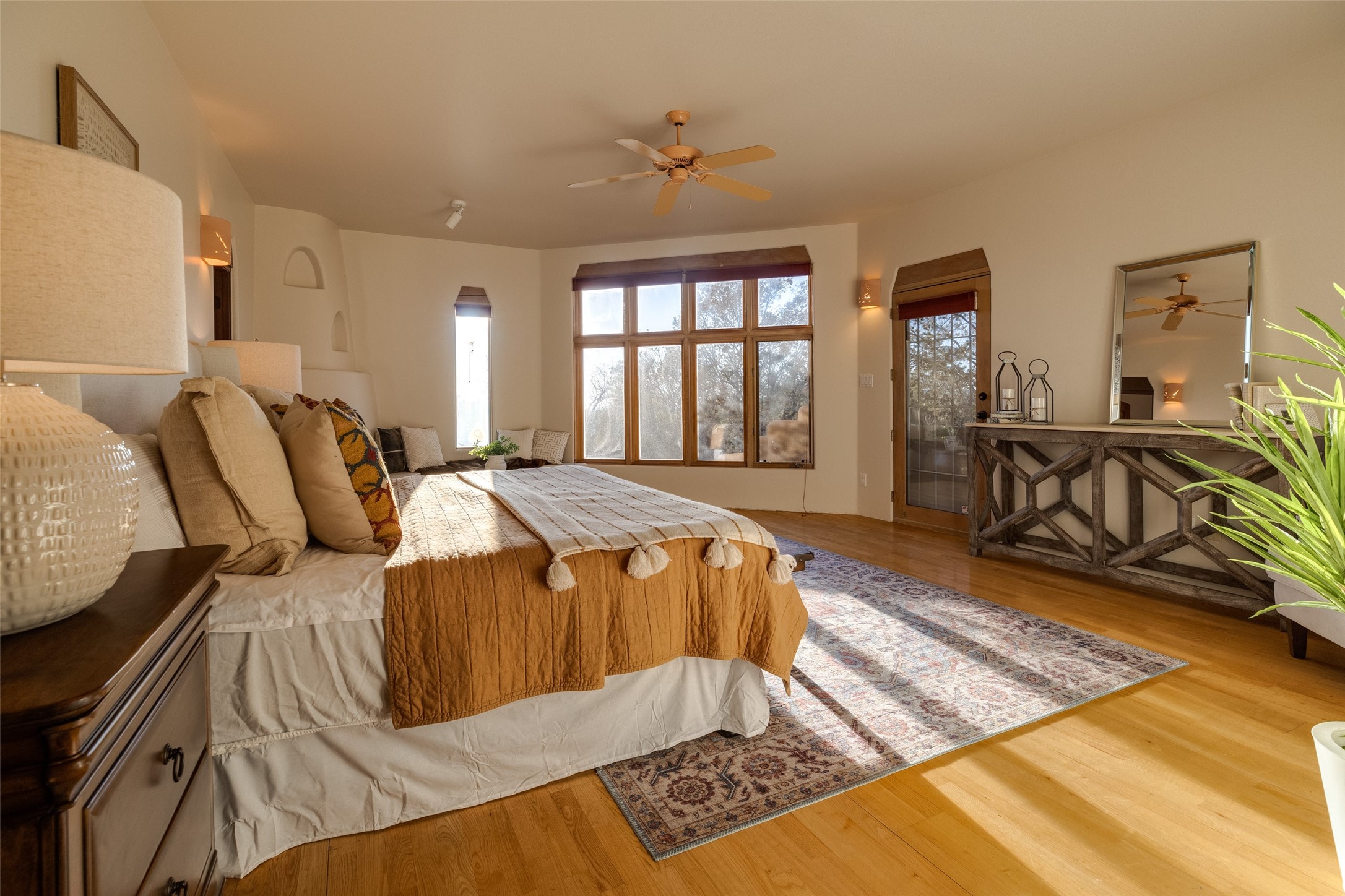 Discover your dream home in Santa Fe, nestled in the highly sought-after Las Barrancas neighborhood, just 2 miles from downtown Santa Fe. Enjoy easy access to renowned art galleries, fantastic dining, scenic hiking trails, and the famous Ten Thousand Waves Spa and restaurant! This custom-designed home features beautiful Santa Fe-style finishes, seamlessly blending comfort and elegance. The open floor plan is bathed in natural light and opens up to a wraparound portal, accessible from the main living areas. With 3 bedrooms, 2 bathrooms, 2 kiva fireplaces, and a versatile flex room that opens to the patio, this home is ideal for use as an office or studio. The spacious kitchen includes a cozy breakfast nook and desk area, with direct access to the covered portal for effortless outdoor entertaining. A double-car garage with potential for expansion and a gated front entry offer added convenience and security, making this the perfect "lock-and-leave" property.