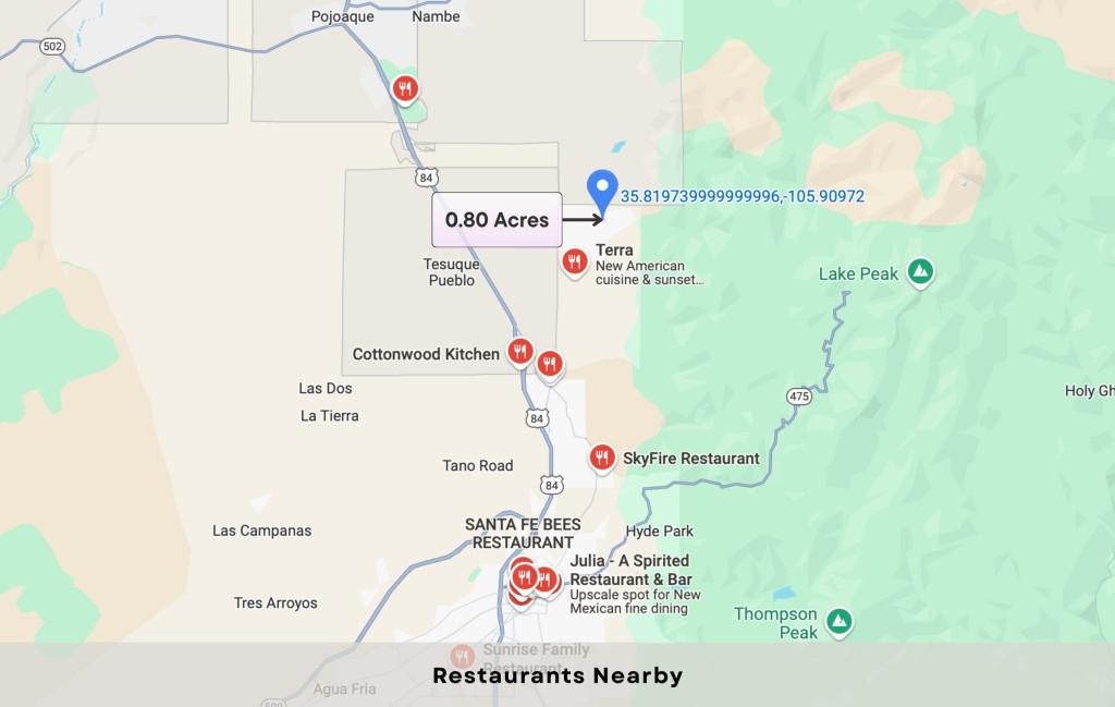 Nestled in the heart of Santa Fe County, this .8 acre property along NM-592 offers a rare opportunity to own land in one of New Mexico's most breathtaking regions. Located just 12.8 miles north of downtown Santa Fe, this lot provides a perfect balance of seclusion and convenience, making it an ideal investment for those seeking tranquility while staying close to modern amenities. Surrounded by stunning mountain landscapes and endless outdoor adventure, this property is a dream for nature lovers. Explore the many nearby trails, take in the fresh mountain air and enjoy the peaceful surroundings that make this area so special. Whether you're looking to build a private retreat, a vacation getaway or a forever home, this land provides endless possibilities. With its prime location and easy access to Santa Fe's vibrant arts, culture and dining scene, this property is perfect for those who want the best of both worlds. Don't miss out on this opportunity to invest in one of New Mexico's.