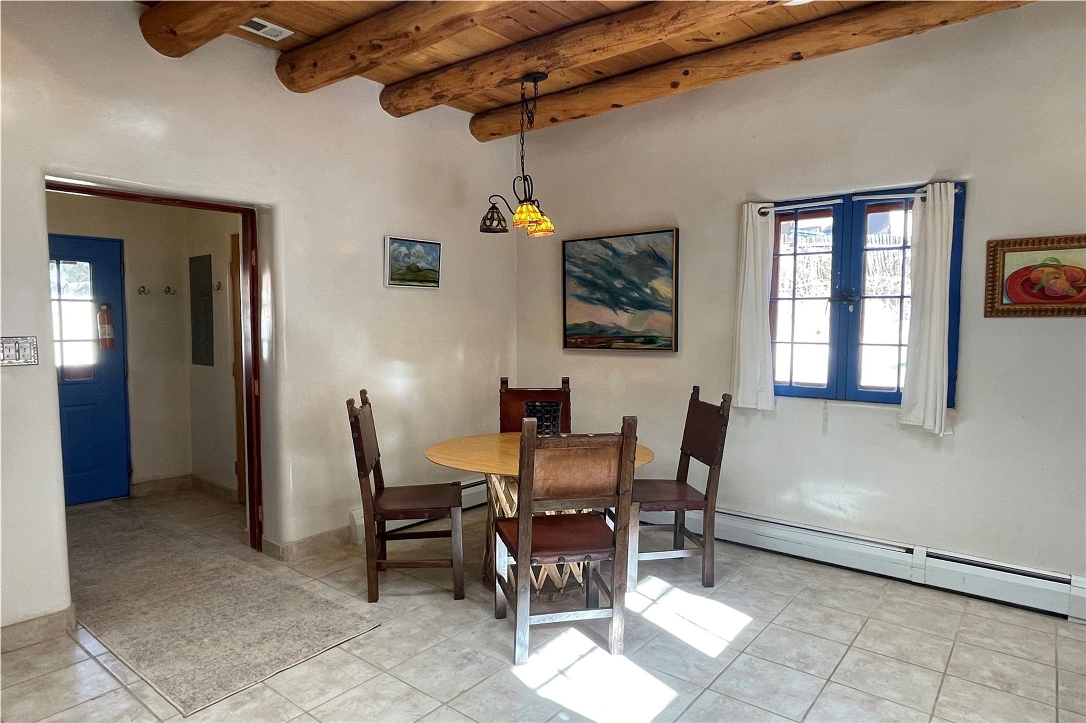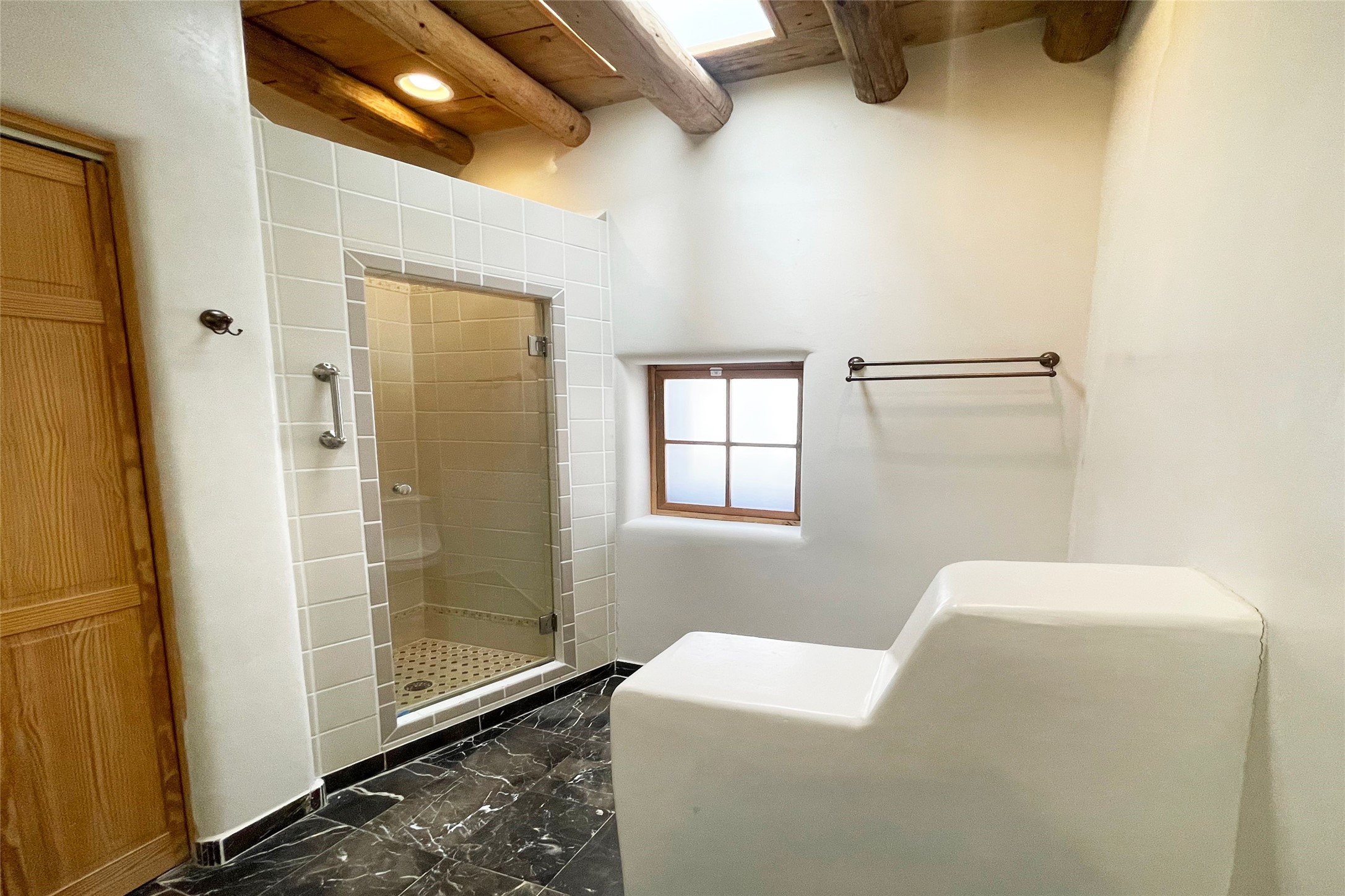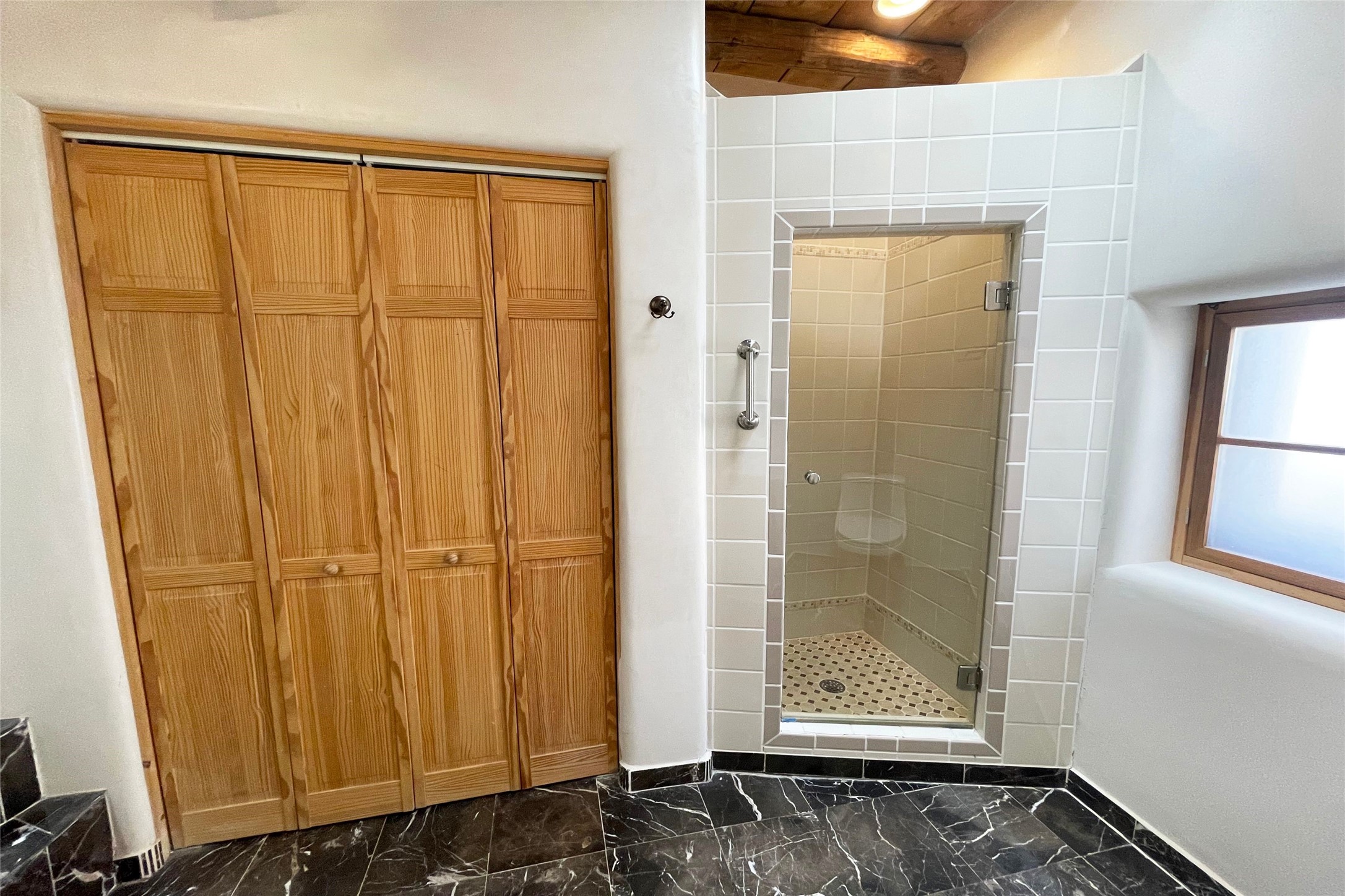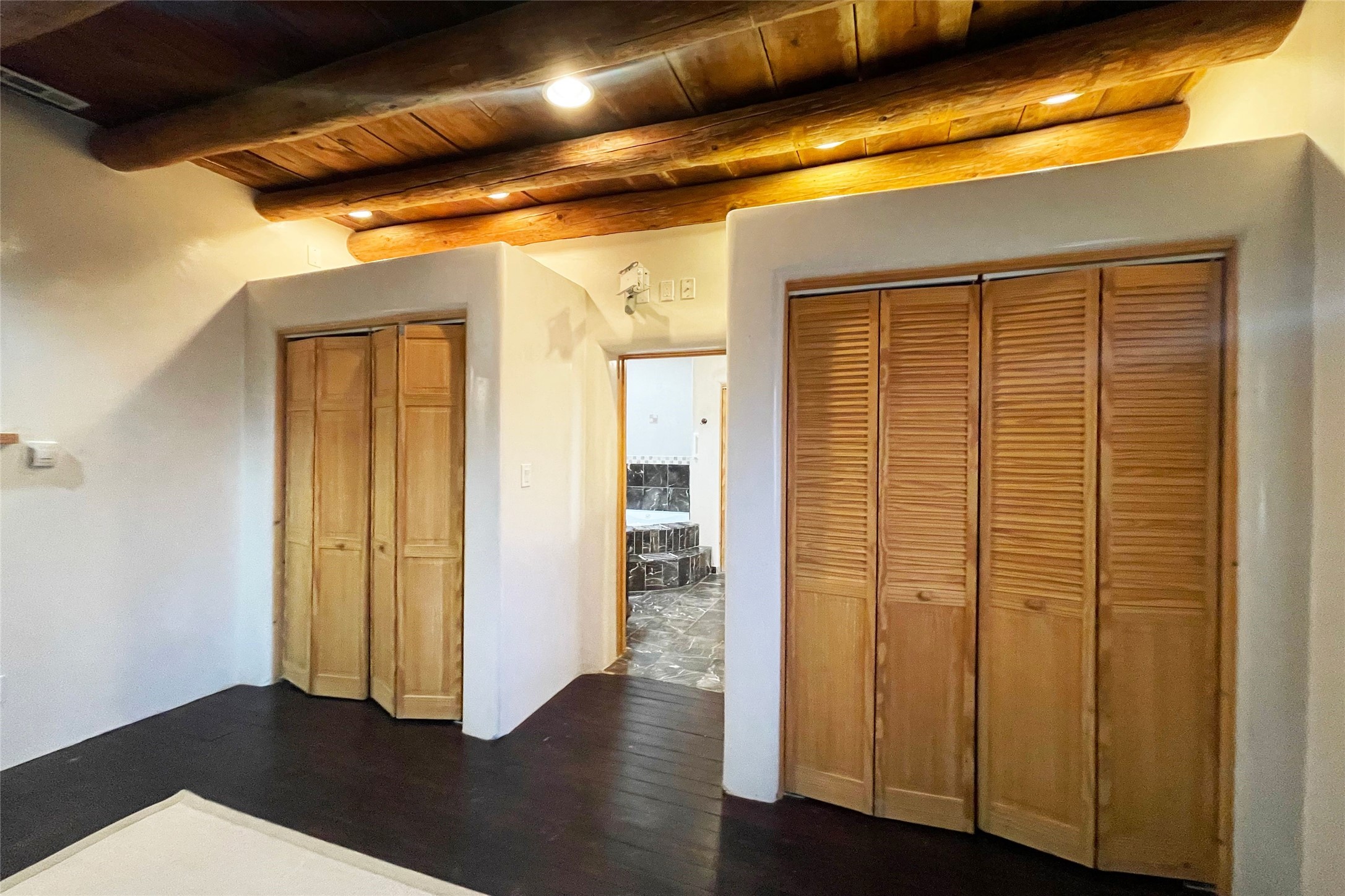 Truly, this authentic Santa Fe Historic Double Adobe Home and Casita near the Plaza exude Santa Fe Style. Down a lane from Paseo De Peralta, leads one to this very private family compound situated on .71 acres of land. The main home was built by the Spanish military in the late 1700s to house an officer at Fort Marcy. The Sisneros Family came to own it due to a daughter marrying the Spanish Colonel in 1840. The property then became a family Compound. This storied Santa Fe property has been owned and loved by the Sisneros family ever since. The compound comprises a two-bedroom, two-bath main home and a one-bedroom, one-bath casita, both with full kitchens and living room areas. The Main Home and the Casita were fully restored and remodeled in 2008. The restoration was accomplished with respect for the historic quality of the home. The high viga ceilings, diamond finish, hand-troweled plaster walls, multiple nichos, and wood floors speak to that respectfully. Adjacent land, purchased from the Cathedral in the 1950s, adds westerly city and mountain views. Enjoy the private outdoor patio area nestled below the Cross of the Martyrs, and walk, yes walk, to all that the heart of the Historic Santa Fe Plaza has to offer. This is a once in a lifetime opportunity!
