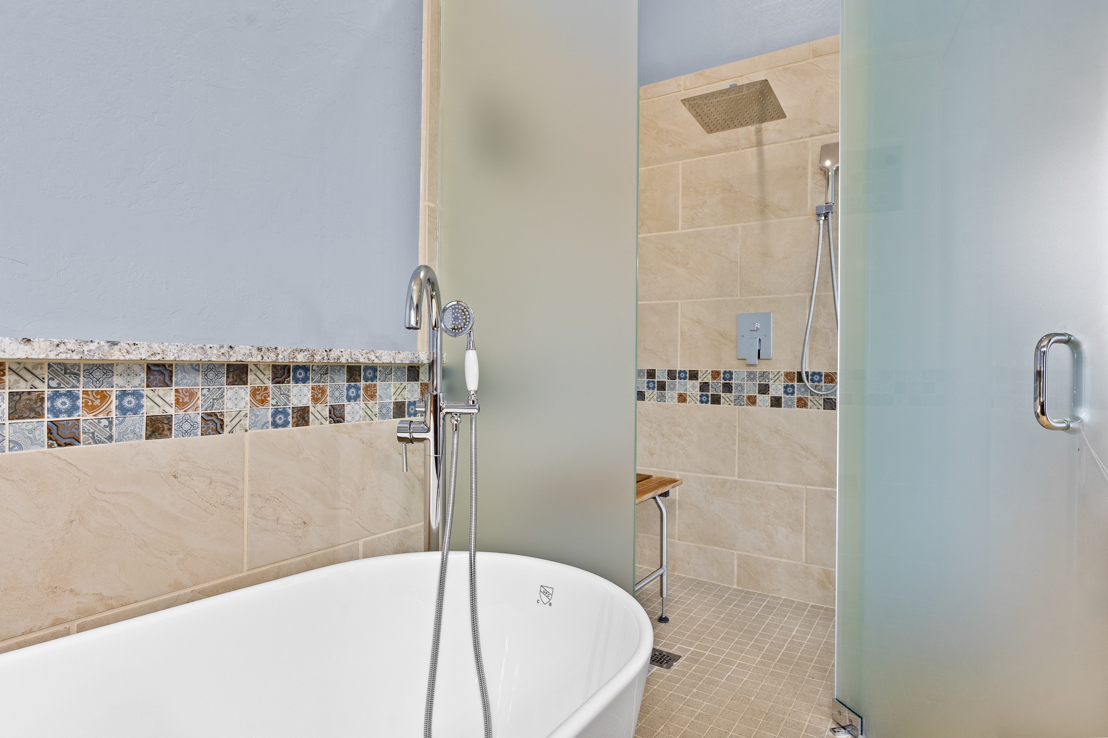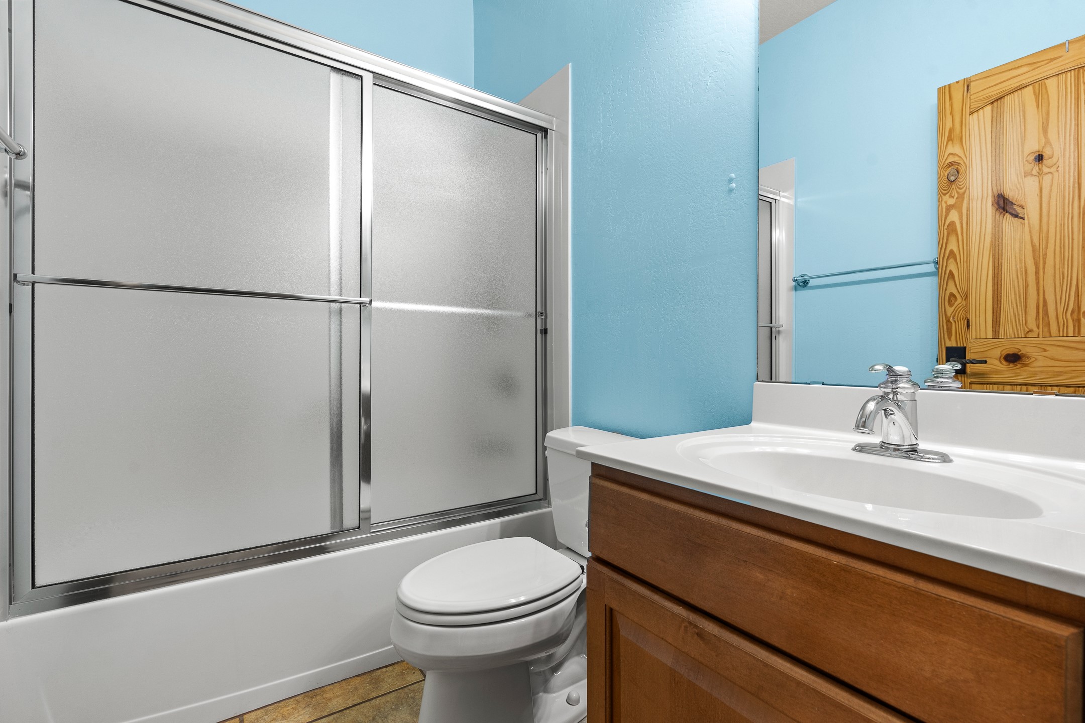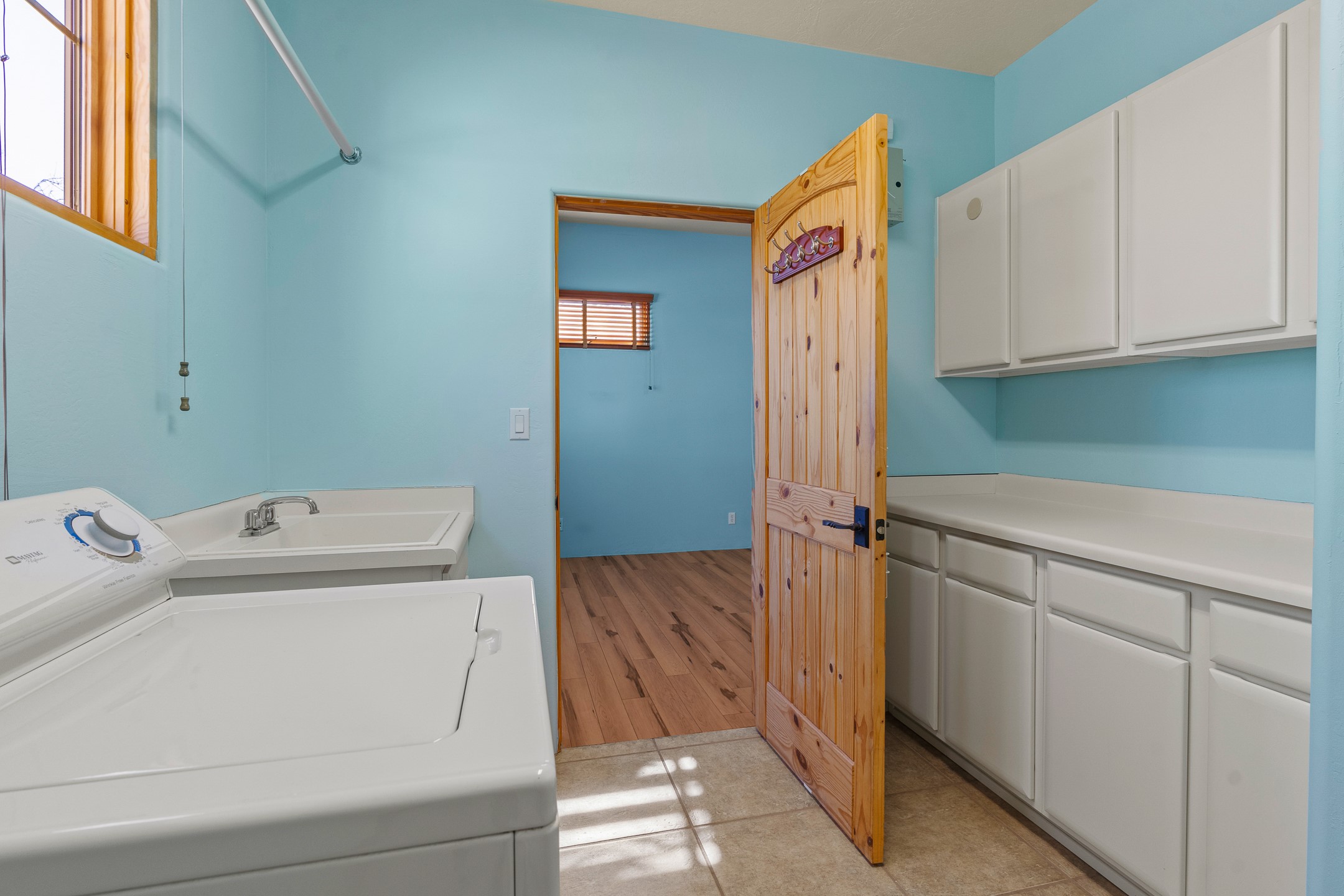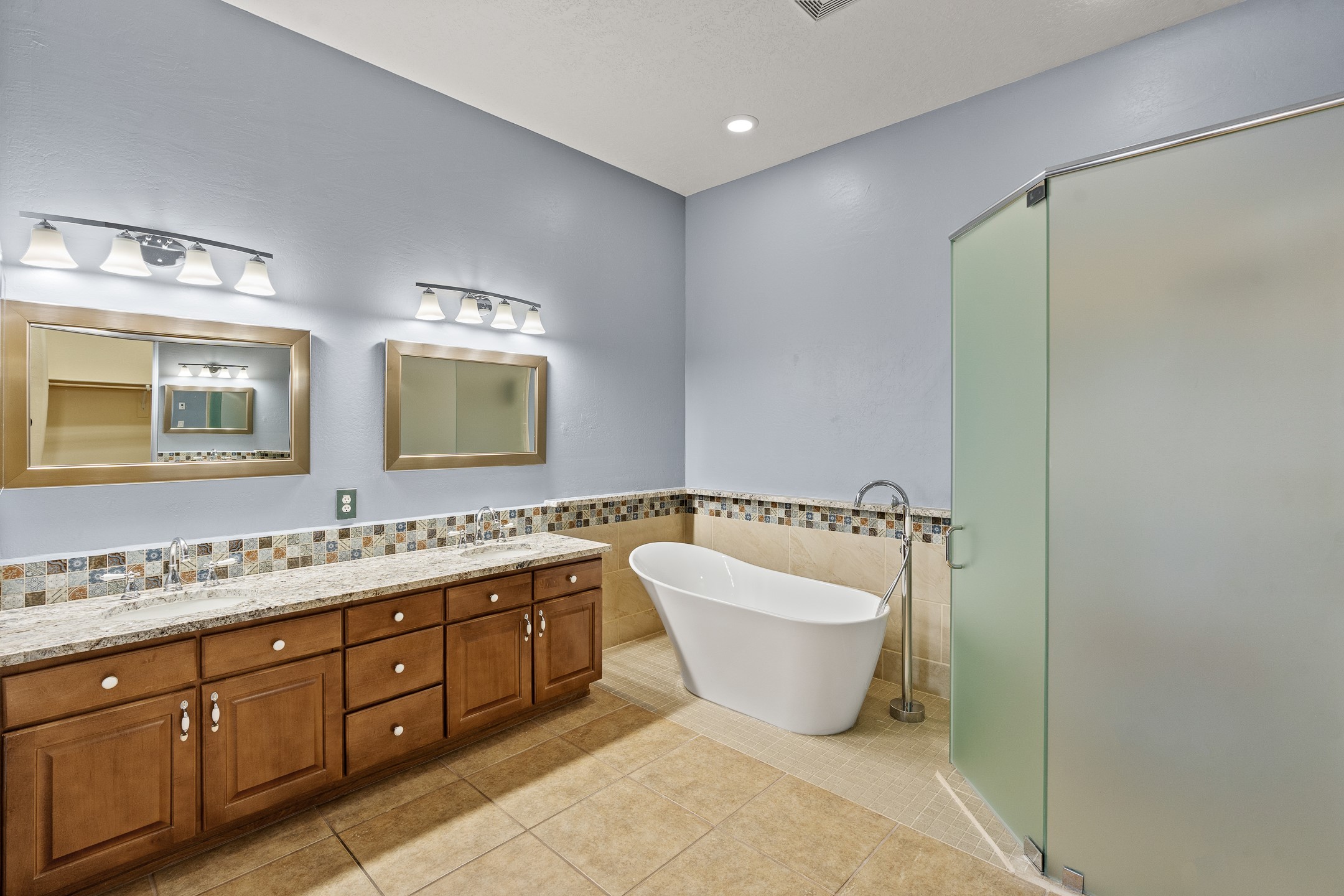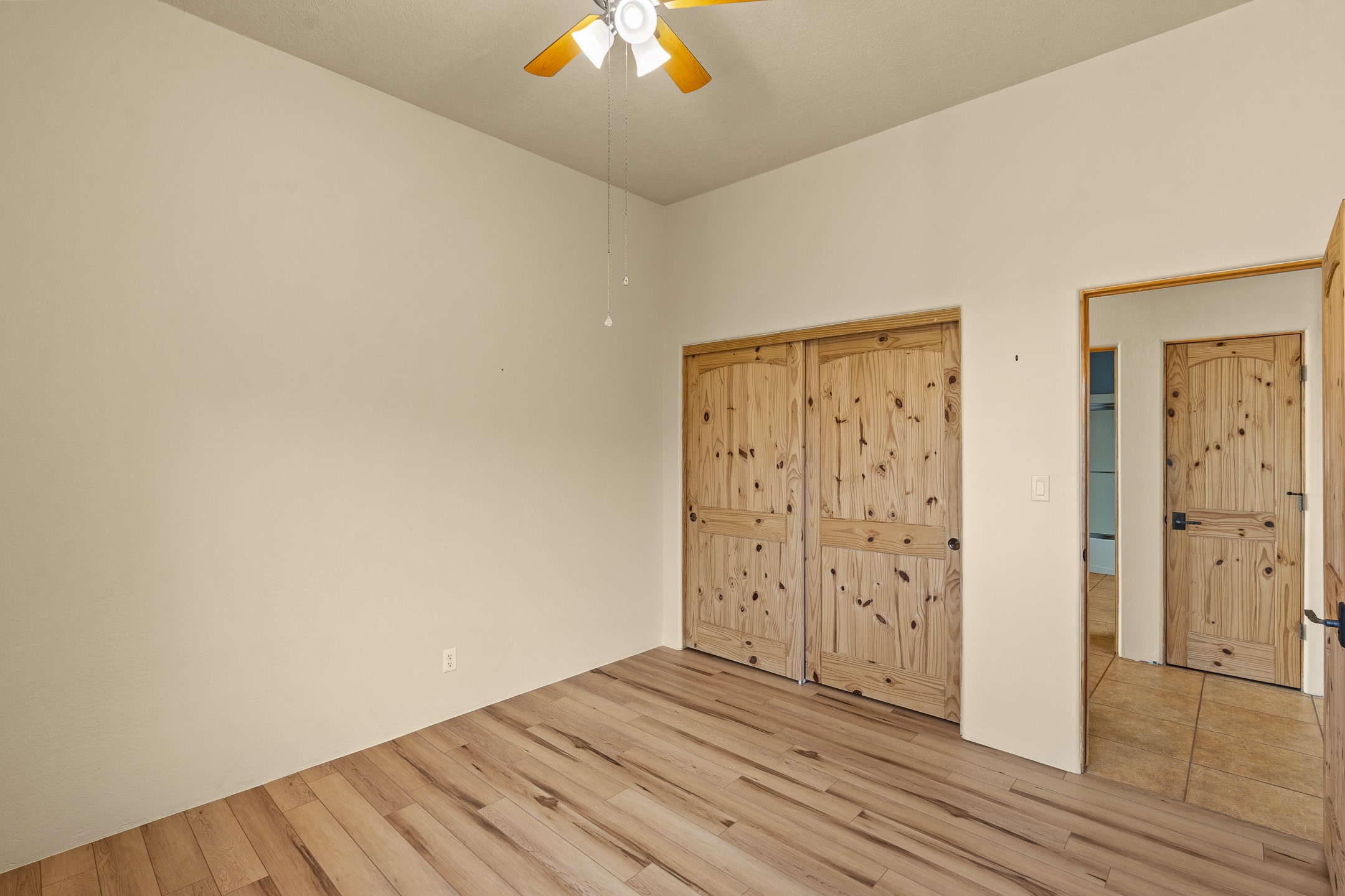 Mountain views from every room. On a quiet cul-de-sac street with open space in front and back of home with spectacular sunsets and views from the back yard. This recently updated Pueblo-style home in Rancho Viejo with new roof, new stucco, fresh interior paint, fully remodeled primary bath, added covered portal and granite island in kitchen is on a premium lot backing to vast greenbelt. The popular Mesa Verde open floor plan has four bedrooms and three full baths plus lots of usable space and storage room. The versatile 4th bedroom with private bath can serve as office, guest room, library or den. Large walled backyard for landscaping and pets with fruit trees. Behind the home is part of the 15 miles of paved walking/biking trails in the neighborhood. Near everything in Santa Fe but just far enough out for a quiet, peaceful life.