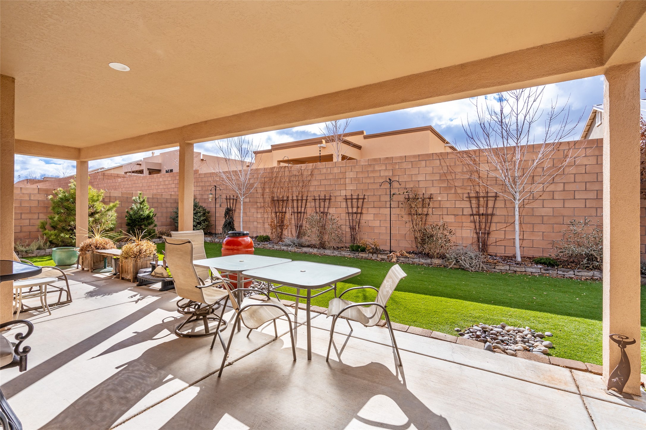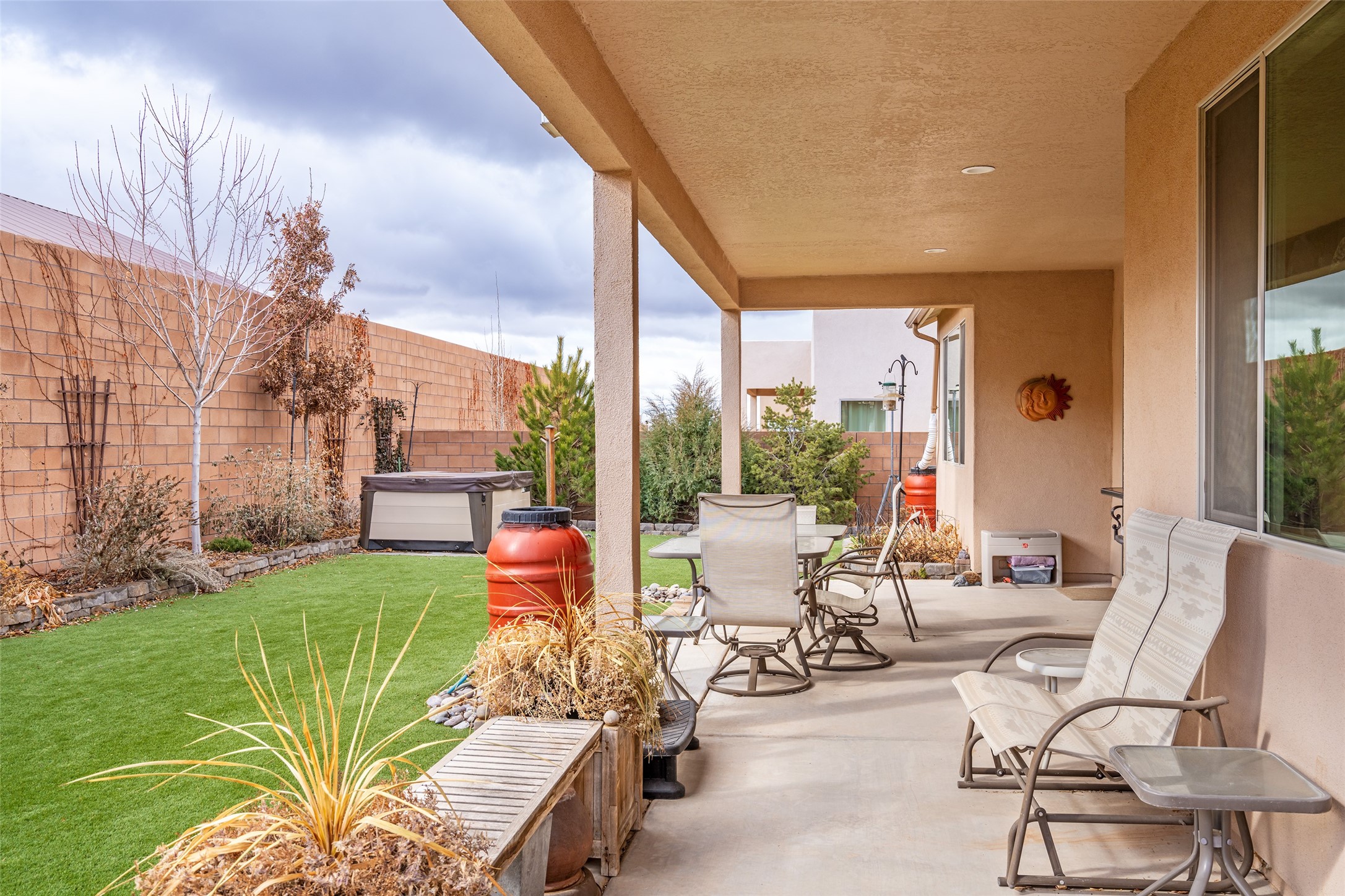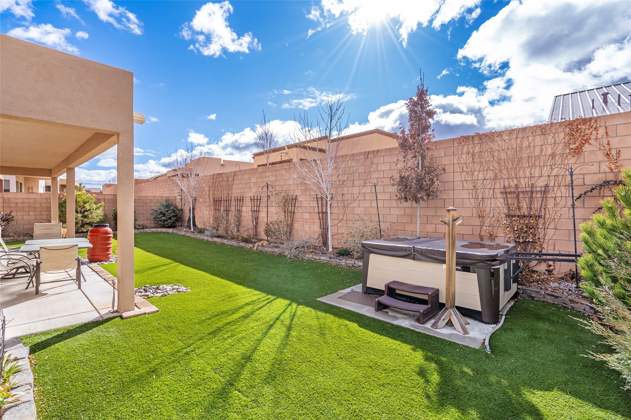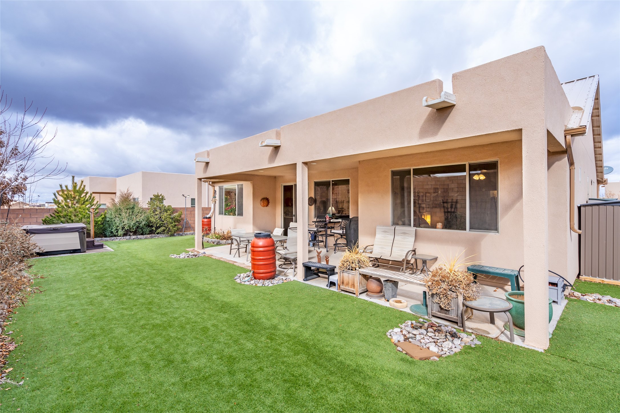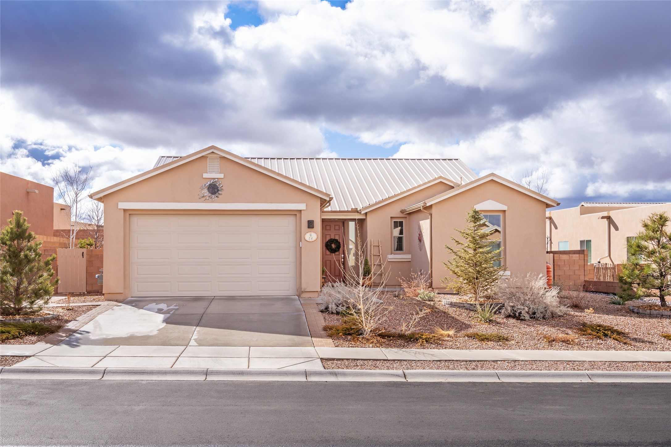 Upgraded Estrella Floor Plan - Move-In Ready with Luxury Touches! Why wait to build? Thoughtfully designed, this two-year-old Estrella floor plan offers style and functionality in a move-in-ready package. Step inside to find gorgeous maple cabinets, elegant granite countertops, 2 year old stainless steel appliances and premium finishes throughout. The open-concept design features tile and engineered wood flooring in the main living areas, while two bedrooms offer soft, plush carpeting. Cozy up on cool evenings by the gas fireplace, a perfect addition to the inviting living space. The split-bedroom layout ensures privacy, with the spacious primary suite offering views of the private backyard, and a spa-like en-suite bath featuring a soaking tub for ultimate relaxation, separate tiled shower, two lighted medicine cabinets with built-in charging stations, double sinks with granite, and beautiful cabinetry. The large walk-in closet is divine and will accommodate your all season wardrobe. Outside, the covered portal leads to a private backyard oasis enclosed by a large privacy wall. Native landscaping on a drip system, combined with astroturf for Fido, ensures beauty with low maintenance. And for the ultimate in relaxation, enjoy your two-year-old Hot Springs hot tub while stargazing at night. Located in the highly desirable Rancho Viejo community, this home is part of a unique village concept dedicated to open space. With more than 14 miles of scenic walking trails and numerous parks, residents enjoy a serene and active lifestyle. Plus, you're roughly 12 miles from the Santa Fe Plaza, making it easy to experience all the culture, dining, & entertainment Santa Fe has to offer. Don't miss this rare opportunity to own a better-than-new home in a breathtaking community--schedule your private showing today!