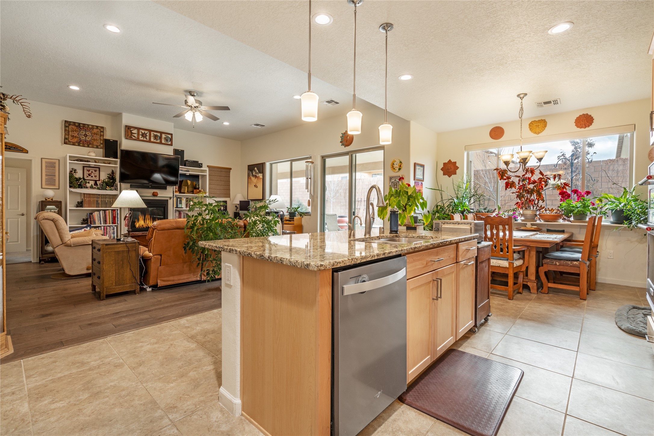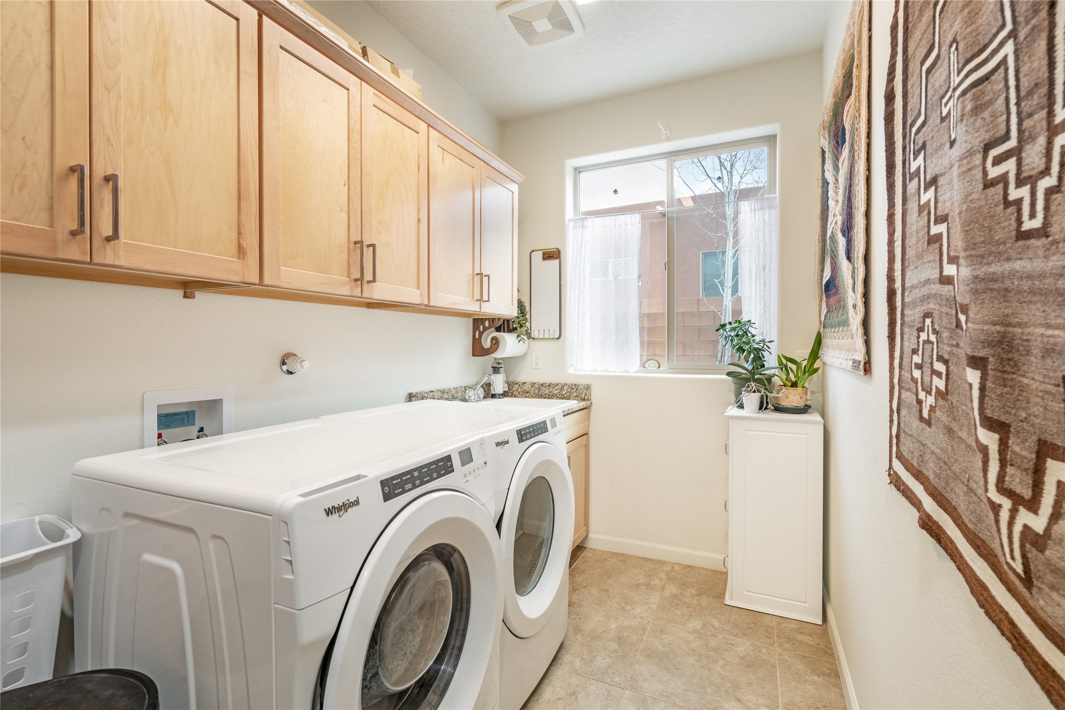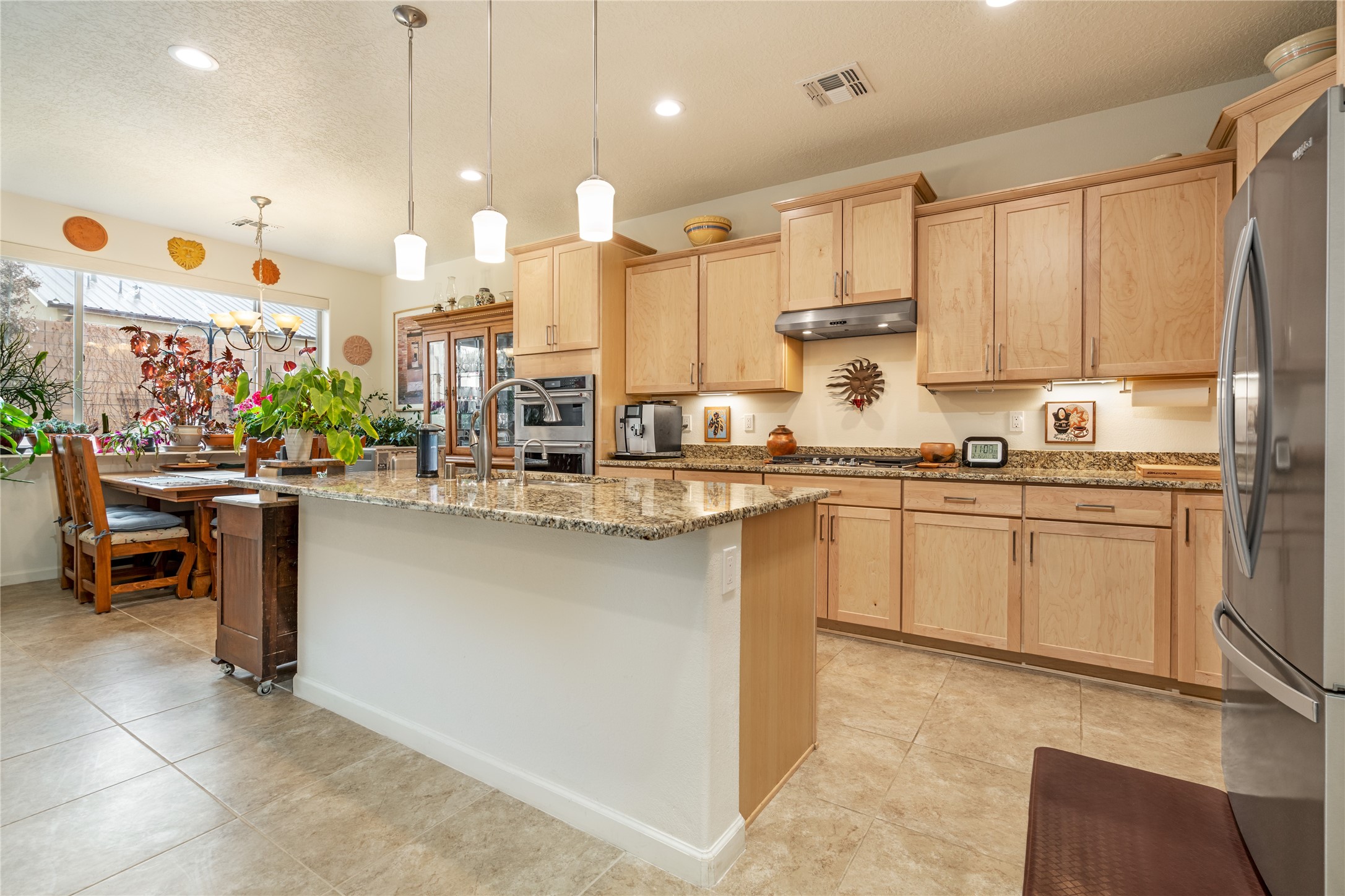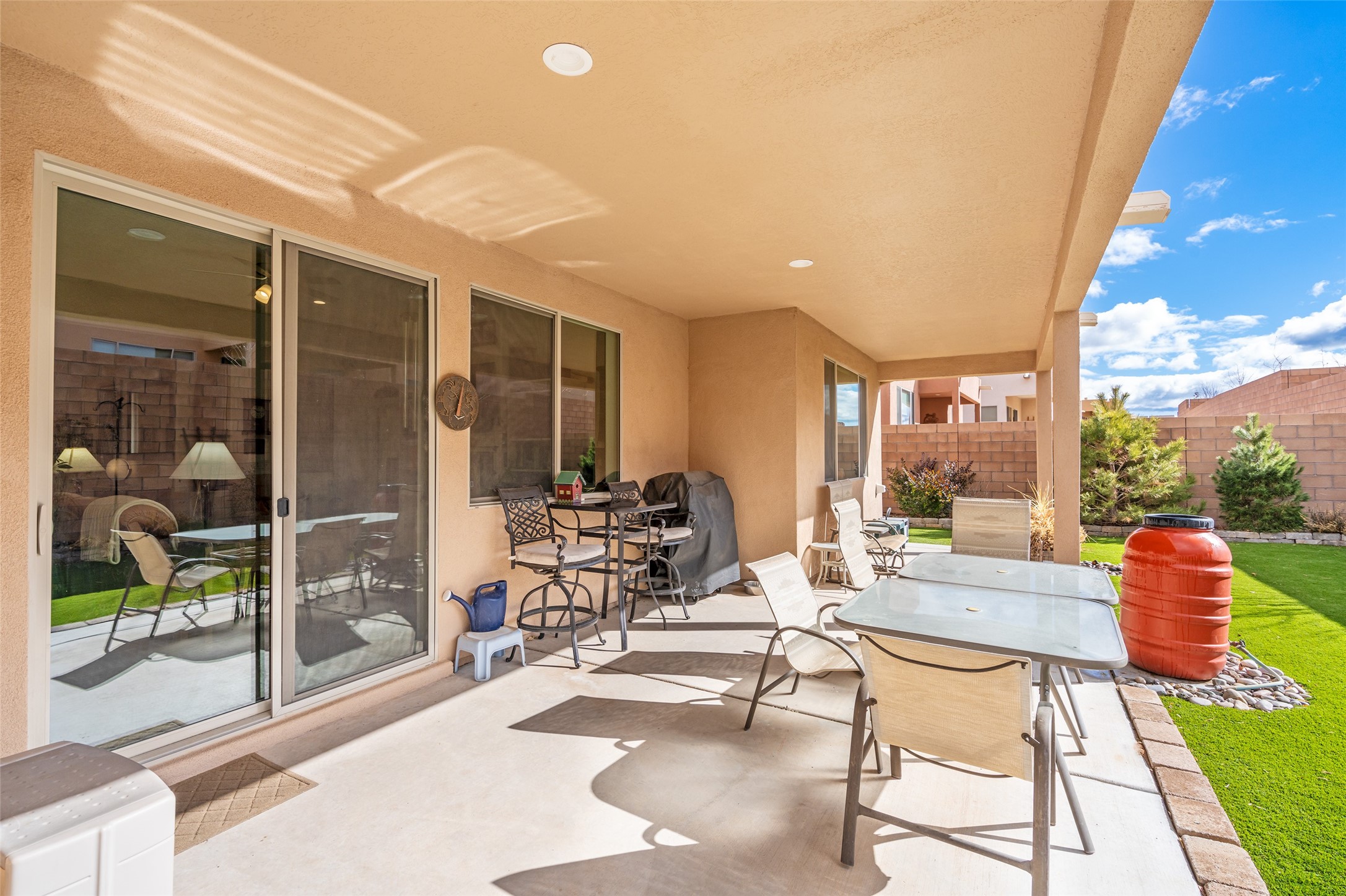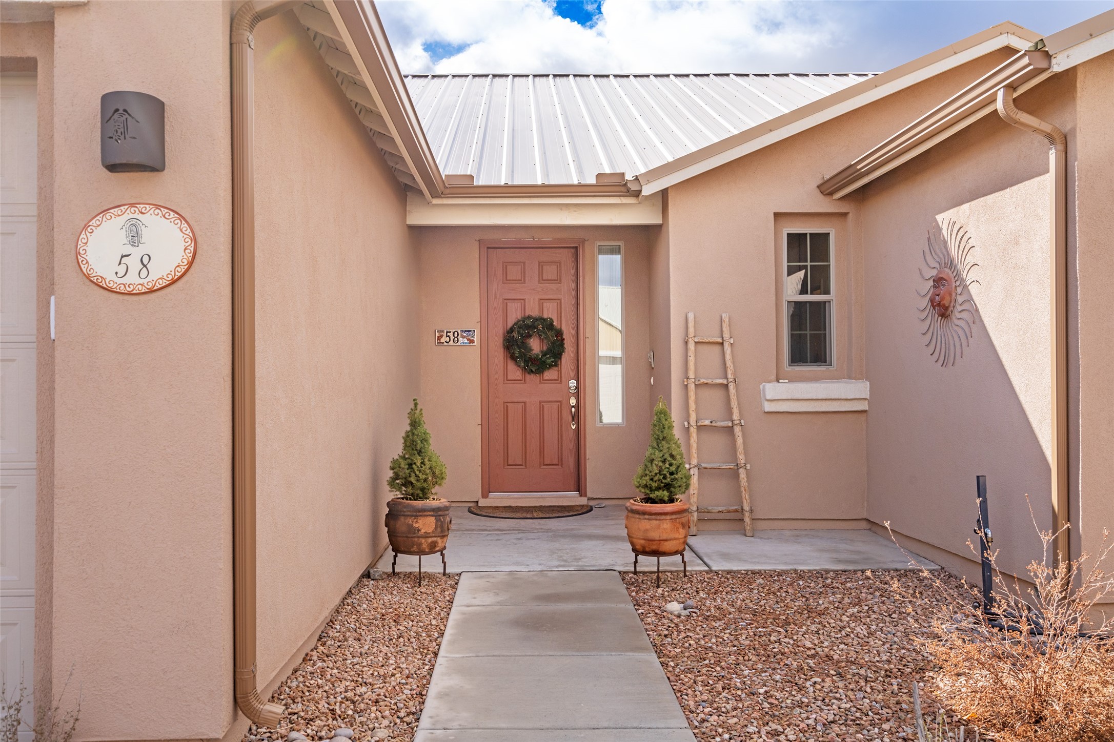 Upgraded Estrella Floor Plan - Move-In Ready with Luxury Touches! Why wait to build? Thoughtfully designed, this two-year-old Estrella floor plan offers style and functionality in a move-in-ready package. Step inside to find gorgeous maple cabinets, elegant granite countertops, 2 year old stainless steel appliances and premium finishes throughout. The open-concept design features tile and engineered wood flooring in the main living areas, while two bedrooms offer soft, plush carpeting. Cozy up on cool evenings by the gas fireplace, a perfect addition to the inviting living space. The split-bedroom layout ensures privacy, with the spacious primary suite offering views of the private backyard, and a spa-like en-suite bath featuring a soaking tub for ultimate relaxation, separate tiled shower, two lighted medicine cabinets with built-in charging stations, double sinks with granite, and beautiful cabinetry. The large walk-in closet is divine and will accommodate your all season wardrobe. Outside, the covered portal leads to a private backyard oasis enclosed by a large privacy wall. Native landscaping on a drip system, combined with astroturf for Fido, ensures beauty with low maintenance. And for the ultimate in relaxation, enjoy your two-year-old Hot Springs hot tub while stargazing at night. Located in the highly desirable Rancho Viejo community, this home is part of a unique village concept dedicated to open space. With more than 14 miles of scenic walking trails and numerous parks, residents enjoy a serene and active lifestyle. Plus, you're roughly 12 miles from the Santa Fe Plaza, making it easy to experience all the culture, dining, & entertainment Santa Fe has to offer. Don't miss this rare opportunity to own a better-than-new home in a breathtaking community--schedule your private showing today!