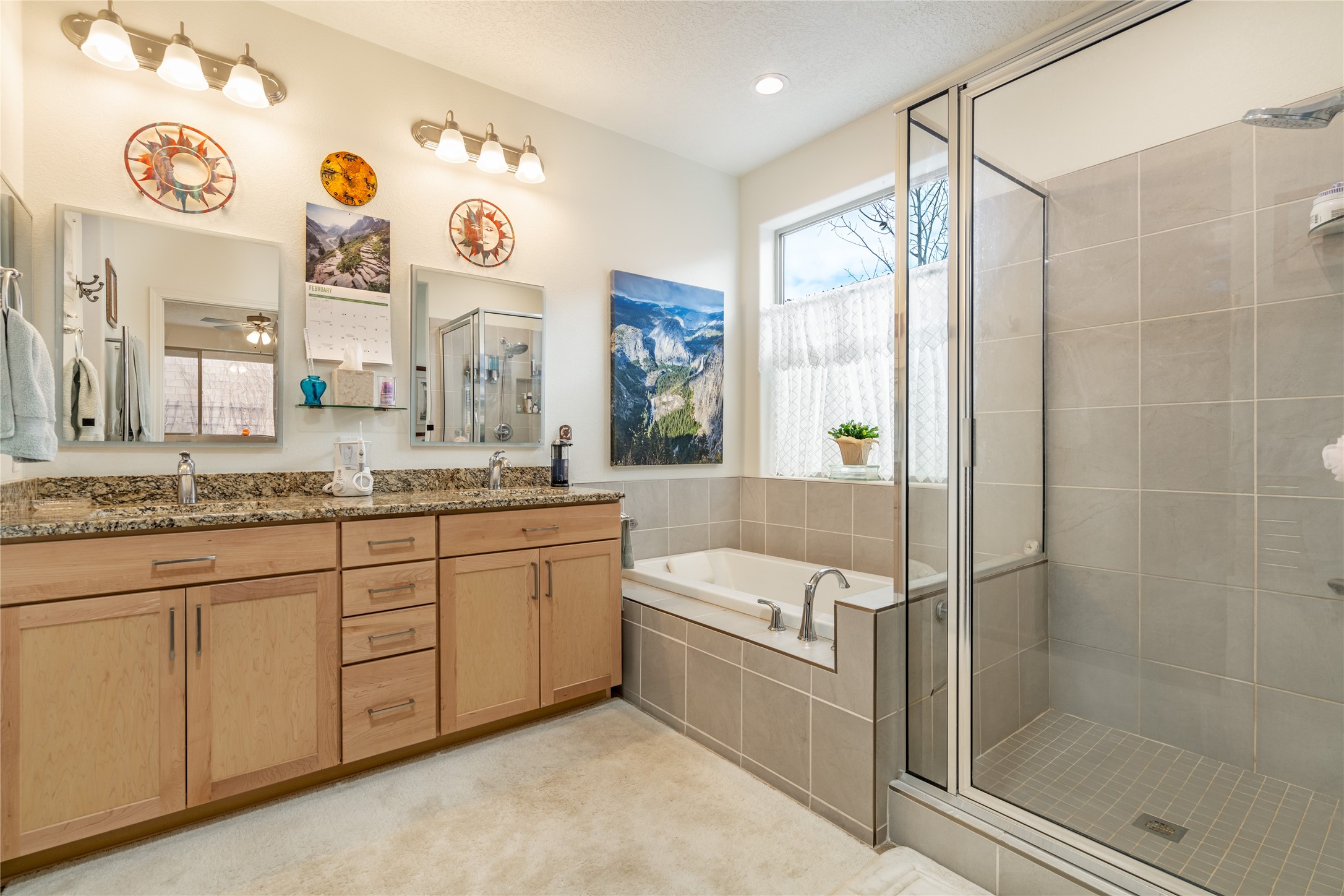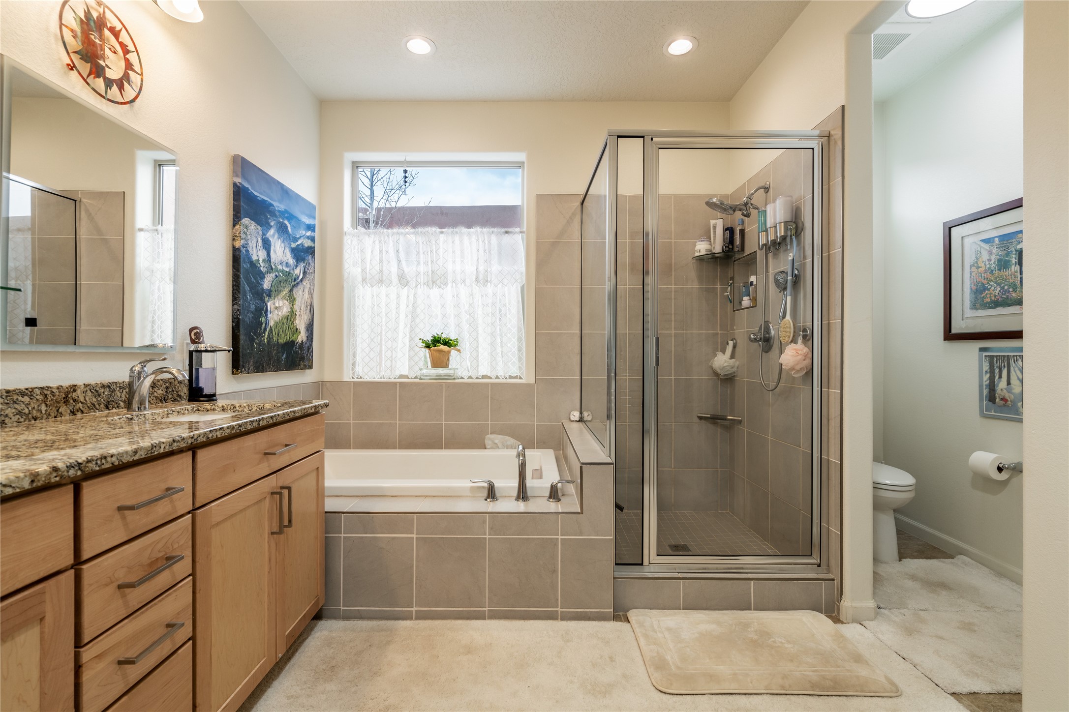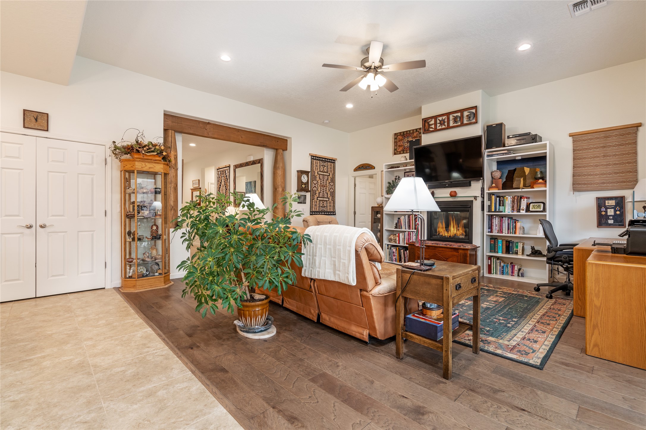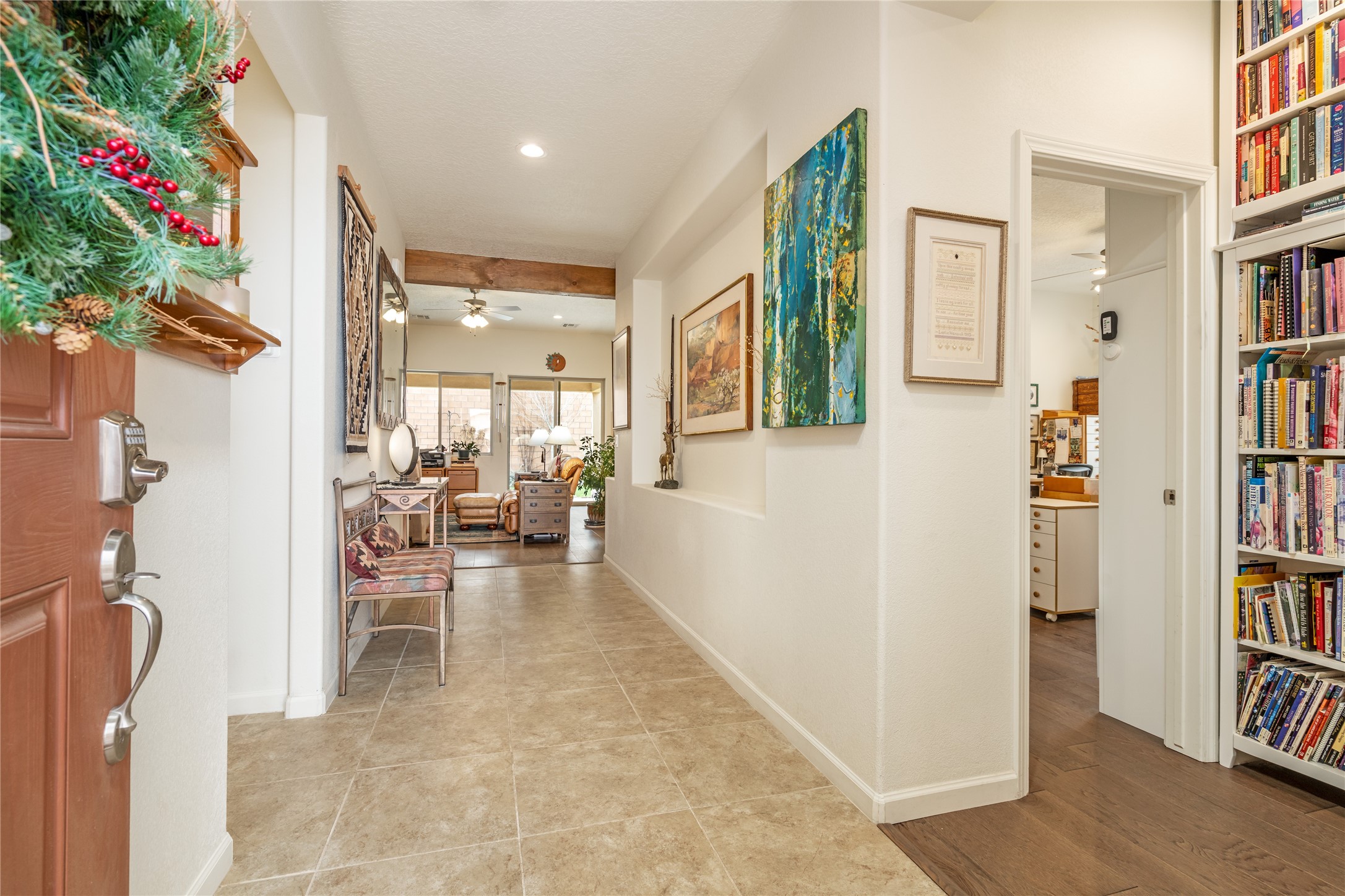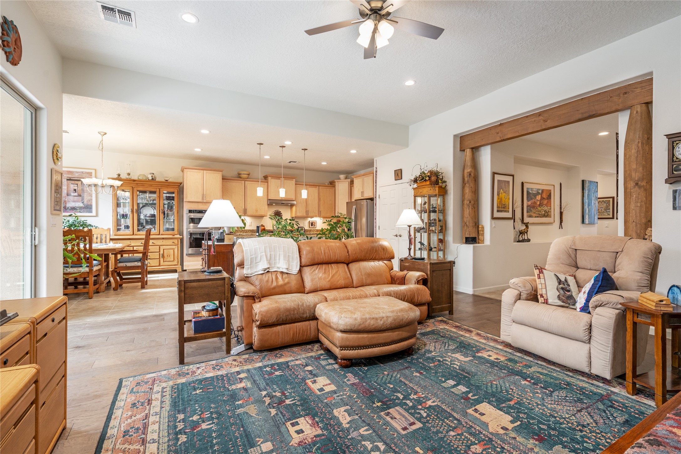 Upgraded Estrella Floor Plan - Move-In Ready with Luxury Touches! Why wait to build? Thoughtfully designed, this two-year-old Estrella floor plan offers style and functionality in a move-in-ready package. Step inside to find gorgeous maple cabinets, elegant granite countertops, 2 year old stainless steel appliances and premium finishes throughout. The open-concept design features tile and engineered wood flooring in the main living areas, while two bedrooms offer soft, plush carpeting. Cozy up on cool evenings by the gas fireplace, a perfect addition to the inviting living space. The split-bedroom layout ensures privacy, with the spacious primary suite offering views of the private backyard, and a spa-like en-suite bath featuring a soaking tub for ultimate relaxation, separate tiled shower, two lighted medicine cabinets with built-in charging stations, double sinks with granite, and beautiful cabinetry. The large walk-in closet is divine and will accommodate your all season wardrobe. Outside, the covered portal leads to a private backyard oasis enclosed by a large privacy wall. Native landscaping on a drip system, combined with astroturf for Fido, ensures beauty with low maintenance. And for the ultimate in relaxation, enjoy your two-year-old Hot Springs hot tub while stargazing at night. Located in the highly desirable Rancho Viejo community, this home is part of a unique village concept dedicated to open space. With more than 14 miles of scenic walking trails and numerous parks, residents enjoy a serene and active lifestyle. Plus, you're roughly 12 miles from the Santa Fe Plaza, making it easy to experience all the culture, dining, & entertainment Santa Fe has to offer. Don't miss this rare opportunity to own a better-than-new home in a breathtaking community--schedule your private showing today!