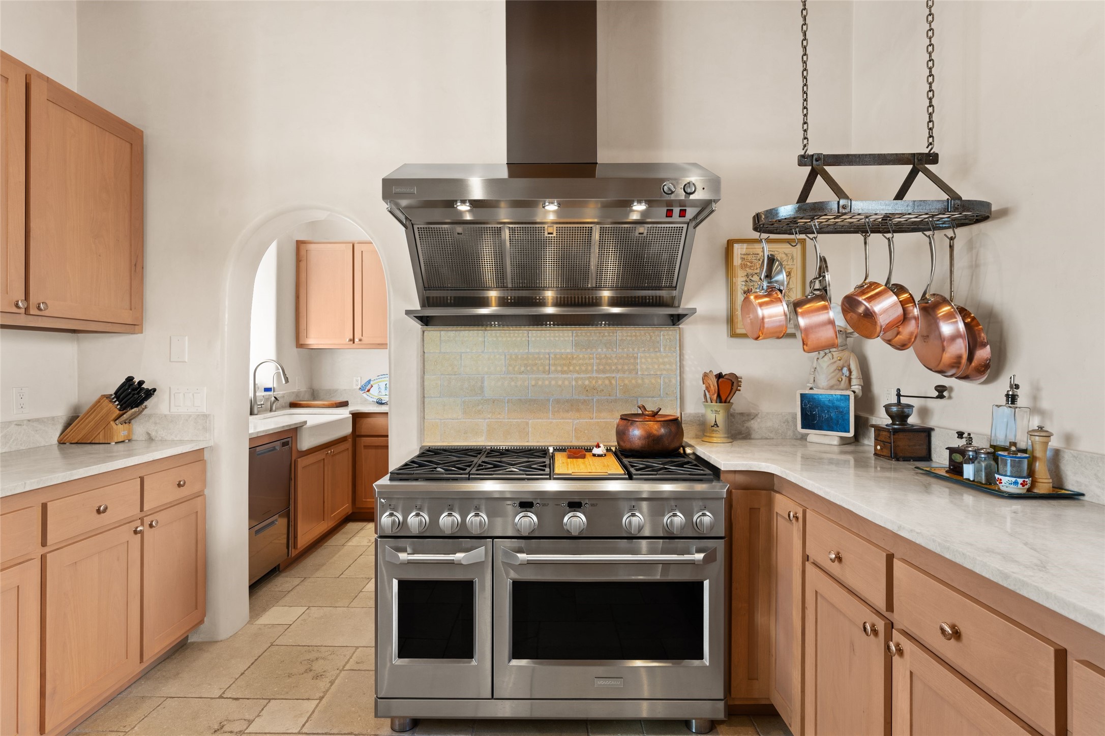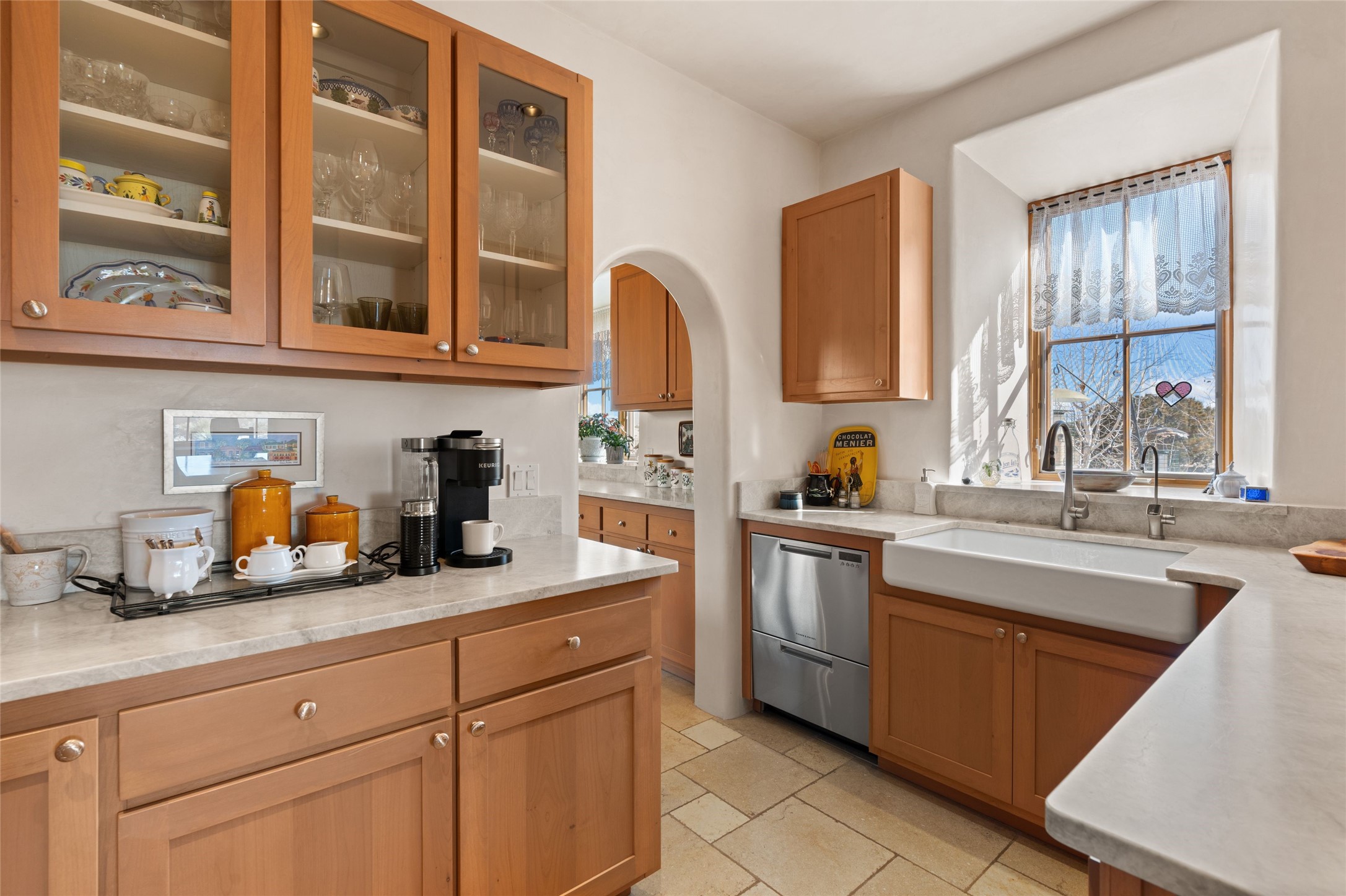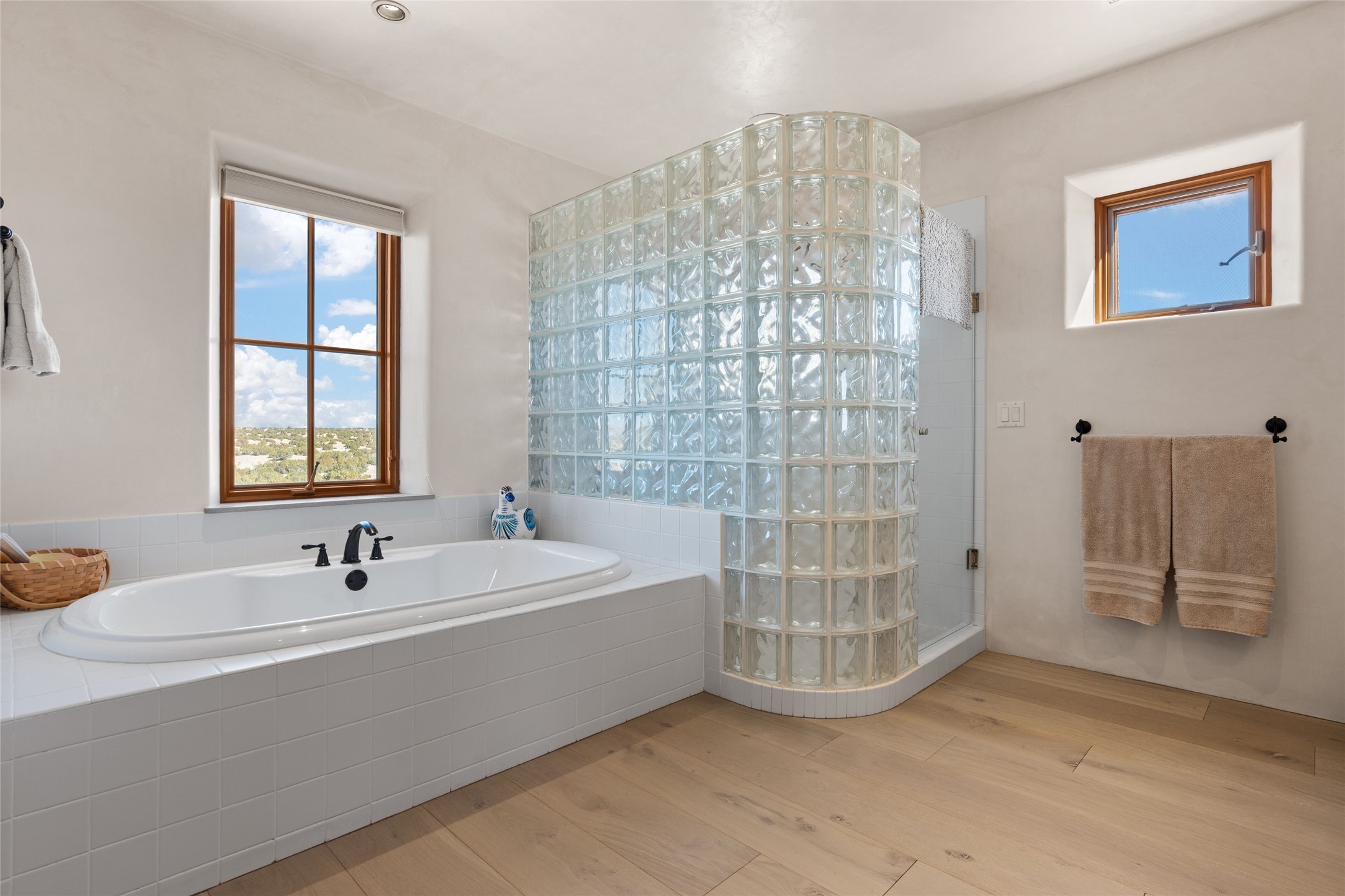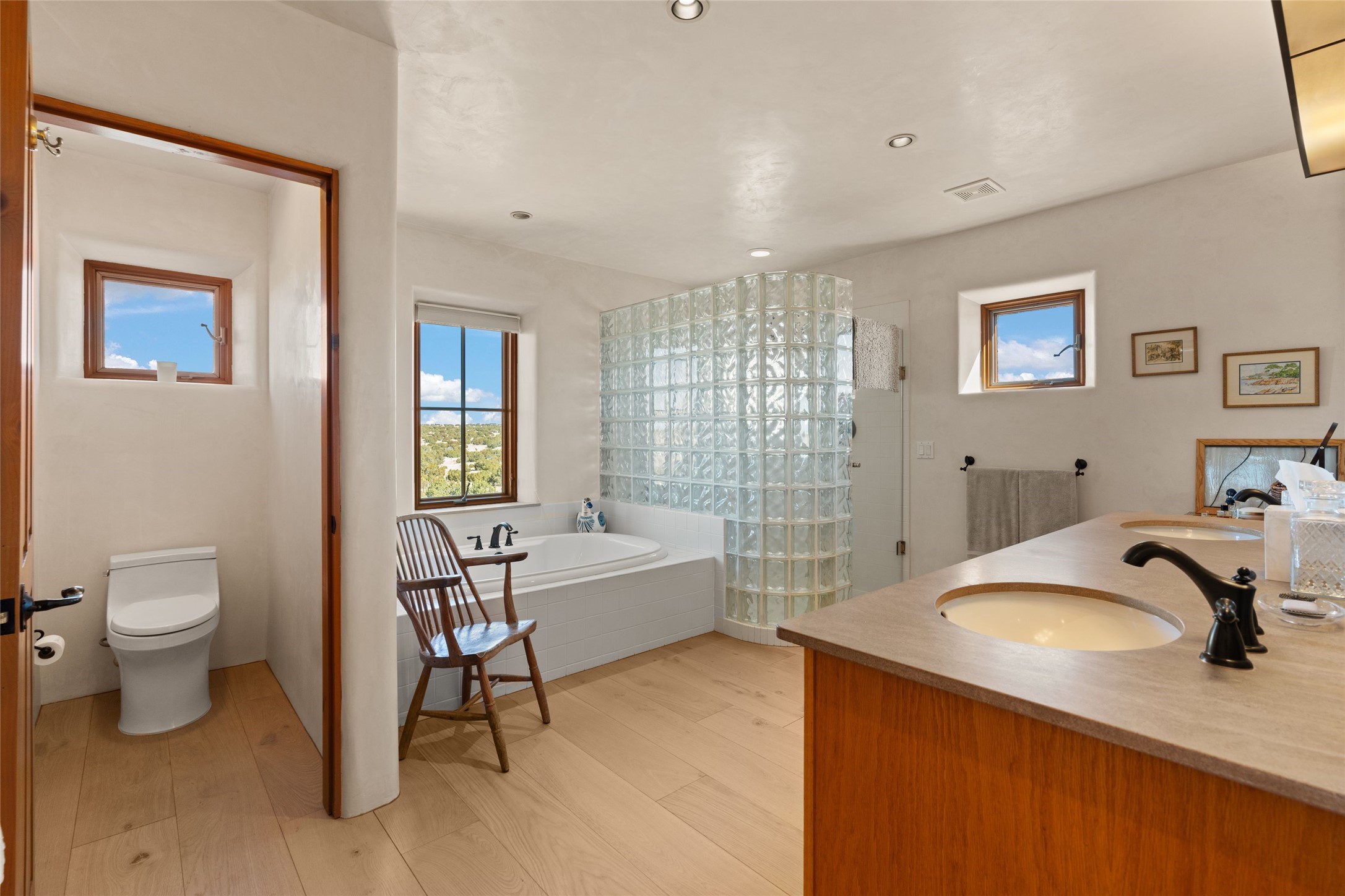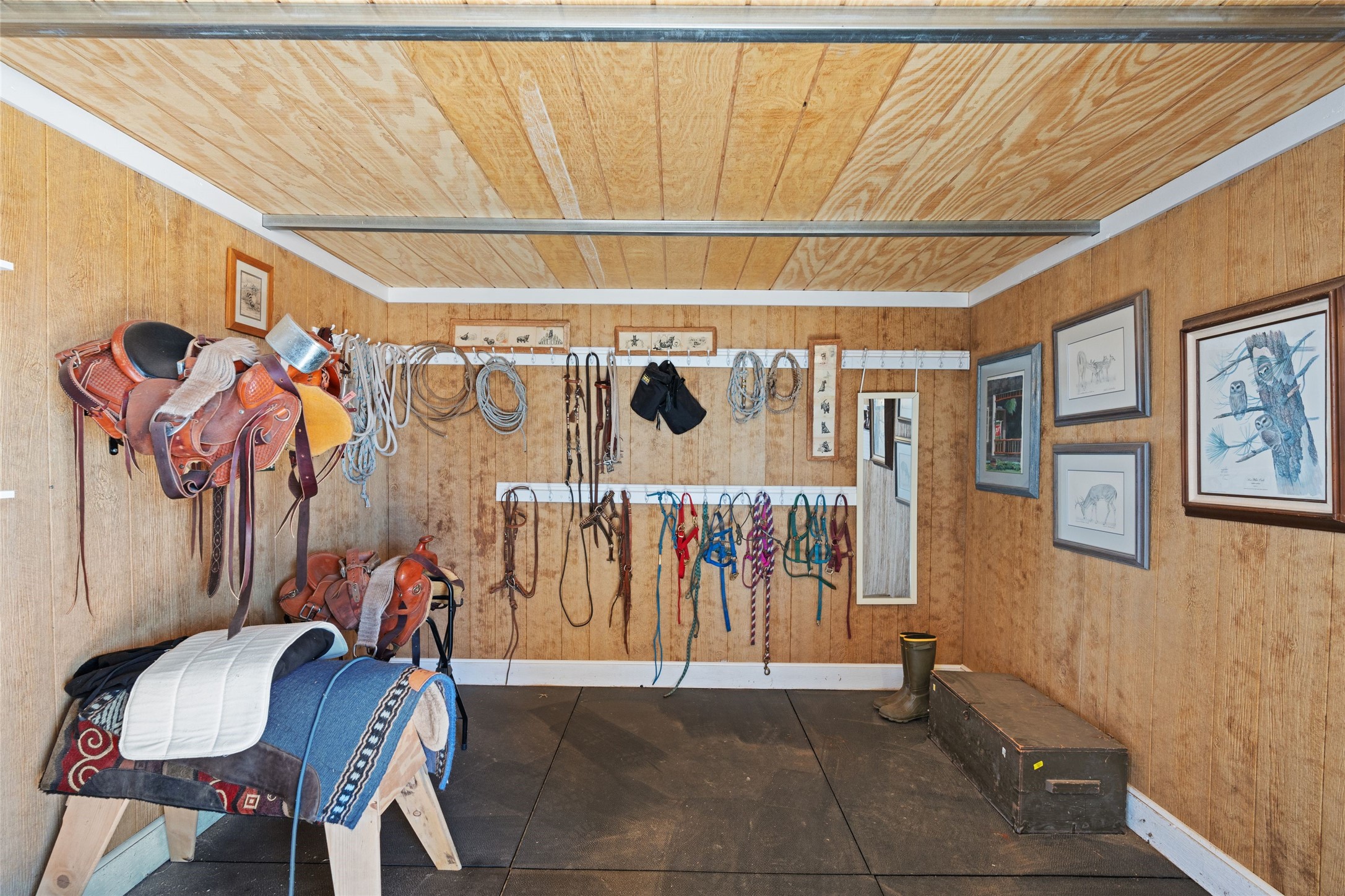 The best horse property in Santa Fe- with panoramic views! A rare find, this pristine equestrian ranch spans nearly 20 acres of breathtaking countryside, offering an ideal retreat for both horses and owners. Framed by the majestic Ortiz, Sandia, Jemez, and Sangre de Cristo mountains, the property provides a serene yet convenient location just 15 minutes from Santa Fe and I-25. Designed and built by renowned builder Will Prull, the custom Pueblo Hacienda welcomes you through a beautifully landscaped front courtyard and a wraparound portal. Inside, a spacious entry foyer opens to an inviting living area with a kiva fireplace, seamlessly connecting to the formal dining room. The well-appointed cook's kitchen, complete with a butler's pantry, offers easy access to a charming interior patio, perfect for indoor-outdoor living. Two guest bedrooms, each with built-in shelving and access to a covered portal, share a luxurious bath--one featuring a sleek fireplace. The private primary suite, has a cozy fireplace and a balcony offering breathtaking views of the estate and surrounding mountains. A beautifully designed one-bedroom guest house complements the main residence, featuring an open-concept living area, kitchenette, and fireplace, all finished to the same high standards. Equestrian enthusiasts will appreciate the immaculate five-stall barn with turnouts, a tack room, and space to expand with an additional five stalls. The barn accommodates up to 600 bales of hay, while a secure 5-foot, non-climb horse safety wire fence encloses the entire property, allowing horses free access. A private 3-acre-foot well, 1120 feet deep, delivers an ample 20 gpm water supply. This extraordinary estate seamlessly blends luxury, tranquility, and equestrian excellence, all within close reach of Santa Fe's vibrant cultural and recreational offerings.