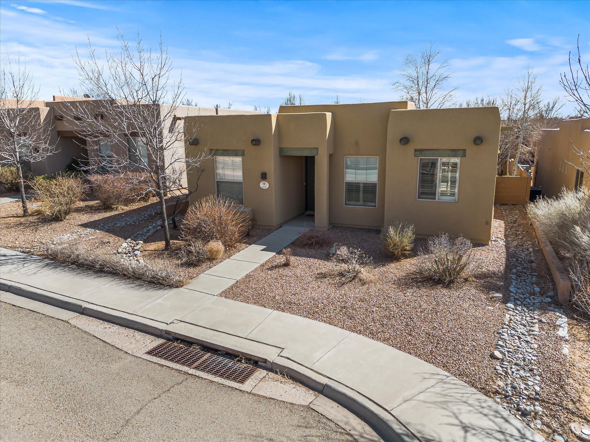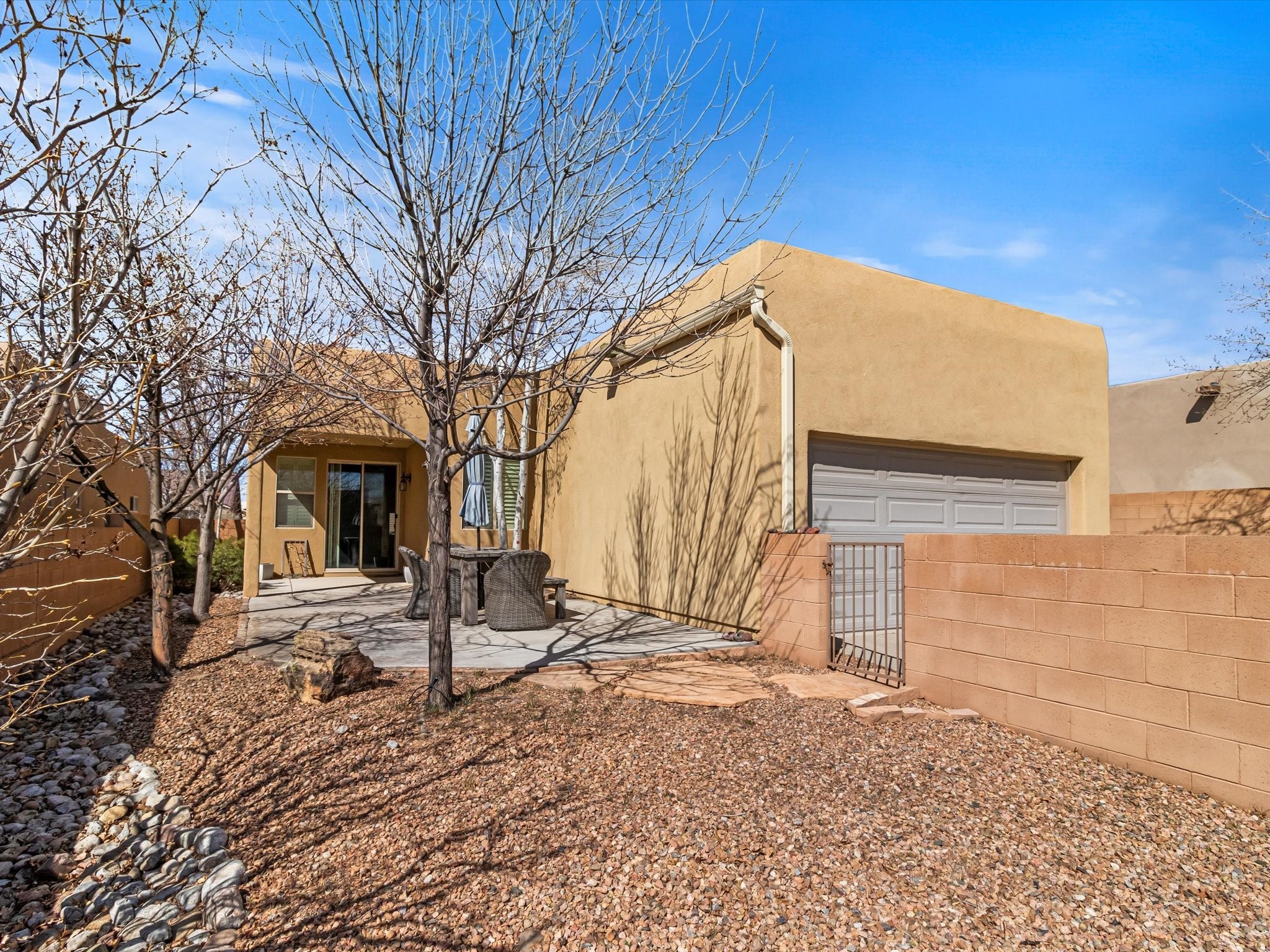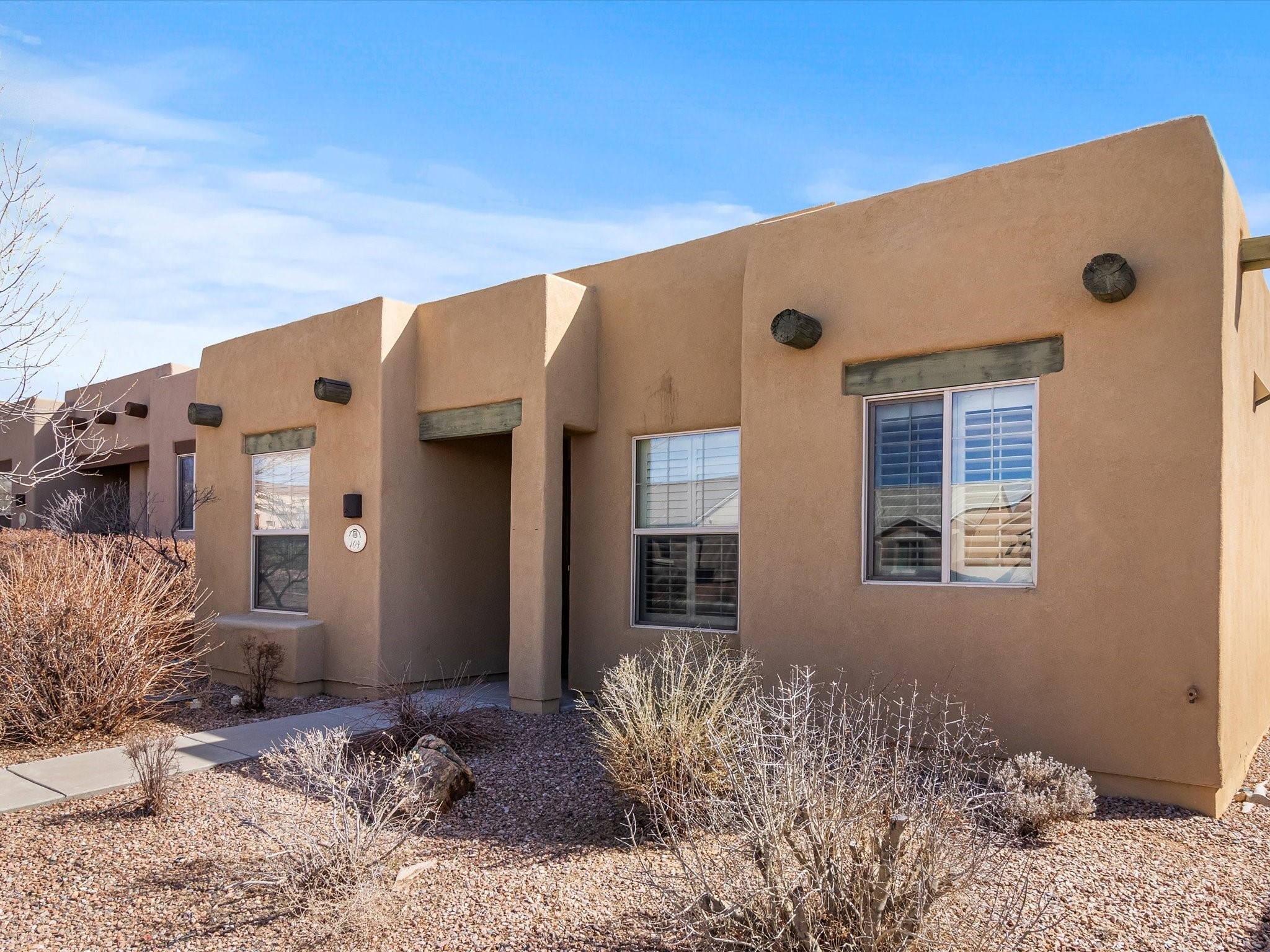 Lovely Single-Level Home in Rancho ViejoWelcome to this well maintained and versatile home, offering the perfect blend of comfort, style, and convenience. Nestled in the sought-after Rancho Viejo community, this single-level residence have an open-concept design, seamlessly connecting the kitchen, dining, and living spaces--including a cozy den--for effortless entertaining and everyday living.Featuring two bedrooms and two bathrooms, the well-thought-out floor plan provides optimal privacy. The primary suite enjoys separation from the second bedroom, ensuring a peaceful retreat. Meanwhile, the guest bathroom has been beautifully updated with a remodeled shower.Step outside to a low-maintenance backyard, complete with a covered patio and expanded slab, offering the perfect setting for outdoor relaxation. The landscaping includes mature plants and trees, highlighted by a Honeycrisp apple tree.Additional highlights include a finished two-car garage with direct access at the rear of the home, as well as ample parking for residents and guests. Take advantage of the well-maintained sidewalks leading to nearby parks and miles of community trails, perfect for walking, jogging, or cycling in Rancho Viejo. This home is an exceptional opportunity to settle into one of Santa Fe's most desirable neighborhoods. Don't miss out--schedule your private tour today and experience everything 104 Rancho Viejo Blvd. has to offer!
