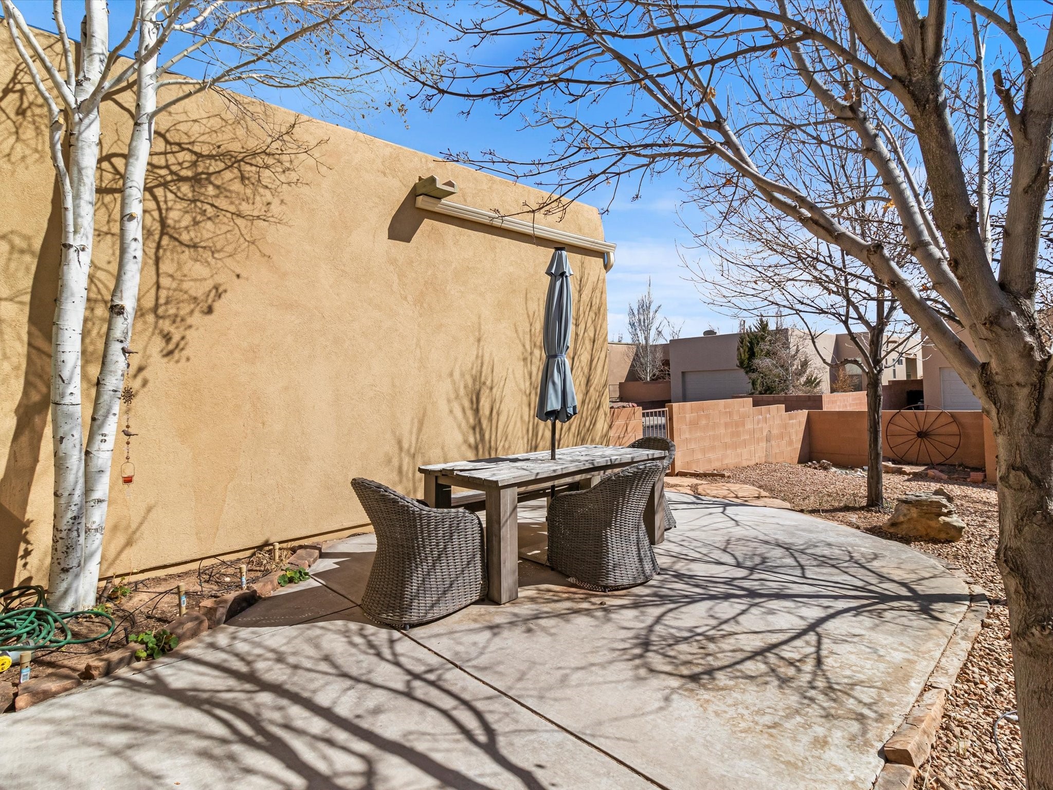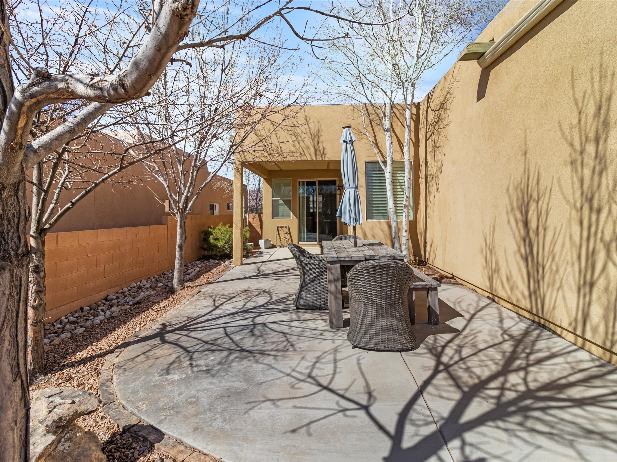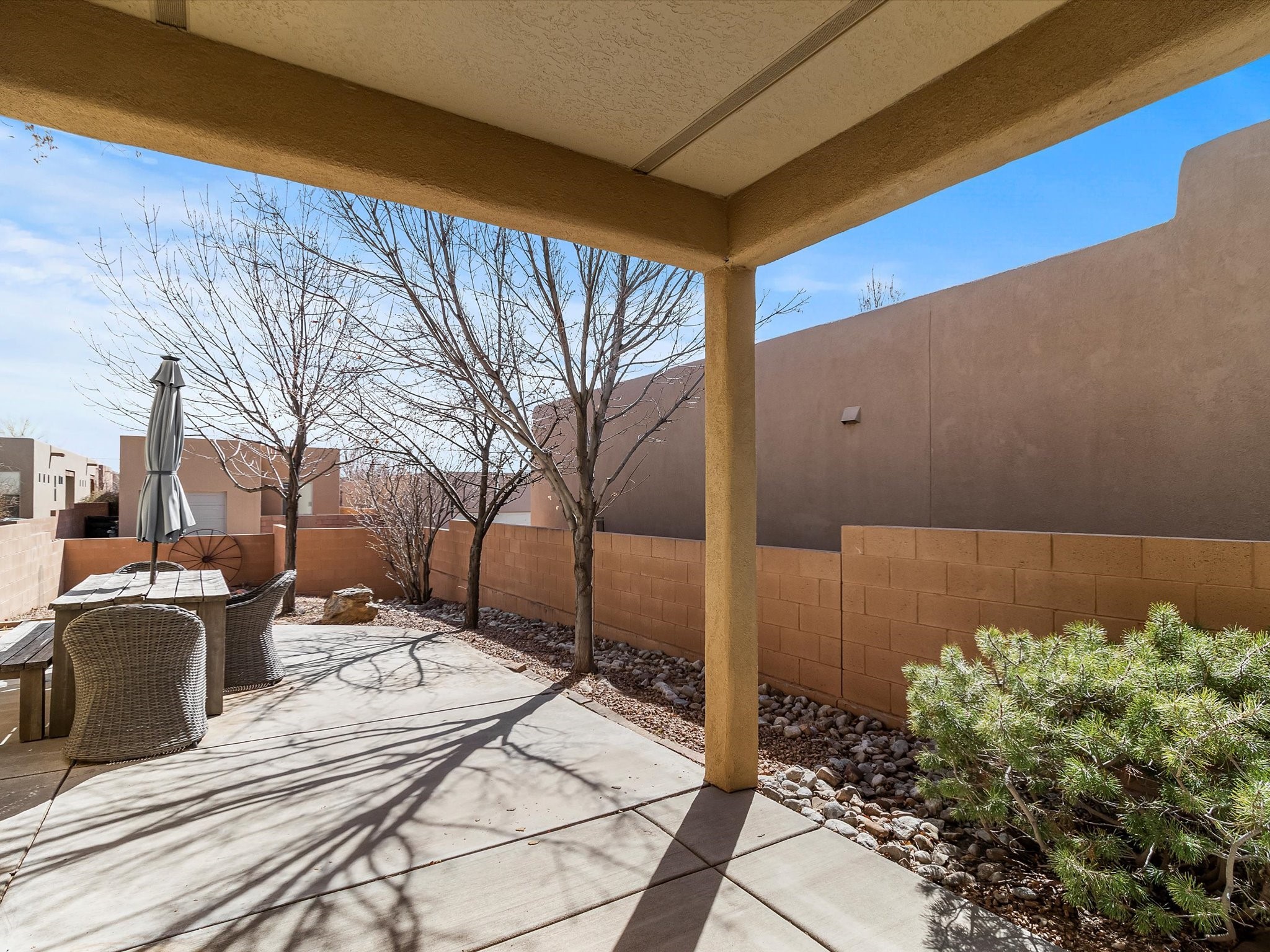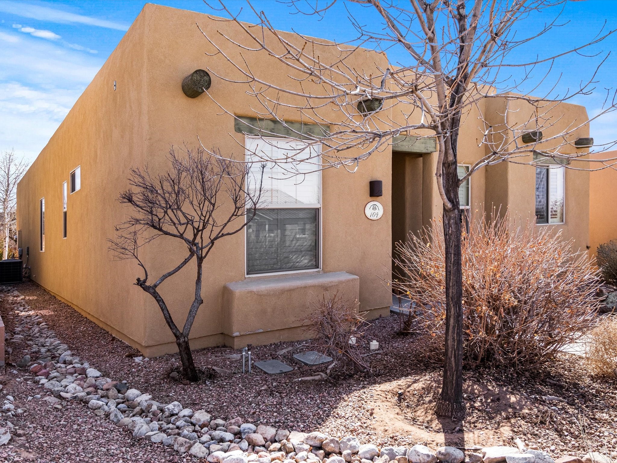 Lovely Single-Level Home in Rancho ViejoWelcome to this well maintained and versatile home, offering the perfect blend of comfort, style, and convenience. Nestled in the sought-after Rancho Viejo community, this single-level residence have an open-concept design, seamlessly connecting the kitchen, dining, and living spaces--including a cozy den--for effortless entertaining and everyday living.Featuring two bedrooms and two bathrooms, the well-thought-out floor plan provides optimal privacy. The primary suite enjoys separation from the second bedroom, ensuring a peaceful retreat. Meanwhile, the guest bathroom has been beautifully updated with a remodeled shower.Step outside to a low-maintenance backyard, complete with a covered patio and expanded slab, offering the perfect setting for outdoor relaxation. The landscaping includes mature plants and trees, highlighted by a Honeycrisp apple tree.Additional highlights include a finished two-car garage with direct access at the rear of the home, as well as ample parking for residents and guests. Take advantage of the well-maintained sidewalks leading to nearby parks and miles of community trails, perfect for walking, jogging, or cycling in Rancho Viejo. This home is an exceptional opportunity to settle into one of Santa Fe's most desirable neighborhoods. Don't miss out--schedule your private tour today and experience everything 104 Rancho Viejo Blvd. has to offer!