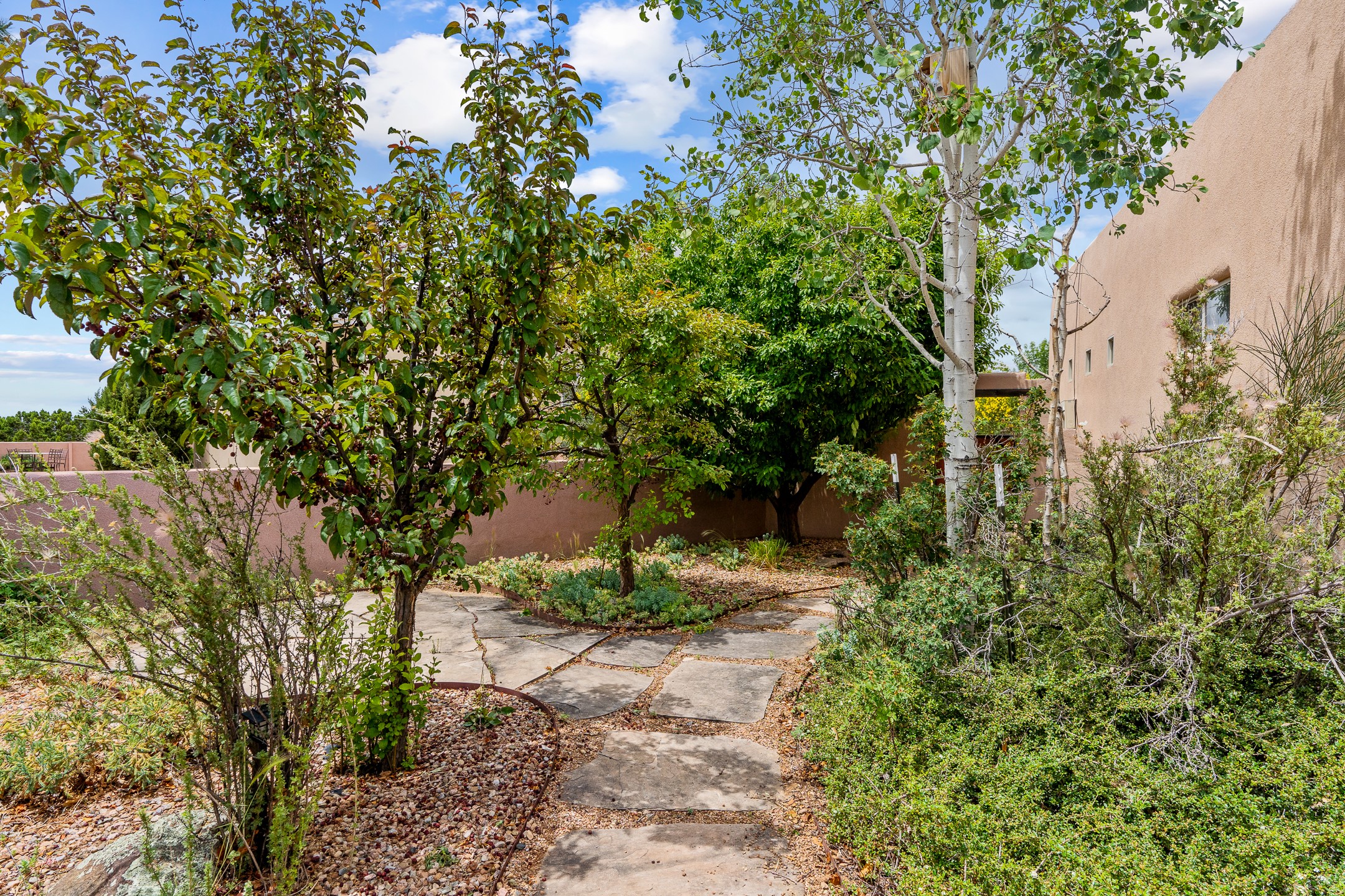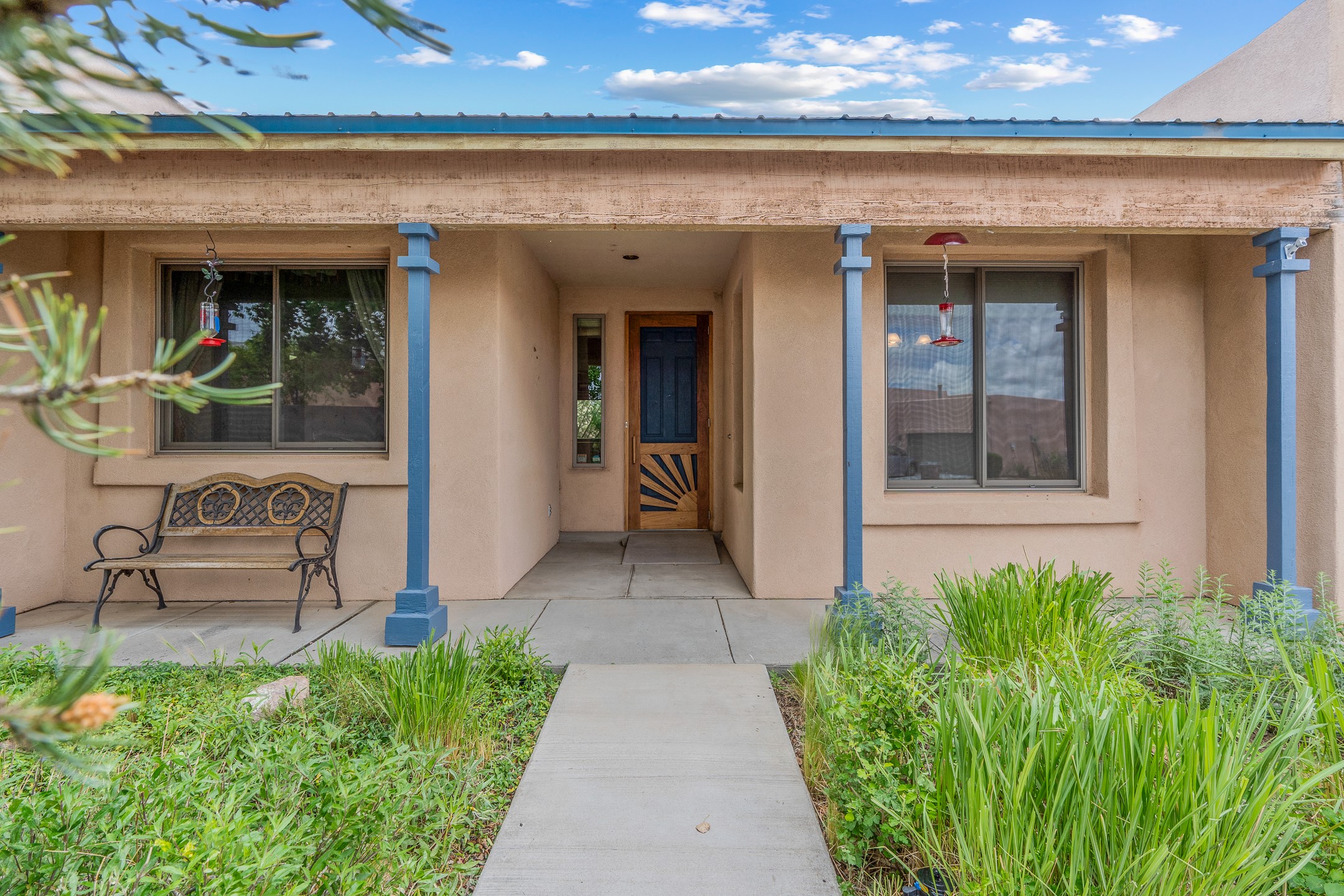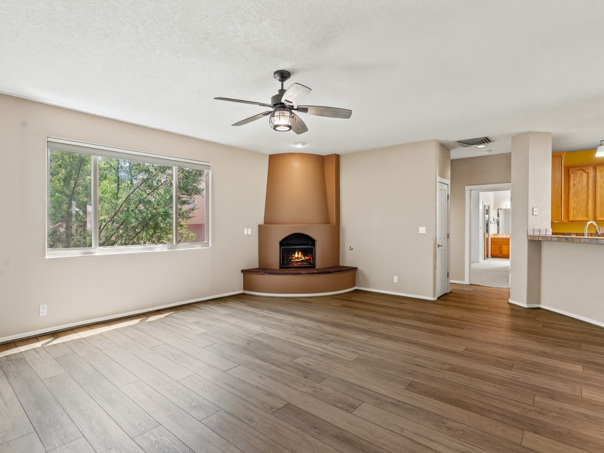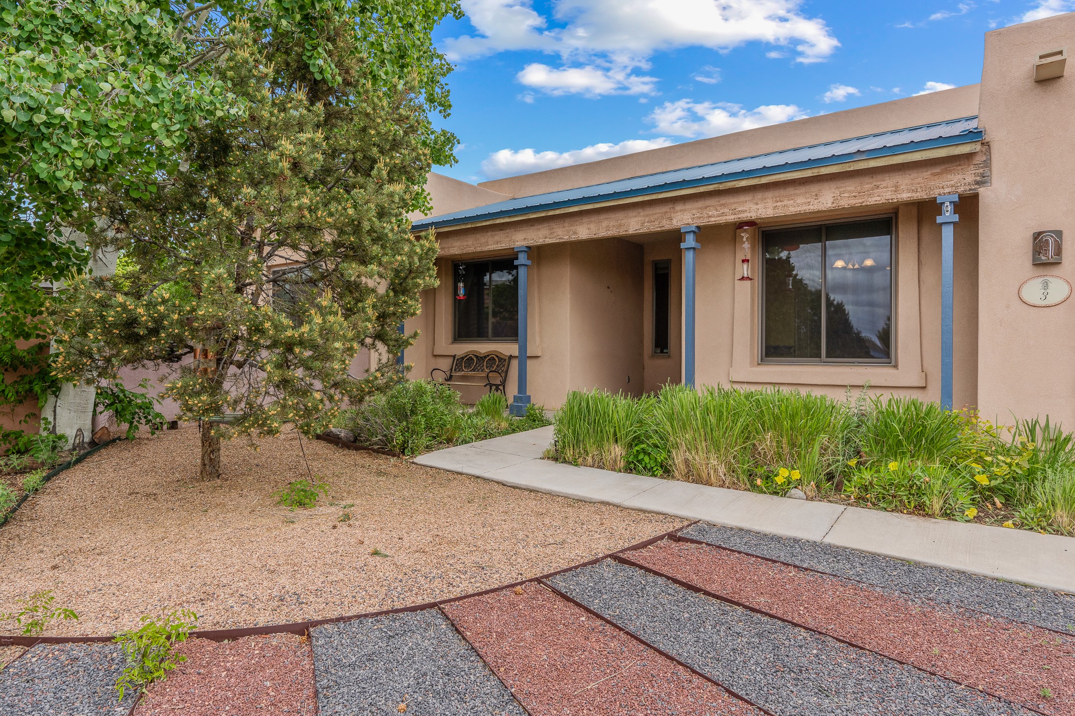 Privately positioned at the end of a cul-de-sac in Rancho Viejo, 3 Periwinkle Place offers a comfortable single-level layout with 3 bedrooms and 2 bathrooms, thoughtfully designed with separation in mind. The primary suite and two guest bedrooms are located on opposite sides of the home, creating a sense of privacy and flexibility. This approximately 1,846 square foot home features a gas kiva fireplace at the heart of a spacious kitchen and living area, providing a warm and open gathering space. Radiant in-floor heating and evaporative cooling ensure year-round comfort. Brand new carpet has been installed throughout the whole house, enhancing its fresh and inviting feel. Sliding doors open to a catio, offering a protected outdoor area for pets or quiet relaxation. The home sits adjacent to a landscaped open greenbelt, offering a calm and natural backdrop. The outdoor areas include mature landscaping, a drip irrigation system, and a covered patio designed for low-maintenance enjoyment. The layout supports both day-to-day ease and comfortable hosting. Recent upgrades completed in 2023 include a new boiler, new water heater, and a new roof, providing added value and peace of mind. Additional features include a two-car garage, underground utilities, and convenient access to nearby schools, restaurants, and I-25. Buyers are encouraged to verify square footage, lot size, and all features to their own satisfaction.