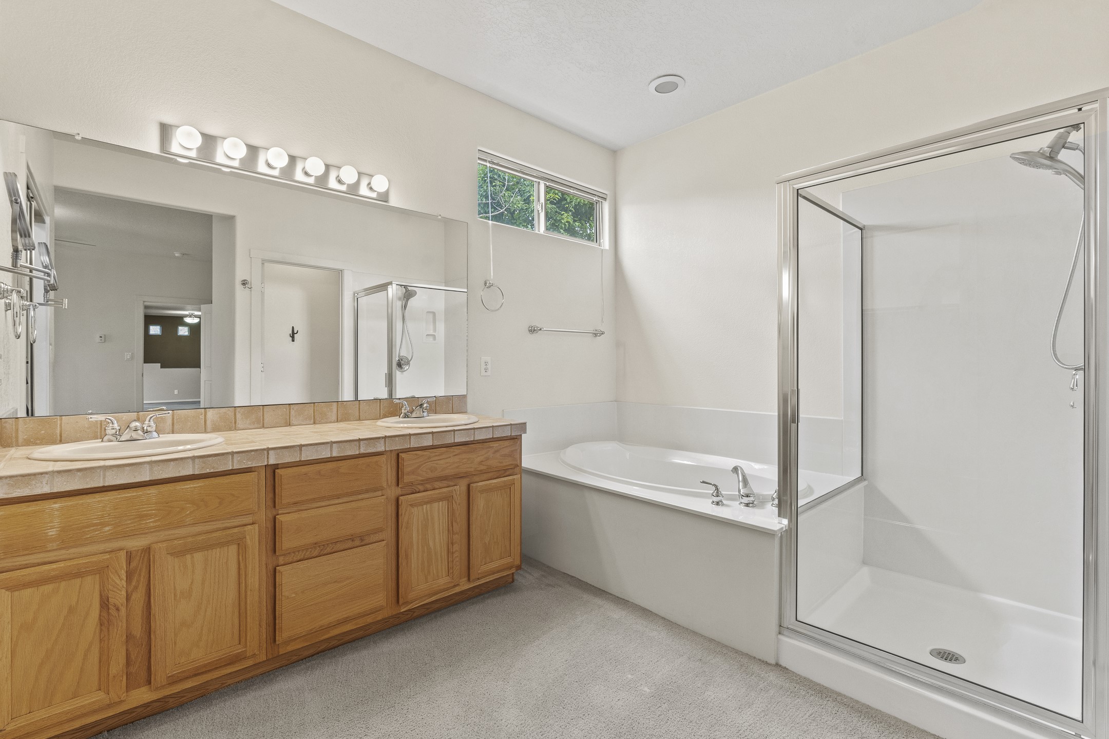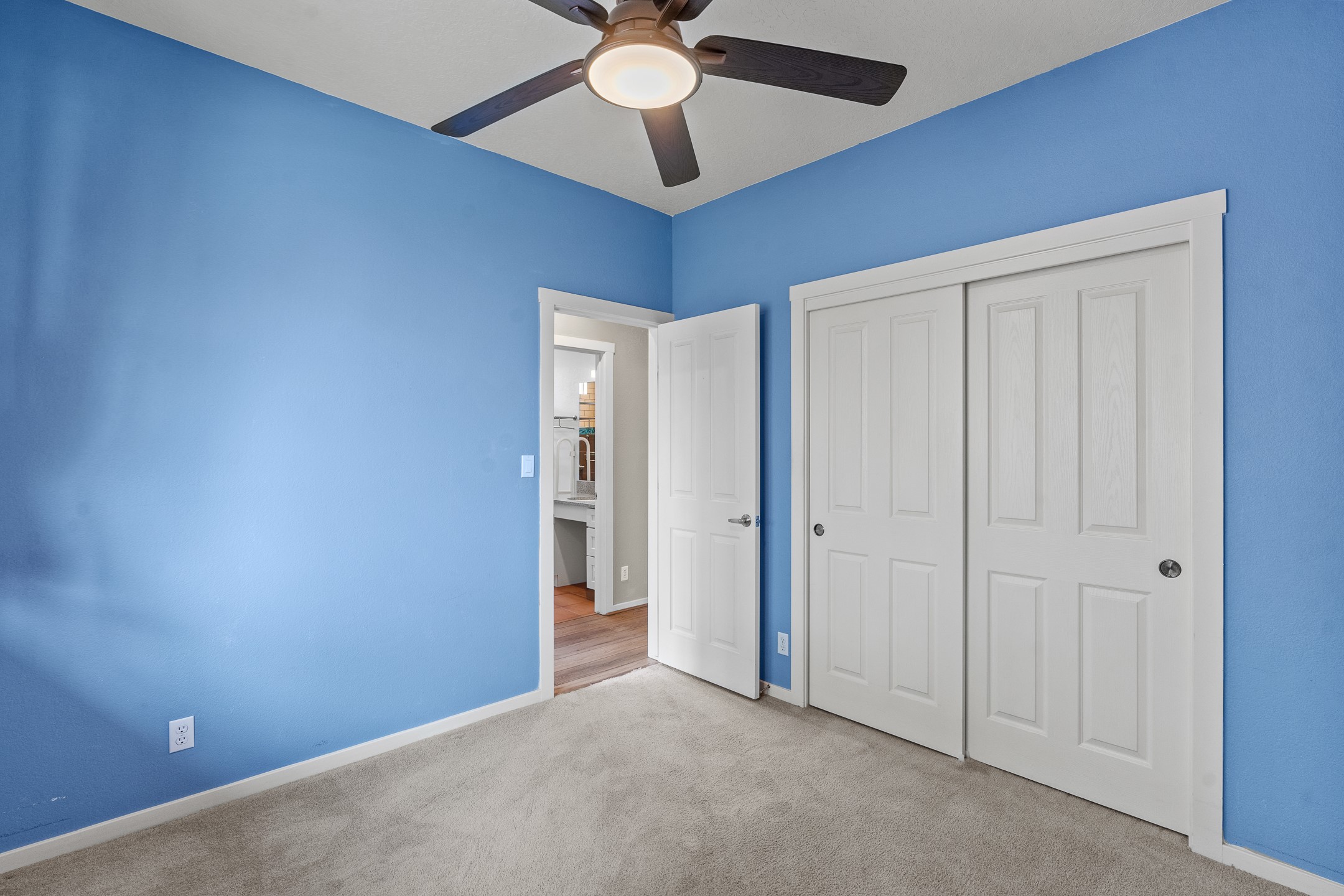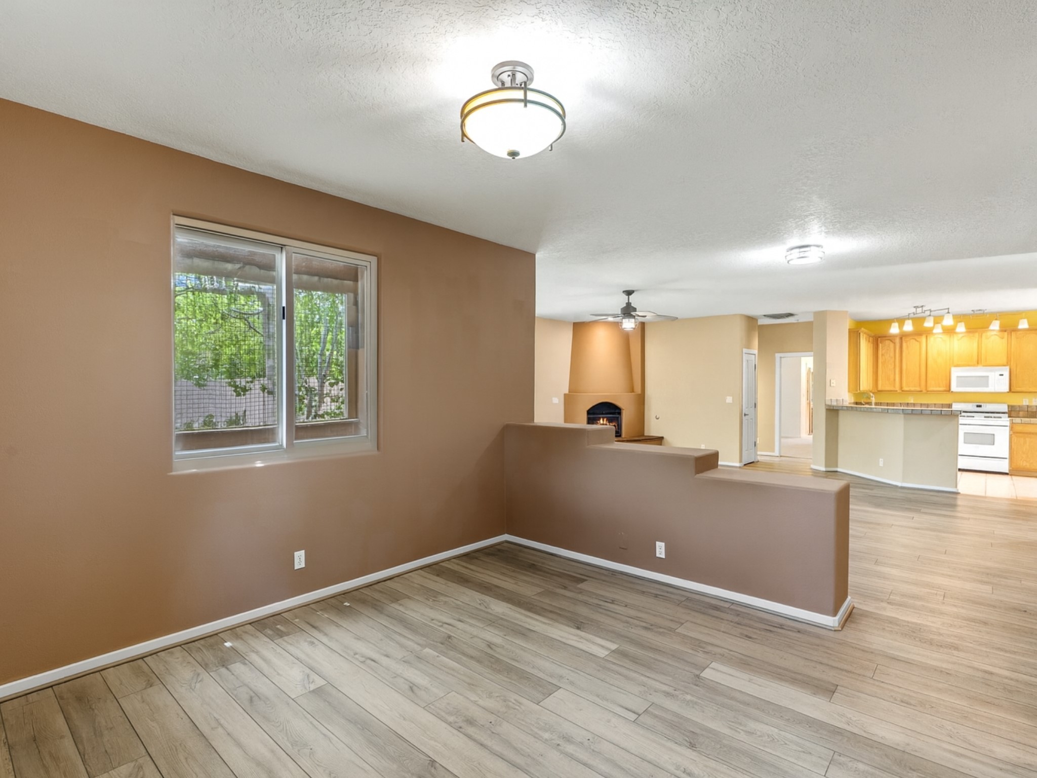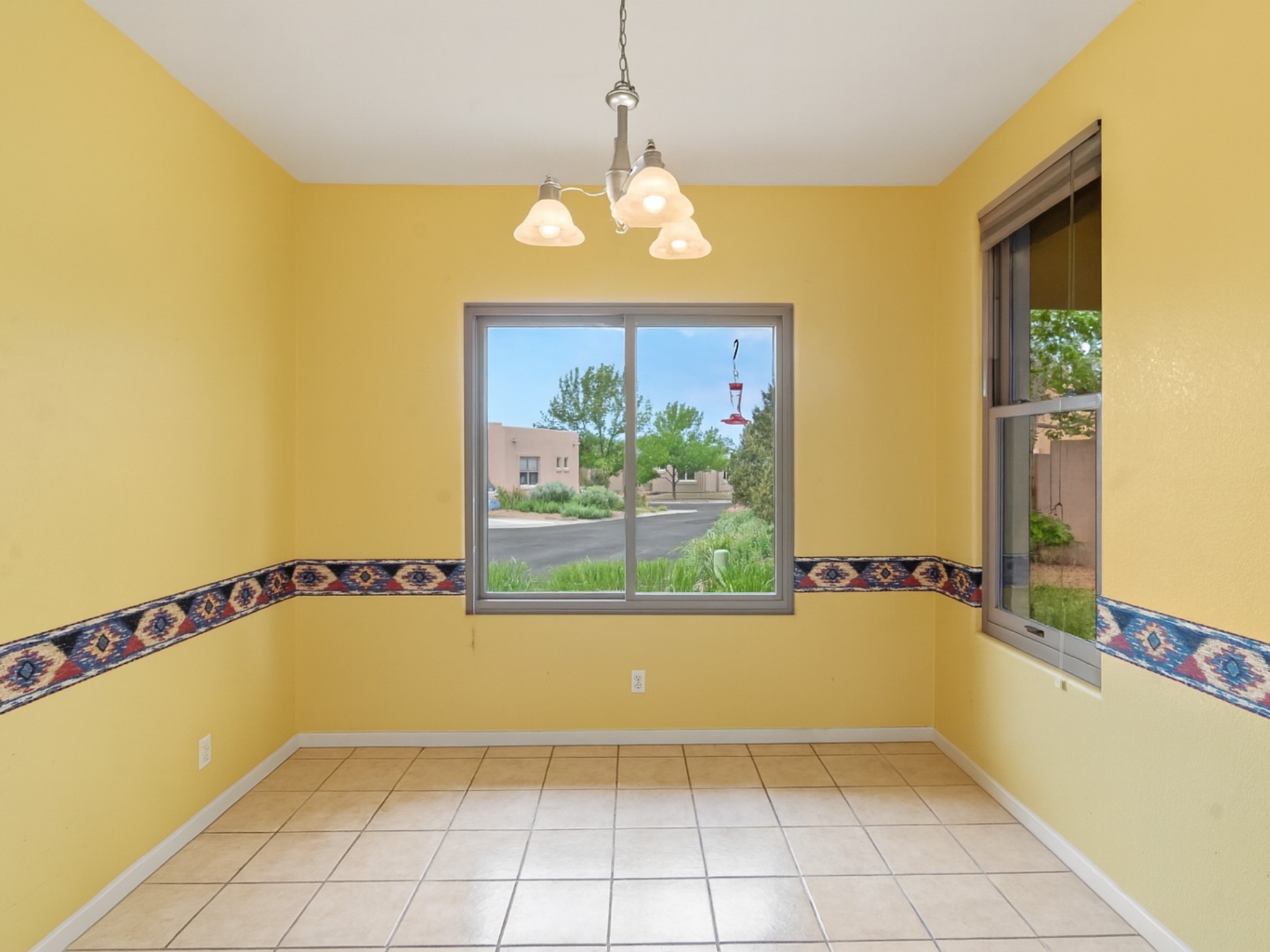 Privately positioned at the end of a cul-de-sac in Rancho Viejo, 3 Periwinkle Place offers a comfortable single-level layout with 3 bedrooms and 2 bathrooms, thoughtfully designed with separation in mind. The primary suite and two guest bedrooms are located on opposite sides of the home, creating a sense of privacy and flexibility. This approximately 1,846 square foot home features a gas kiva fireplace at the heart of a spacious kitchen and living area, providing a warm and open gathering space. Radiant in-floor heating and evaporative cooling ensure year-round comfort. Brand new carpet has been installed throughout the whole house, enhancing its fresh and inviting feel. Sliding doors open to a catio, offering a protected outdoor area for pets or quiet relaxation. The home sits adjacent to a landscaped open greenbelt, offering a calm and natural backdrop. The outdoor areas include mature landscaping, a drip irrigation system, and a covered patio designed for low-maintenance enjoyment. The layout supports both day-to-day ease and comfortable hosting. Recent upgrades completed in 2023 include a new boiler, new water heater, and a new roof, providing added value and peace of mind. Additional features include a two-car garage, underground utilities, and convenient access to nearby schools, restaurants, and I-25. Buyers are encouraged to verify square footage, lot size, and all features to their own satisfaction.