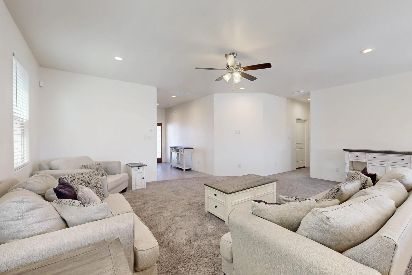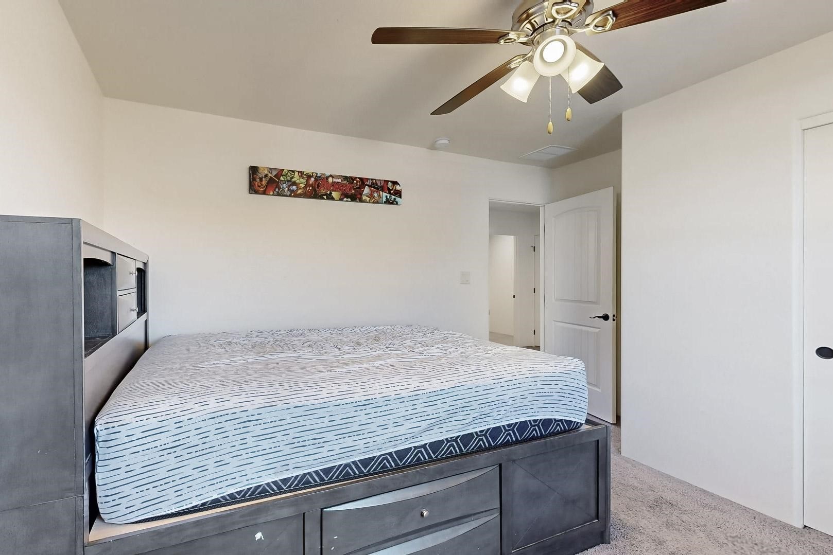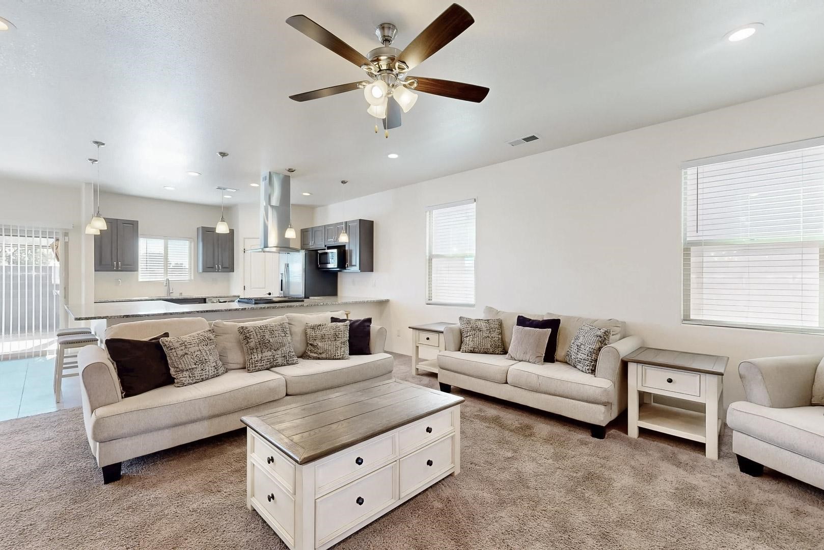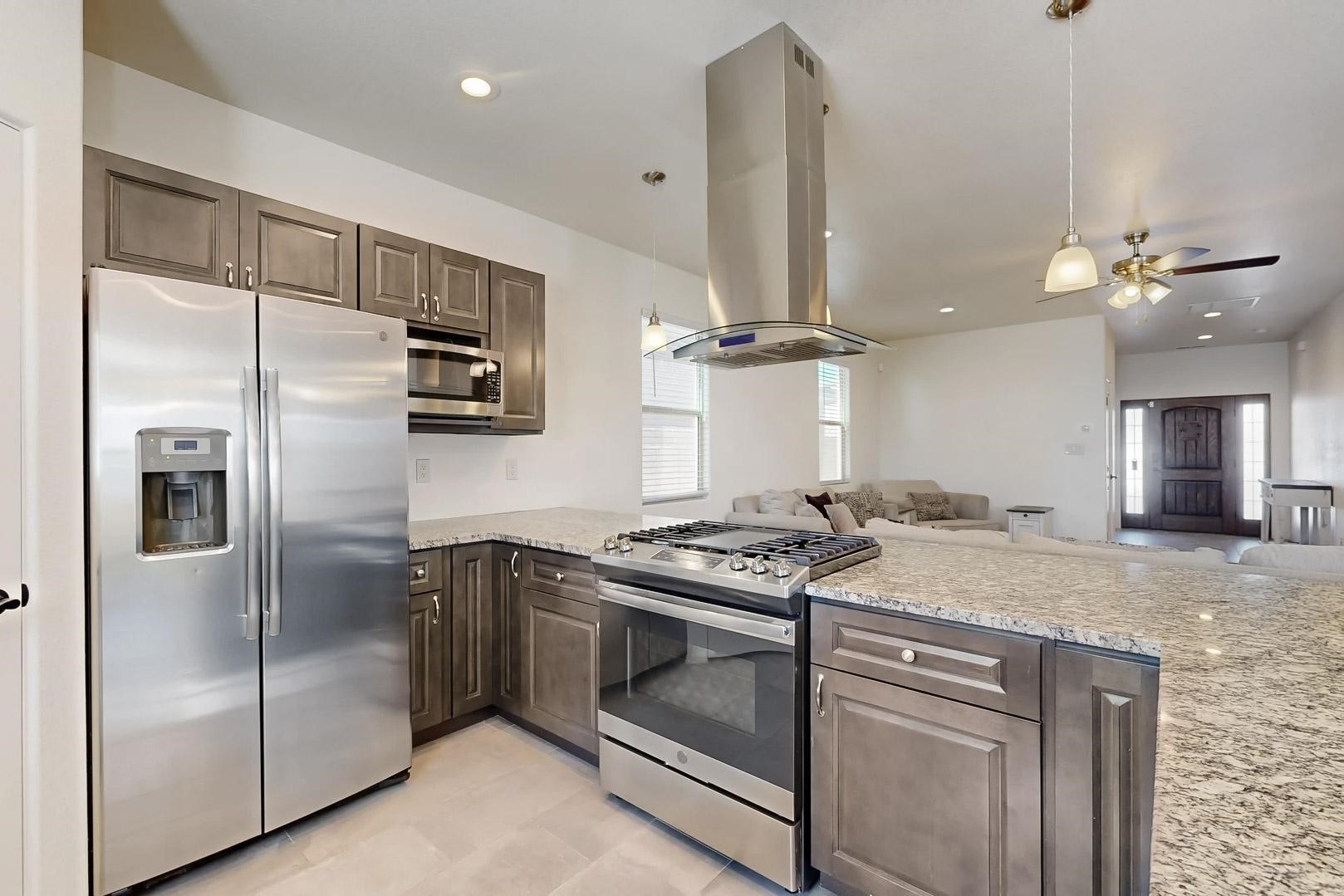 This spacious home has it all! Built at the end of 2019 in the Casas Bonitas subdivision, this home boasts 5 bedrooms, 3 bathrooms, and two living areas. On the main level you will find one bedroom, one bathroom, a chef's kitchen with granite countertops, stainless steel appliances, a pantry, and an abundance of tasteful cabinets. Off the kitchen, the dining room is ideal for family breakfasts or intimate dinners and the living room, although large, is cozy and homey. Upstairs you'll find the generously sized primary suite, complete with dual vanities, a soaking tub, a separate shower, and a walk-in closet, three additional bedrooms, a third bathroom, the laundry room and a large loft. Outside, enjoy fully landscaped front and back yards, complete with patios, a pergola, dog run, and a large space that can be used for RV parking, storage or additional vehicles. The backyard is walled and there are no adjoining neighbors behind the home. Additional highlights include granite countertops throughout the home, a finished two-car garage, solar, refrigerated air, tankless water heater, dual zone furnace, energy-efficient systems and green certification.