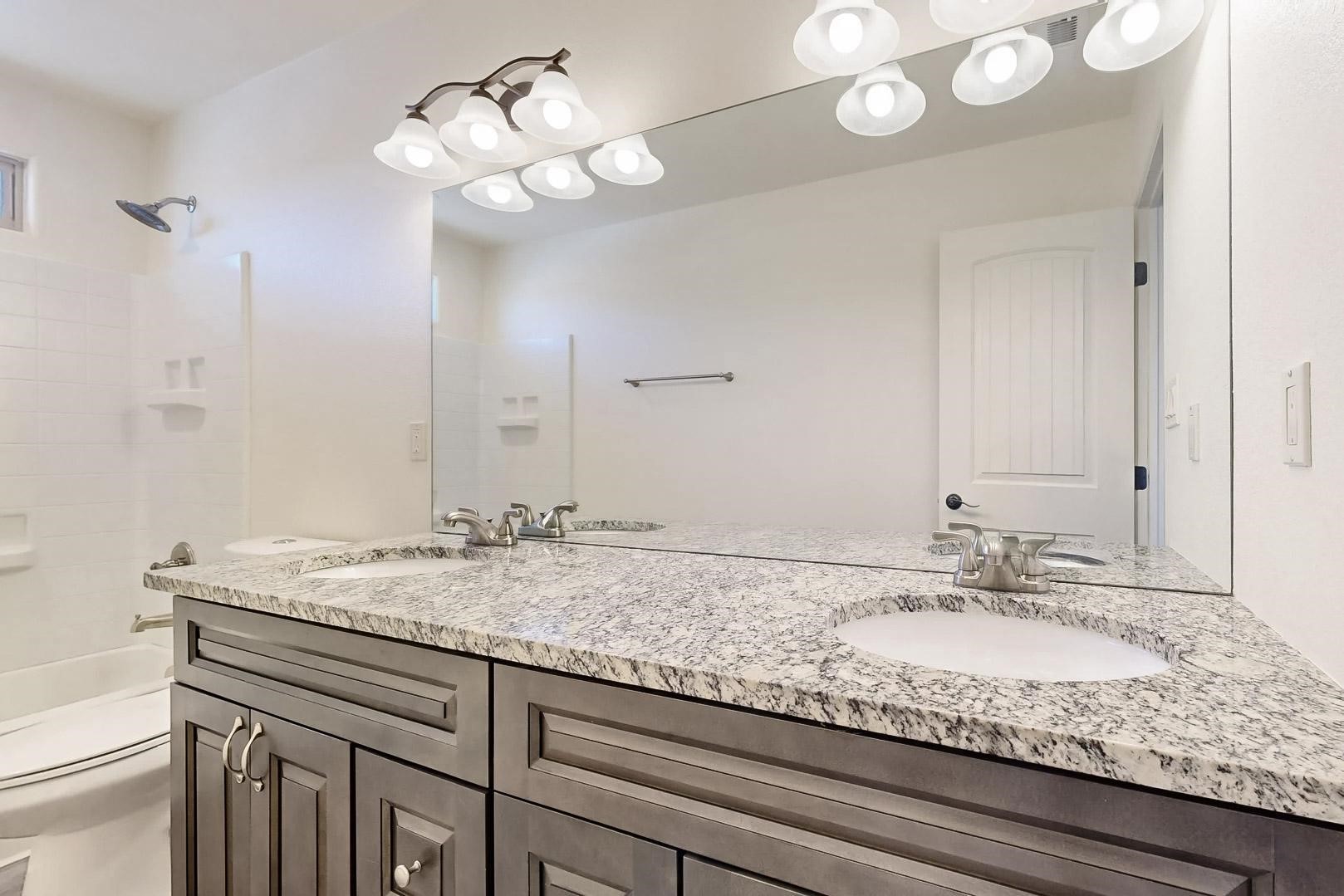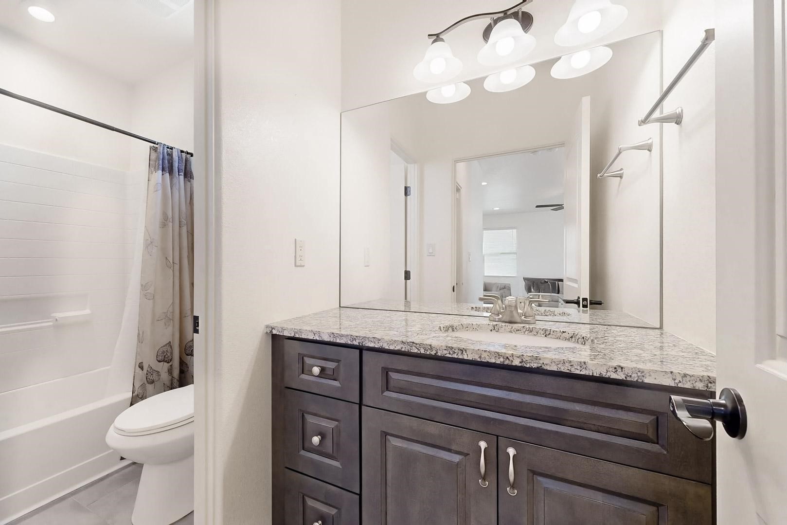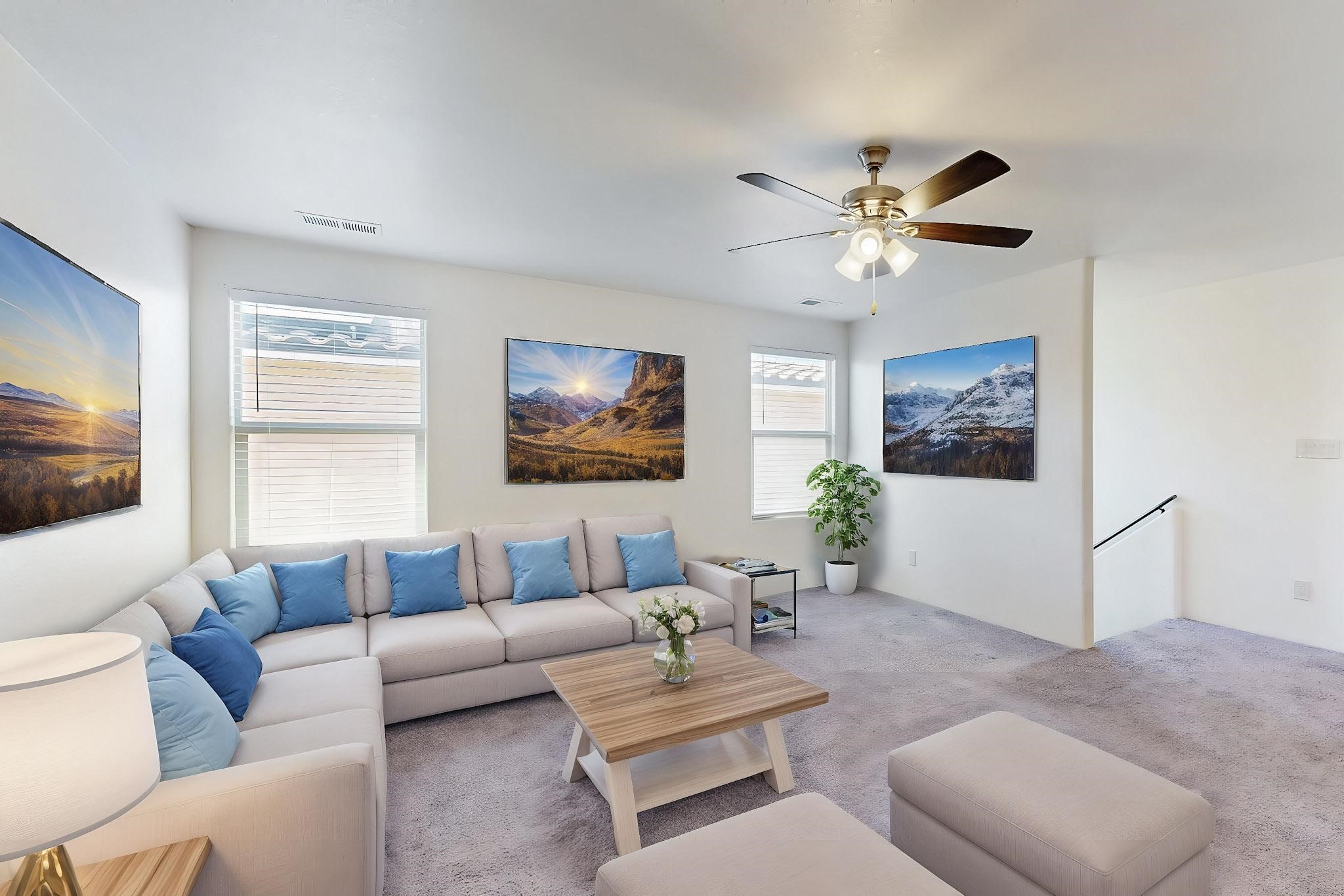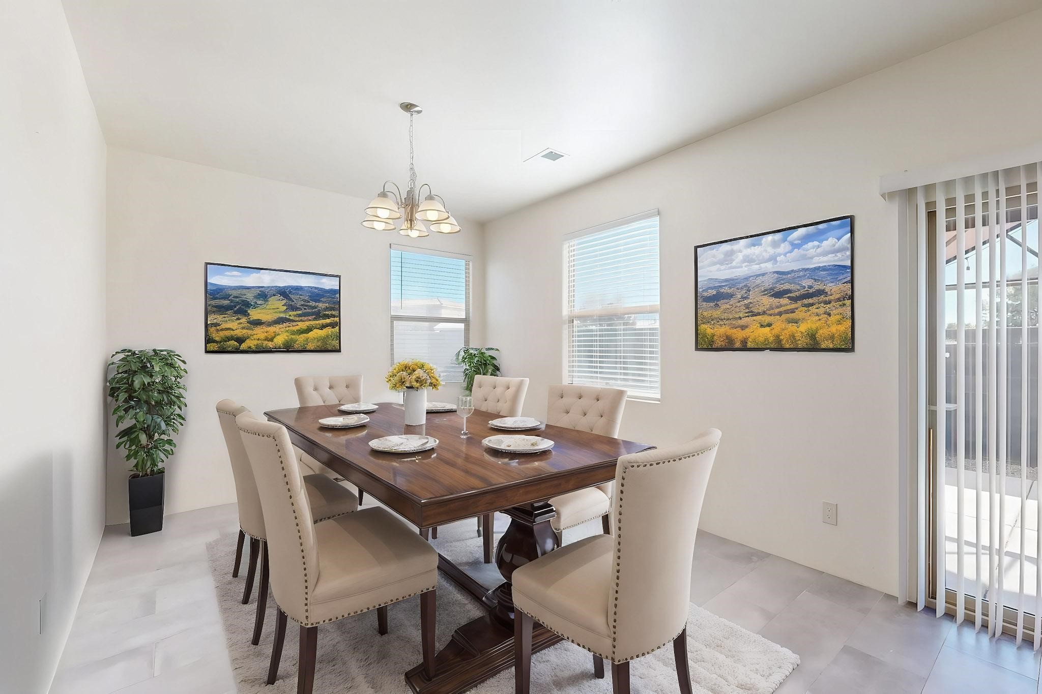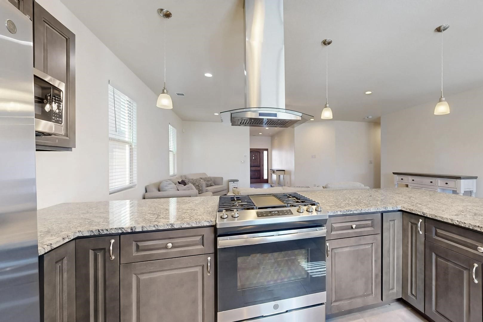 This spacious home has it all! Built at the end of 2019 in the Casas Bonitas subdivision, this home boasts 5 bedrooms, 3 bathrooms, and two living areas. On the main level you will find one bedroom, one bathroom, a chef's kitchen with granite countertops, stainless steel appliances, a pantry, and an abundance of tasteful cabinets. Off the kitchen, the dining room is ideal for family breakfasts or intimate dinners and the living room, although large, is cozy and homey. Upstairs you'll find the generously sized primary suite, complete with dual vanities, a soaking tub, a separate shower, and a walk-in closet, three additional bedrooms, a third bathroom, the laundry room and a large loft. Outside, enjoy fully landscaped front and back yards, complete with patios, a pergola, dog run, and a large space that can be used for RV parking, storage or additional vehicles. The backyard is walled and there are no adjoining neighbors behind the home. Additional highlights include granite countertops throughout the home, a finished two-car garage, solar, refrigerated air, tankless water heater, dual zone furnace, energy-efficient systems and green certification.
