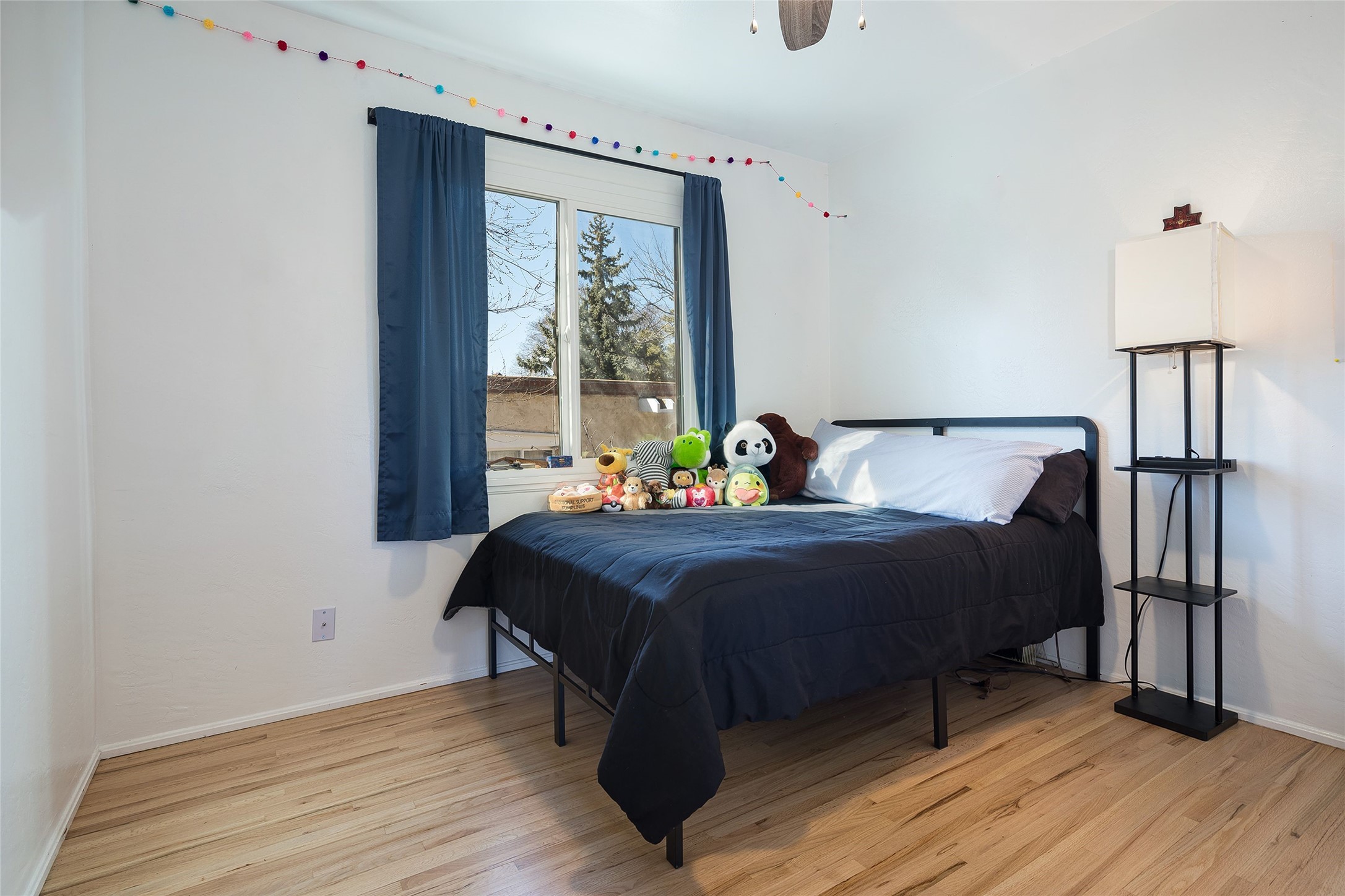 Located on one of the most iconic streets in Casa Solana, within walking distance to the Plaza, shopping and restaurants, this exceptional, updated Stamm-built home, excites and captivates with timeliness Santa Fe architecture, perfectly blended with a modern flare and impresses with updated, expansive front and backyard outdoor living areas. Ideal as a primary residence or the ultimate secondary home retreat, this one of a kind, in-town residence, incorporates the unique blend of contemporary design features and updates, with the inherent warmth of a quality Santa Fe home. This special 3 bedroom, 2 bath home, with a one car garage, plus a carport and an attached heated storage room, is one of the finest homes in Casa Solana. Ideal for entertaining, the open-concept floor plan offers a spacious living room with courtyard views and a cozy kiva fireplace and dining room, located directly off the kitchen, with access to the vast outdoor entertainment areas through sliding glass doors. The updated, well-appointed modern kitchen delights with stainless Samsung appliances and a pantry, accessed from the adjacent laundry room with ample storage. The owner's suite enjoys tranquil views of the beautifully landscaped backyard and an updated ensuite bath. The two guest bedrooms share an updated full bath with spa-like marble-top vanity. The extraordinary outdoor living areas are truly a rarity, starting with the impressive, landscaped, fully enclosed front entrance courtyard and the massive backyard, which is also fully enclosed and ideal for endless outdoor activities. Exceptional features include exquisite hardwood and tile flooring throughout the main living areas, rich wood plank ceilings with vigas in the living room, soft natural light throughout, central heating air conditioning and a one-car garage with an attached workshop space or extra storage. This home is a true rare offering and not to be missed!
