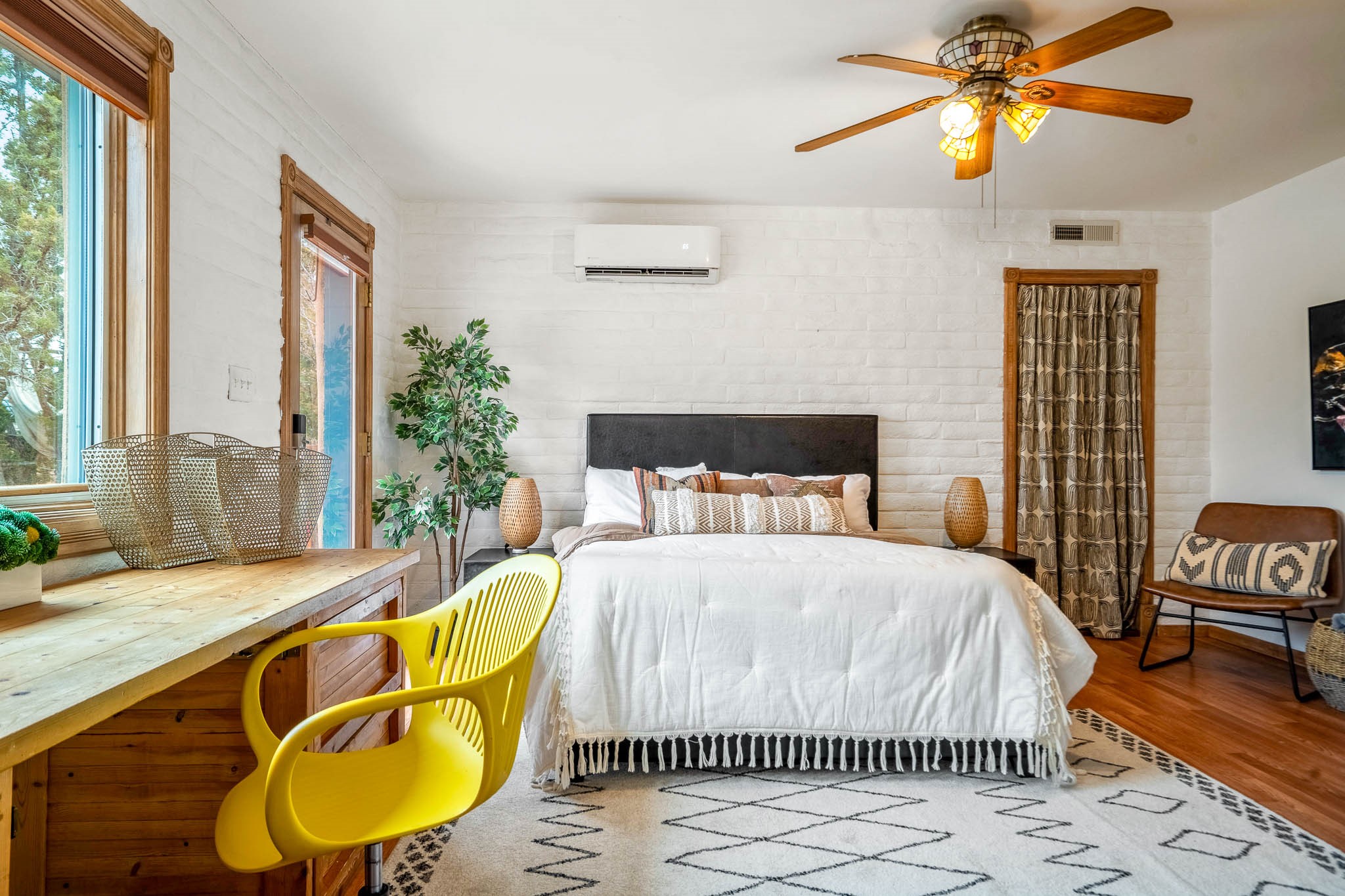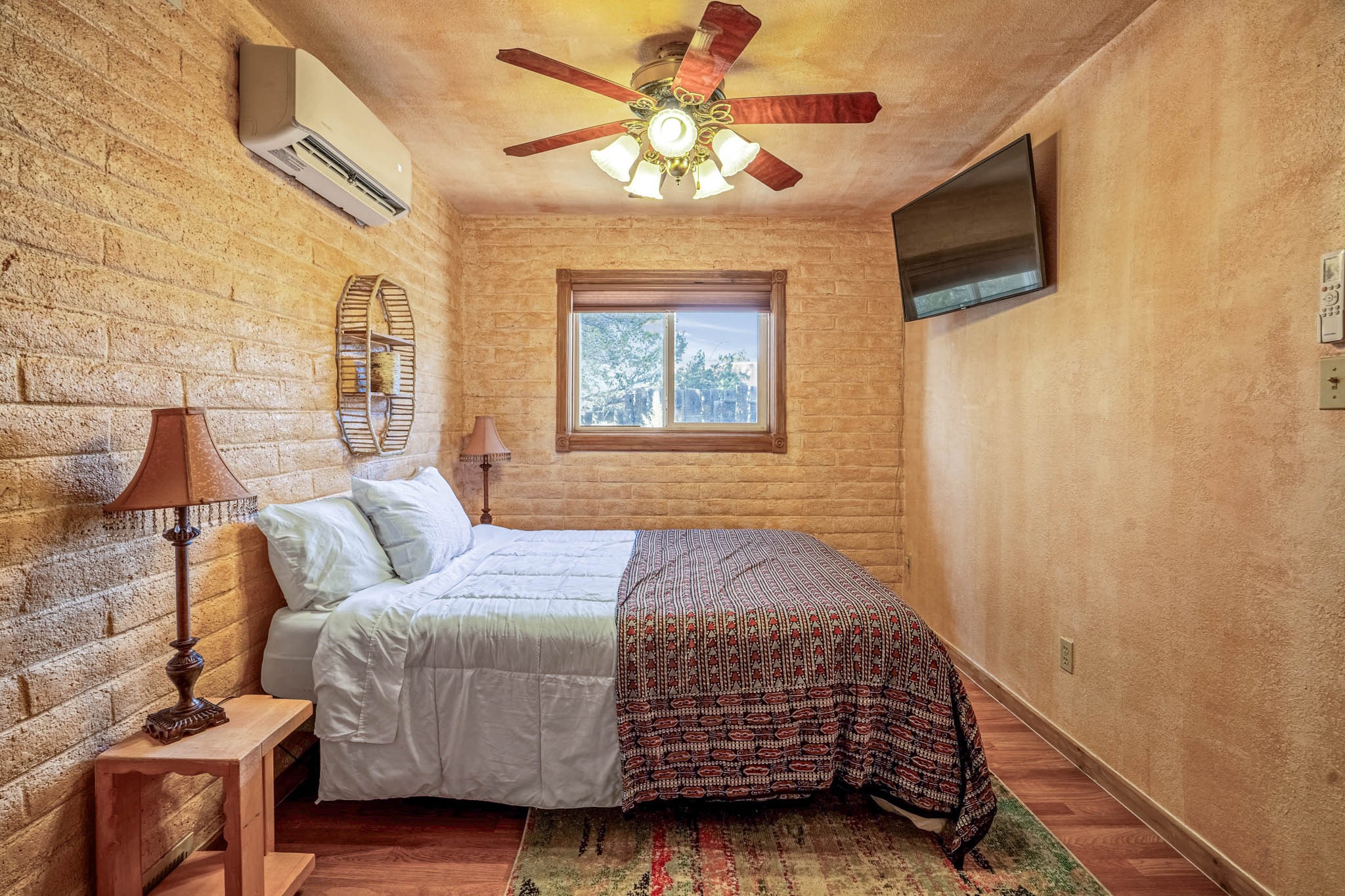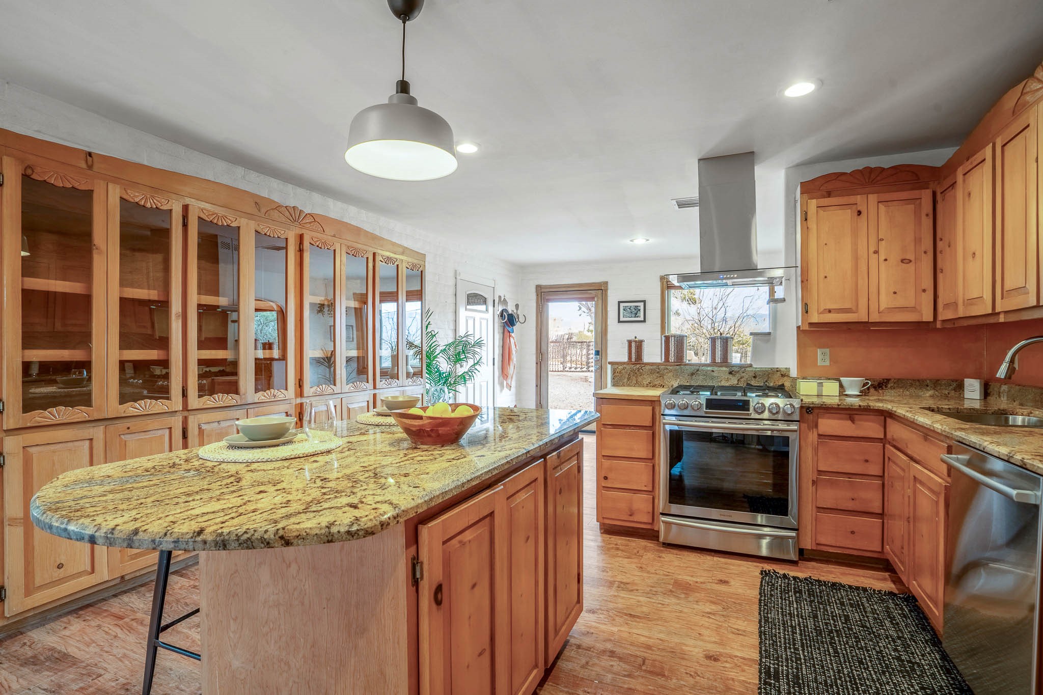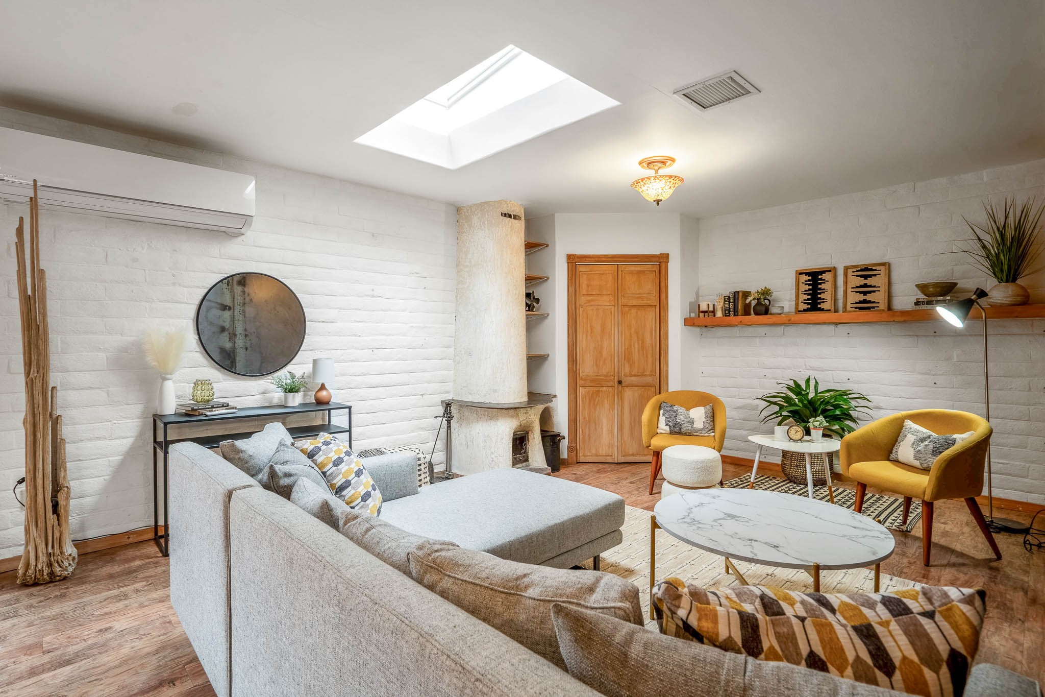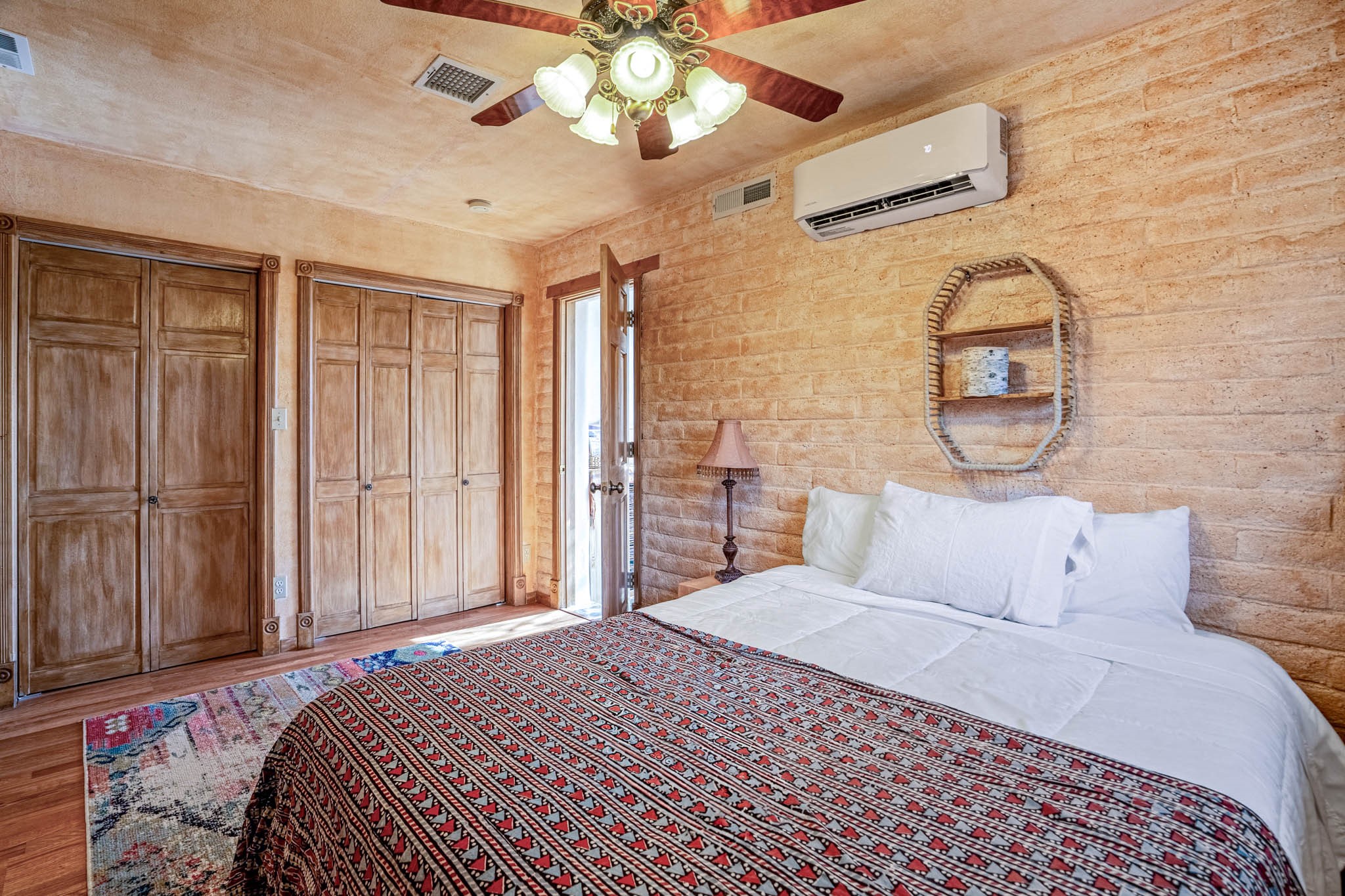 Just minutes from the Plaza, this charming 1,385 sq. ft. home offers the perfect blend of Southwestern character, modern updates, and exceptional flexibility. Set on a spacious lot with views of the Sangre de Cristo Mountains, the property provides easy access to the Ortiz Dog Park, River Trail, and the Co-op. The 1089 sq. ft. main house features an inviting open-concept design with a renovated kitchen, complete with granite countertops, an island, and a cozy living room with an artistic wood-burning fireplace. The primary suite enjoys mountain views, a bathroom, and a generous walk-in shower. An attached one-car garage adds convenience. Currently configured as a home with an attached 305 sq. ft. studio casita--rented on a monthly basis--the property offers great investment potential. The casita includes a full bathroom, kitchenette, and private entrance, making it ideal as a guest space or rental. With a simple modification, the home can easily be converted back to a two-bedroom, three-bathroom residence. This unique property offers a great downtown location, mountain views, and flexible living options--a rare opportunity in the heart of Santa Fe