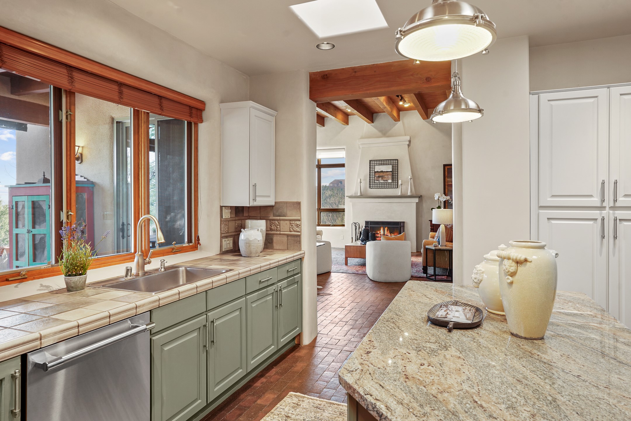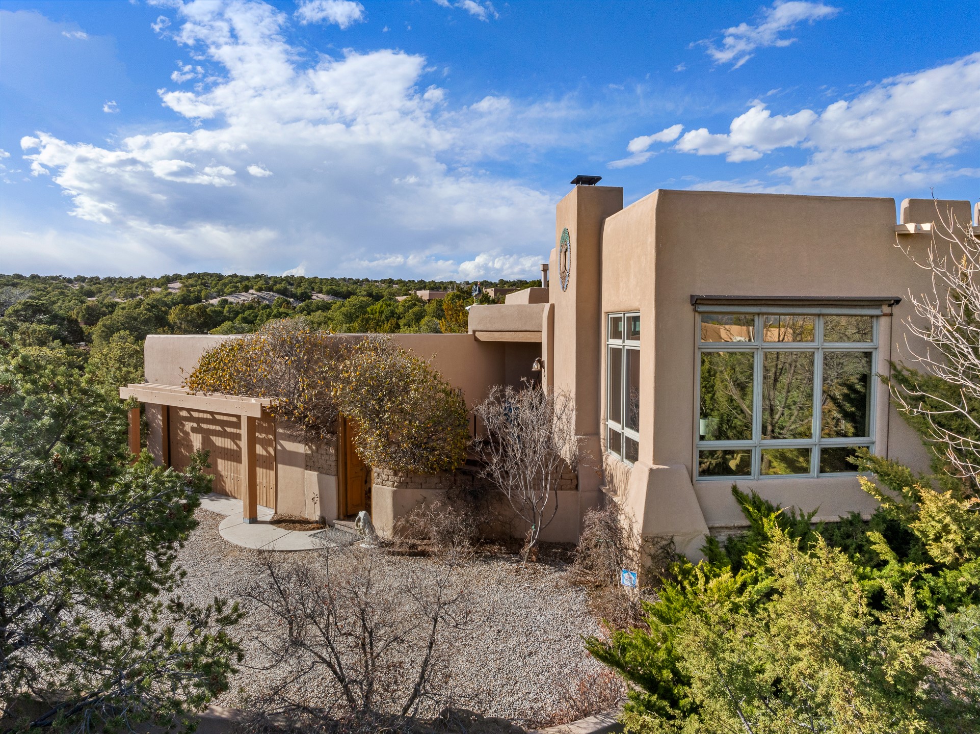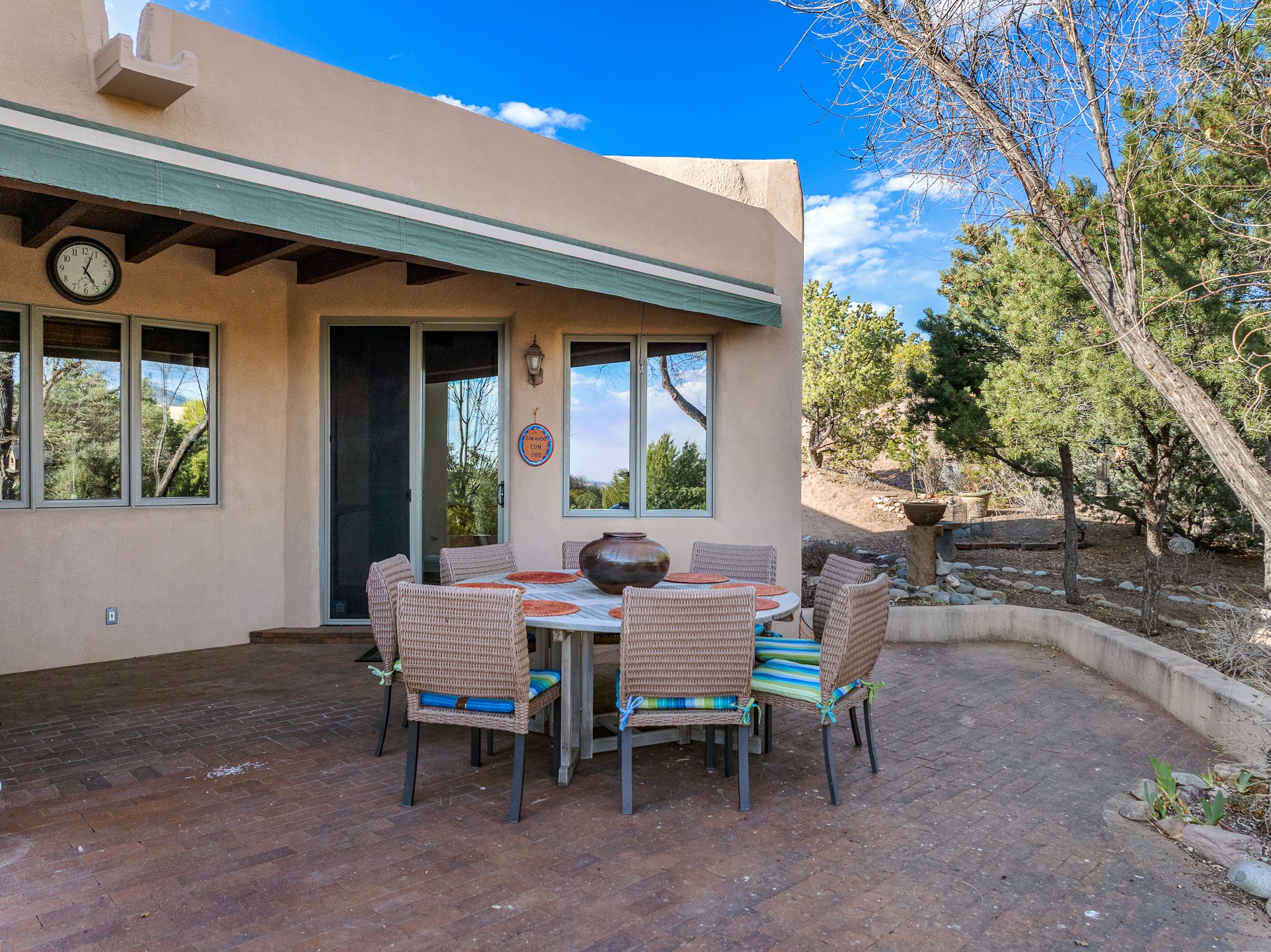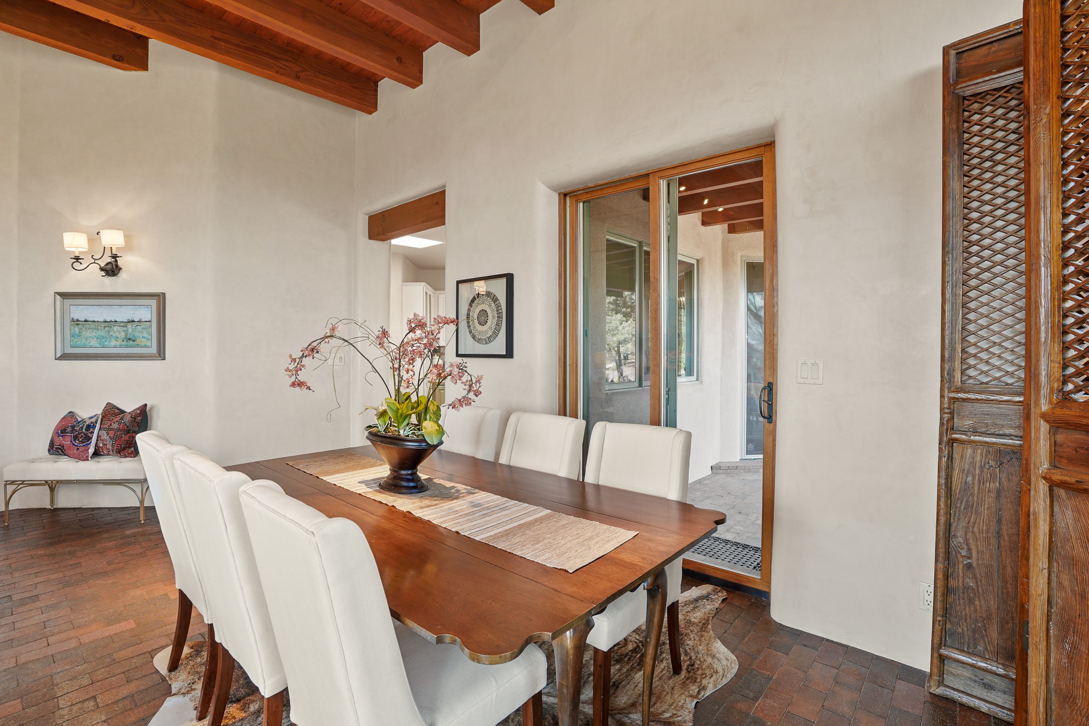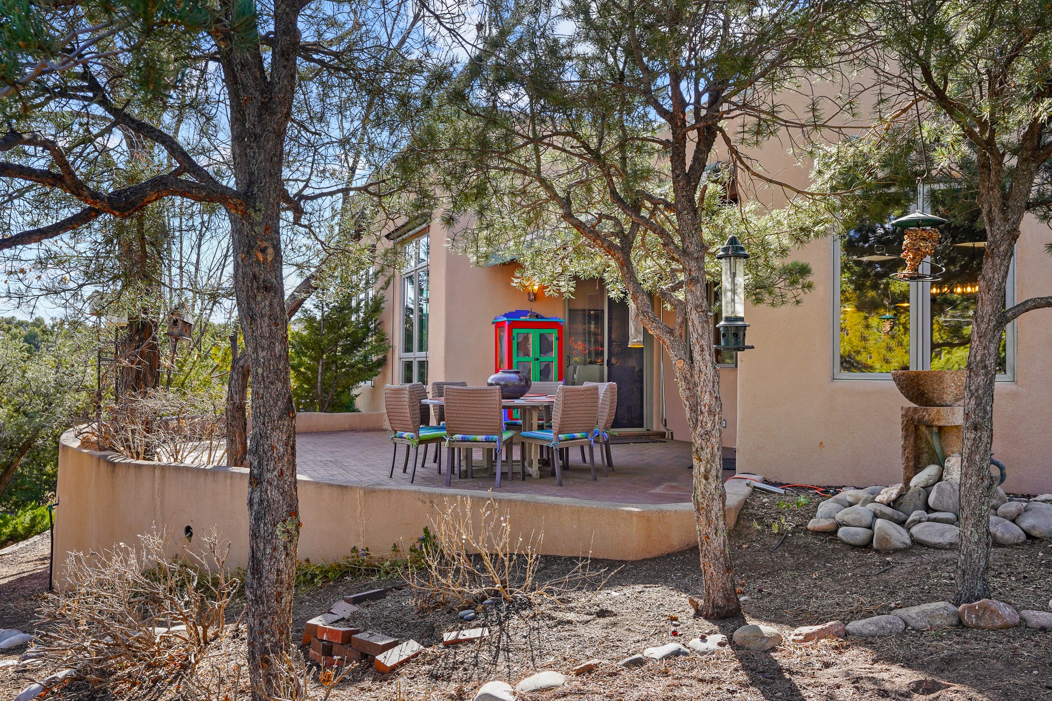Tucked away in the peaceful and sought-after Santa Fe Estates neighborhood, 855 Camino Francisca is a delightful, expansive single-family home built in 2001. This 3-bedroom, 2-bathroom residence spans 2,508 sq. ft. of beautifully designed living space on a 1.64-acre lot.Exuding classic Santa Fe charm, the home features high ceilings with exposed beams, stunning brick floors, in-floor radiant heating, and hand-troweled plaster walls. The inviting living area showcases a Rumford fireplace and large windows framing picturesque views of the foothills, trees, and ever-changing Santa Fe skies. The chef's kitchen boasts stylish tile countertops, custom cabinetry, and stainless steel appliances. A cozy breakfast nook with a charming Kiva fireplace adds warmth and character.Step outside from the living room or breakfast nook onto a spacious patio, perfect for enjoying the tranquil surroundings and abundant birdlife. This peaceful outdoor space is ideal for entertaining or savoring a quiet morning coffee. The current owners have thoughtfully added bird feeders to attract local wildlife, enhancing the serene atmosphere.The oversized primary suite serves as a private sanctuary, with a sliding glass door leading to a secluded patio. The en-suite bathroom features a large soaking tub, roomy snail shower, dual sinks, and an expansive walk-in closet. Two additional guest bedrooms share a full bathroom.Additional highlights include a welcoming entryway, skylights, a large laundry room, and a two-car garage. The neighborhood is known for its quiet atmosphere, low traffic, and well-maintained homes, all just minutes from Santa Fe Plaza, Devargas Mall, and local shopping centers.855 Camino Francisca blends style, comfort, and tranquility, making it an ideal choice for those seeking a spacious home with easy access to the best of Santa Fe.