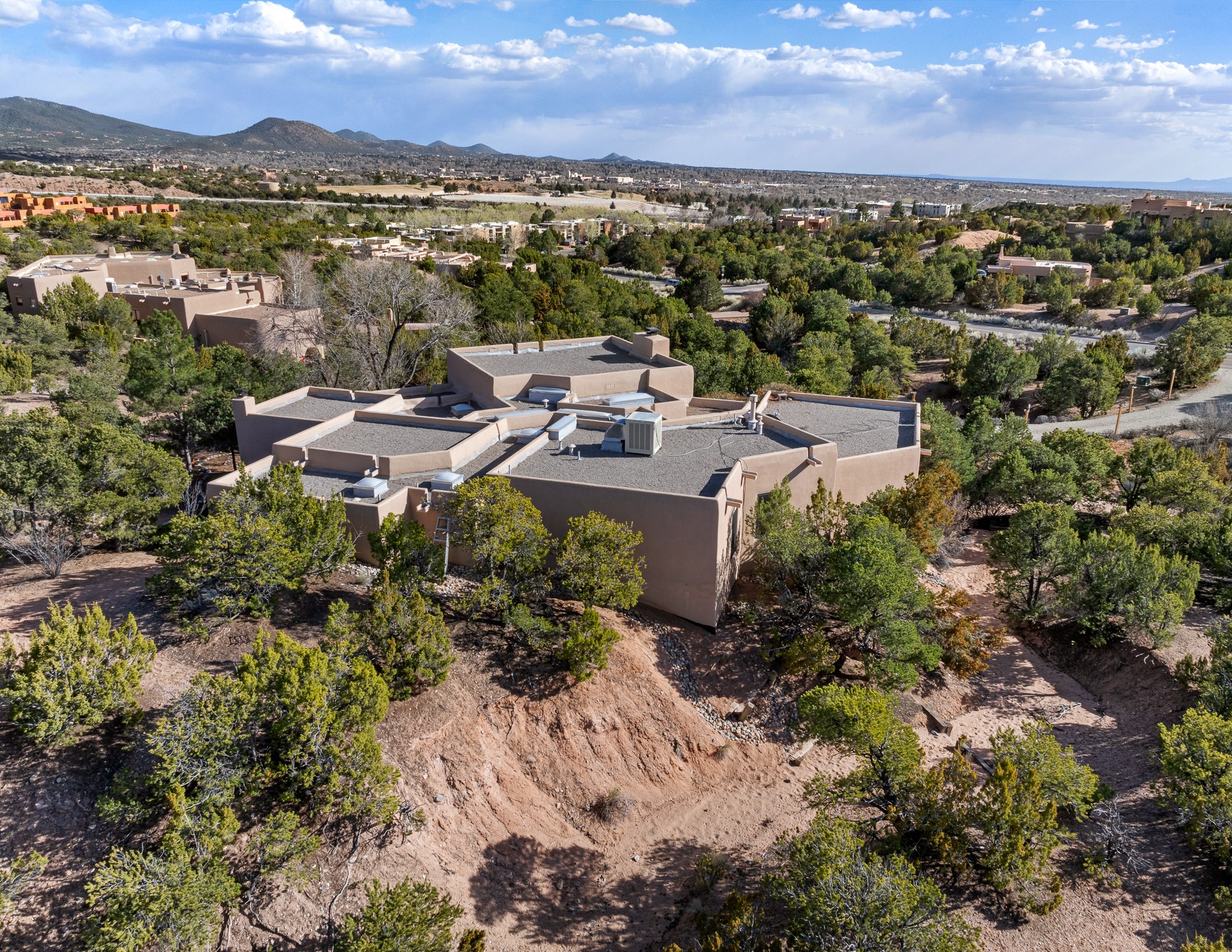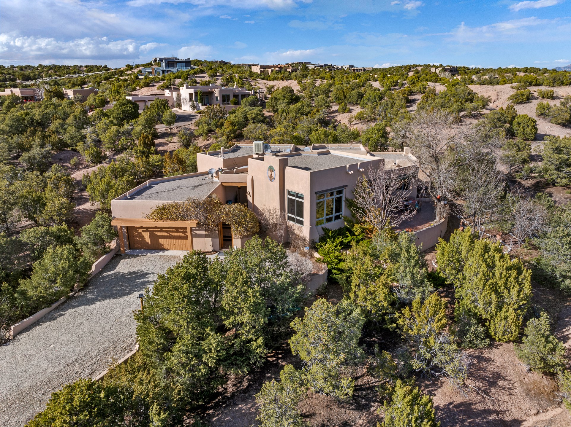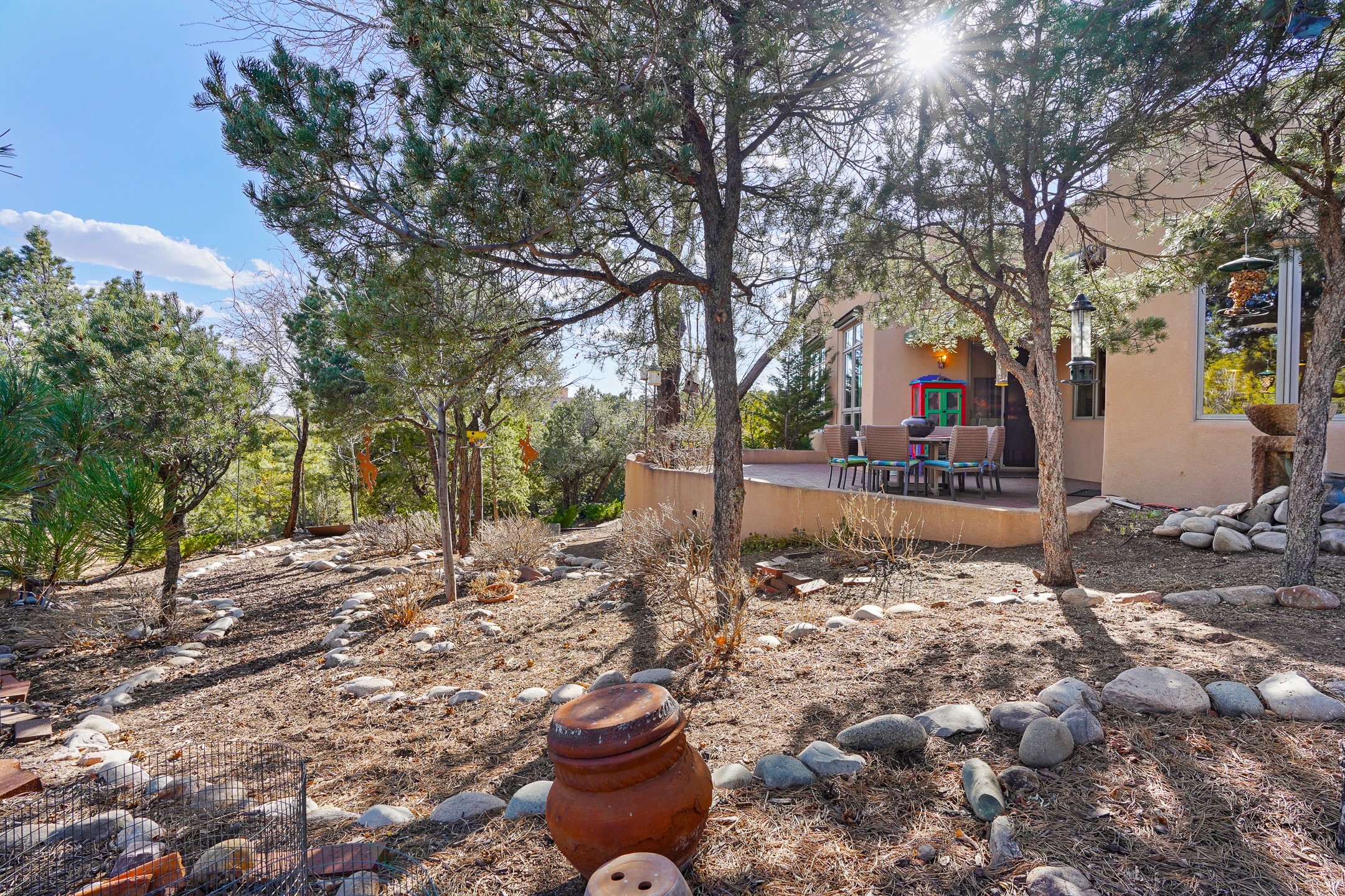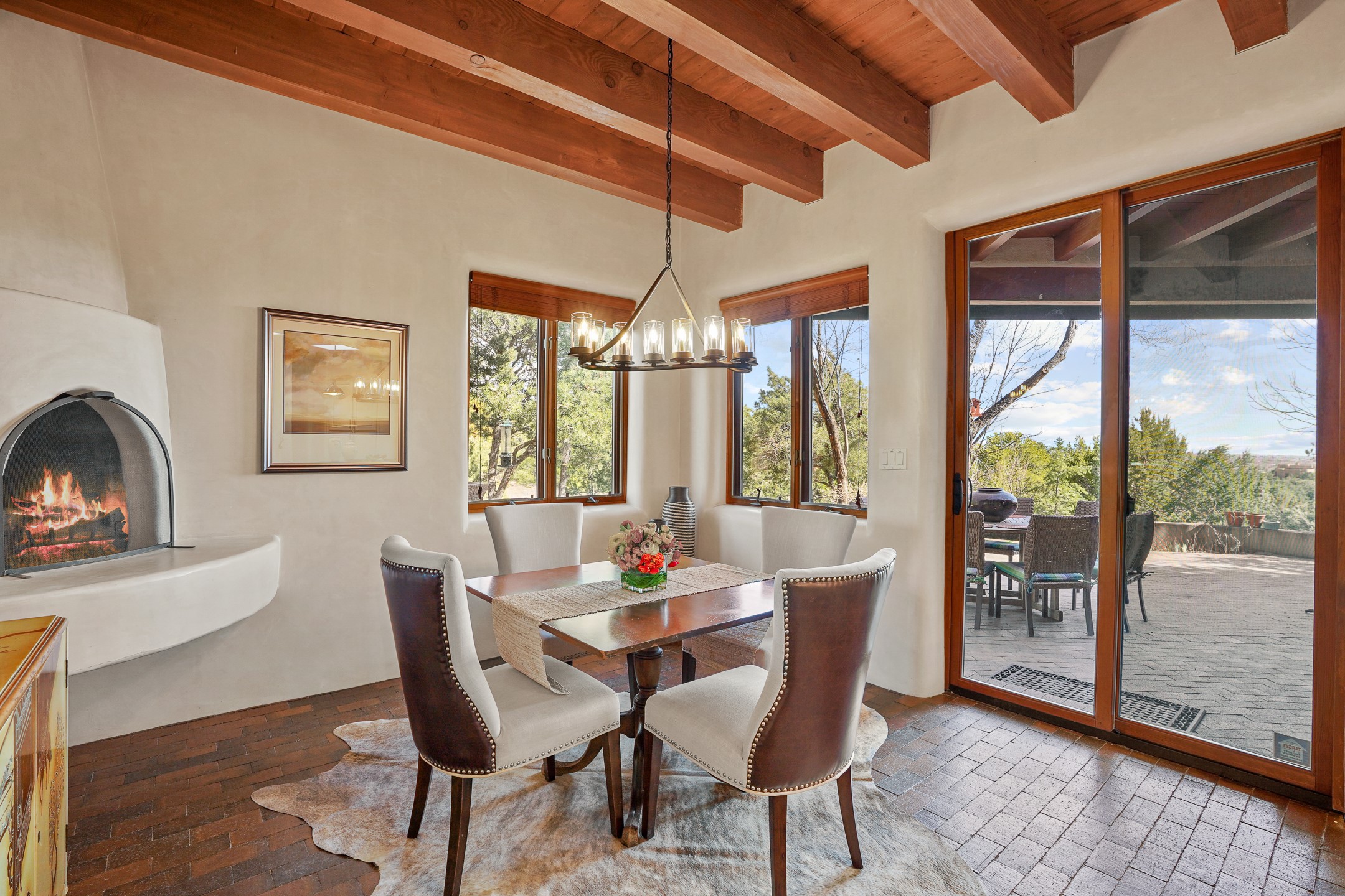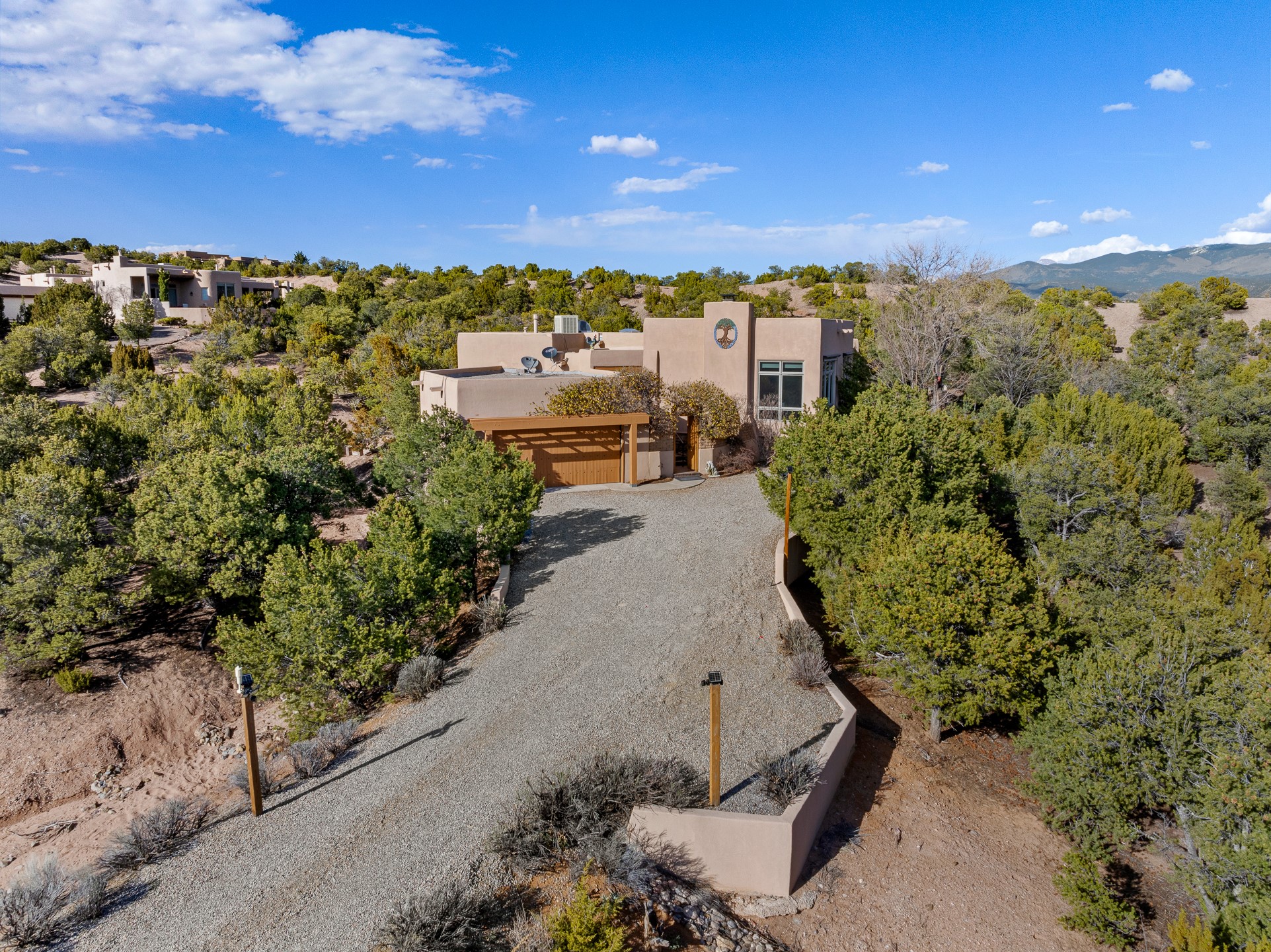 Tucked away in the peaceful and sought-after Santa Fe Estates neighborhood, 855 Camino Francisca is a delightful, expansive single-family home built in 2001. This 3-bedroom, 2-bathroom residence spans 2,508 sq. ft. of beautifully designed living space on a 1.64-acre lot.Exuding classic Santa Fe charm, the home features high ceilings with exposed beams, stunning brick floors, in-floor radiant heating, and hand-troweled plaster walls. The inviting living area showcases a Rumford fireplace and large windows framing picturesque views of the foothills, trees, and ever-changing Santa Fe skies. The chef's kitchen boasts stylish tile countertops, custom cabinetry, and stainless steel appliances. A cozy breakfast nook with a charming Kiva fireplace adds warmth and character.Step outside from the living room or breakfast nook onto a spacious patio, perfect for enjoying the tranquil surroundings and abundant birdlife. This peaceful outdoor space is ideal for entertaining or savoring a quiet morning coffee. The current owners have thoughtfully added bird feeders to attract local wildlife, enhancing the serene atmosphere.The oversized primary suite serves as a private sanctuary, with a sliding glass door leading to a secluded patio. The en-suite bathroom features a large soaking tub, roomy snail shower, dual sinks, and an expansive walk-in closet. Two additional guest bedrooms share a full bathroom.Additional highlights include a welcoming entryway, skylights, a large laundry room, and a two-car garage. The neighborhood is known for its quiet atmosphere, low traffic, and well-maintained homes, all just minutes from Santa Fe Plaza, Devargas Mall, and local shopping centers.855 Camino Francisca blends style, comfort, and tranquility, making it an ideal choice for those seeking a spacious home with easy access to the best of Santa Fe.