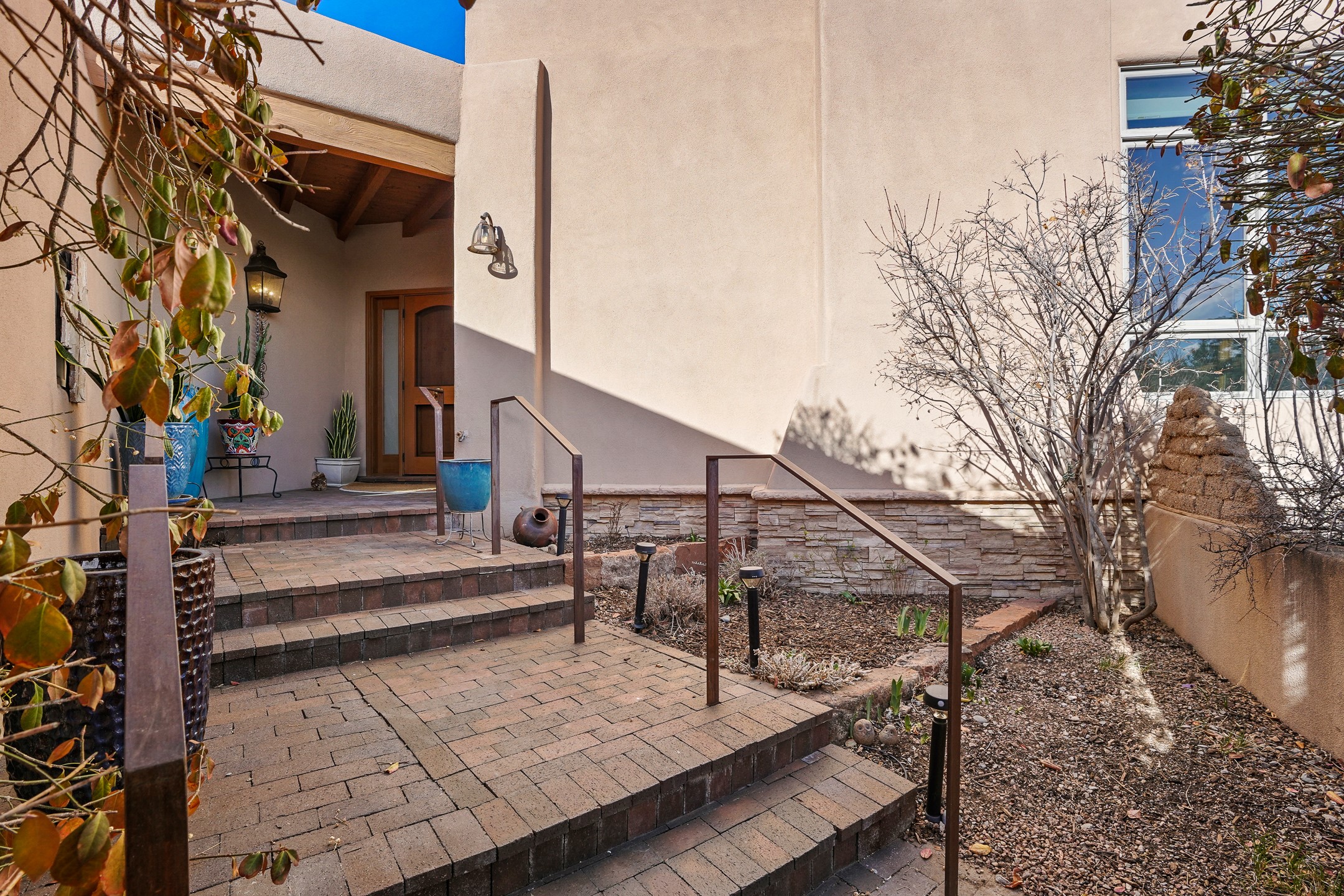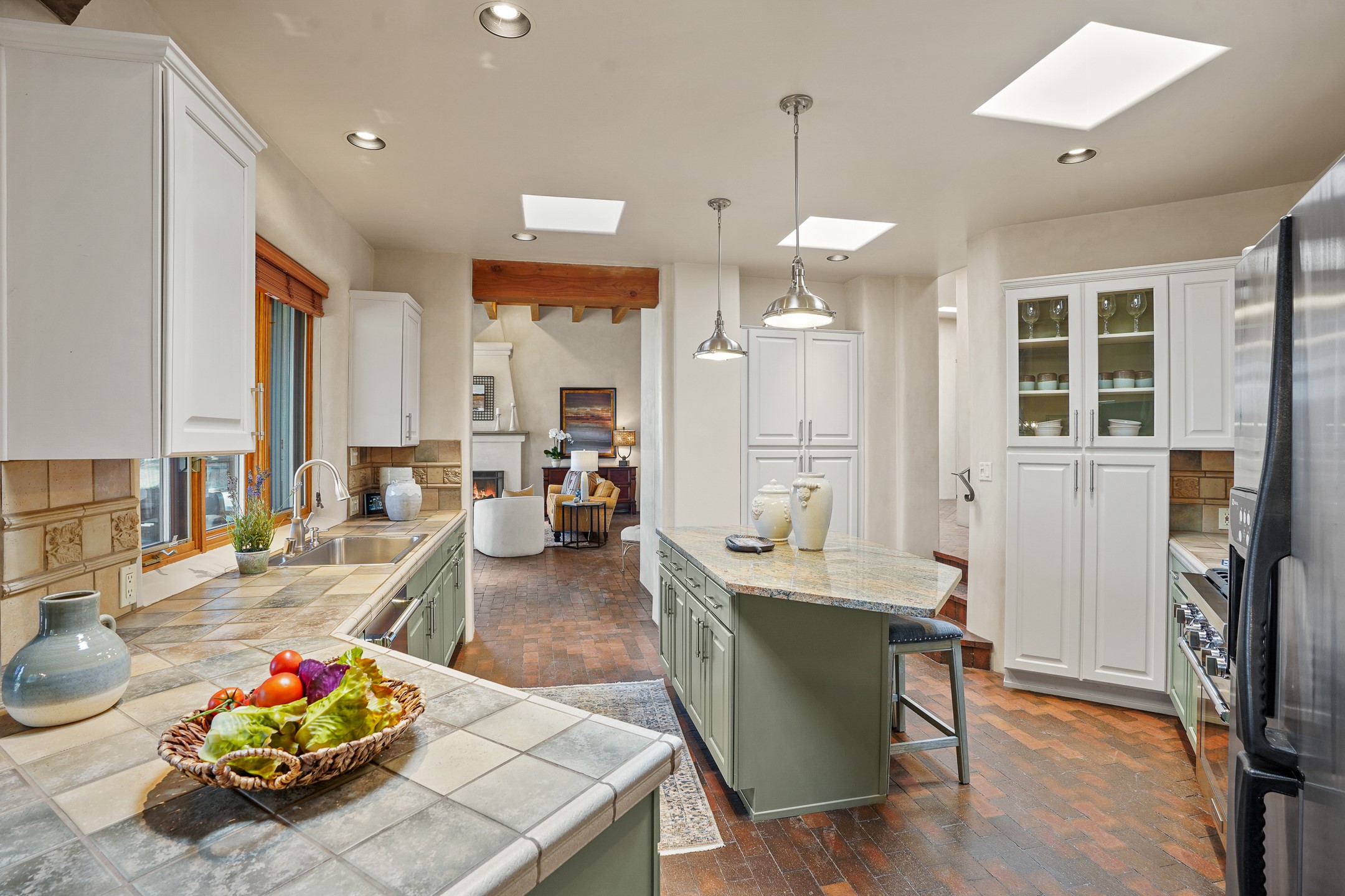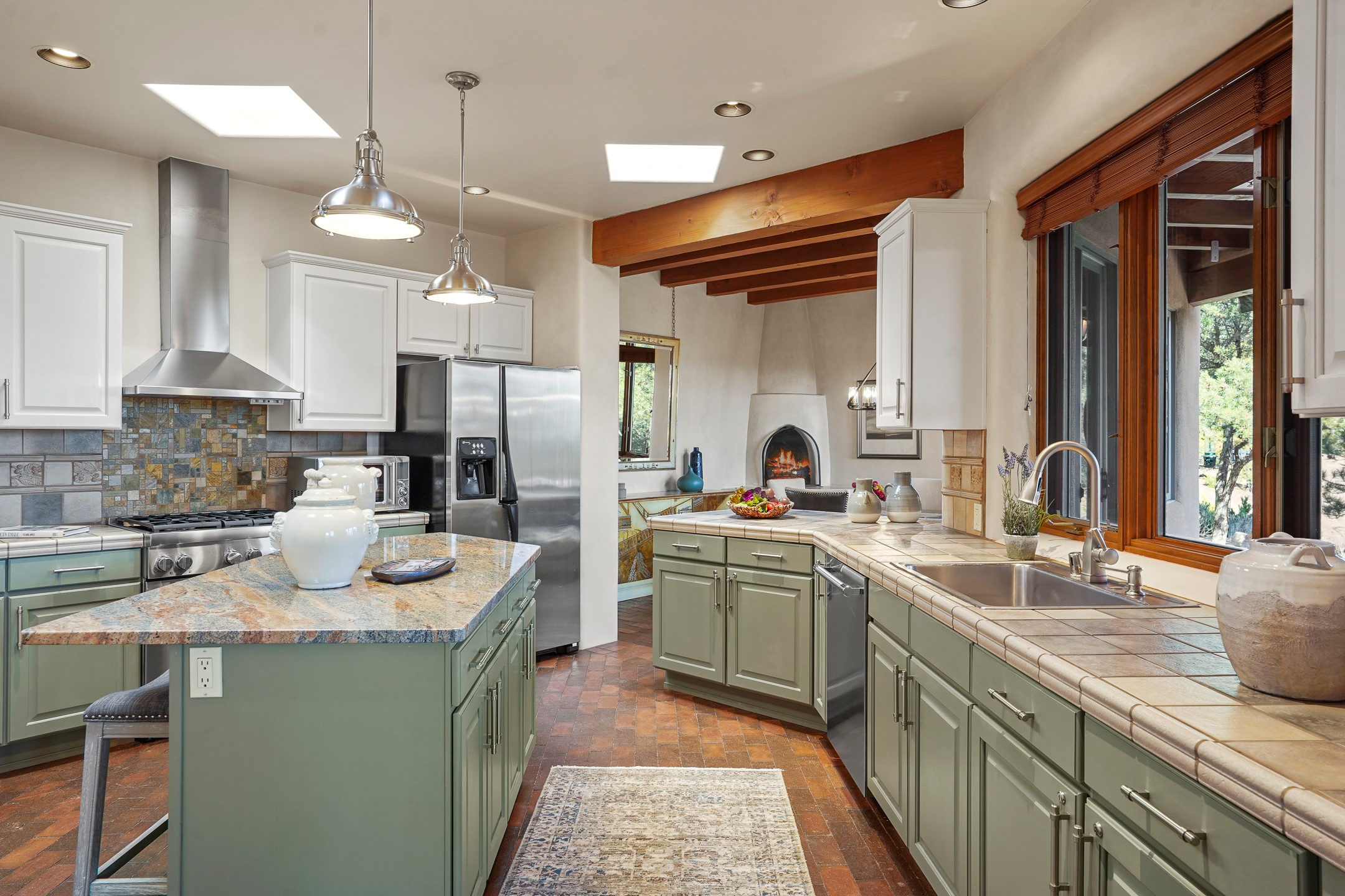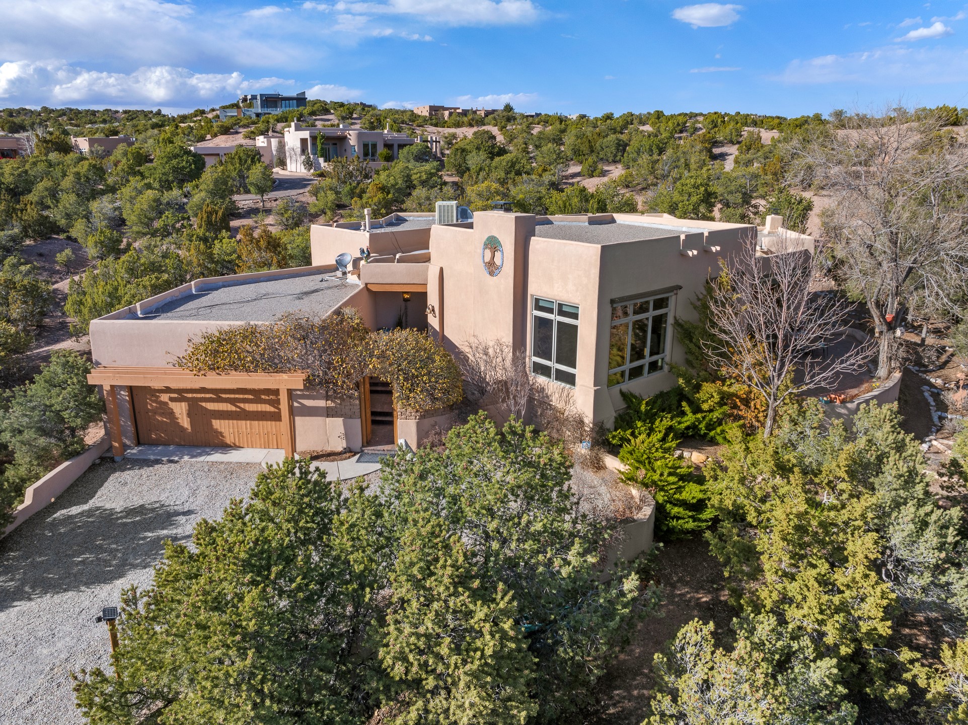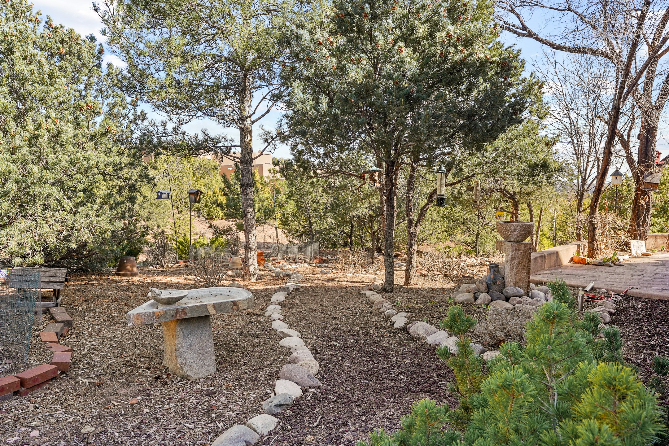 Tucked away in the peaceful and sought-after Santa Fe Estates neighborhood, 855 Camino Francisca is a delightful, expansive single-family home built in 2001. This 3-bedroom, 2-bathroom residence spans 2,508 sq. ft. of beautifully designed living space on a 1.64-acre lot.Exuding classic Santa Fe charm, the home features high ceilings with exposed beams, stunning brick floors, in-floor radiant heating, and hand-troweled plaster walls. The inviting living area showcases a Rumford fireplace and large windows framing picturesque views of the foothills, trees, and ever-changing Santa Fe skies. The chef's kitchen boasts stylish tile countertops, custom cabinetry, and stainless steel appliances. A cozy breakfast nook with a charming Kiva fireplace adds warmth and character.Step outside from the living room or breakfast nook onto a spacious patio, perfect for enjoying the tranquil surroundings and abundant birdlife. This peaceful outdoor space is ideal for entertaining or savoring a quiet morning coffee. The current owners have thoughtfully added bird feeders to attract local wildlife, enhancing the serene atmosphere.The oversized primary suite serves as a private sanctuary, with a sliding glass door leading to a secluded patio. The en-suite bathroom features a large soaking tub, roomy snail shower, dual sinks, and an expansive walk-in closet. Two additional guest bedrooms share a full bathroom.Additional highlights include a welcoming entryway, skylights, a large laundry room, and a two-car garage. The neighborhood is known for its quiet atmosphere, low traffic, and well-maintained homes, all just minutes from Santa Fe Plaza, Devargas Mall, and local shopping centers.855 Camino Francisca blends style, comfort, and tranquility, making it an ideal choice for those seeking a spacious home with easy access to the best of Santa Fe.