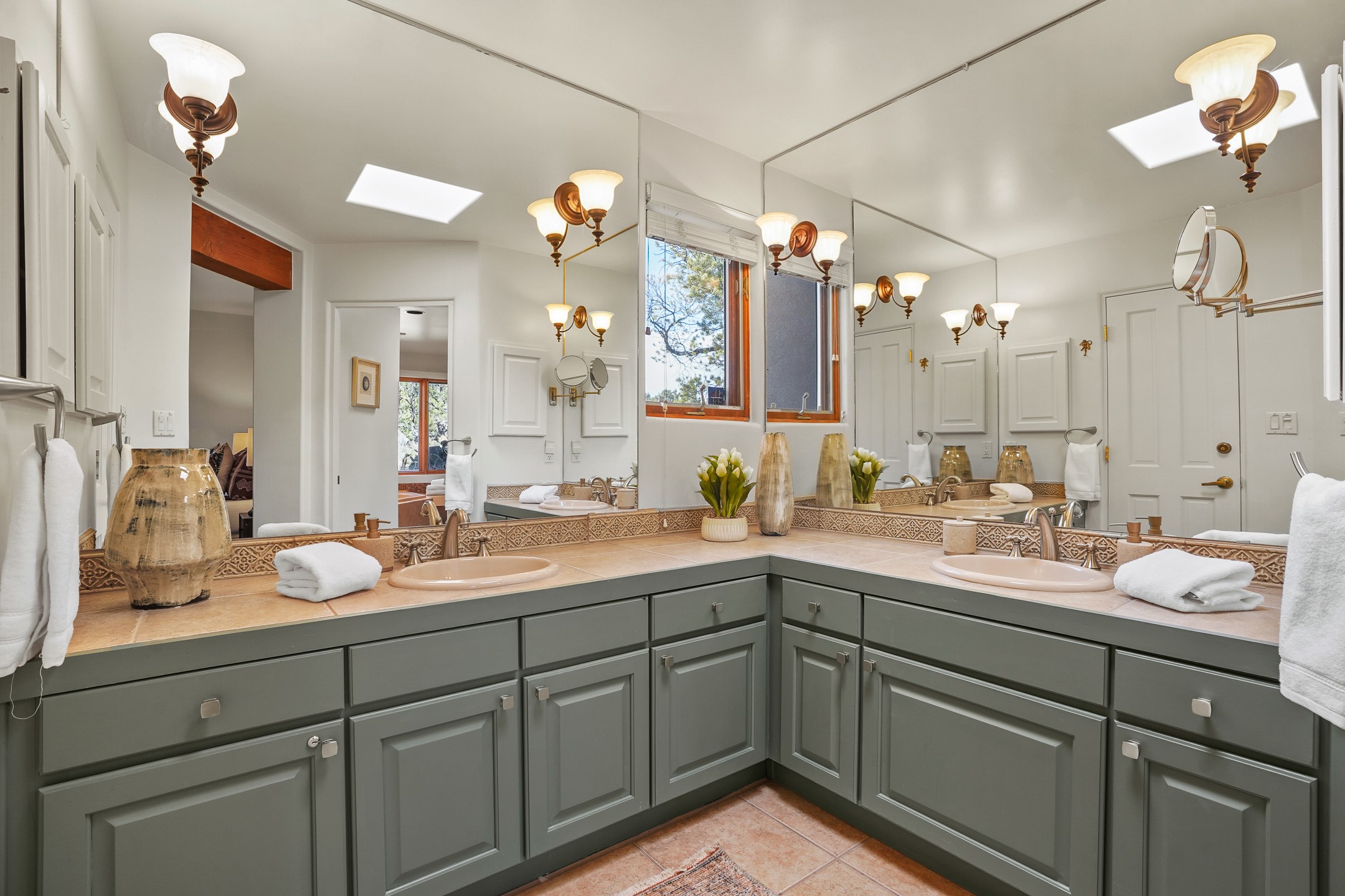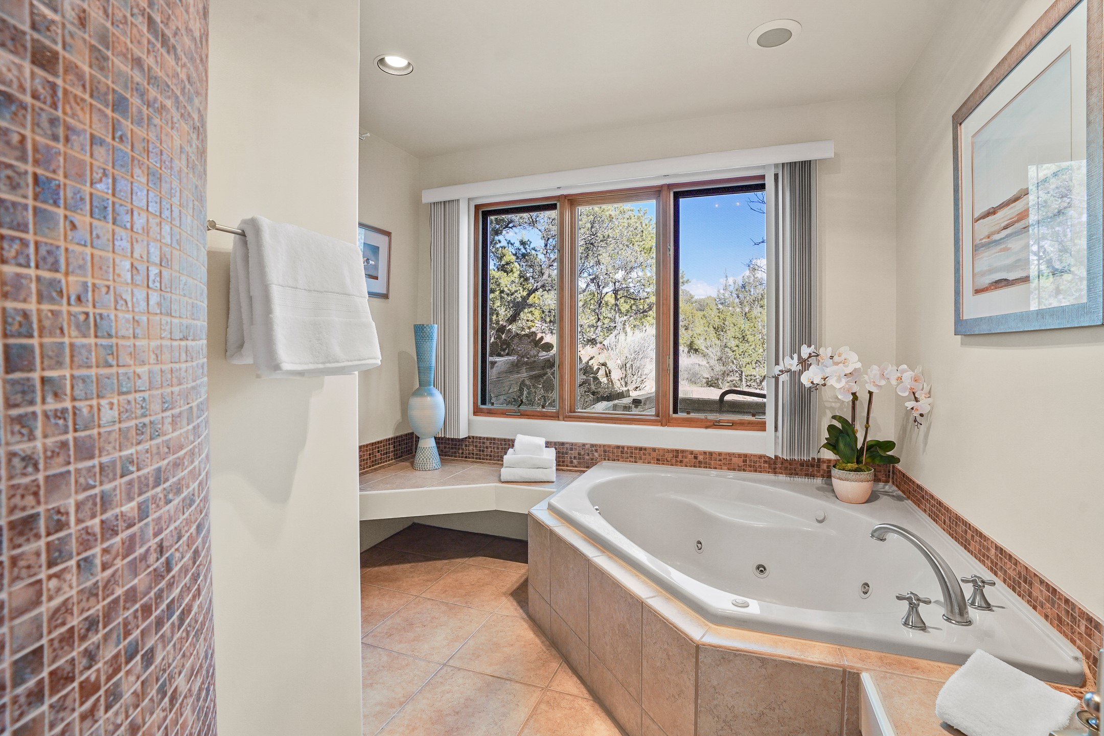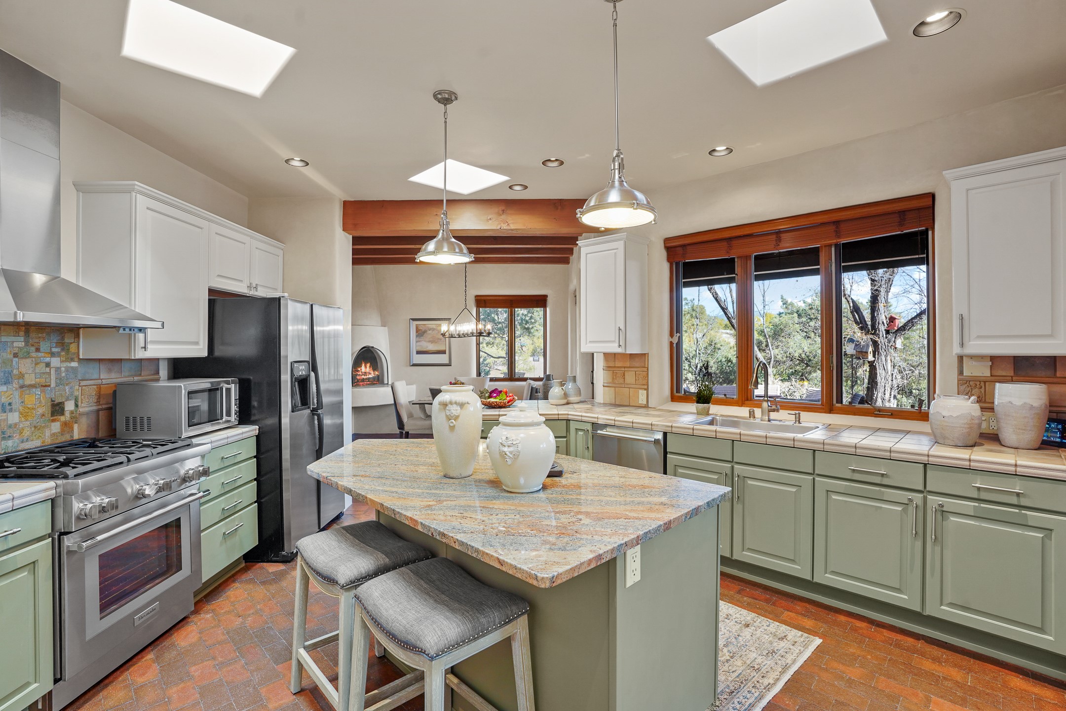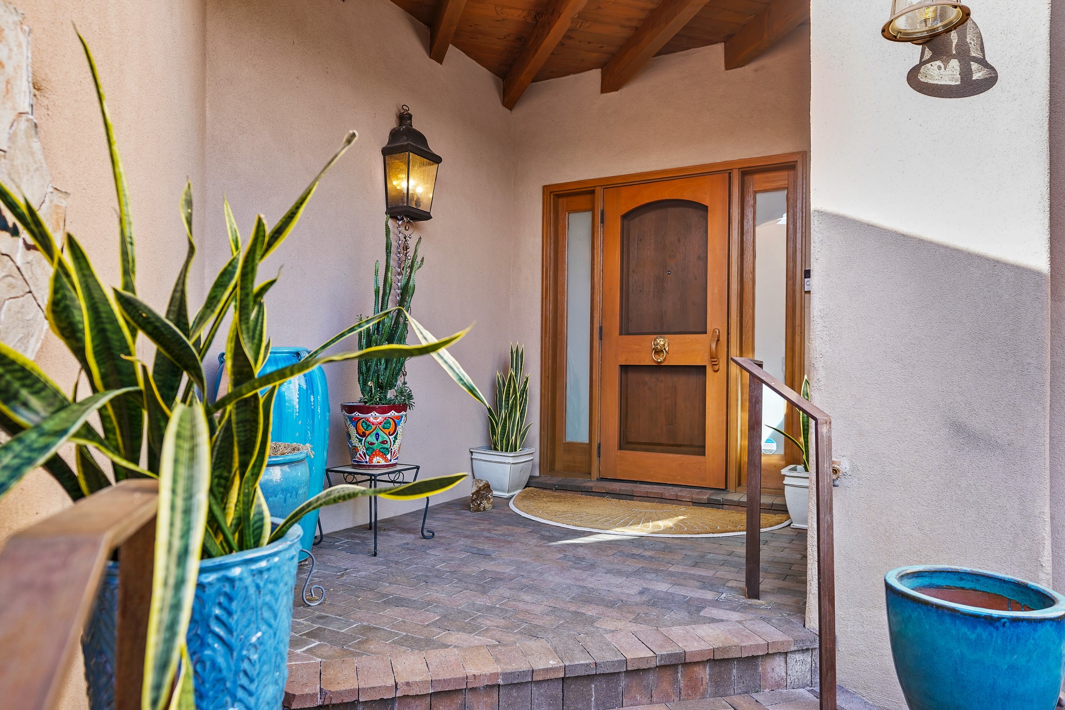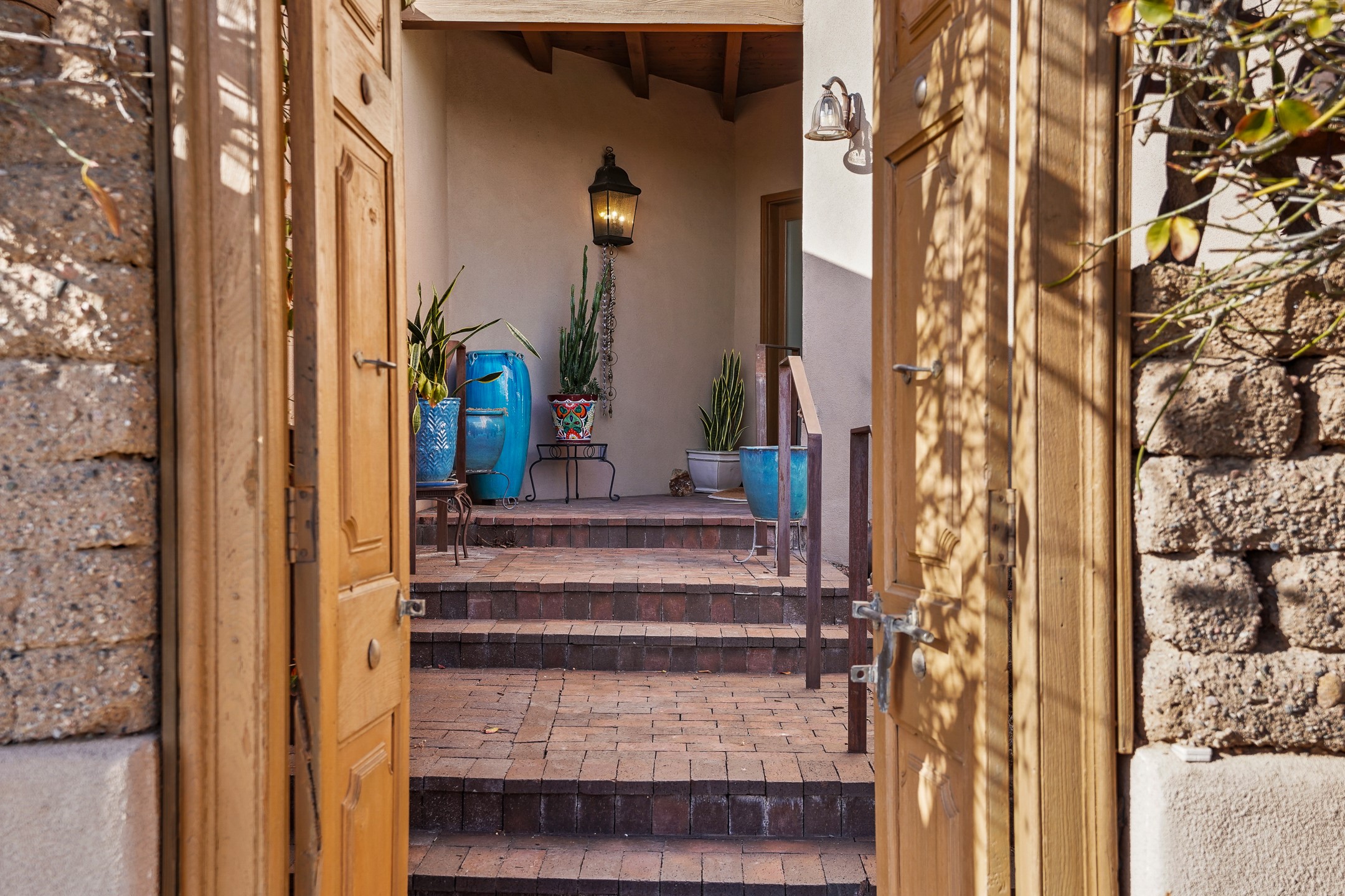 Tucked away in the peaceful and sought-after Santa Fe Estates neighborhood, 855 Camino Francisca is a delightful, expansive single-family home built in 2001. This 3-bedroom, 2-bathroom residence spans 2,508 sq. ft. of beautifully designed living space on a 1.64-acre lot.Exuding classic Santa Fe charm, the home features high ceilings with exposed beams, stunning brick floors, in-floor radiant heating, and hand-troweled plaster walls. The inviting living area showcases a Rumford fireplace and large windows framing picturesque views of the foothills, trees, and ever-changing Santa Fe skies. The chef's kitchen boasts stylish tile countertops, custom cabinetry, and stainless steel appliances. A cozy breakfast nook with a charming Kiva fireplace adds warmth and character.Step outside from the living room or breakfast nook onto a spacious patio, perfect for enjoying the tranquil surroundings and abundant birdlife. This peaceful outdoor space is ideal for entertaining or savoring a quiet morning coffee. The current owners have thoughtfully added bird feeders to attract local wildlife, enhancing the serene atmosphere.The oversized primary suite serves as a private sanctuary, with a sliding glass door leading to a secluded patio. The en-suite bathroom features a large soaking tub, roomy snail shower, dual sinks, and an expansive walk-in closet. Two additional guest bedrooms share a full bathroom.Additional highlights include a welcoming entryway, skylights, a large laundry room, and a two-car garage. The neighborhood is known for its quiet atmosphere, low traffic, and well-maintained homes, all just minutes from Santa Fe Plaza, Devargas Mall, and local shopping centers.855 Camino Francisca blends style, comfort, and tranquility, making it an ideal choice for those seeking a spacious home with easy access to the best of Santa Fe.