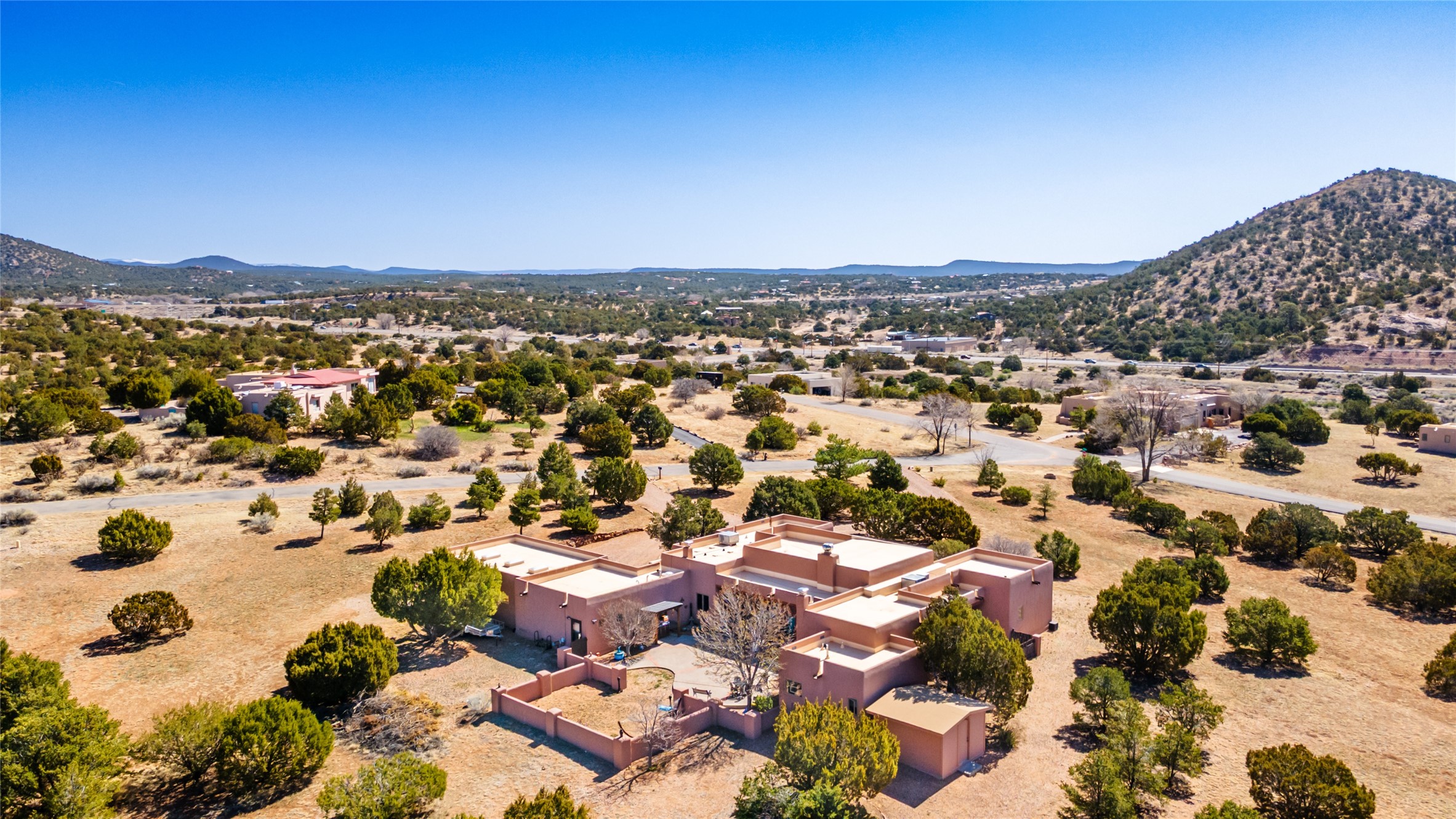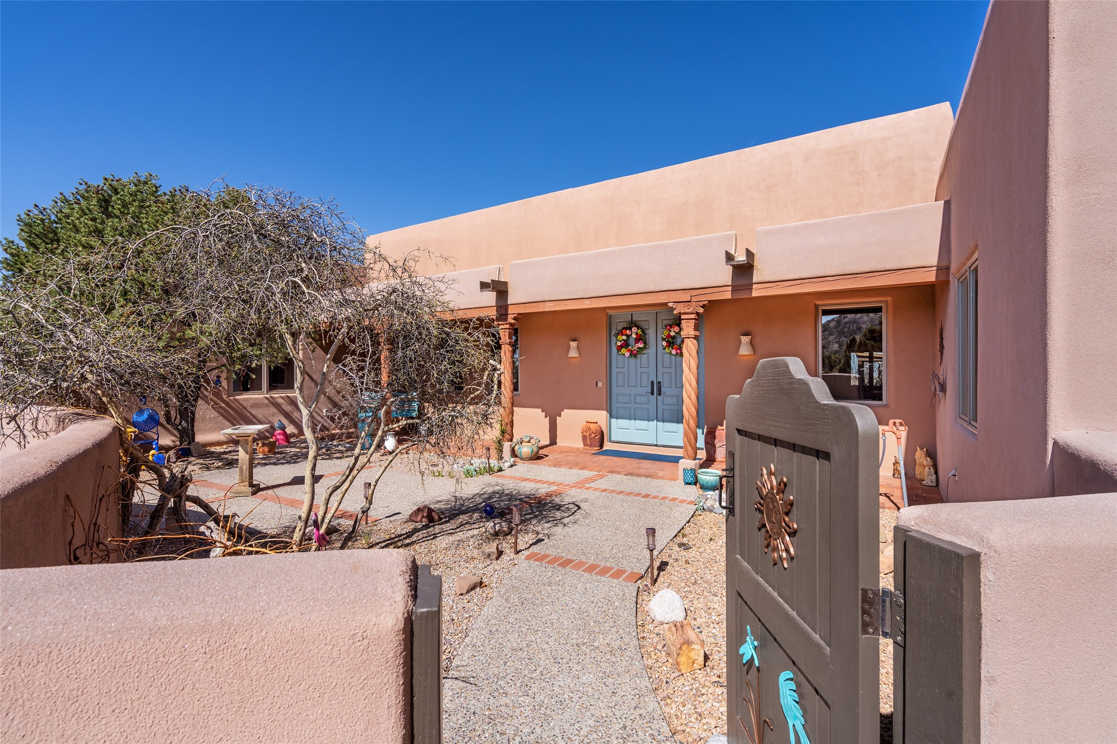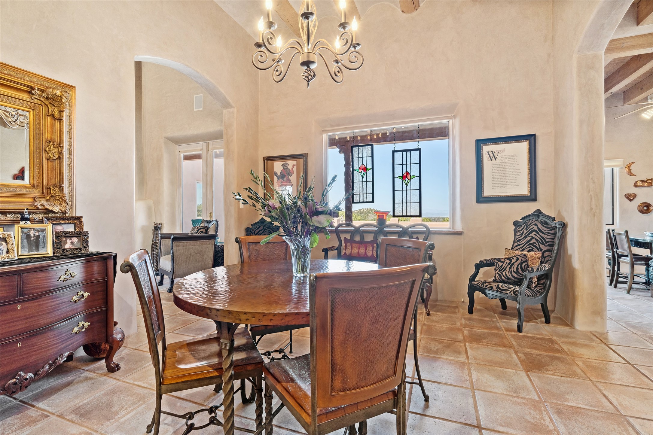 Exquisite Santa Fe Retreat with Sweeping Mountain Views3 Camino Costadino | Dos Griegos | Santa Fe, NMNestled in the highly sought-after Dos Griegos neighborhood, this stunning 3-bedroom, 3-bathroom residence captures the essence of Santa Fe living with breathtaking views of the Jemez Mountains and the foothills of the Sangre de Cristo range.Step into a grand great room where 15-foot ceilings, classic vigas, and smooth diamond plaster walls create a warm and timeless elegance. Expansive windows frame the dramatic natural landscape while flooding the home with ambient light--seamlessly blending the beauty of the outdoors with the comfort of the interior.This thoughtfully designed home also features a dedicated craft room and a spacious office just off the garage, offering flexibility for creatives, remote professionals, or those in need of extra space.Recent upgrades include a brand-new roof and Lifetime Fiberspan canales, ensuring long-term durability and peace of mind. A versatile 13' x 13' shed provides ample room for storage, hobbies, or workshop use.Whether you're savoring a quiet evening under the stars or hosting guests against a backdrop of spectacular mountain views, 3 Camino Costadino offers a rare blend of Southwestern charm, functionality, and enduring quality.