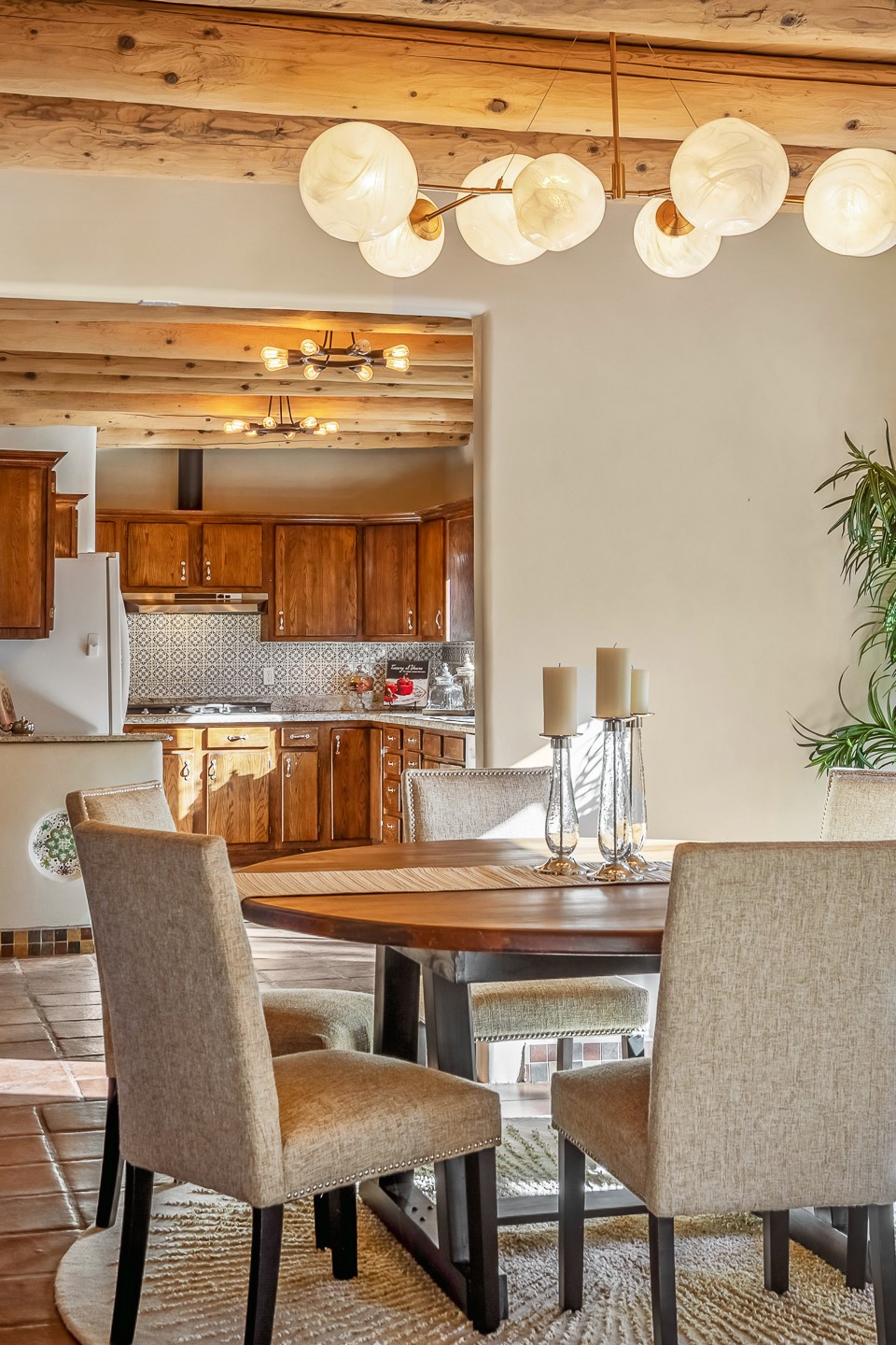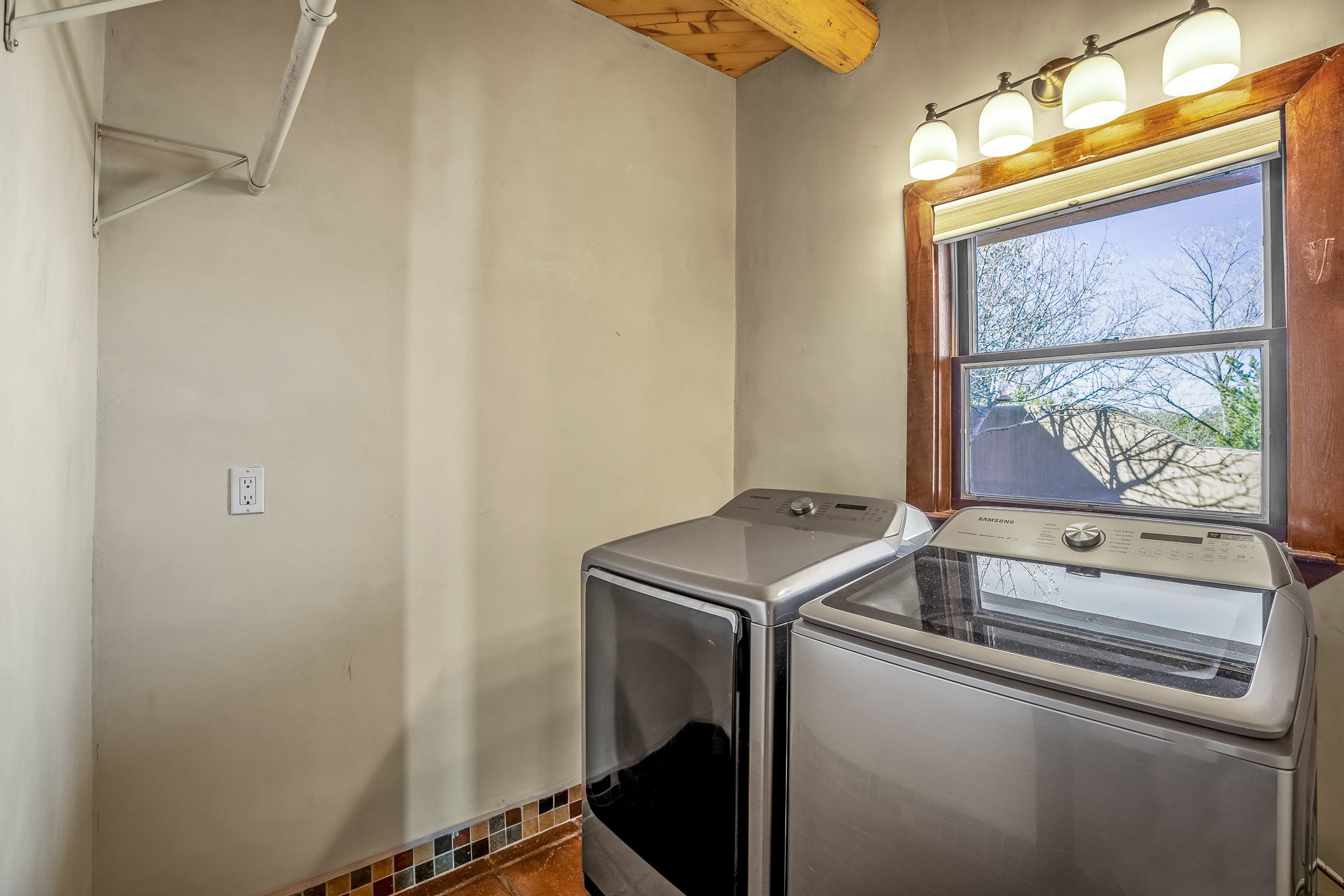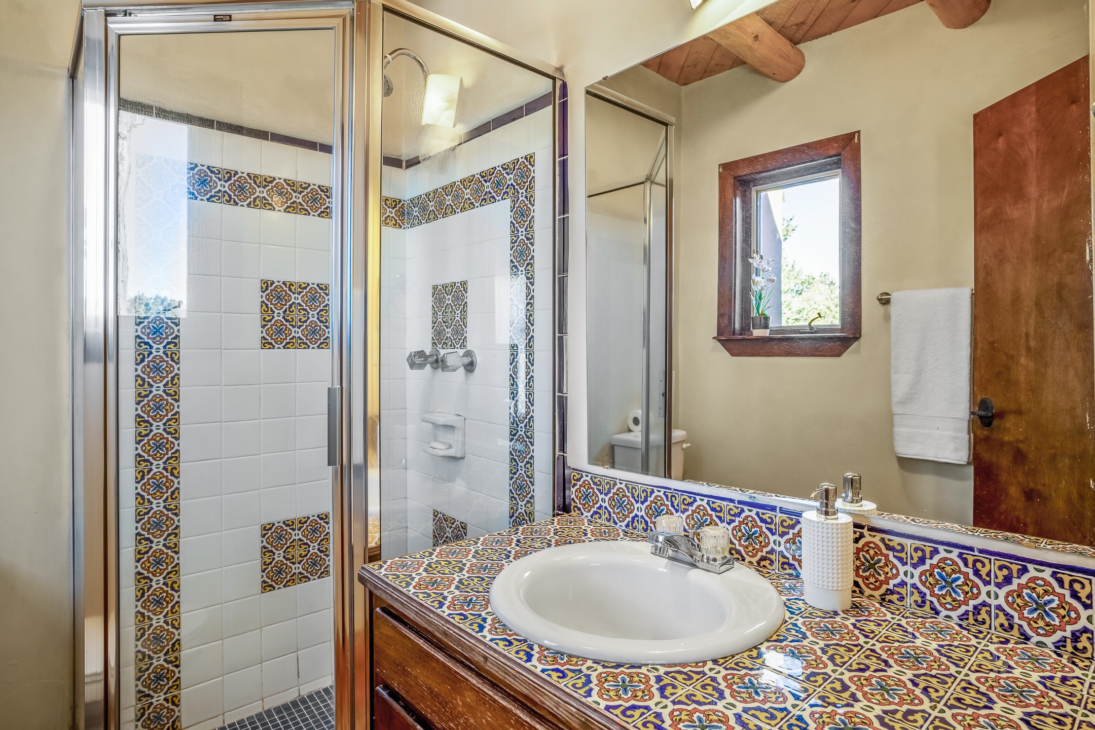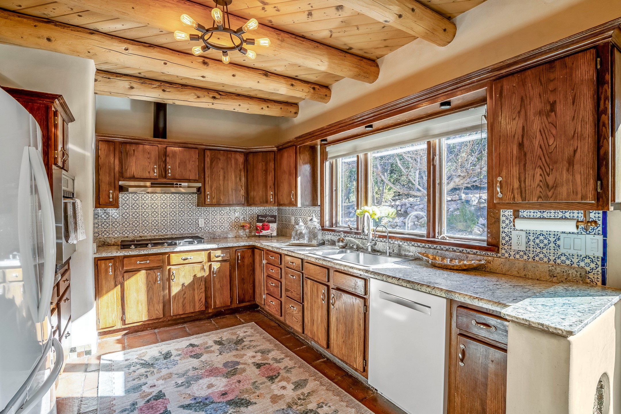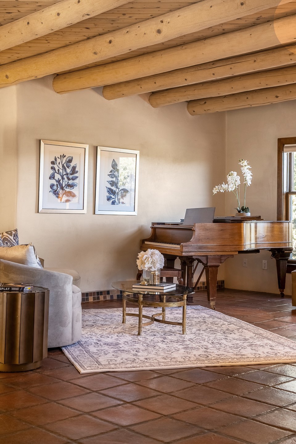 Nestled in the highly desirable Barranca Road area, located just 5 minutes from downtown Santa Fe and a short drive to Bishop's Lodge and Tesuque, this stunning 3-bedroom, 3-bathroom Santa Fe-style home offers 3,100 sq. ft. of beautifully designed living space on a private 1.75-acre lot. With a single-level open floor plan and multiple living areas, this meticulously maintained home blends timeless elegance with modern upgrades. Included is a bonus room that is currently used as a fourth bedroom with courtyard access and privacy. This home boasts classic Southwestern details, including vigas, corbels, and tongue-and-groove ceilings throughout. The primary suite is a true retreat, with double walk-in closets, featuring a private courtyard with a Caldera salt water hot tub, and direct outdoor access, perfect for stargazing. Additional upgrades include refinished and newly added tile flooring in the bonus room, zoned heating and A/C splits in every living space, upgraded lighting and hardware, new appliances, and hand-troweled plaster walls. The remodeled TV room features a see-through display wall, adding a contemporary touch to this charming home. Step outside to enjoy breathtaking sunset views from the hilltop backyard. The expansive lot has been thoughtfully maintained, with newly trimmed trees and fencing enclosing most of the property--while still offering space for personal touches. Experience peace, tranquility, and the best of Santa Fe living in this exceptional, competitively priced home. Don't miss this incredible opportunity. Imagine the possibilities and schedule your private tour today!