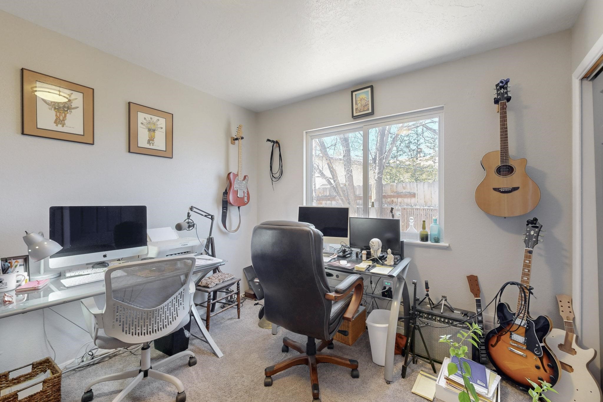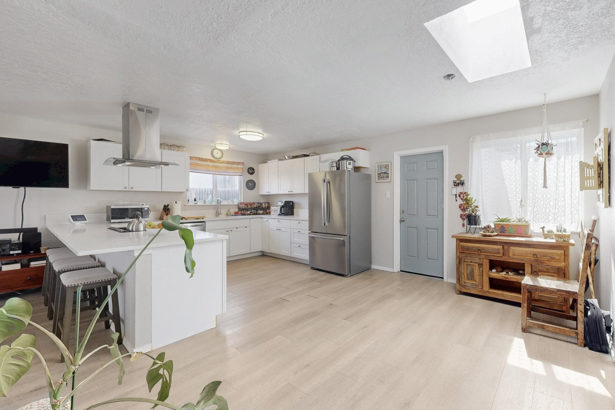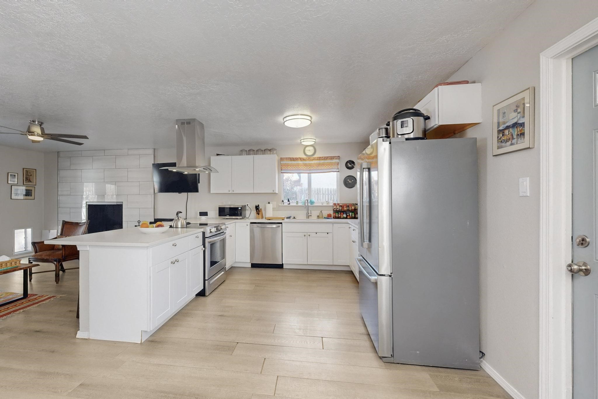 Down a quiet street in the Vista del Sol neighborhood and situated on a large lot, this charming 4 bedroom renovated home offers modern updates while providing a cozy and inviting atmosphere.The kitchen has been thoughtfully updated with sleek quartz countertops, contemporary cabinetry, and efficient stainless steel appliances. The living area offers a modern tiled, wood burning fireplace and leads outside to a brick patio and backyard filled with mature fruit trees. There are no adjoining neighbors in the backyard which allows for privacy. The primary bedroom was converted from an apartment and offers ample space, an ensuite bathroom, walk-in closet and its own entrance. The remaining three bedrooms are filled with natural light and are comfortable living spaces. No HOA and conveniently located near schools, parks, and local amenities.