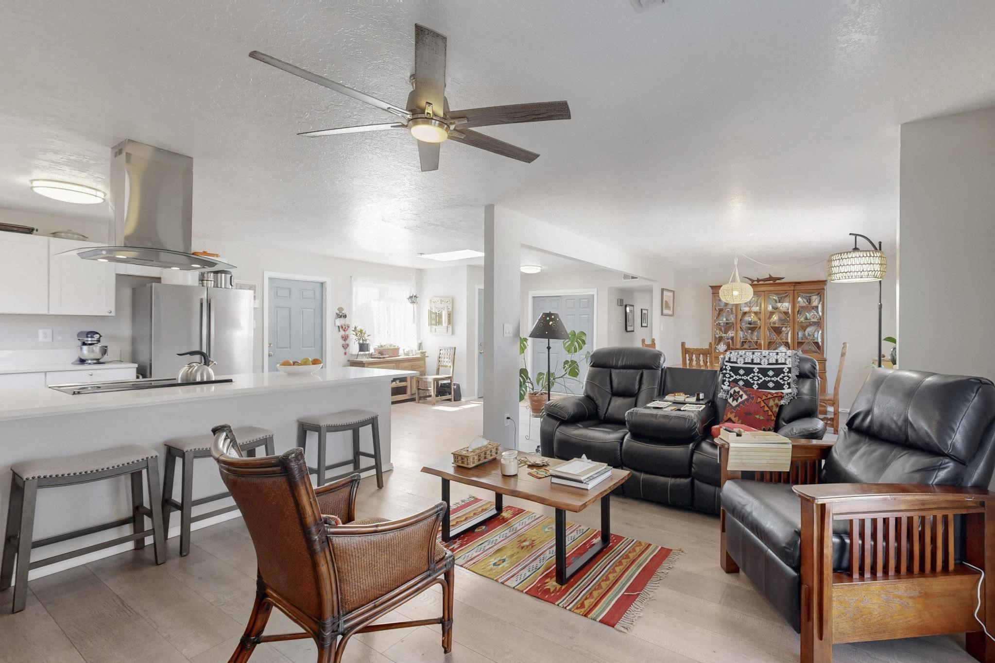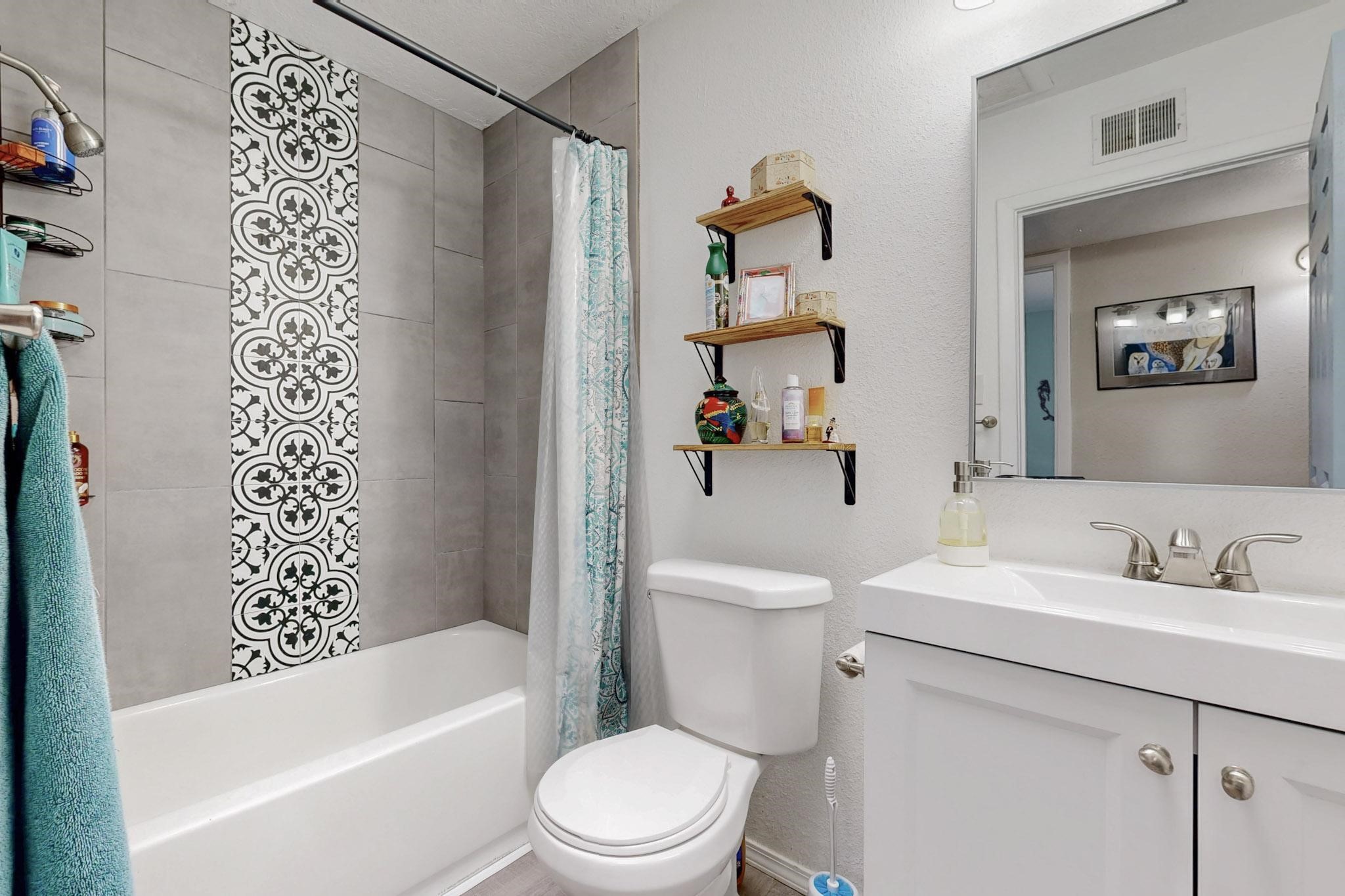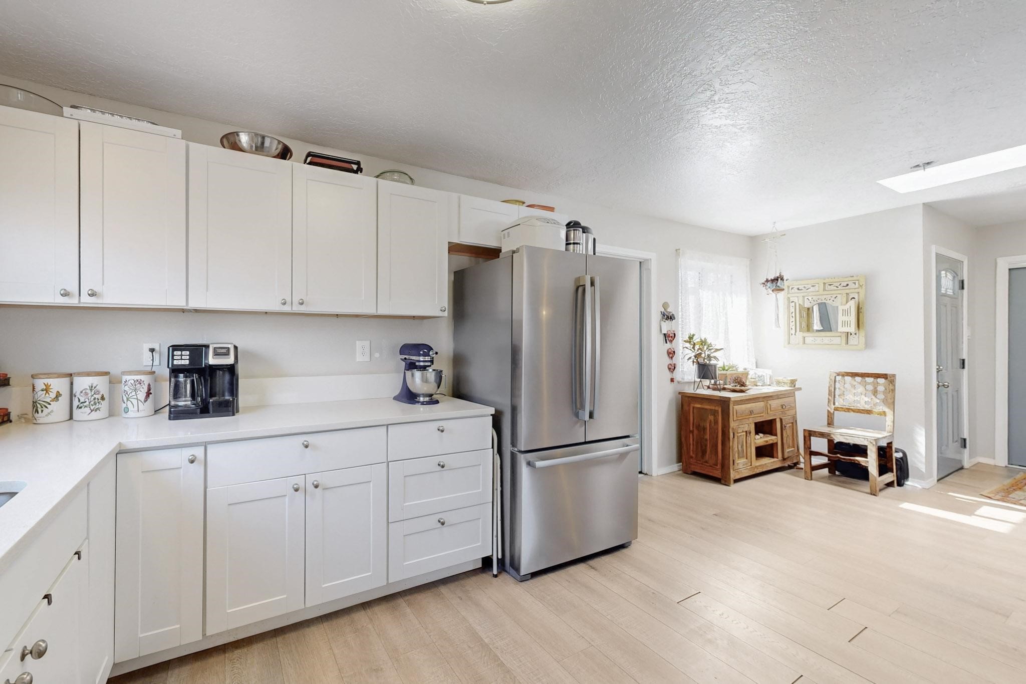 Down a quiet street in the Vista del Sol neighborhood and situated on a large lot, this charming 4 bedroom renovated home offers modern updates while providing a cozy and inviting atmosphere.The kitchen has been thoughtfully updated with sleek quartz countertops, contemporary cabinetry, and efficient stainless steel appliances. The living area offers a modern tiled, wood burning fireplace and leads outside to a brick patio and backyard filled with mature fruit trees. There are no adjoining neighbors in the backyard which allows for privacy. The primary bedroom was converted from an apartment and offers ample space, an ensuite bathroom, walk-in closet and its own entrance. The remaining three bedrooms are filled with natural light and are comfortable living spaces. No HOA and conveniently located near schools, parks, and local amenities.
