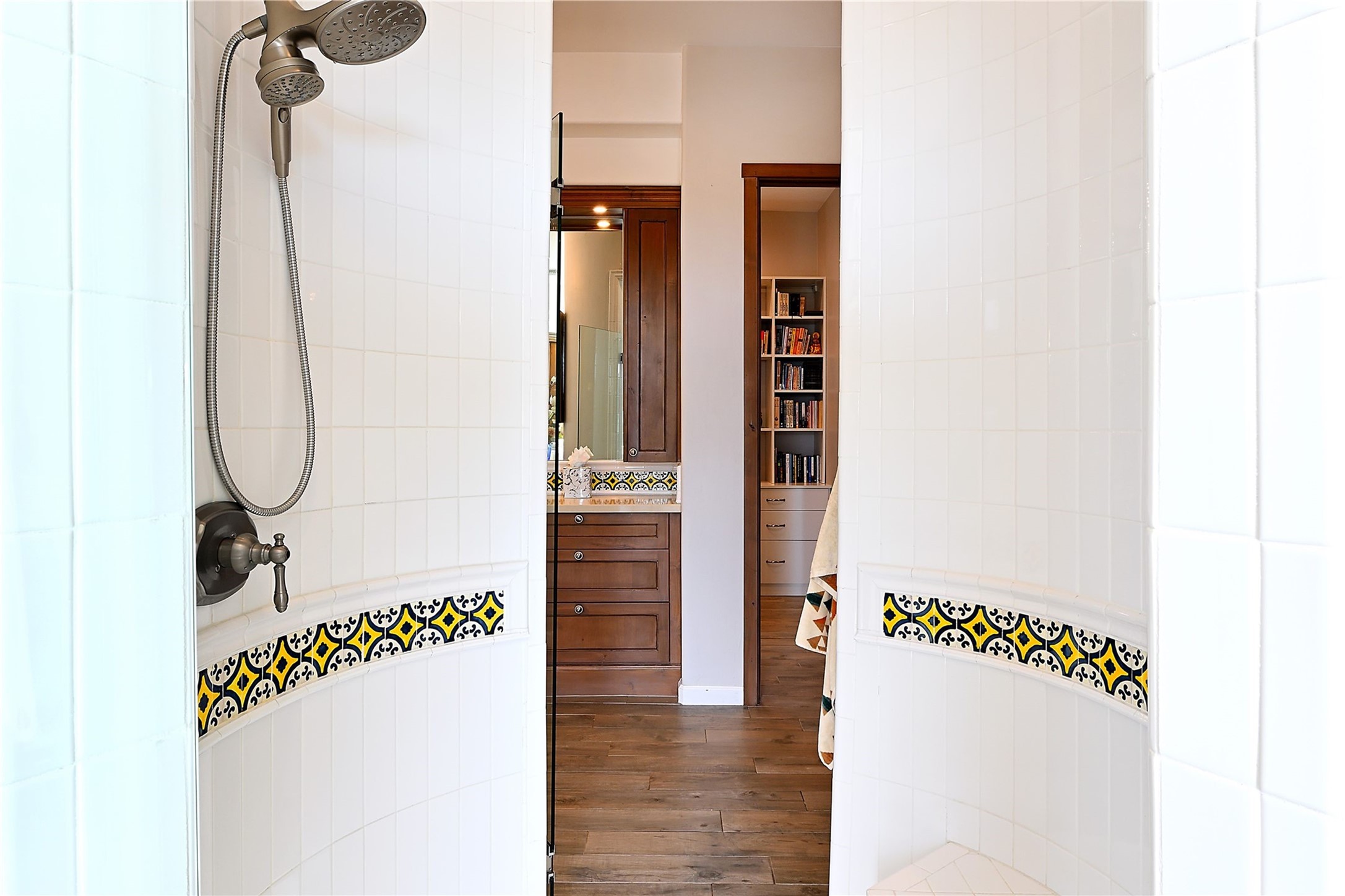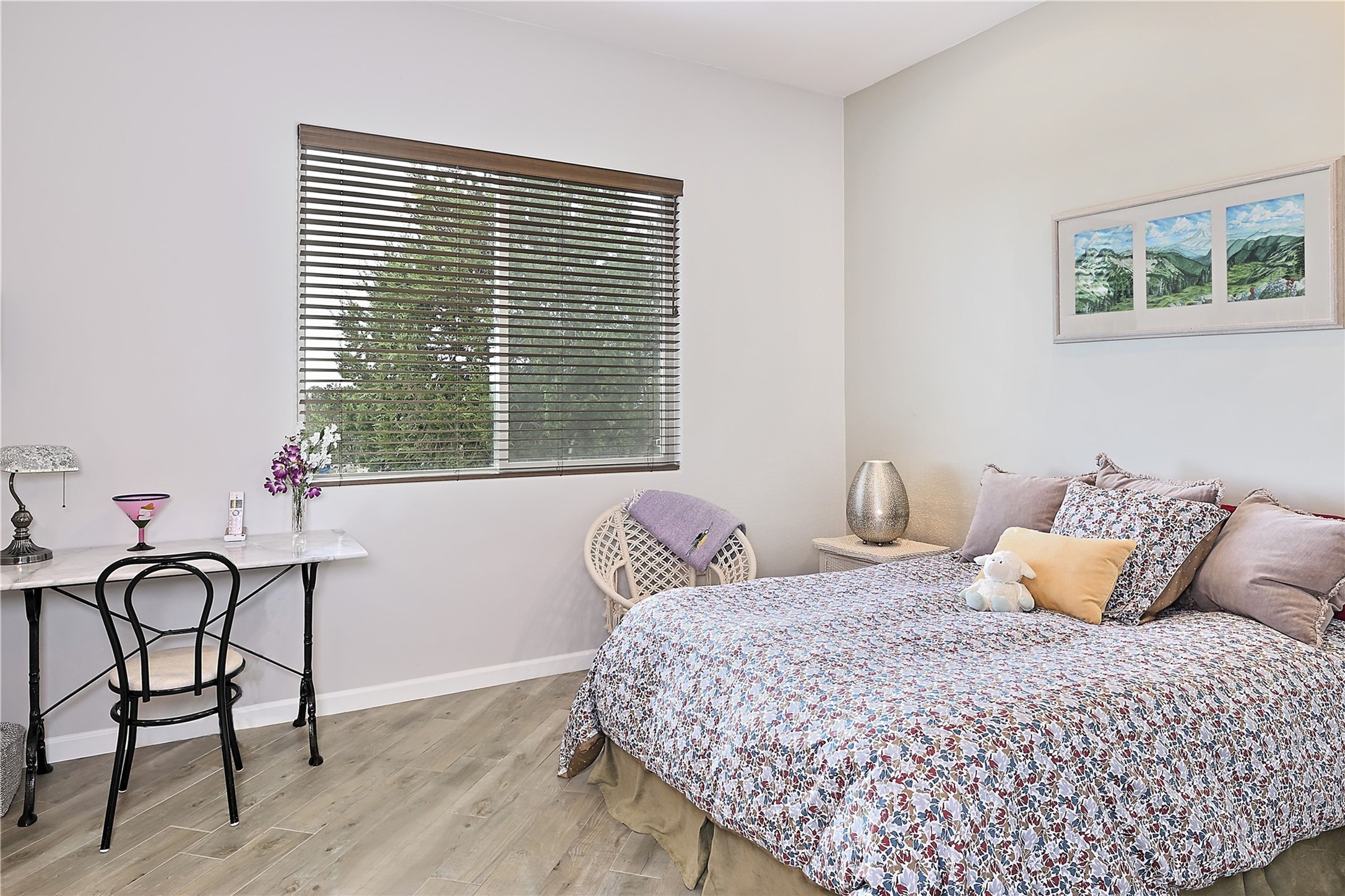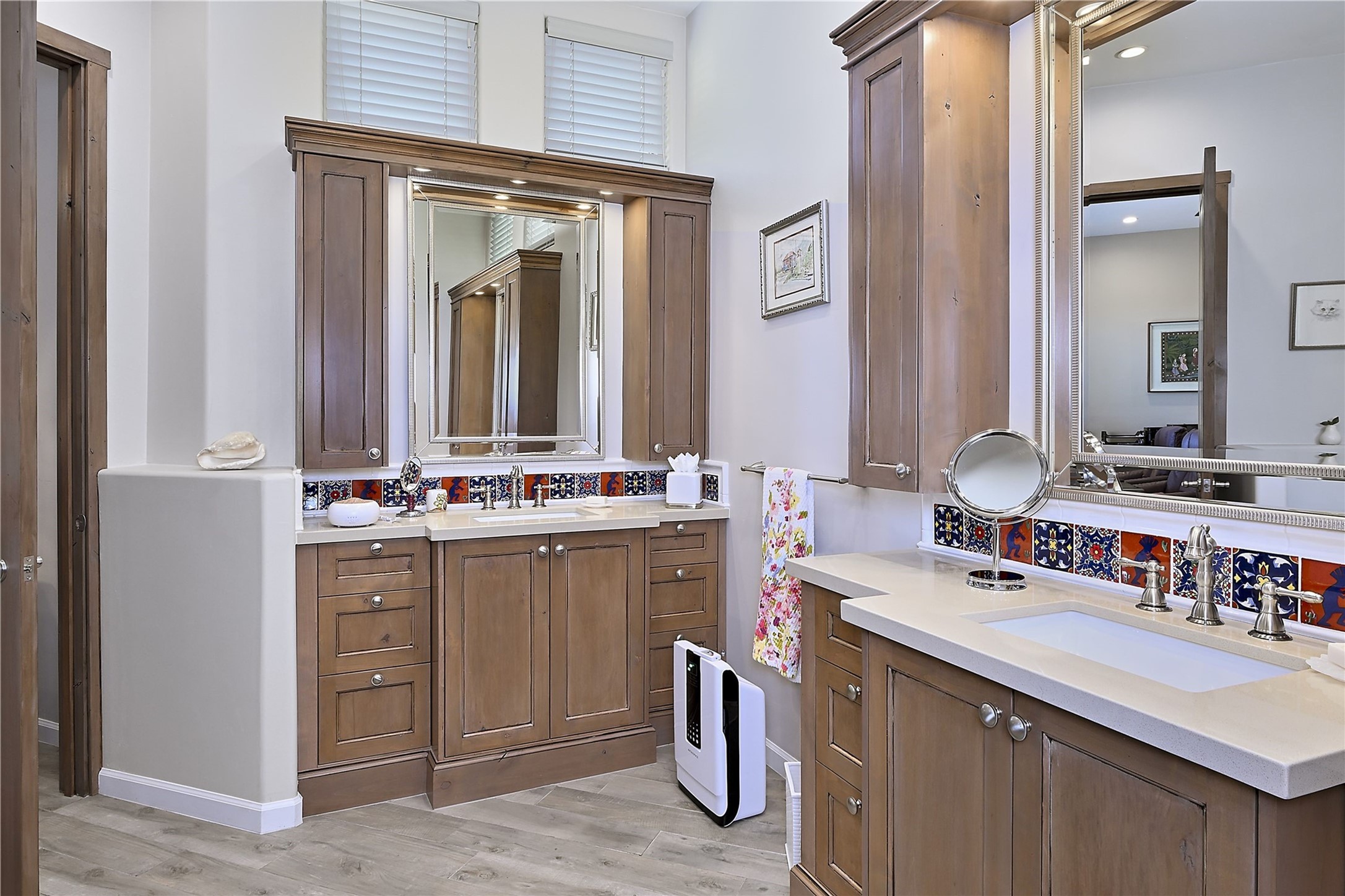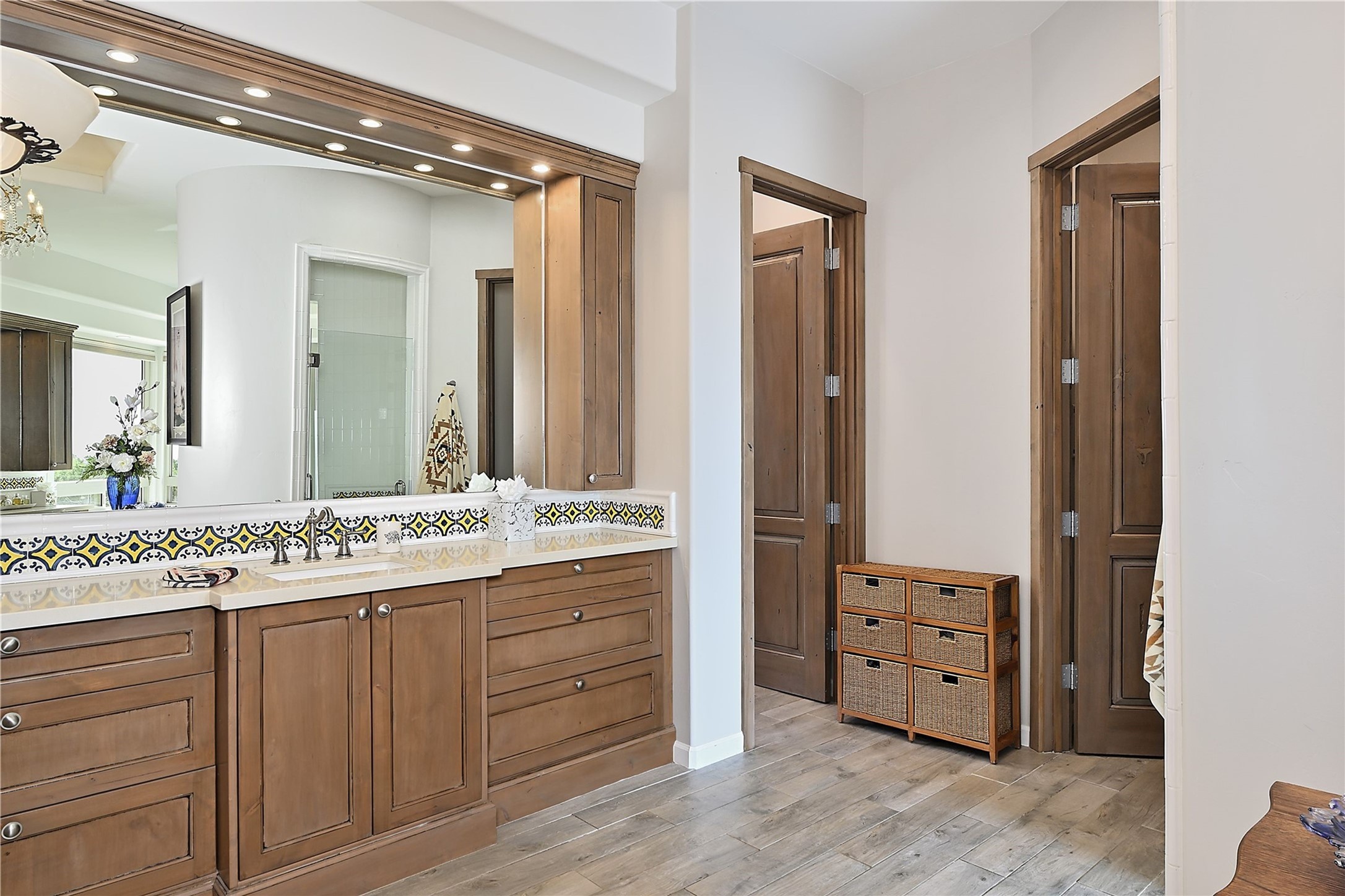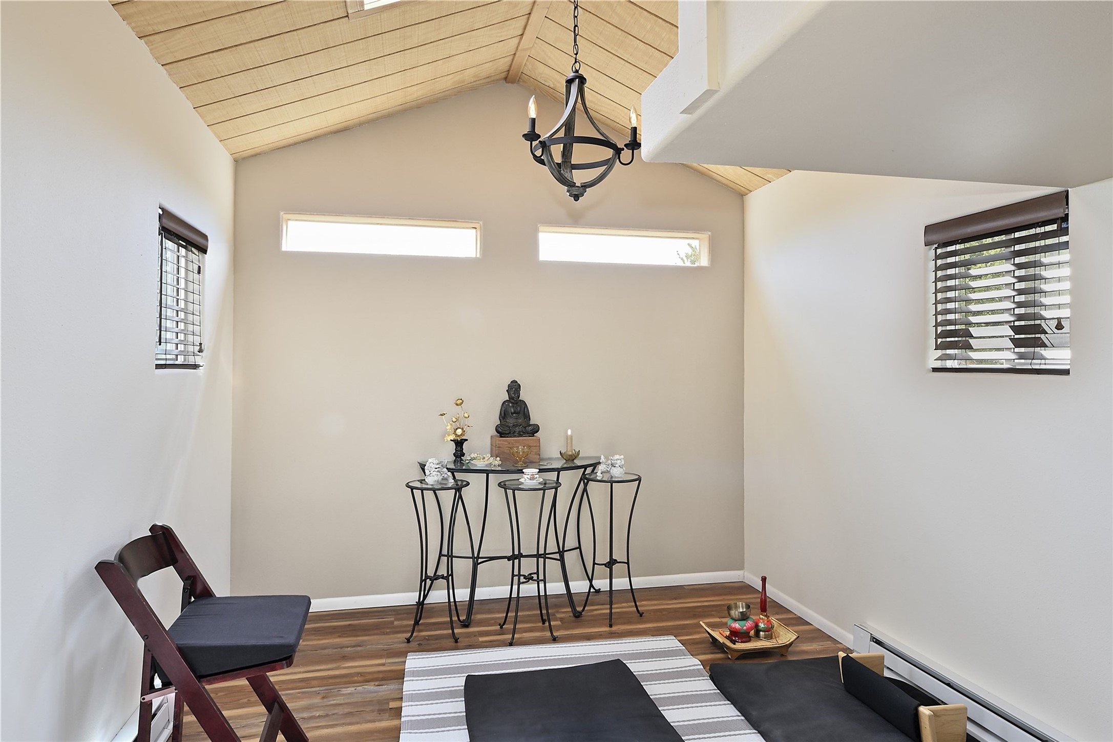Immaculate newer home nestled on a hilltop with nature and mountain views from every window and only minutes from town. Tall archways, custom wood doors, attractive tile plank floors and superb separation of bedrooms greet you in this light and airy home. Spacious eat in kitchen with large stone counters, high end appliances and a fabulous pantry combine with the living area and tall ceilings to offer a magnificent open space. Rear portal with views of the Galisteo Basin invite you outside to take in the breathtaking expanse. Savor the primary bedroom with charming fireplace and bathroom suite made for royalty with separate vanities, wardrobes and water closets. Oversized three car garage, California closet systems in garage and all three bedroom closets as well as a sizeable walk in linen closet. Come home to plenty of storage, magnificent views, acreage and serenity all just minutes from the city of Santa Fe. Truly the perfect, pristinely maintained home that offers a peaceful country feel without being too far out. Gated community, two storage sheds and a heated meditation studio. Come and see!