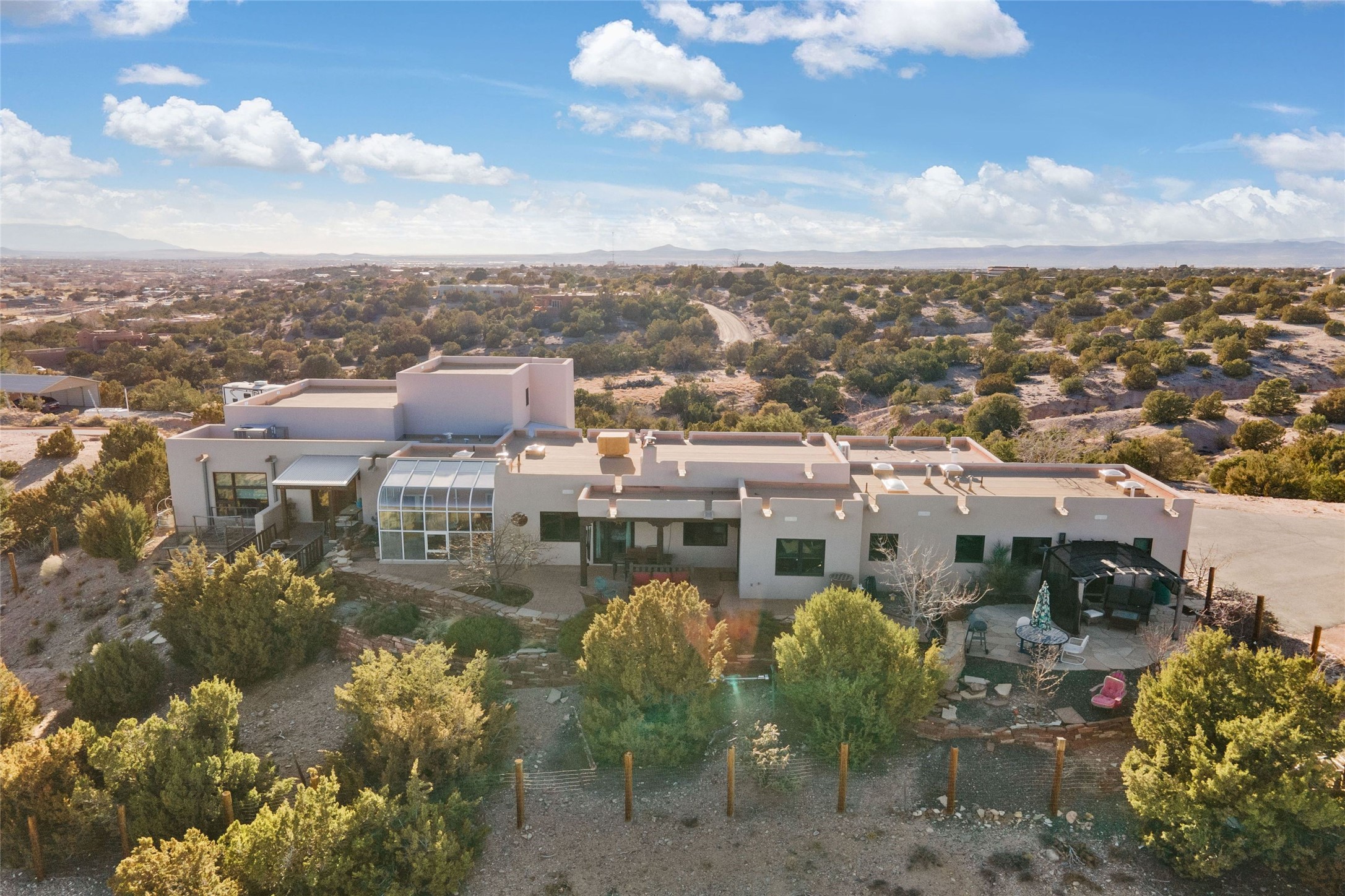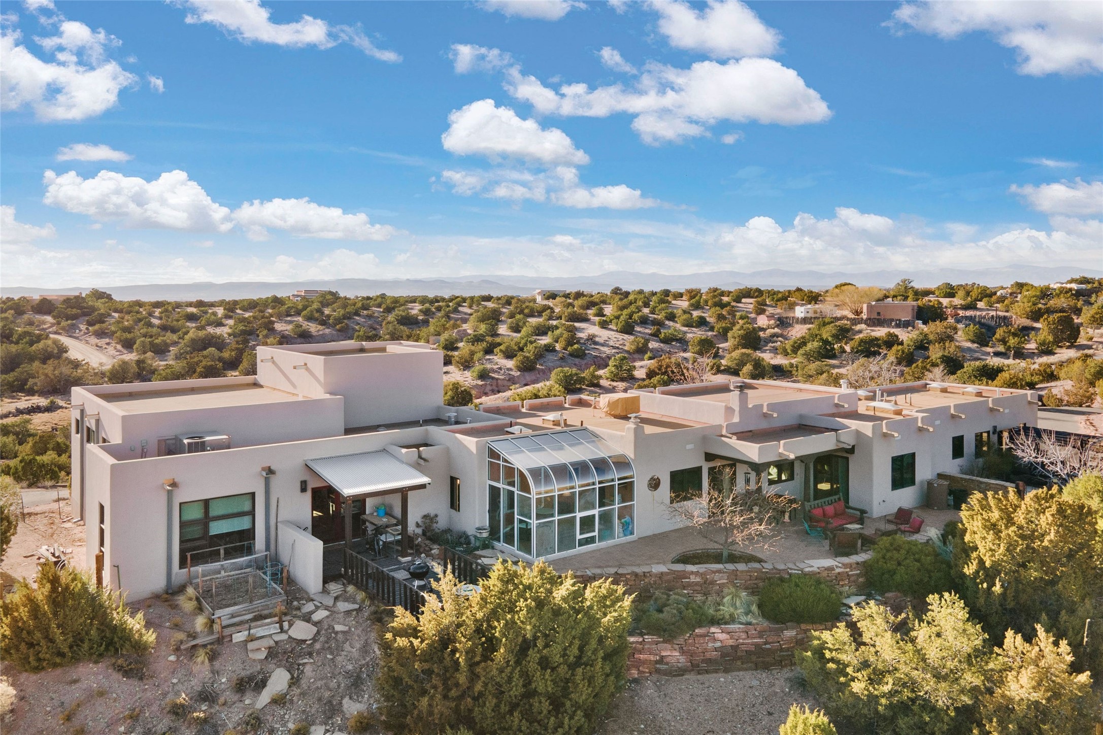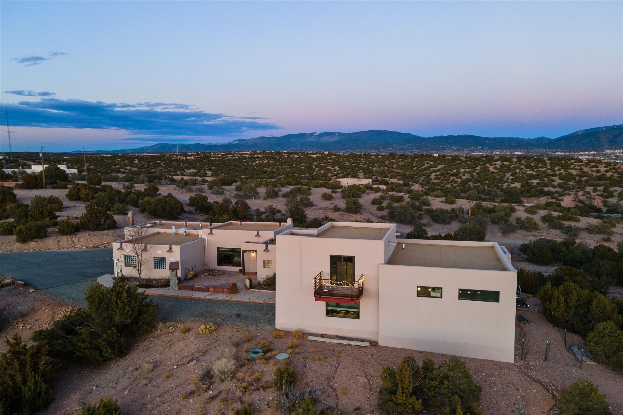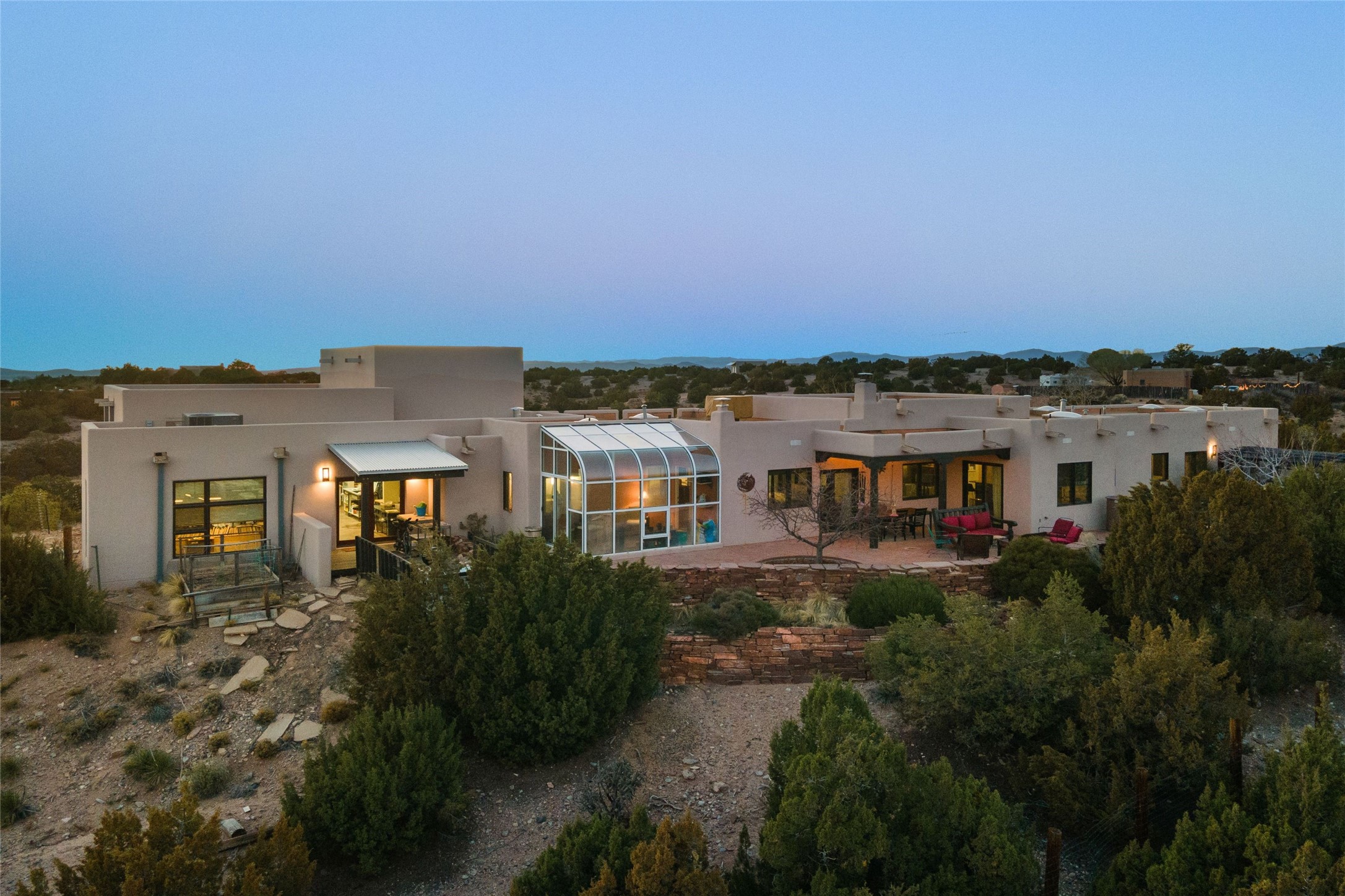 An Artist's Dream Oasis awaits the new owners of this fabulous property! You will have stunning sunrises and sunsets from this well located home on the west ridge overlooking Santa Fe. Just 3.5 miles from the Plaza, the 360 views will enthrall everyone. The 3 bedroom 3 bath main home has two suites, one of which has been successfully used as a vacation rental...it can be a mother-in law suite as well with it's own entrance and outdoor sitting area. The house has had most every detail updated with high end finishes. New windows and doors, new mini-split, new lighting. The kitchen and primary bathroom were remodeled in 2019 with upscale cabinets, appliances and countertops. The 2009 sq. ft. studio/guest house is a professional artist's dream, completed in 2019 with soaring ceilings, fabulous work spaces and an art storage loft. The possibilities are endless as there is kitchen area and 3/4 bath, with rooms that could be bedrooms or living space. It's a must see - must buy home for your Santa Fe life style! See attached documents for a list of upgrades and amenities.