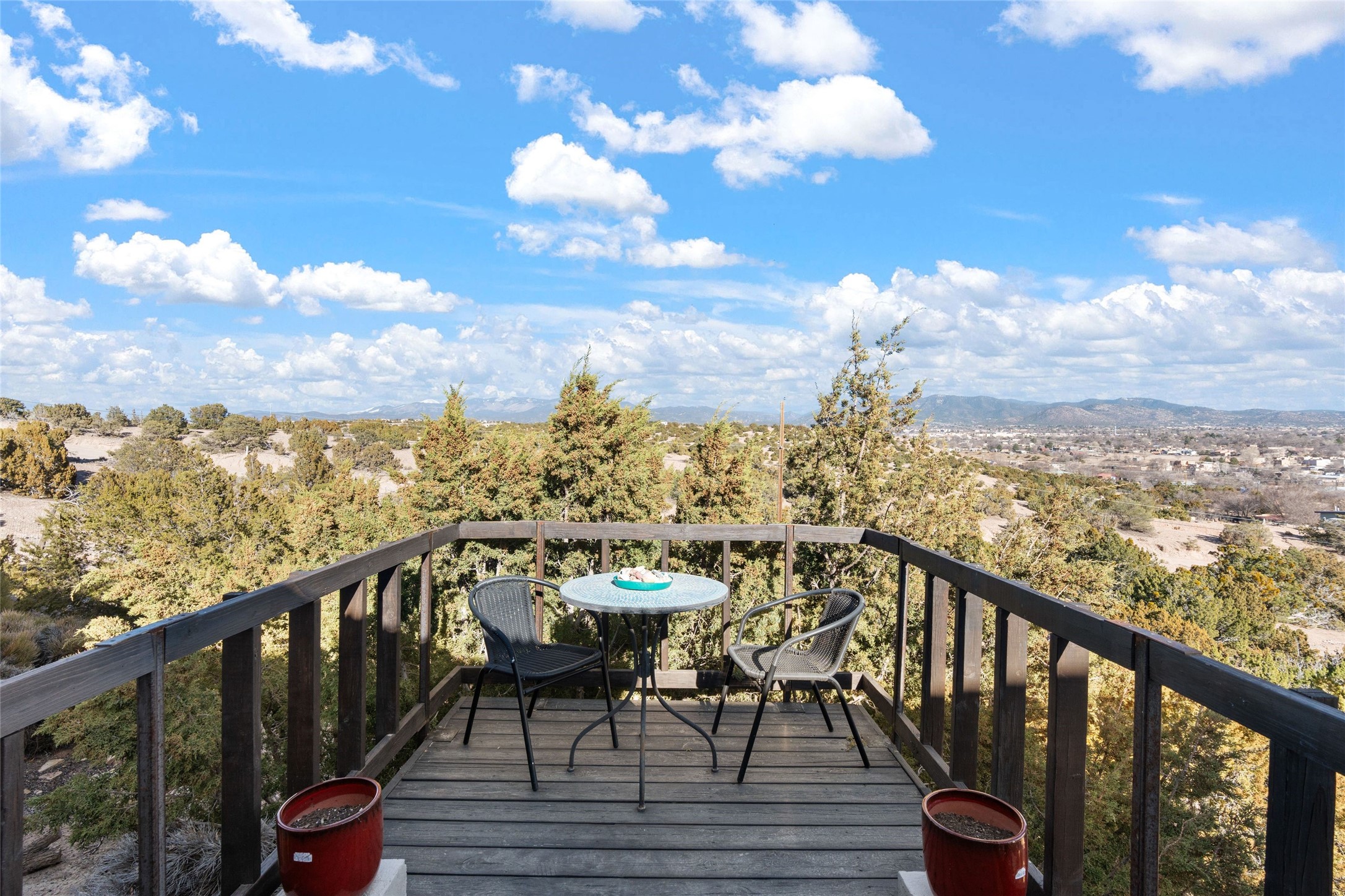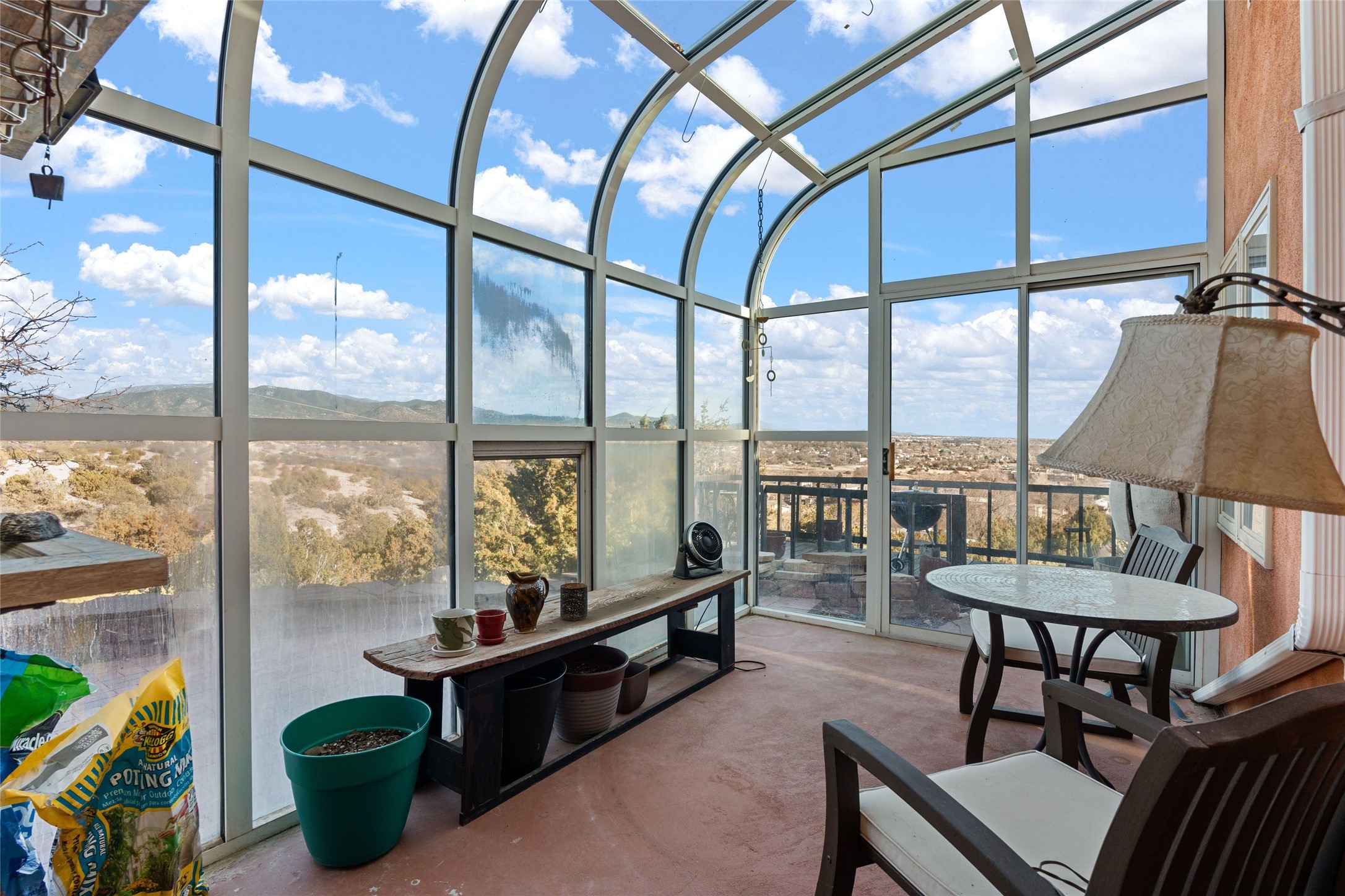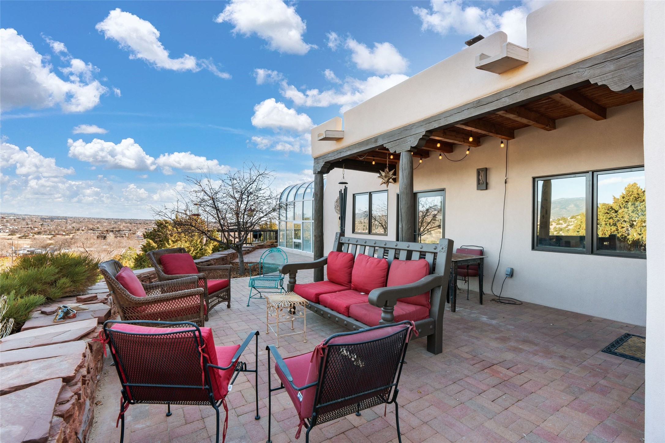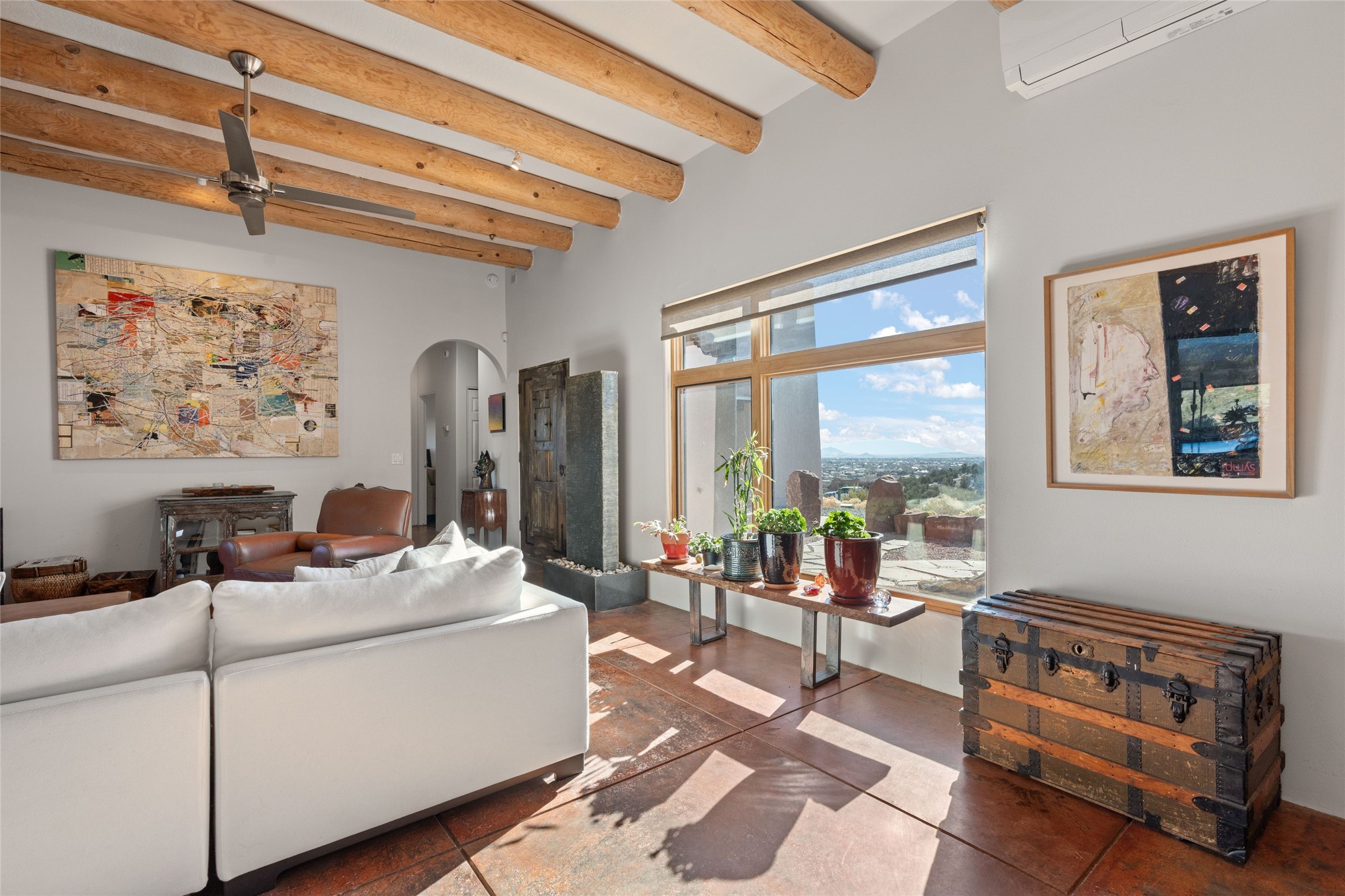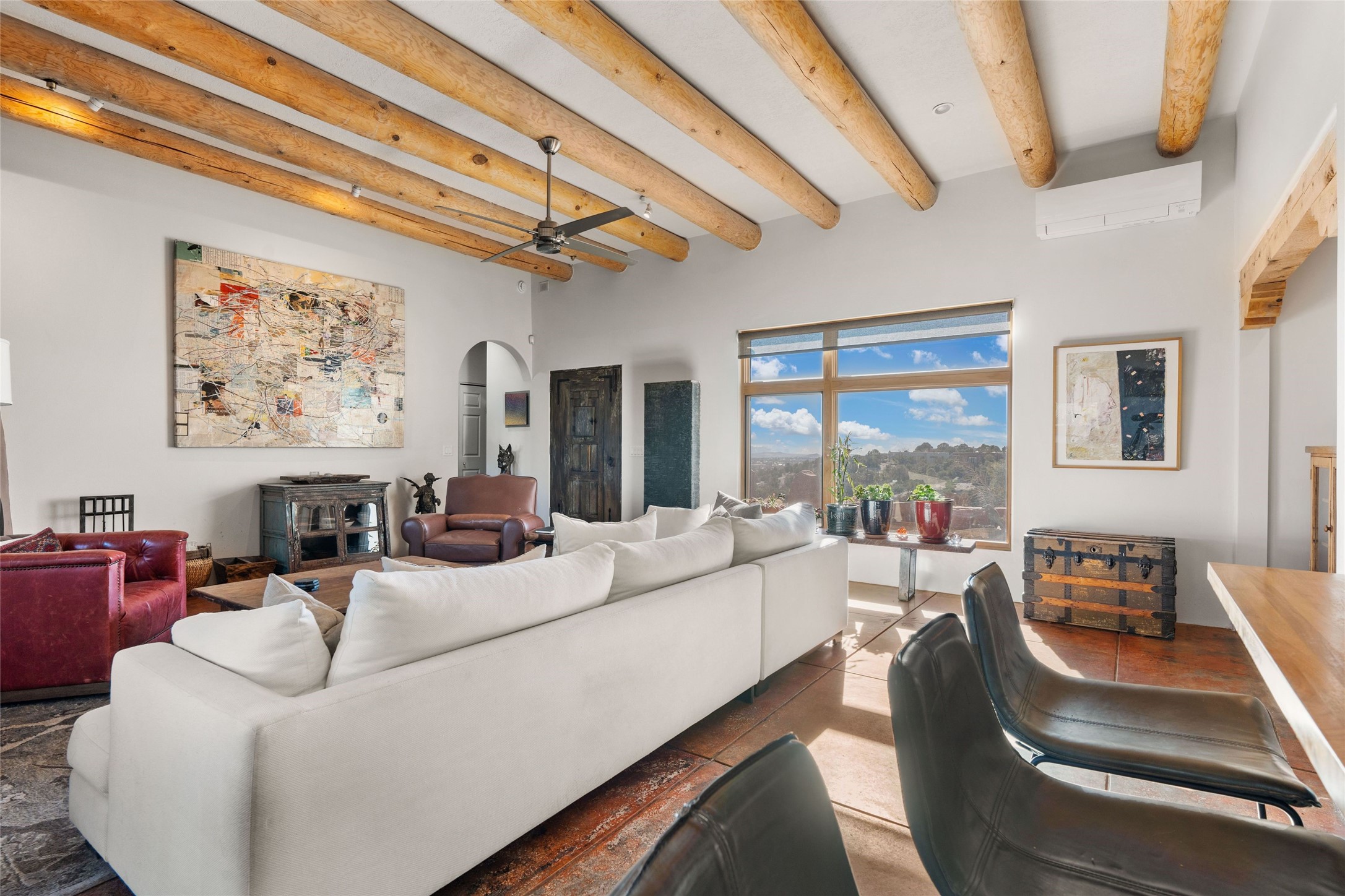 An Artist's Dream Oasis awaits the new owners of this fabulous property! You will have stunning sunrises and sunsets from this well located home on the west ridge overlooking Santa Fe. Just 3.5 miles from the Plaza, the 360 views will enthrall everyone. The 3 bedroom 3 bath main home has two suites, one of which has been successfully used as a vacation rental...it can be a mother-in law suite as well with it's own entrance and outdoor sitting area. The house has had most every detail updated with high end finishes. New windows and doors, new mini-split, new lighting. The kitchen and primary bathroom were remodeled in 2019 with upscale cabinets, appliances and countertops. The 2009 sq. ft. studio/guest house is a professional artist's dream, completed in 2019 with soaring ceilings, fabulous work spaces and an art storage loft. The possibilities are endless as there is kitchen area and 3/4 bath, with rooms that could be bedrooms or living space. It's a must see - must buy home for your Santa Fe life style! See attached documents for a list of upgrades and amenities.