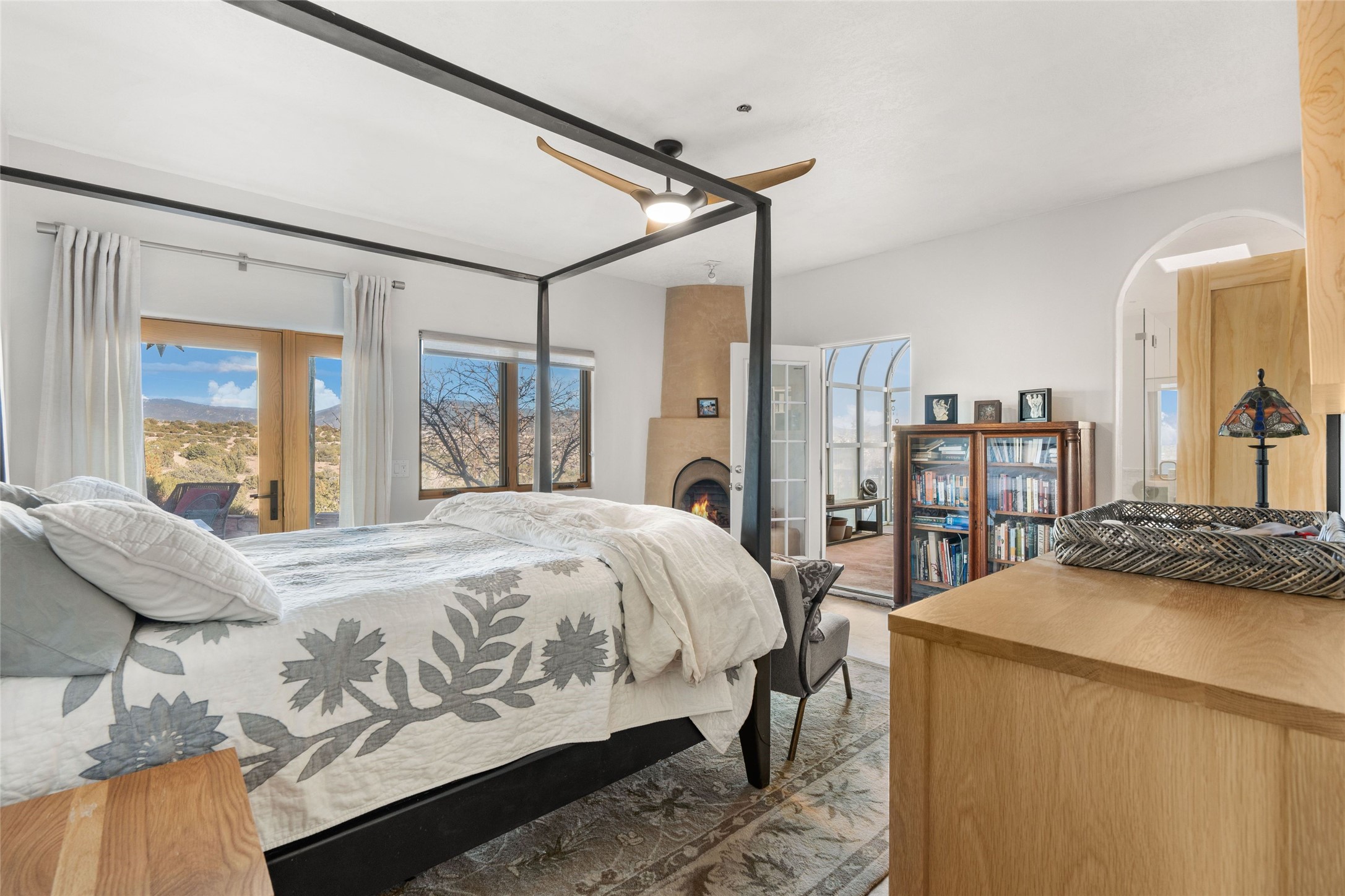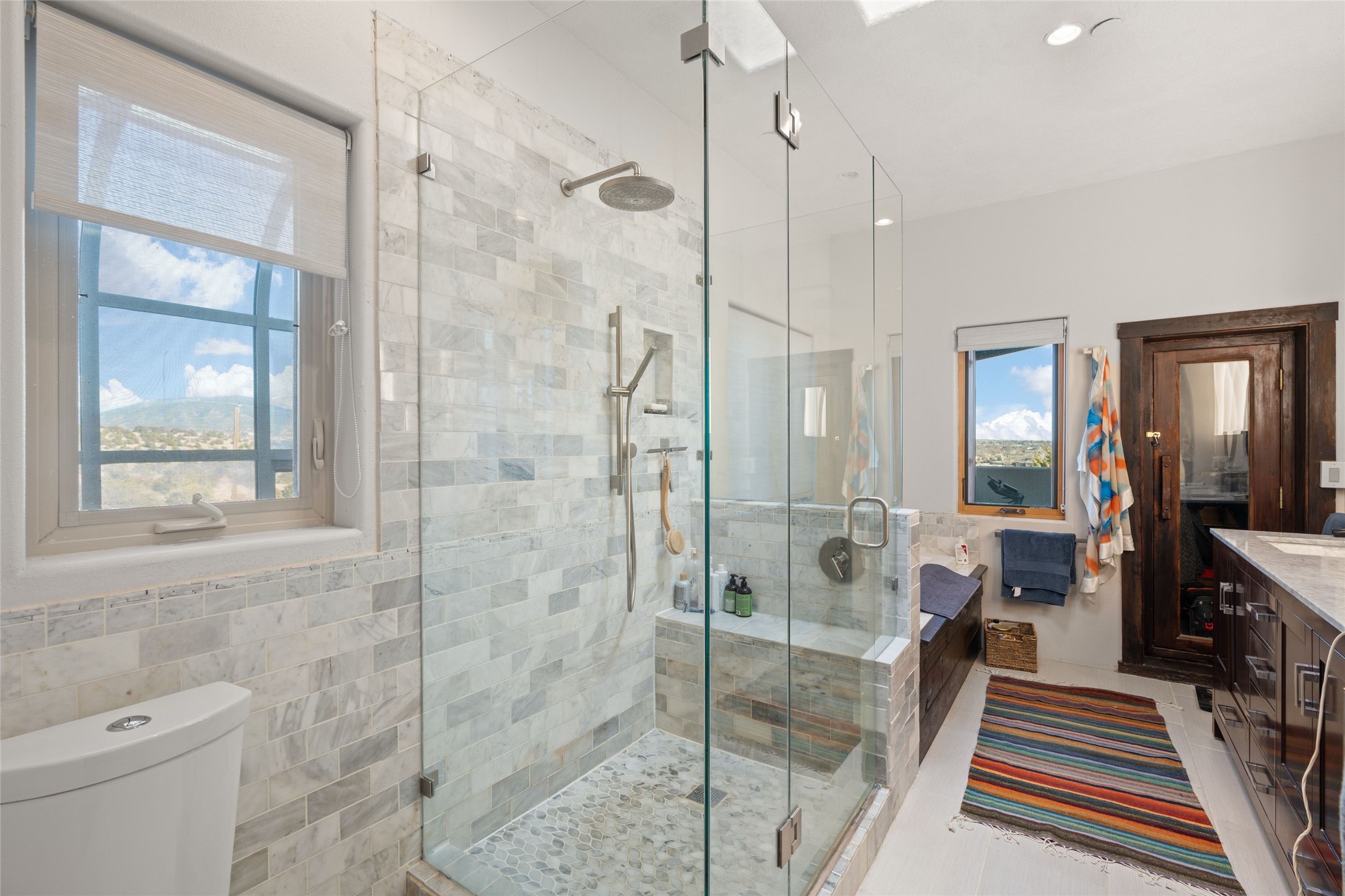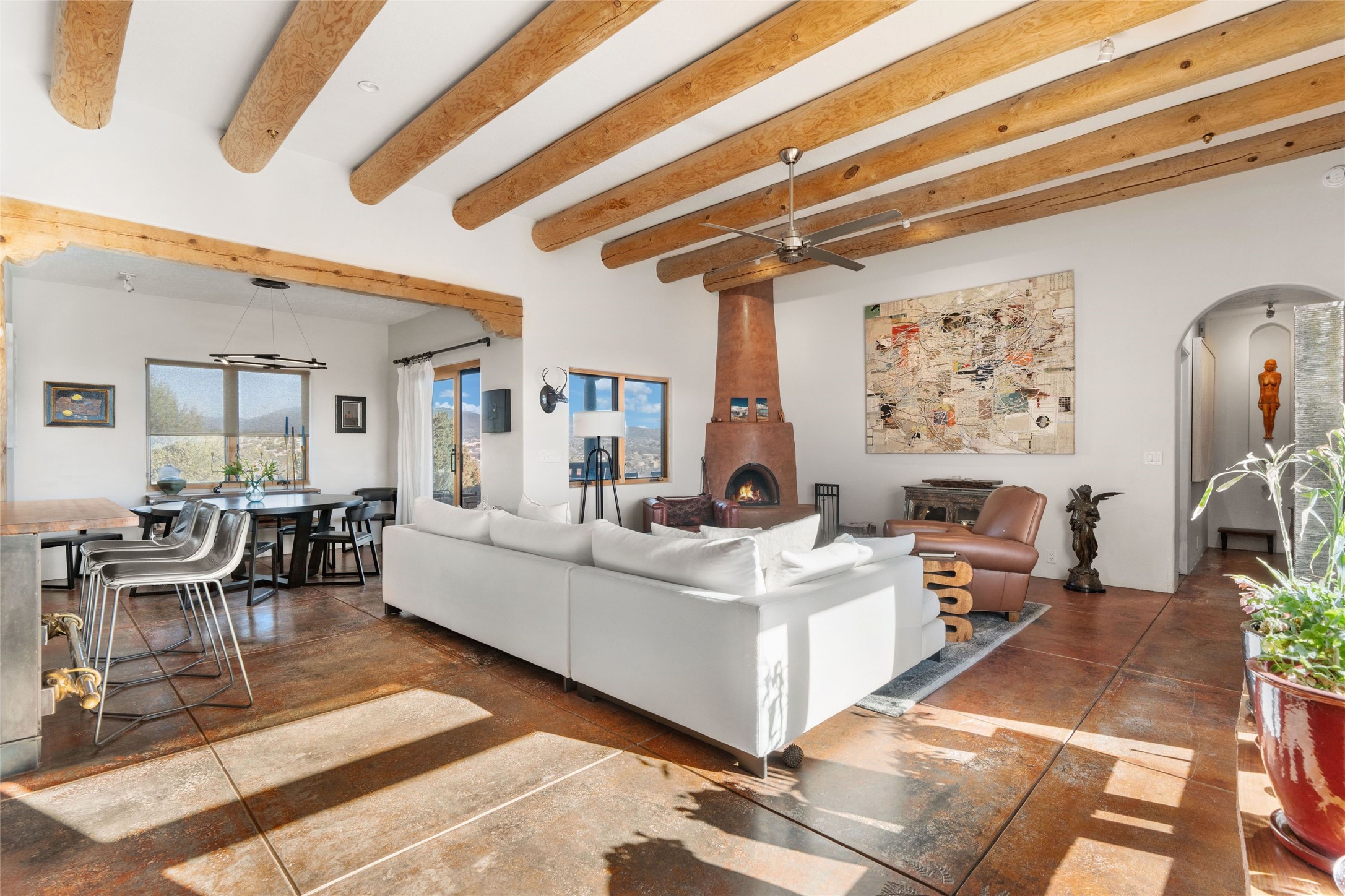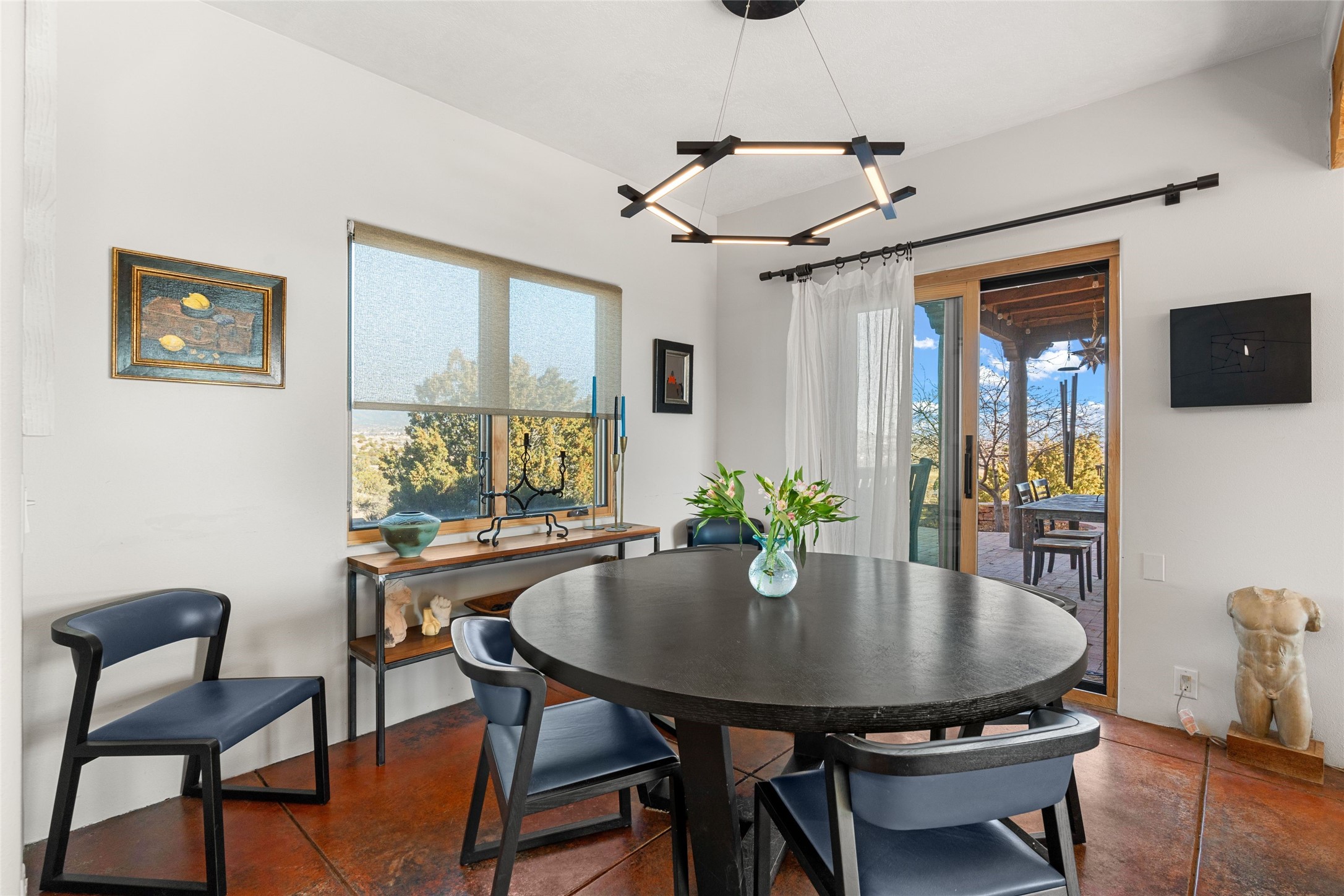 An Artist's Dream Oasis awaits the new owners of this fabulous property! You will have stunning sunrises and sunsets from this well located home on the west ridge overlooking Santa Fe. Just 3.5 miles from the Plaza, the 360 views will enthrall everyone. The 3 bedroom 3 bath main home has two suites, one of which has been successfully used as a vacation rental...it can be a mother-in law suite as well with it's own entrance and outdoor sitting area. The house has had most every detail updated with high end finishes. New windows and doors, new mini-split, new lighting. The kitchen and primary bathroom were remodeled in 2019 with upscale cabinets, appliances and countertops. The 2009 sq. ft. studio/guest house is a professional artist's dream, completed in 2019 with soaring ceilings, fabulous work spaces and an art storage loft. The possibilities are endless as there is kitchen area and 3/4 bath, with rooms that could be bedrooms or living space. It's a must see - must buy home for your Santa Fe life style! See attached documents for a list of upgrades and amenities.