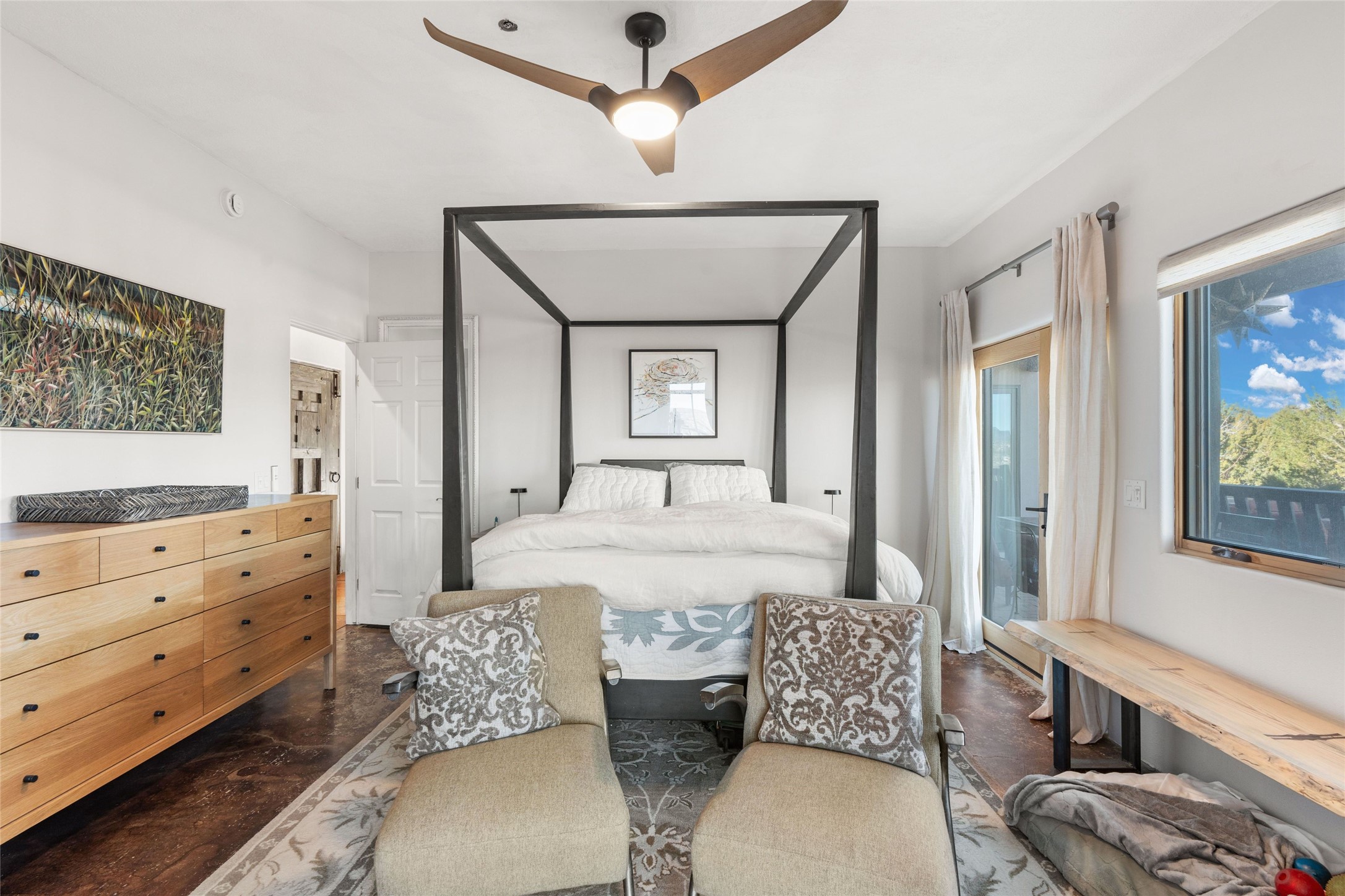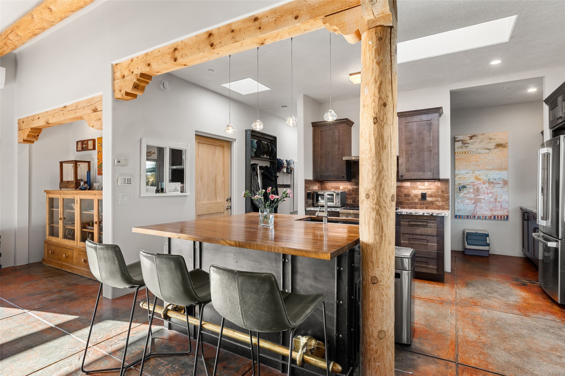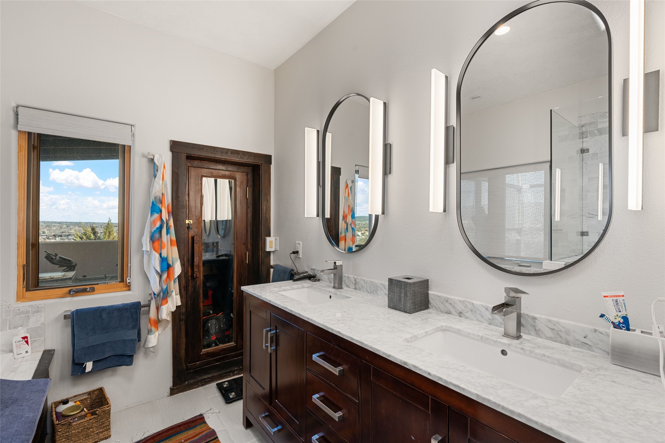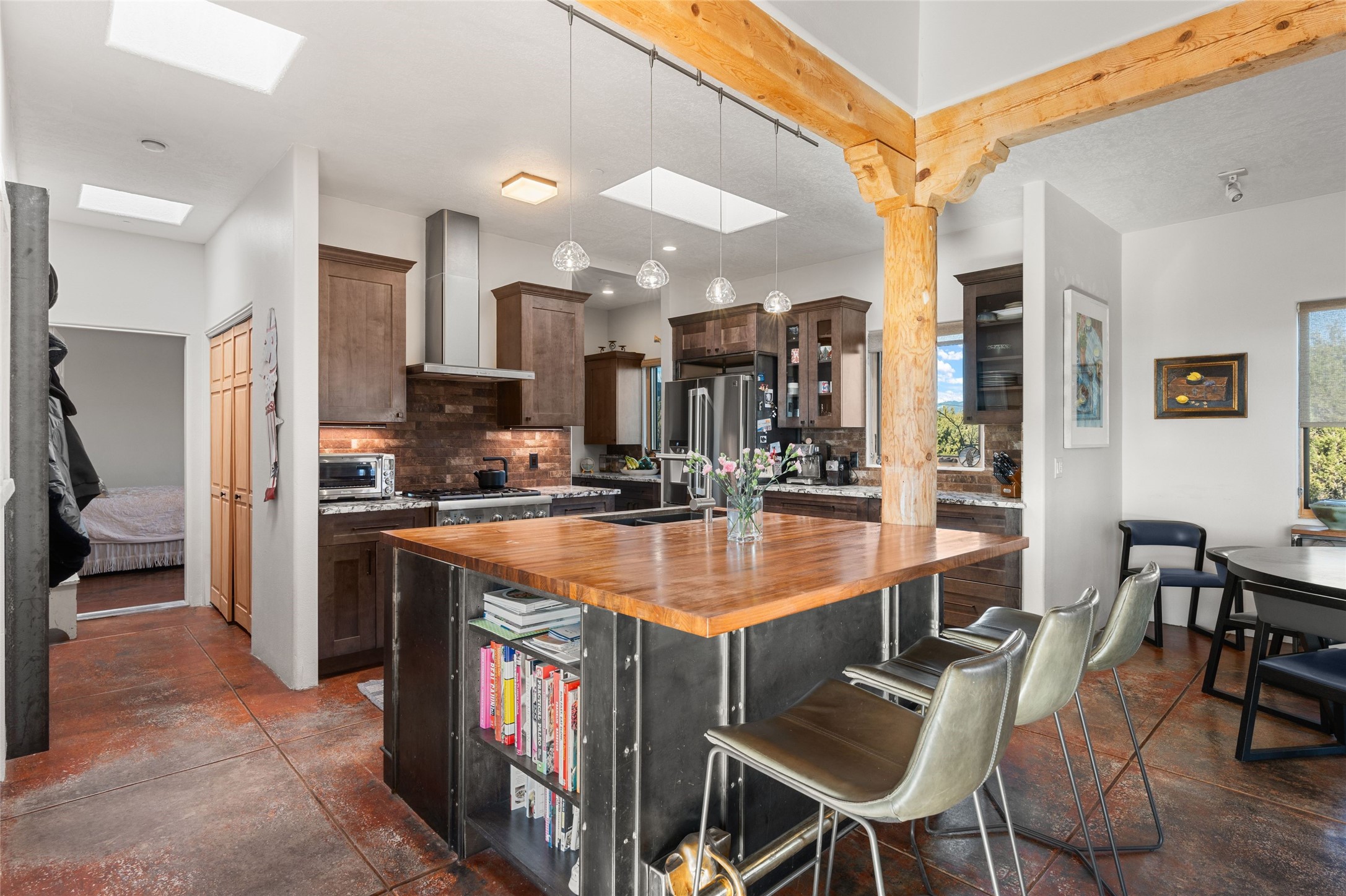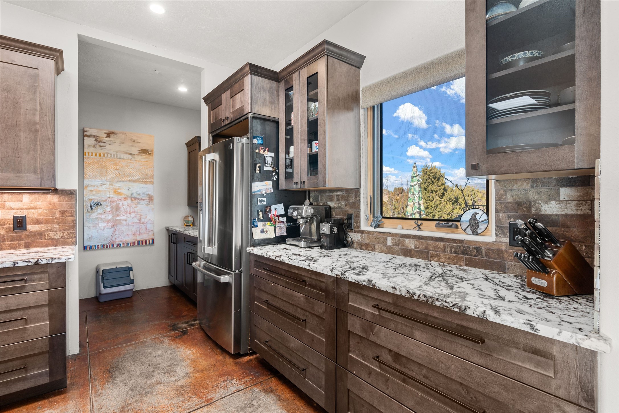 An Artist's Dream Oasis awaits the new owners of this fabulous property! You will have stunning sunrises and sunsets from this well located home on the west ridge overlooking Santa Fe. Just 3.5 miles from the Plaza, the 360 views will enthrall everyone. The 3 bedroom 3 bath main home has two suites, one of which has been successfully used as a vacation rental...it can be a mother-in law suite as well with it's own entrance and outdoor sitting area. The house has had most every detail updated with high end finishes. New windows and doors, new mini-split, new lighting. The kitchen and primary bathroom were remodeled in 2019 with upscale cabinets, appliances and countertops. The 2009 sq. ft. studio/guest house is a professional artist's dream, completed in 2019 with soaring ceilings, fabulous work spaces and an art storage loft. The possibilities are endless as there is kitchen area and 3/4 bath, with rooms that could be bedrooms or living space. It's a must see - must buy home for your Santa Fe life style! See attached documents for a list of upgrades and amenities.