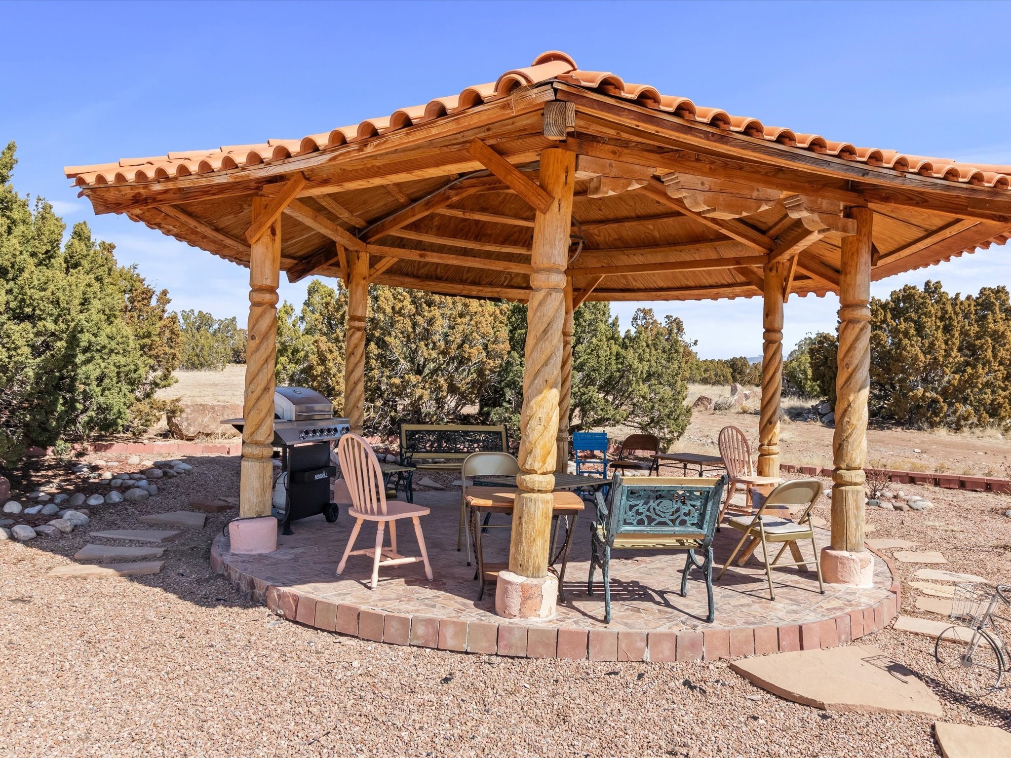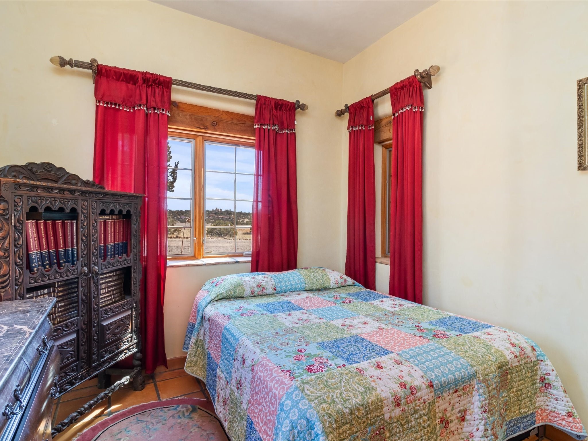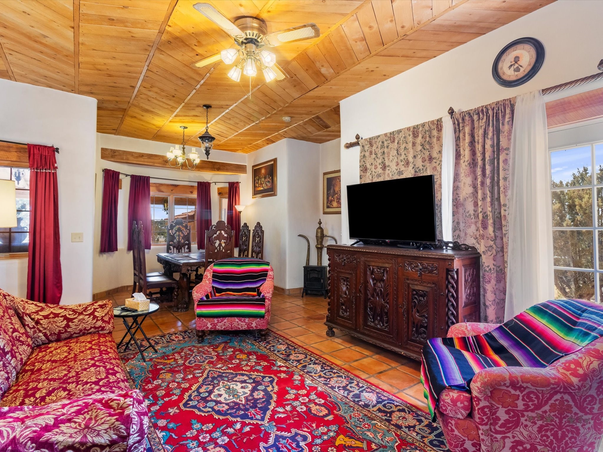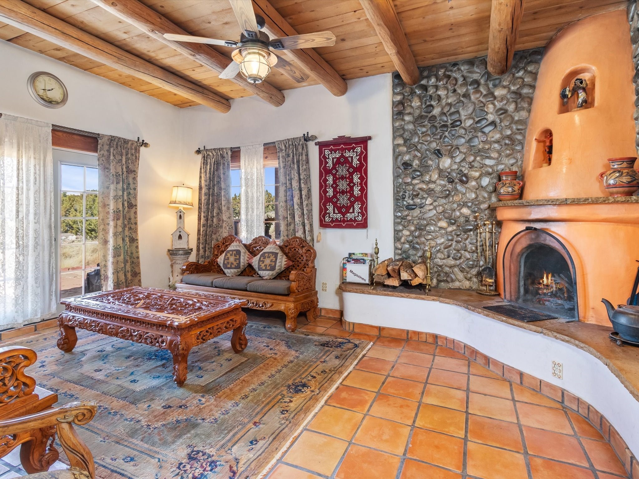 Spacious Santa Fe Retreat on 2.4 Acres with Stunning Mountain ViewsEscape to the serenity of this beautiful Santa Fe home, nestled on 2.4 acres of land with no close neighbors, offering privacy and breathtaking mountain views. This expansive 3,034 sq. ft. residence features six generously sized bedrooms and 3.5 bathrooms, perfect for comfortable living or entertaining guests.Step inside to discover the charm of traditional kiva fireplaces, tile floors, and a tile roof, blending Southwestern character with modern convenience. The well-designed floor plan provides ample space for relaxation and gatherings, while the outdoor gazebo invites you to soak in the peaceful surroundings.Located just a 10-minute drive from the historic Santa Fe Plaza, this home offers the perfect balance of seclusion and accessibility. Enjoy an easy commute to Los Alamos and Albuquerque, with quick access to Highway 566.Don't miss this rare opportunity to own a piece of Santa Fe's stunning landscape. Schedule your private tour today!
