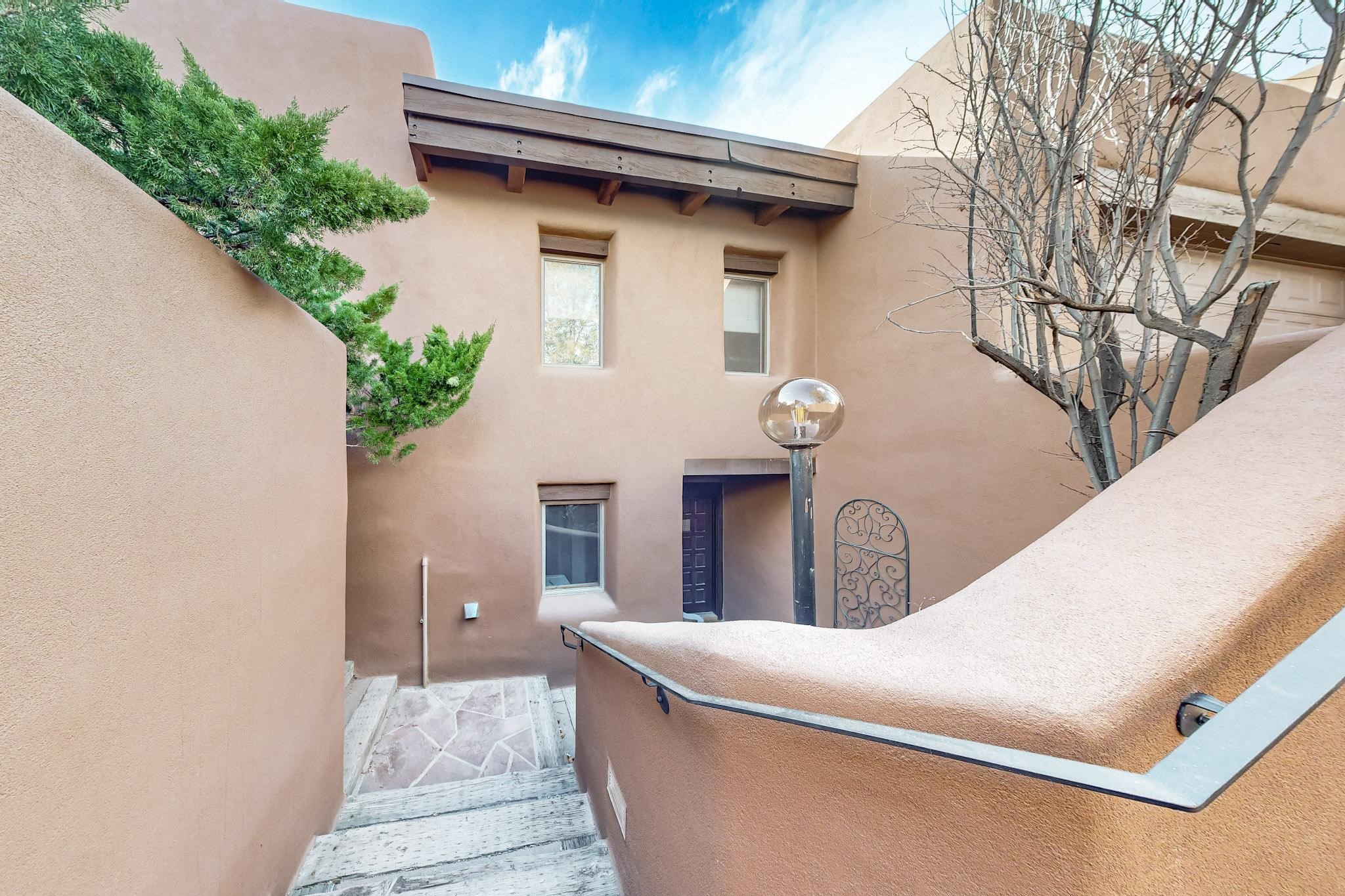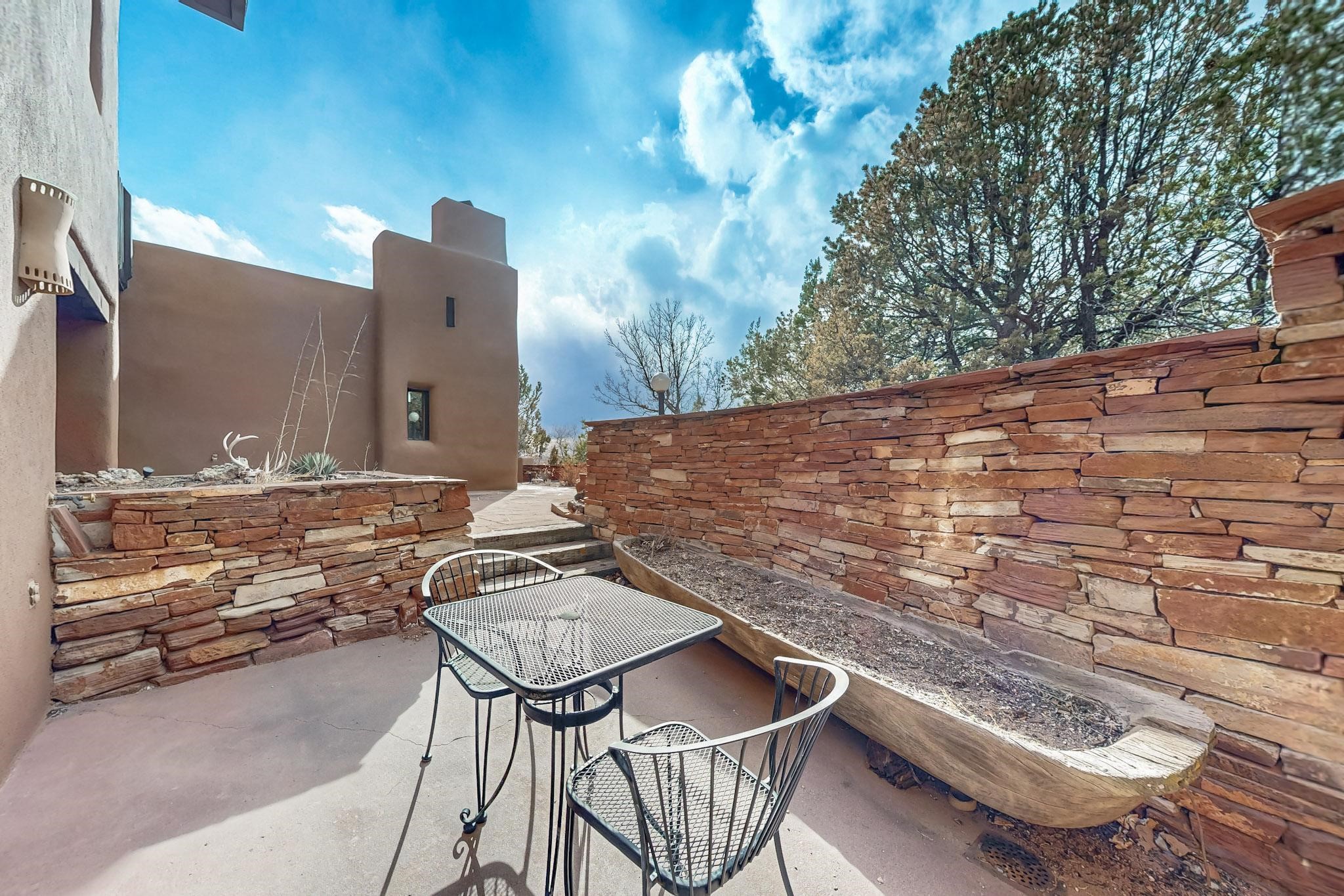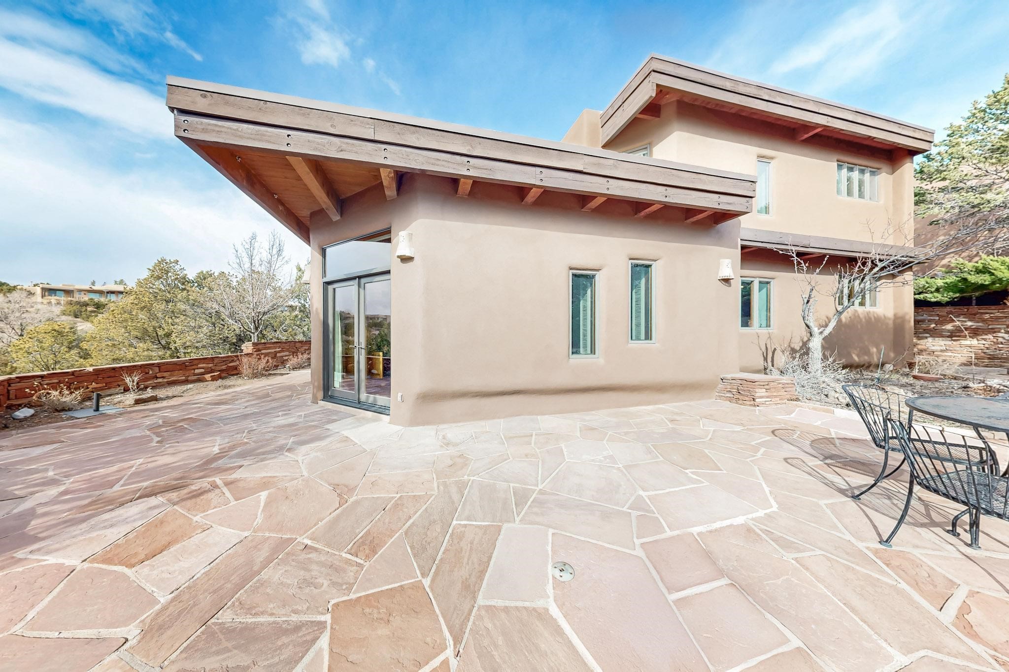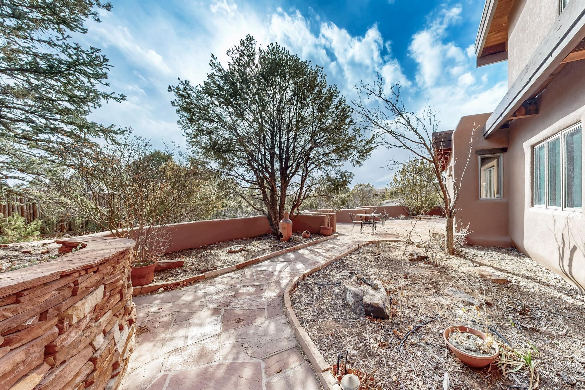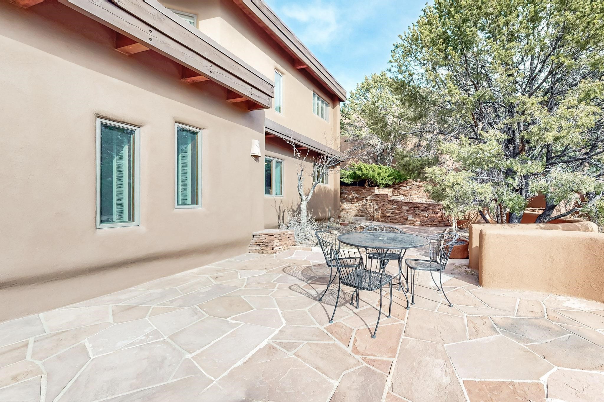 Spacious and private, with sweeping views of the Santa Fe foothills and ultimate convenience, this split level, 4 bedroom, 3 bath home cozies up to the base of the Sangre de Cristo's but is a short hop to downtown and the Plaza via hiking trails. The plan feels like a sloped spiral with wide comfortable stairs and great separation between rooms. Located in the Altamira neighborhood of Estancia Primera, a couple of hundred feet from the clubhouse, pool and tennis courts, and a short drive up the hill to the Santa Fe Ski Basin, this house features multiple outdoor spaces and a two car garage with generous storage for easy, luxury living. Recent roof and stucco mean major maintenance has been taken care of. Furnishings available upon request.