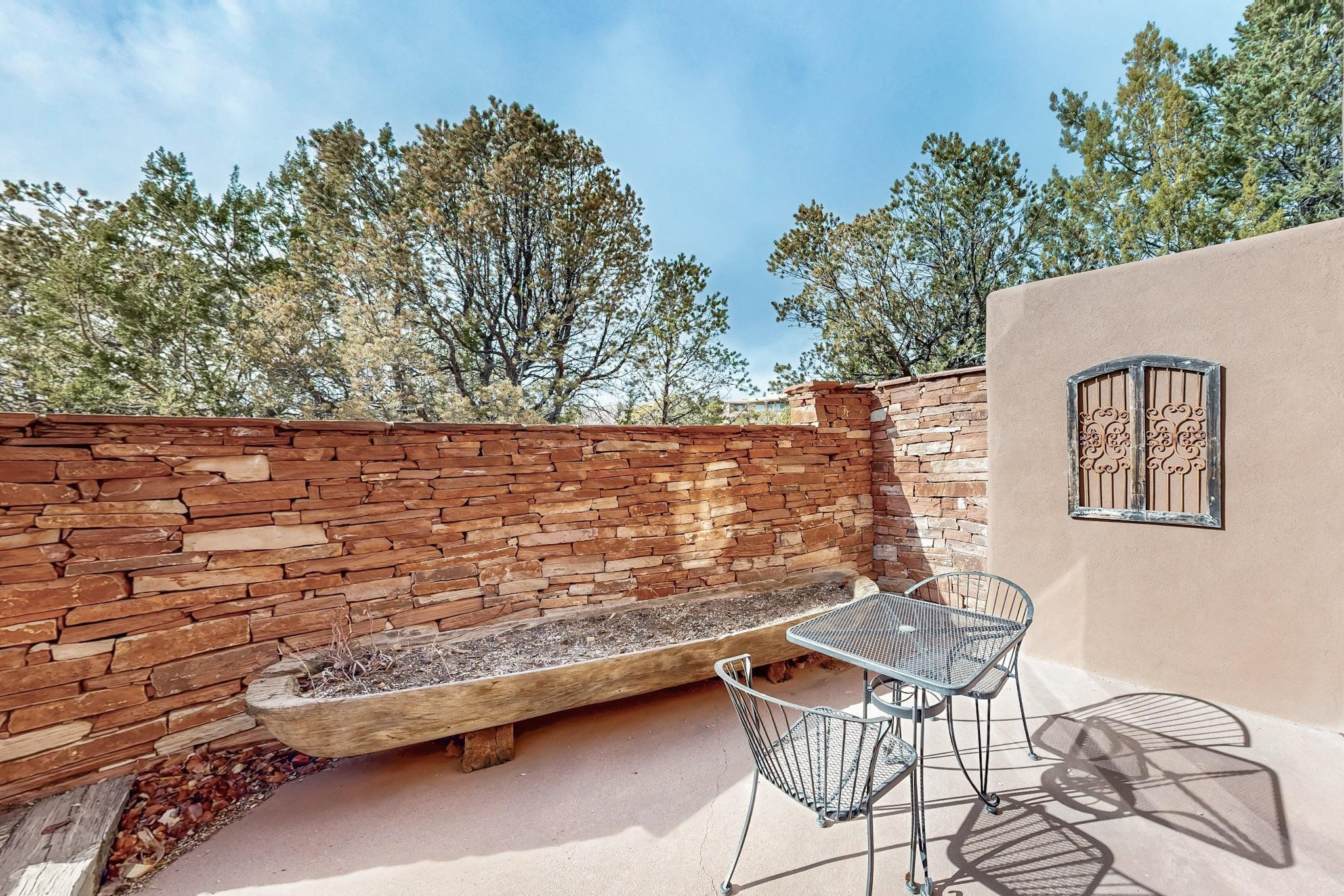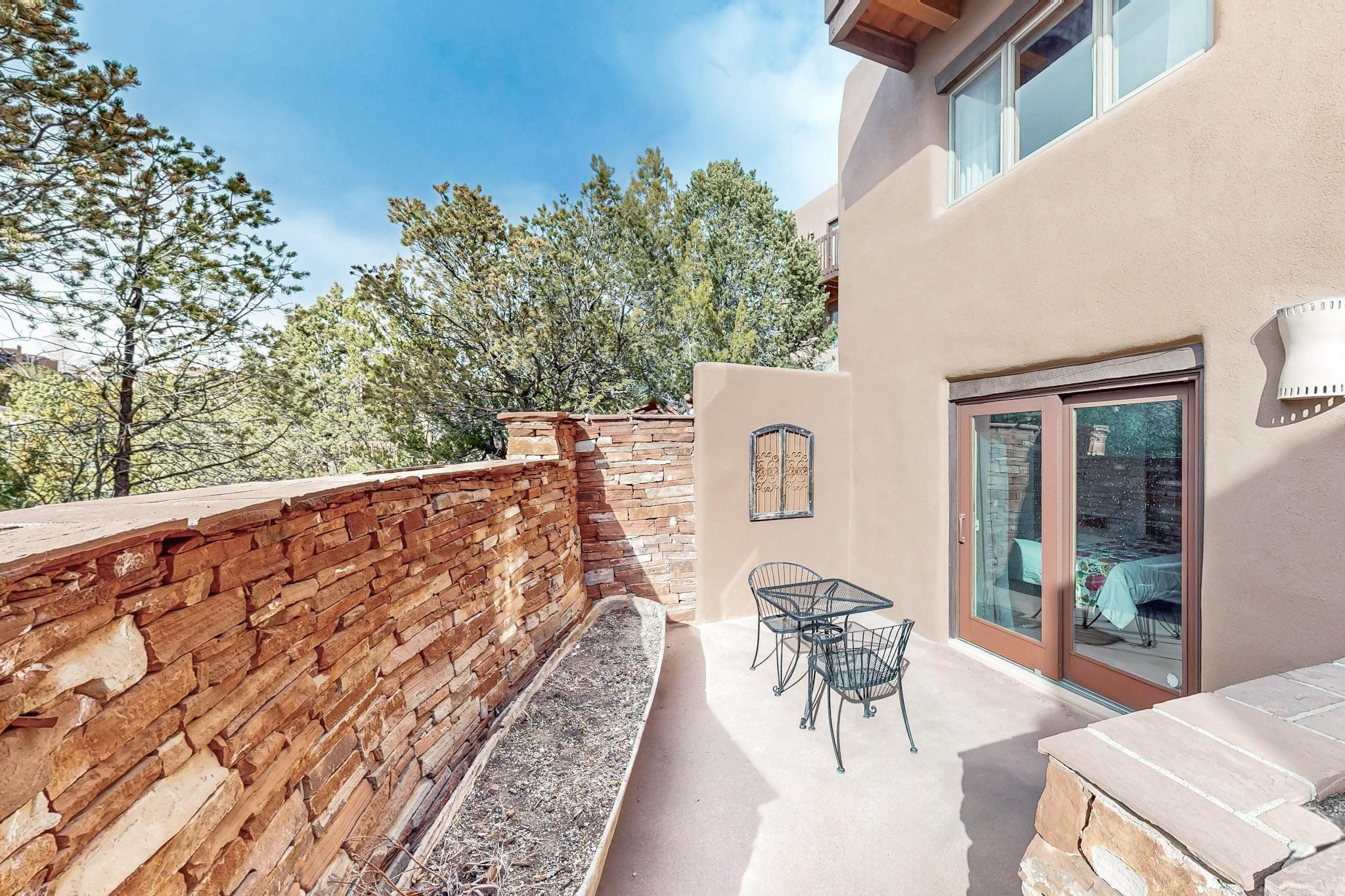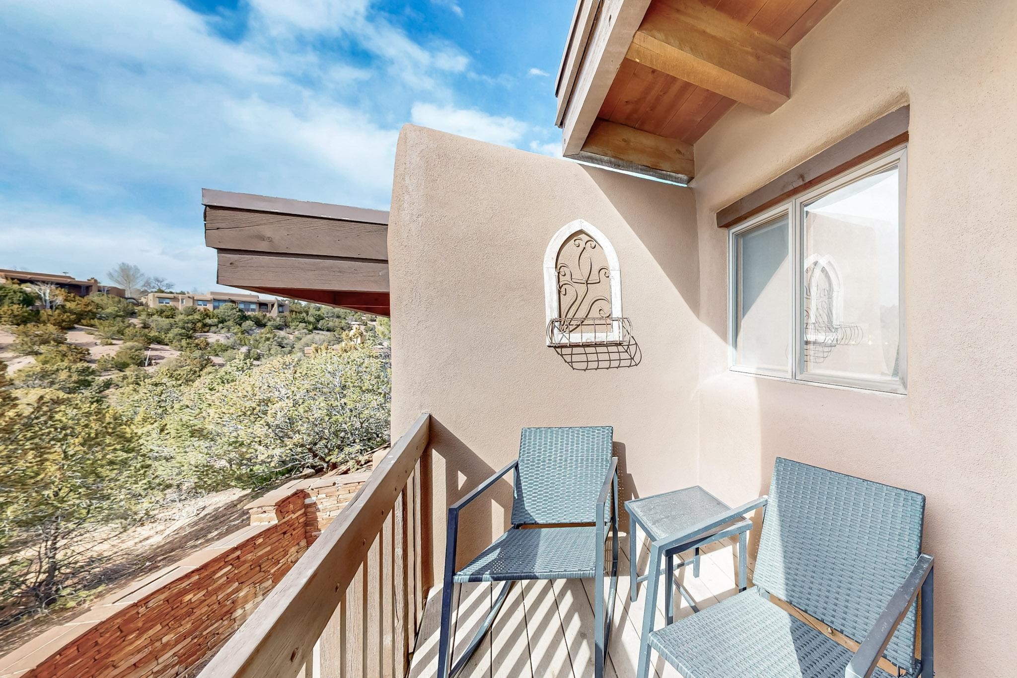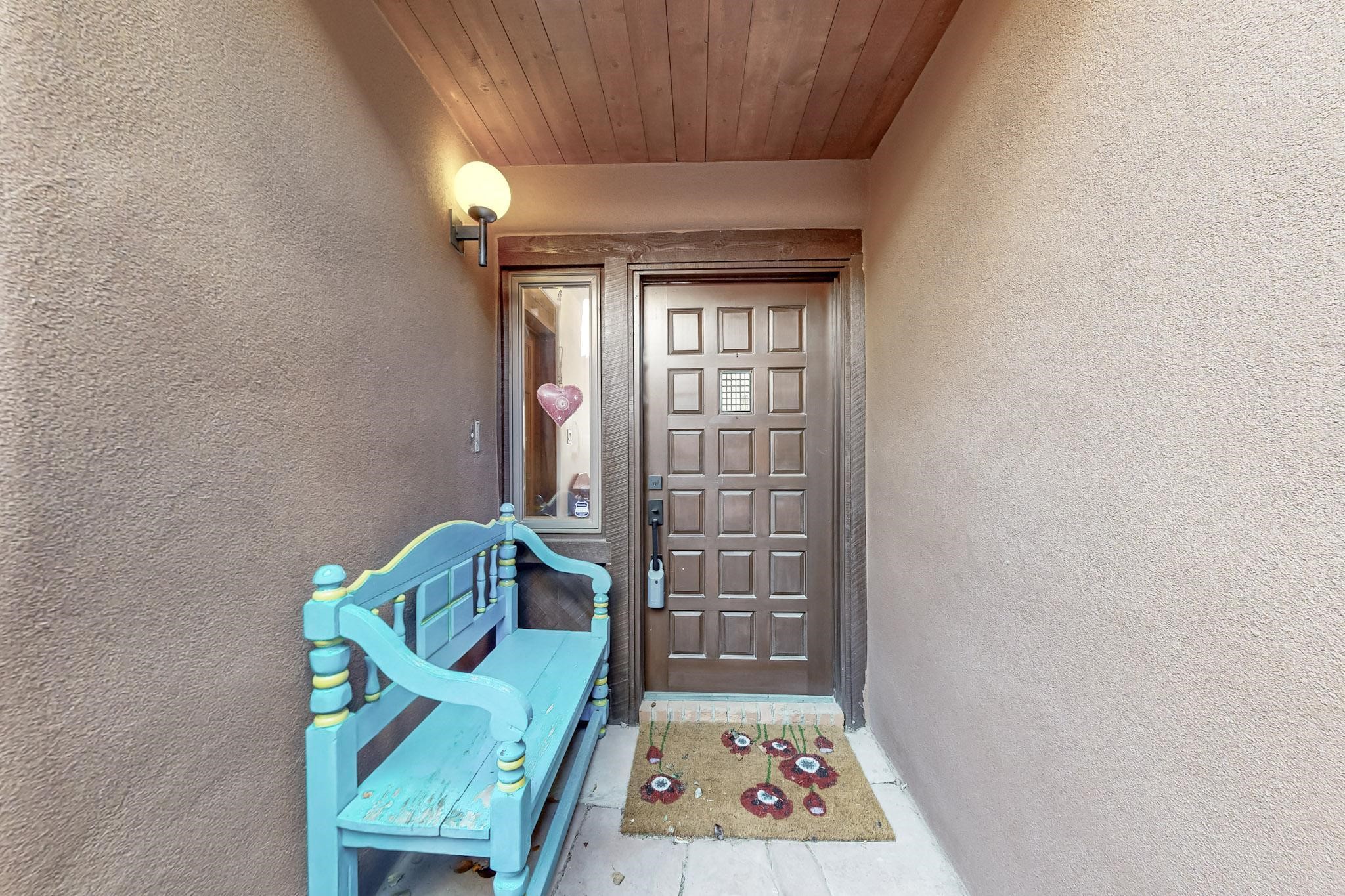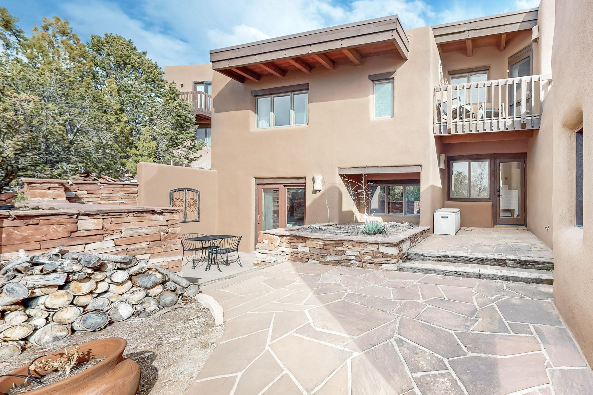 Spacious and private, with sweeping views of the Santa Fe foothills and ultimate convenience, this split level, 4 bedroom, 3 bath home cozies up to the base of the Sangre de Cristo's but is a short hop to downtown and the Plaza via hiking trails. The plan feels like a sloped spiral with wide comfortable stairs and great separation between rooms. Located in the Altamira neighborhood of Estancia Primera, a couple of hundred feet from the clubhouse, pool and tennis courts, and a short drive up the hill to the Santa Fe Ski Basin, this house features multiple outdoor spaces and a two car garage with generous storage for easy, luxury living. Recent roof and stucco mean major maintenance has been taken care of. Furnishings available upon request.