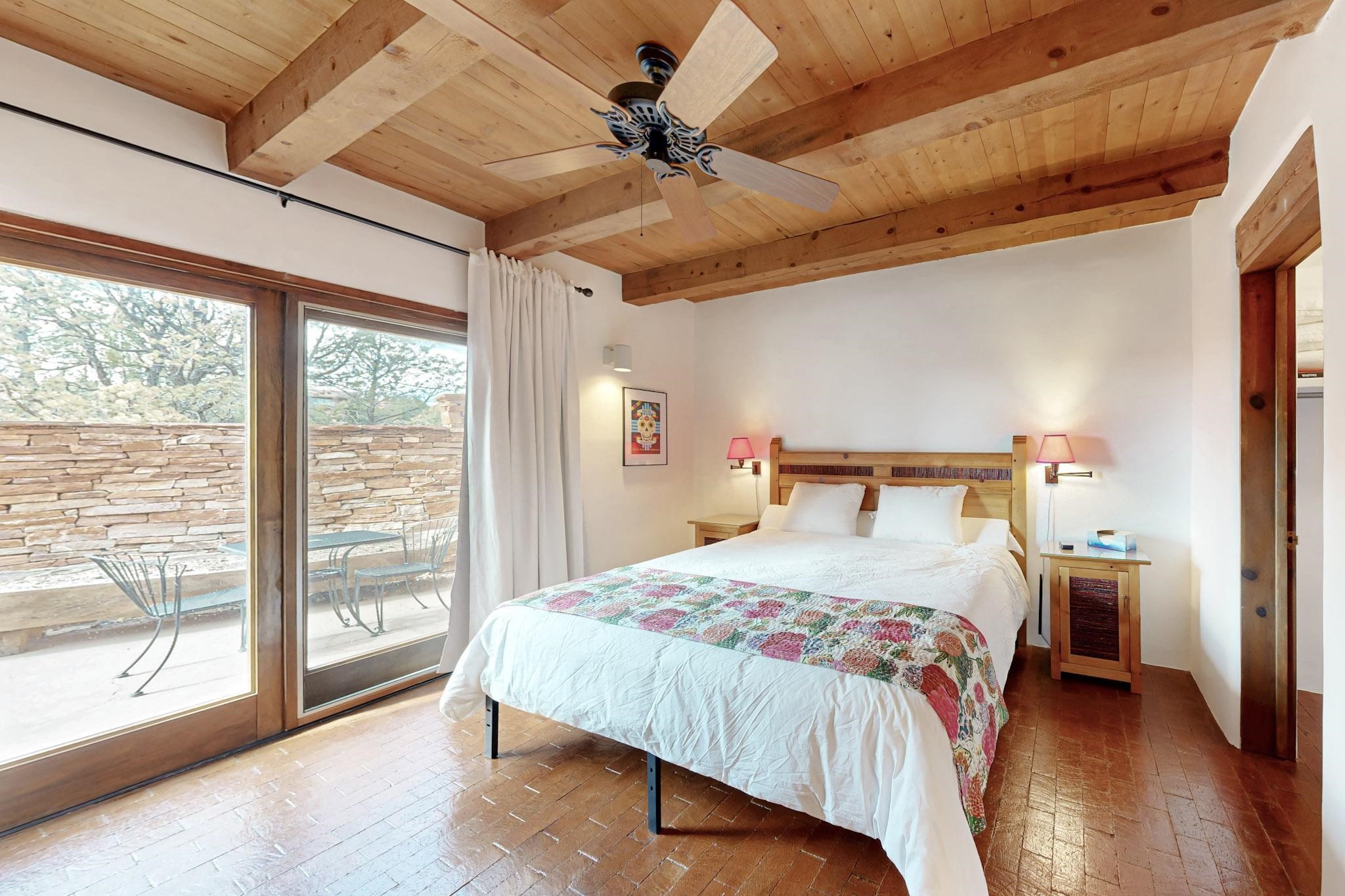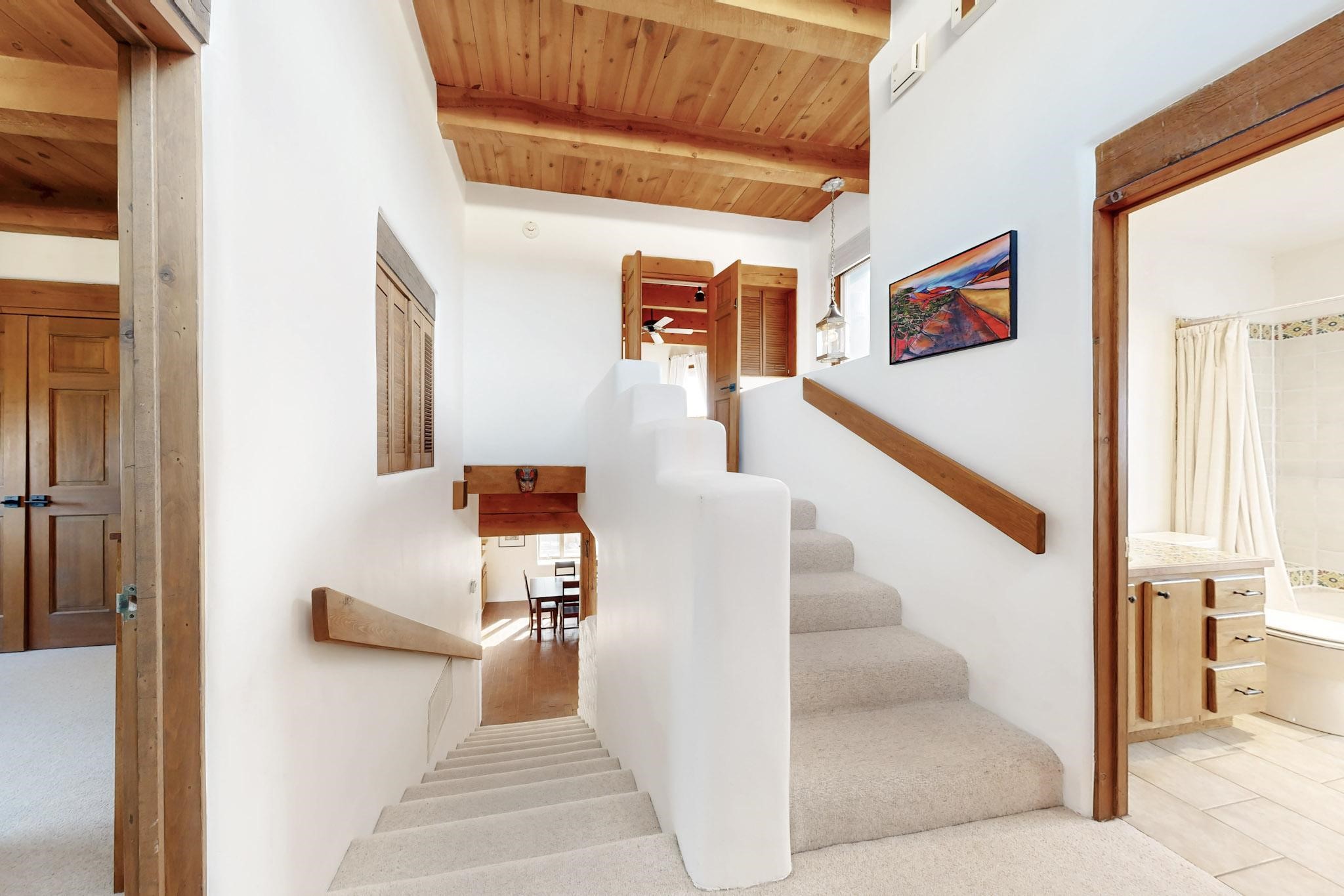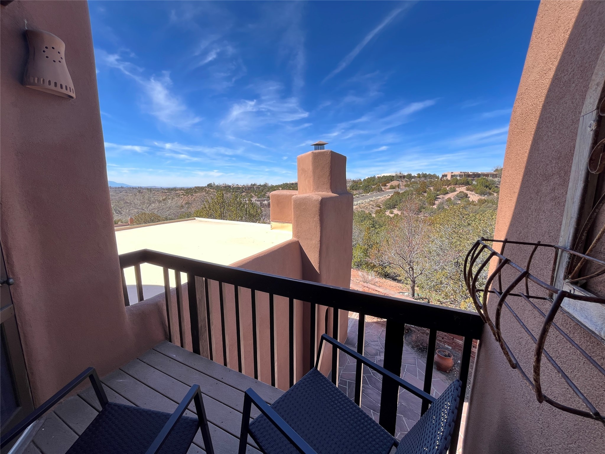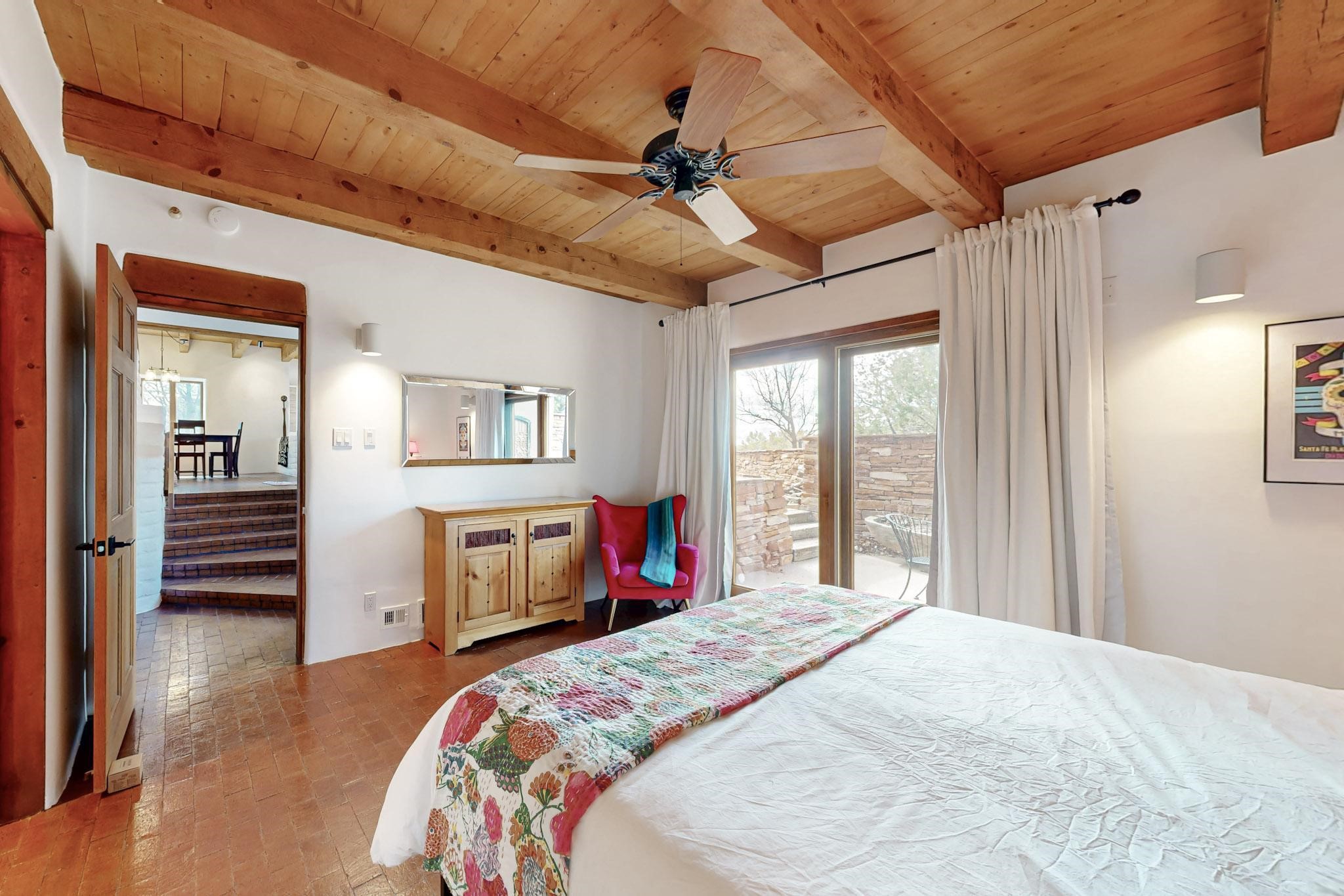 Spacious and private, with sweeping views of the Santa Fe foothills and ultimate convenience, this split level, 4 bedroom, 3 bath home cozies up to the base of the Sangre de Cristo's but is a short hop to downtown and the Plaza via hiking trails. The plan feels like a sloped spiral with wide comfortable stairs and great separation between rooms. Located in the Altamira neighborhood of Estancia Primera, a couple of hundred feet from the clubhouse, pool and tennis courts, and a short drive up the hill to the Santa Fe Ski Basin, this house features multiple outdoor spaces and a two car garage with generous storage for easy, luxury living. Recent roof and stucco mean major maintenance has been taken care of. Furnishings available upon request.