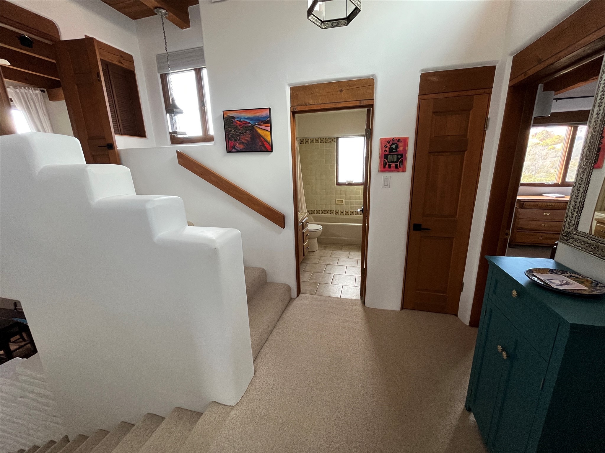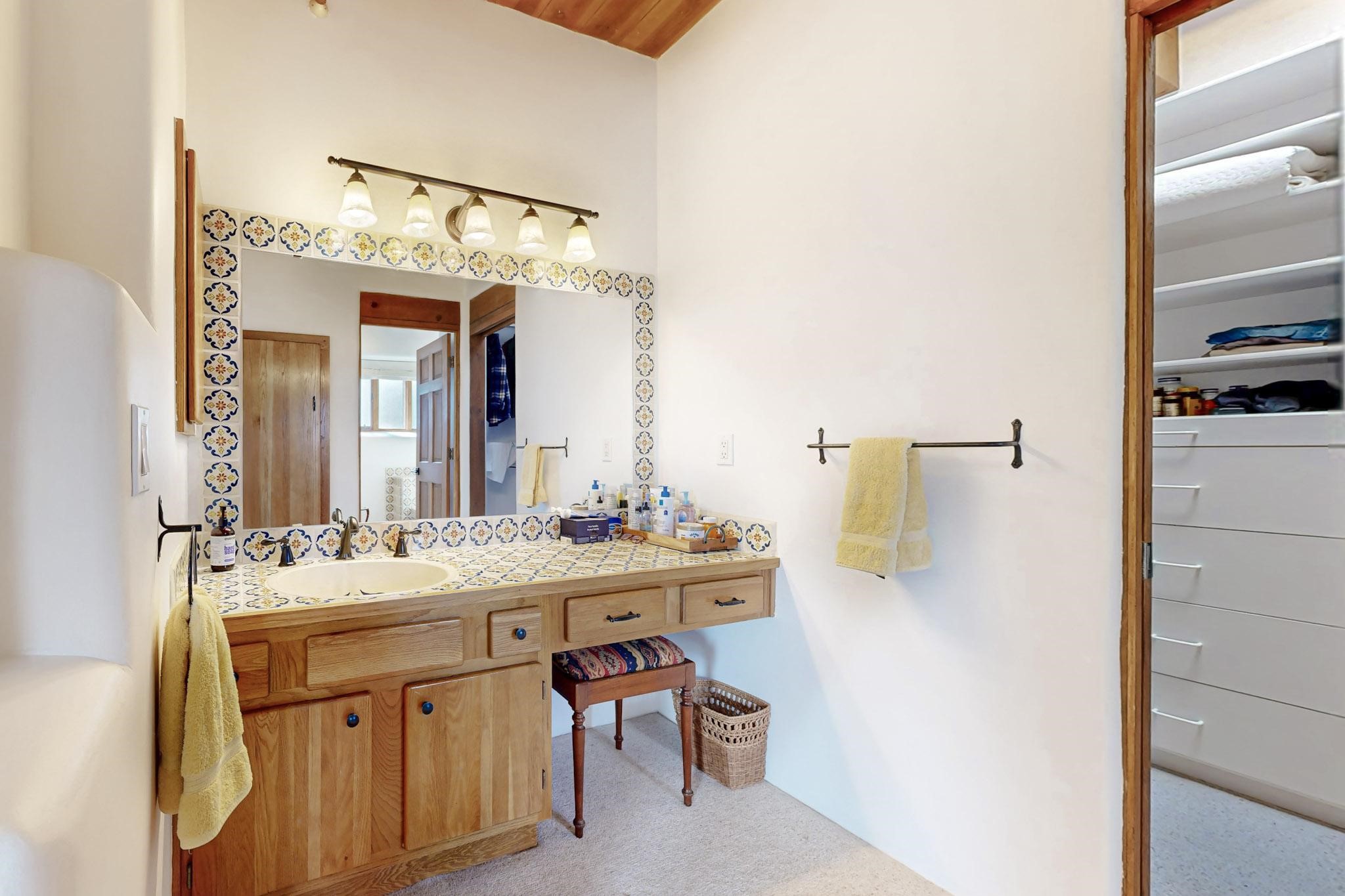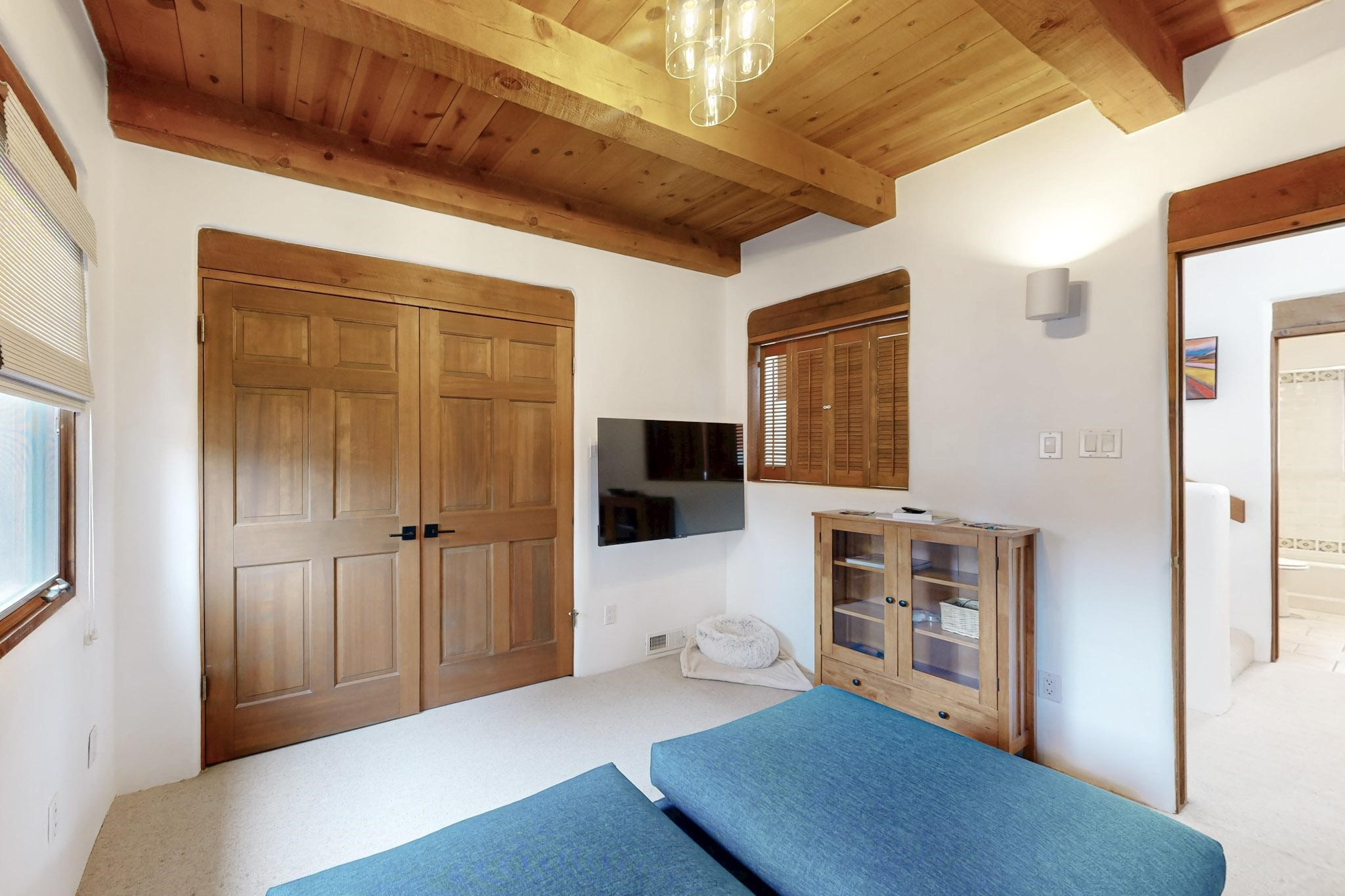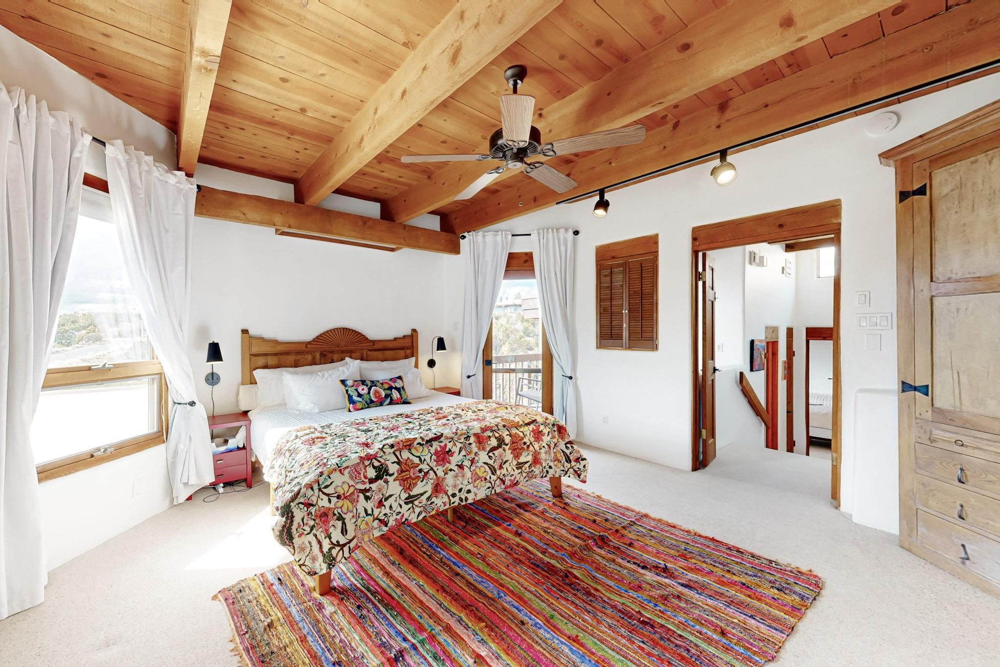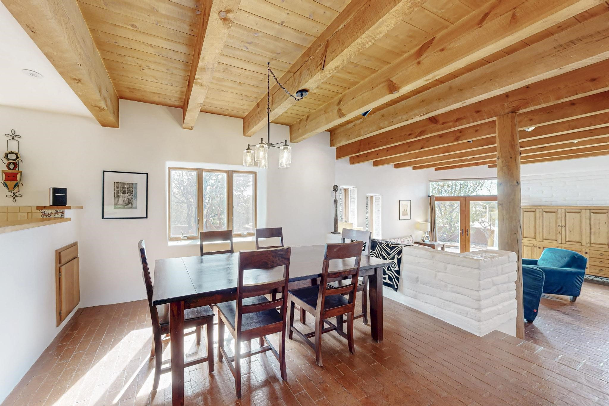 Spacious and private, with sweeping views of the Santa Fe foothills and ultimate convenience, this split level, 4 bedroom, 3 bath home cozies up to the base of the Sangre de Cristo's but is a short hop to downtown and the Plaza via hiking trails. The plan feels like a sloped spiral with wide comfortable stairs and great separation between rooms. Located in the Altamira neighborhood of Estancia Primera, a couple of hundred feet from the clubhouse, pool and tennis courts, and a short drive up the hill to the Santa Fe Ski Basin, this house features multiple outdoor spaces and a two car garage with generous storage for easy, luxury living. Recent roof and stucco mean major maintenance has been taken care of. Furnishings available upon request.