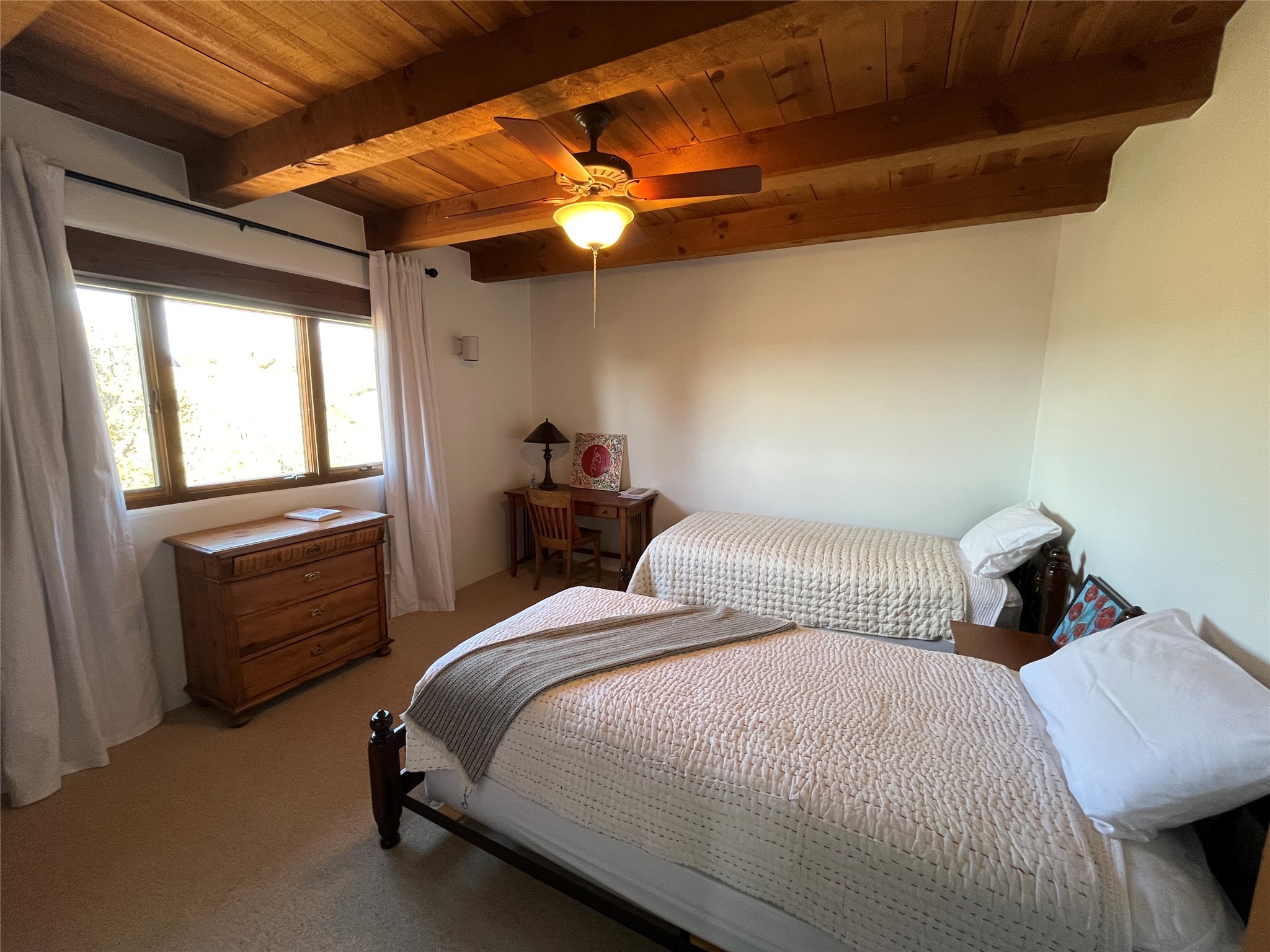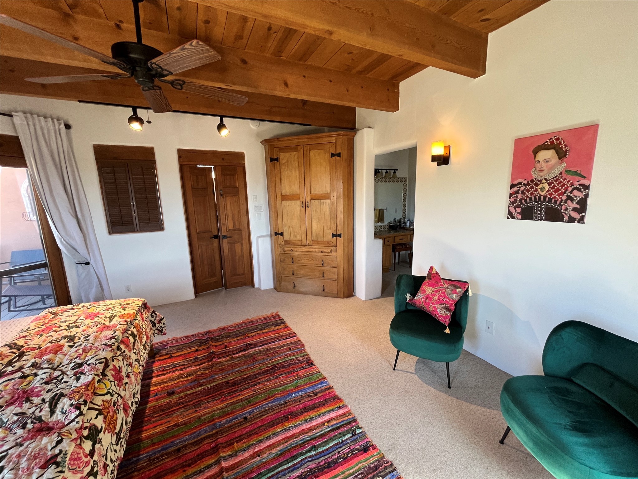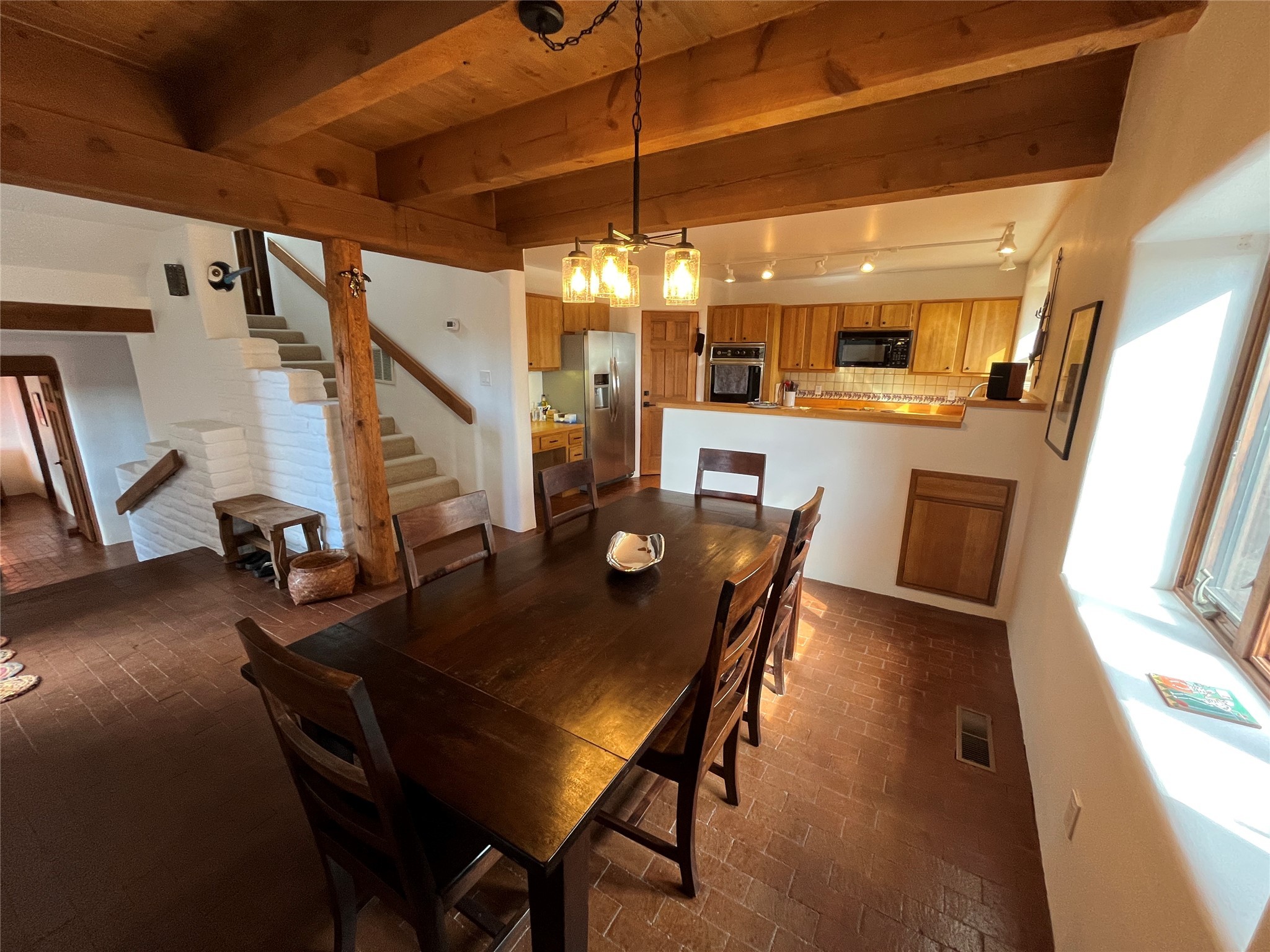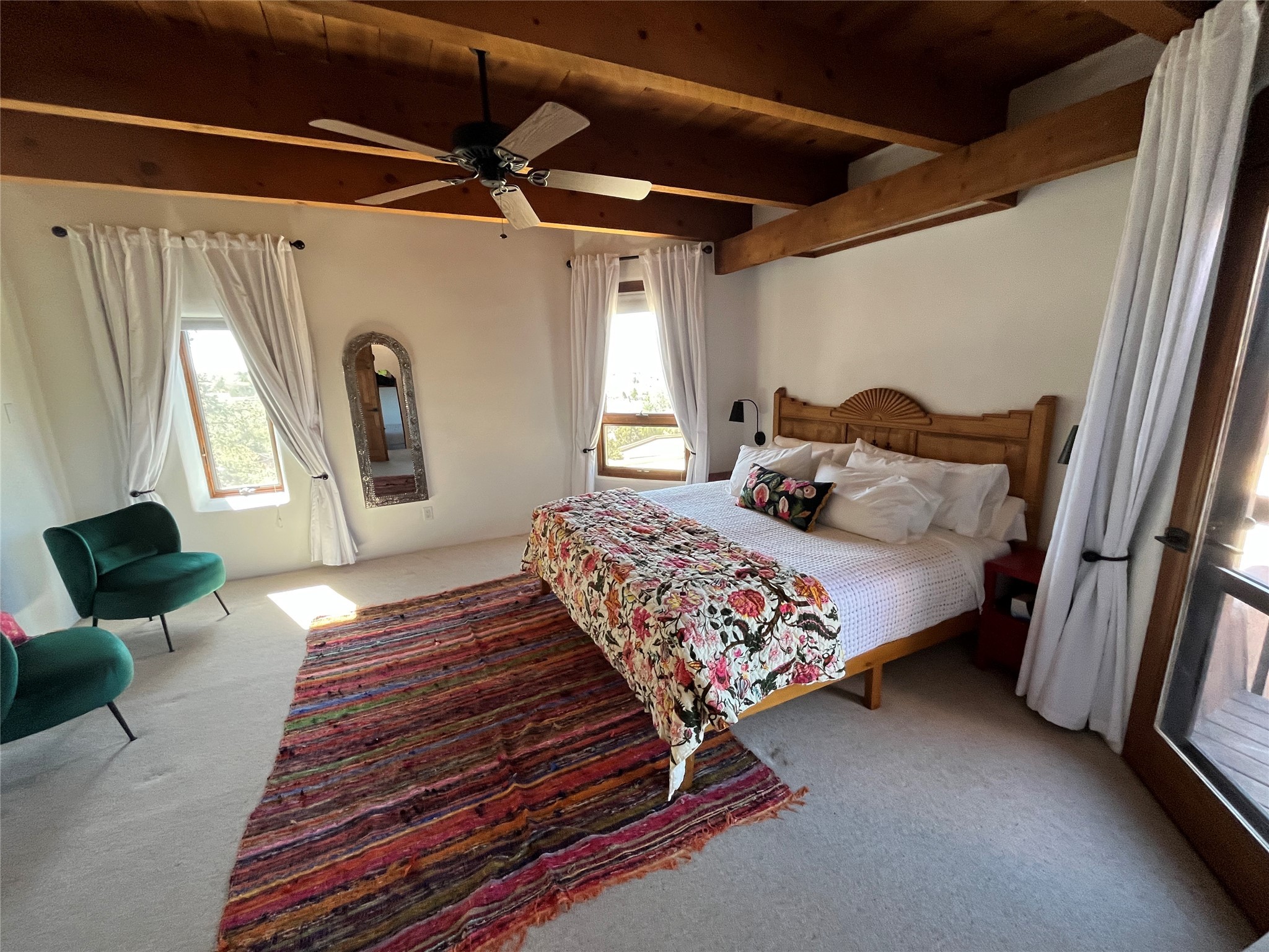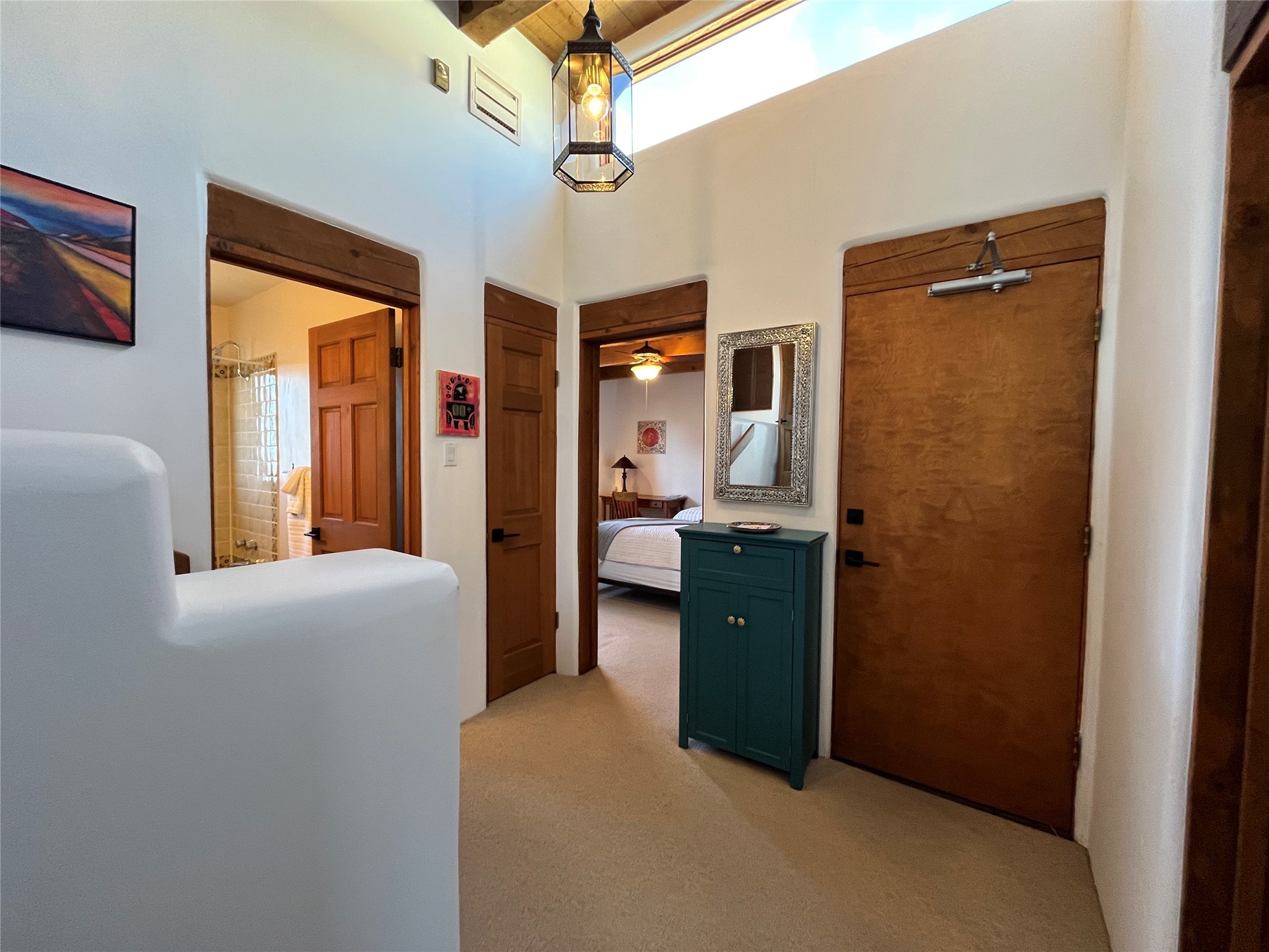 Spacious and private, with sweeping views of the Santa Fe foothills and ultimate convenience, this split level, 4 bedroom, 3 bath home cozies up to the base of the Sangre de Cristo's but is a short hop to downtown and the Plaza via hiking trails. The plan feels like a sloped spiral with wide comfortable stairs and great separation between rooms. Located in the Altamira neighborhood of Estancia Primera, a couple of hundred feet from the clubhouse, pool and tennis courts, and a short drive up the hill to the Santa Fe Ski Basin, this house features multiple outdoor spaces and a two car garage with generous storage for easy, luxury living. Recent roof and stucco mean major maintenance has been taken care of. Furnishings available upon request.