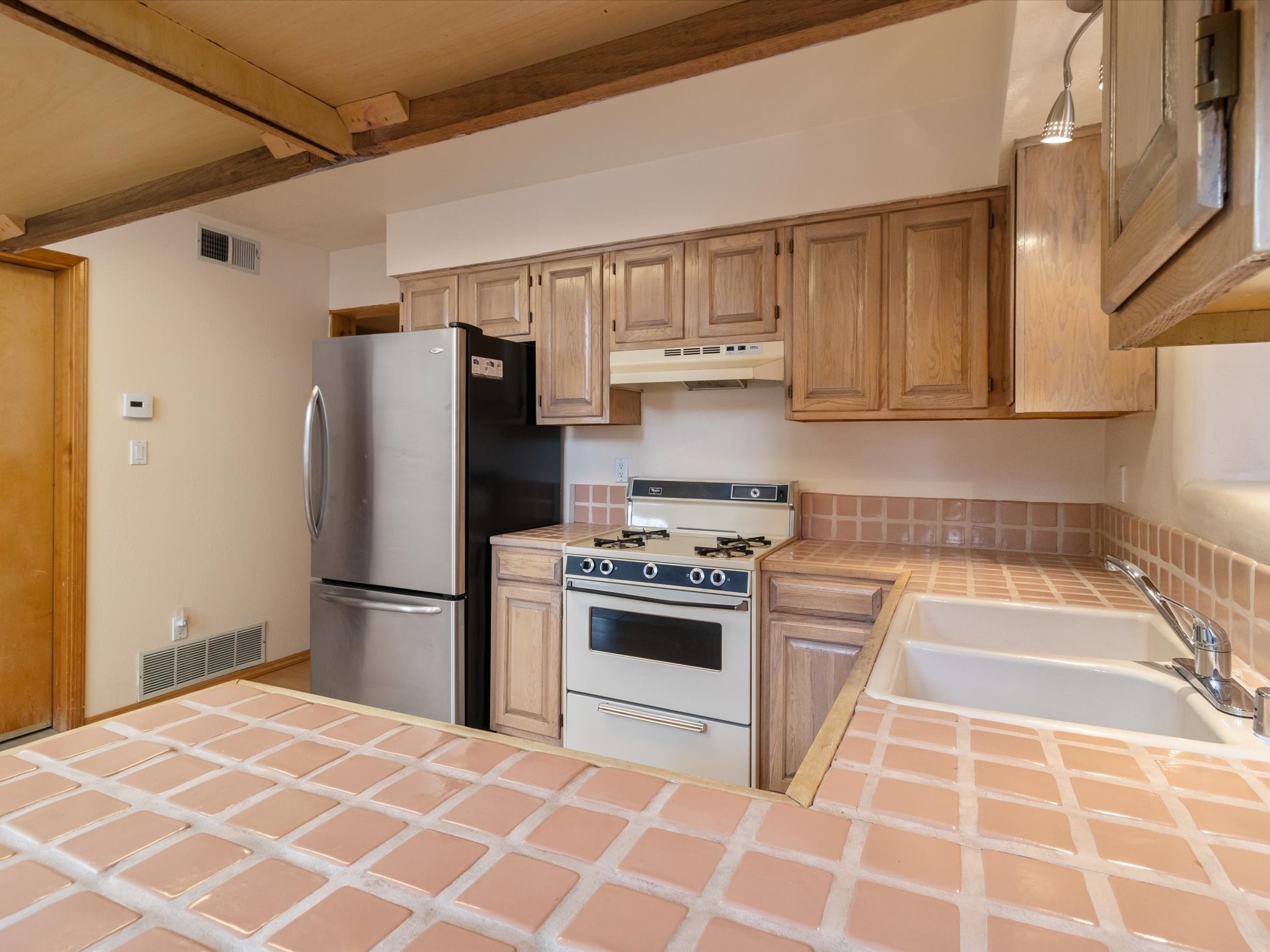 Repriced and Ready for the New owners! This One-owner home is nestled in the Las Acequias neighborhood. Offering a prime location with easy access to Los Alamos, shopping, dining, and all that Santa Fe has to offer.Featuring 3 bedrooms and 2 full bathrooms, this inviting residence has a main-floor master suite for added convenience. The thoughtfully designed layout includes a cozy living space and a well-situated kitchen--perfect for entertaining. The spacious family room flows seamlessly into the dining area, creating an open and inviting atmosphere.Situated on a corner lot in a cul-de-sac, this property provides ample parking and a generously sized backyard with endless possibilities--originally zoned for a small casita. Whether you're looking to expand or create your dream outdoor retreat, this home offers unlimited potential.Don't miss this incredible opportunity--schedule your showing today!